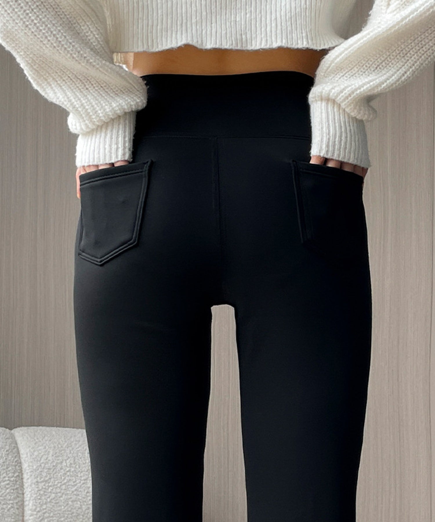 裏側はフリース素材であたたく、秋冬の冷えやすい下半身をしっかりとサポート。