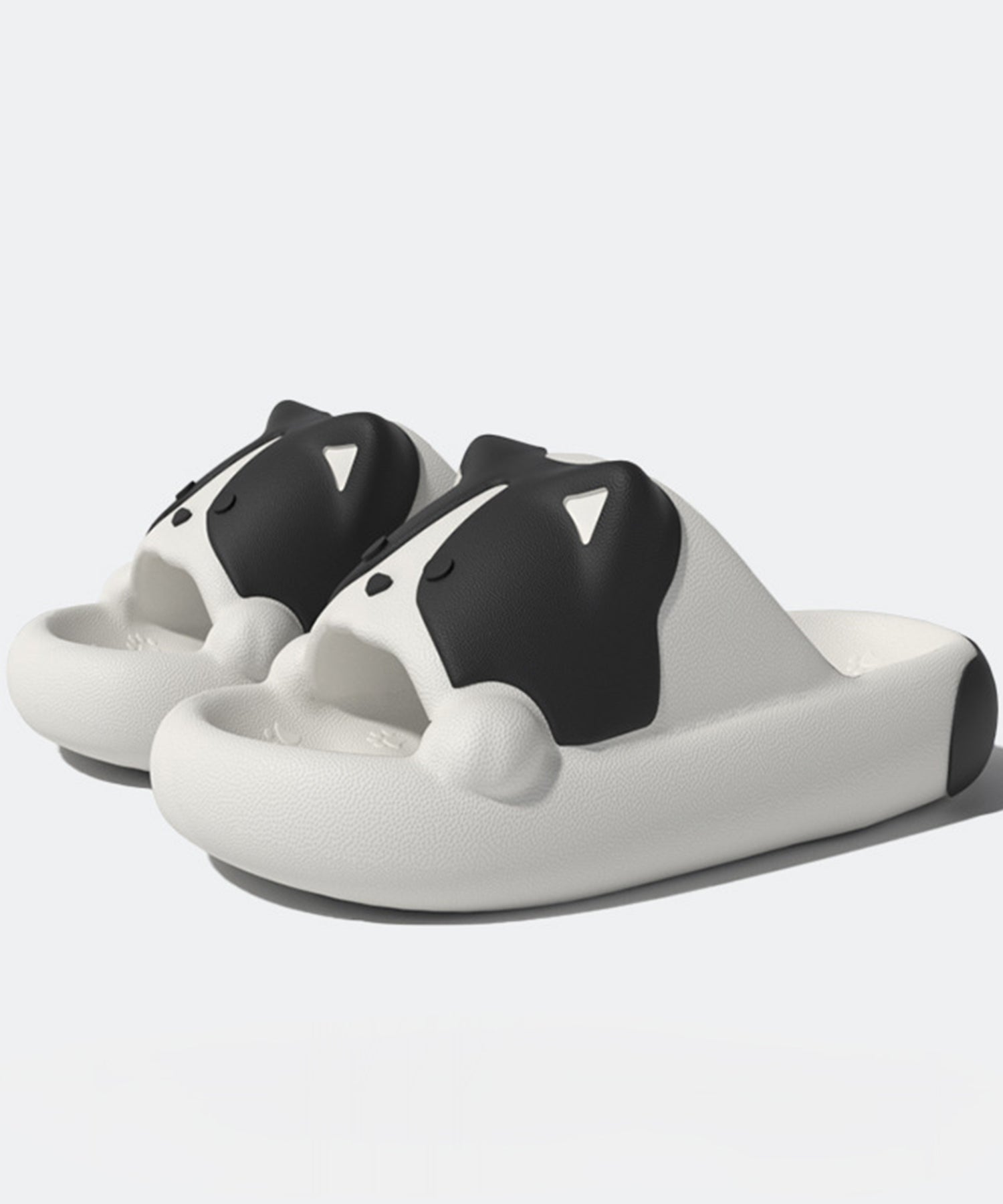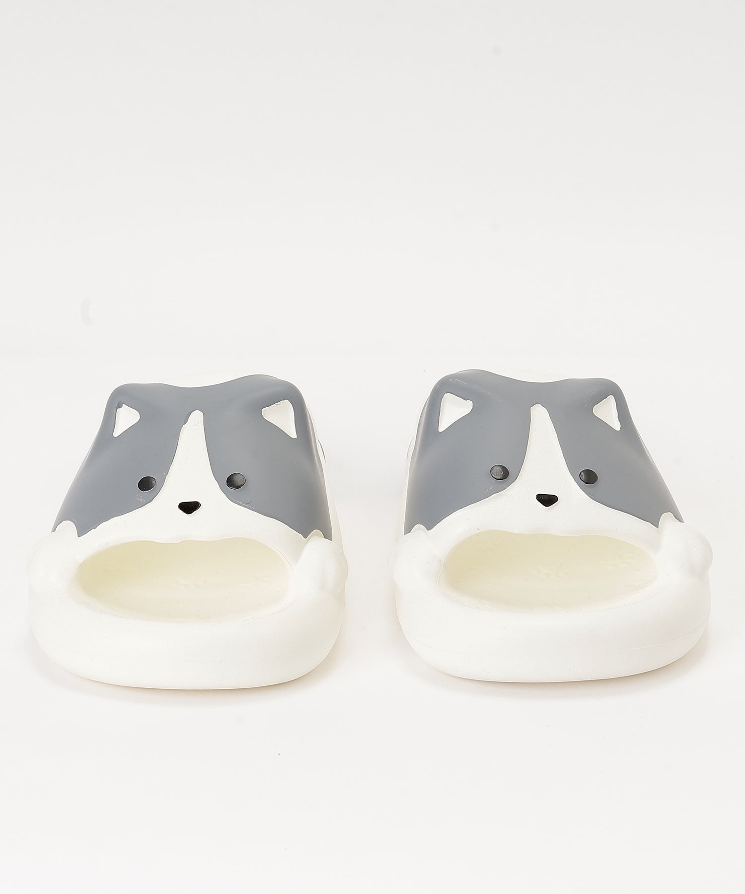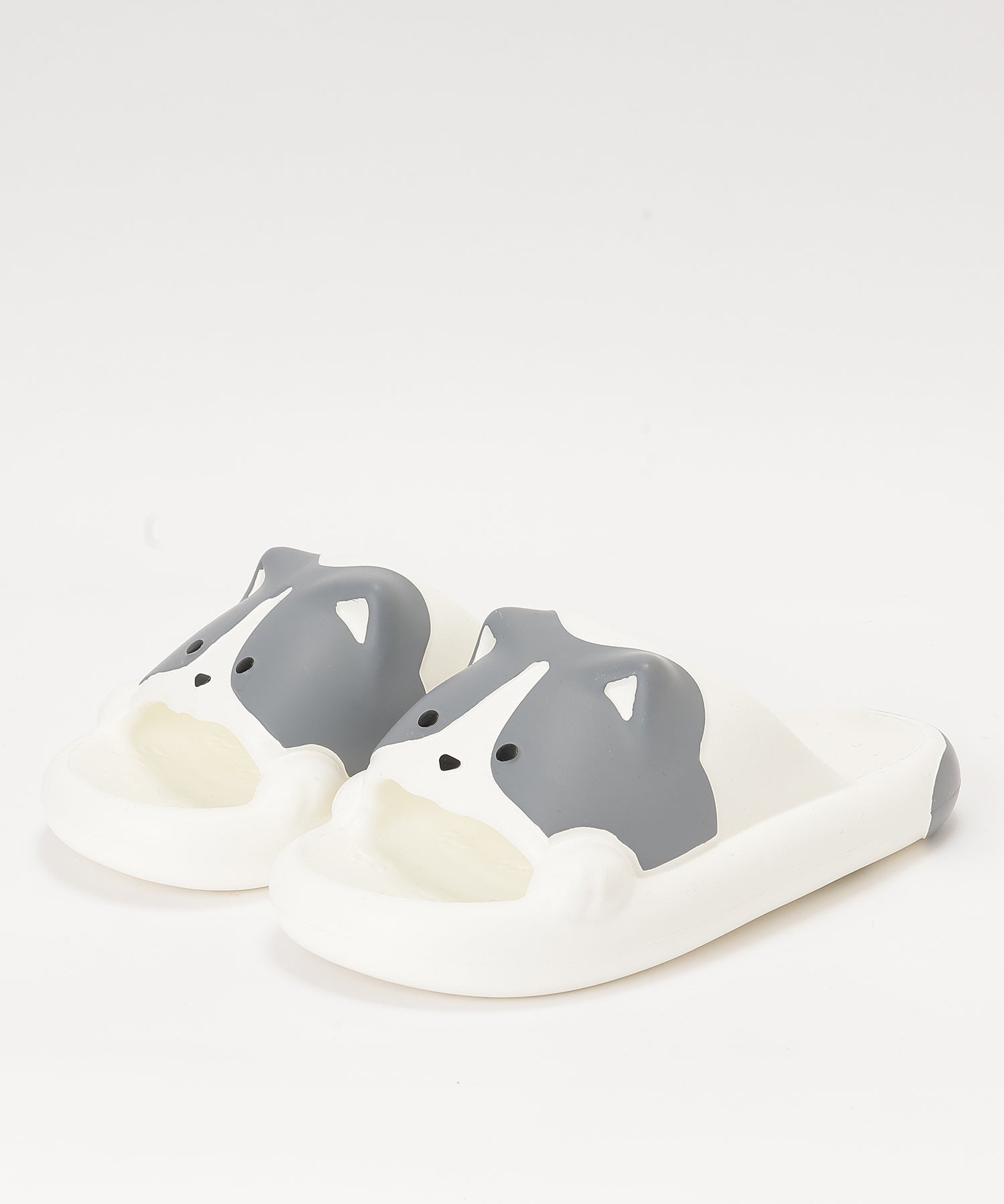 ハチワレ犬が一体化したキュートなルームサンダル。