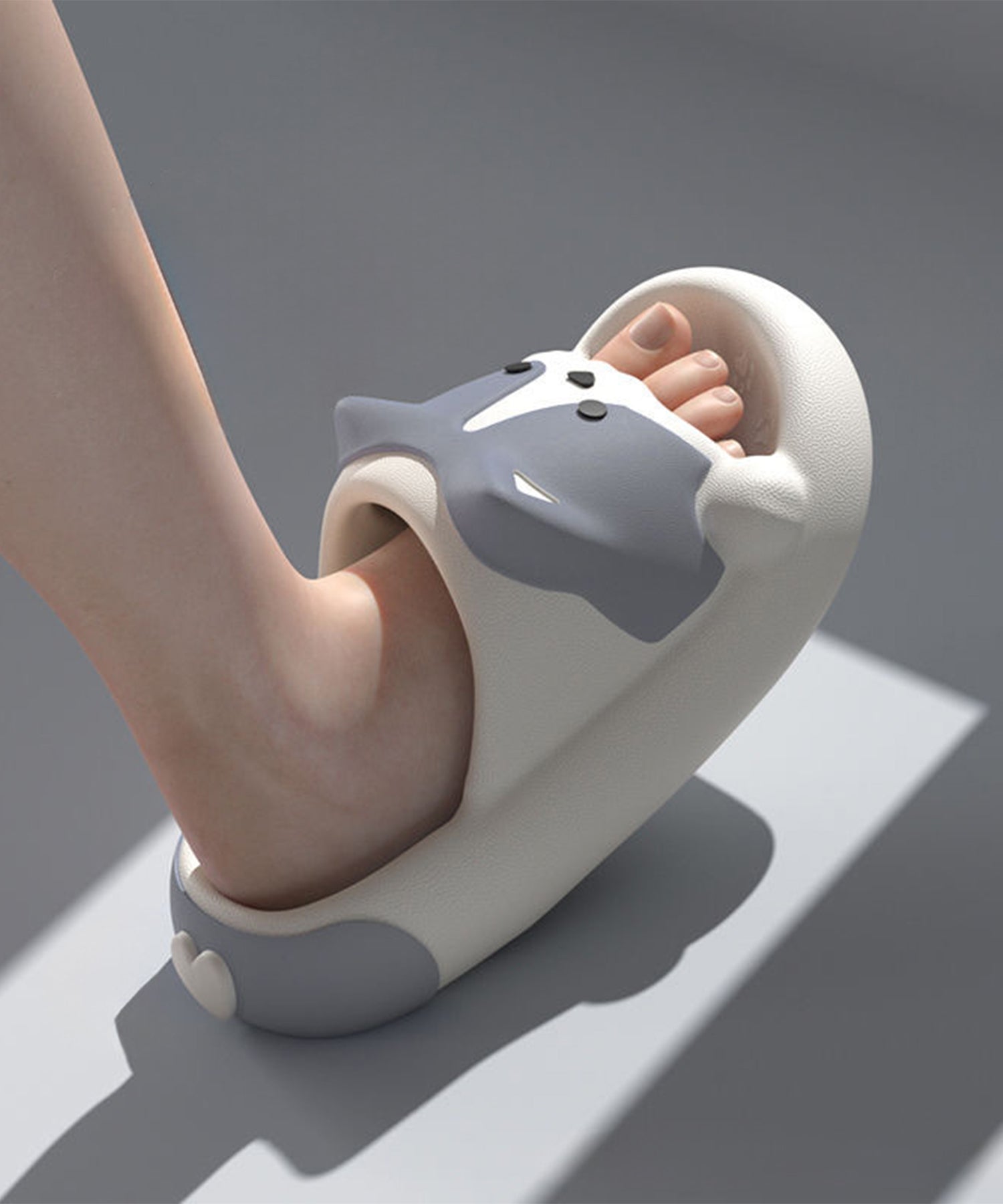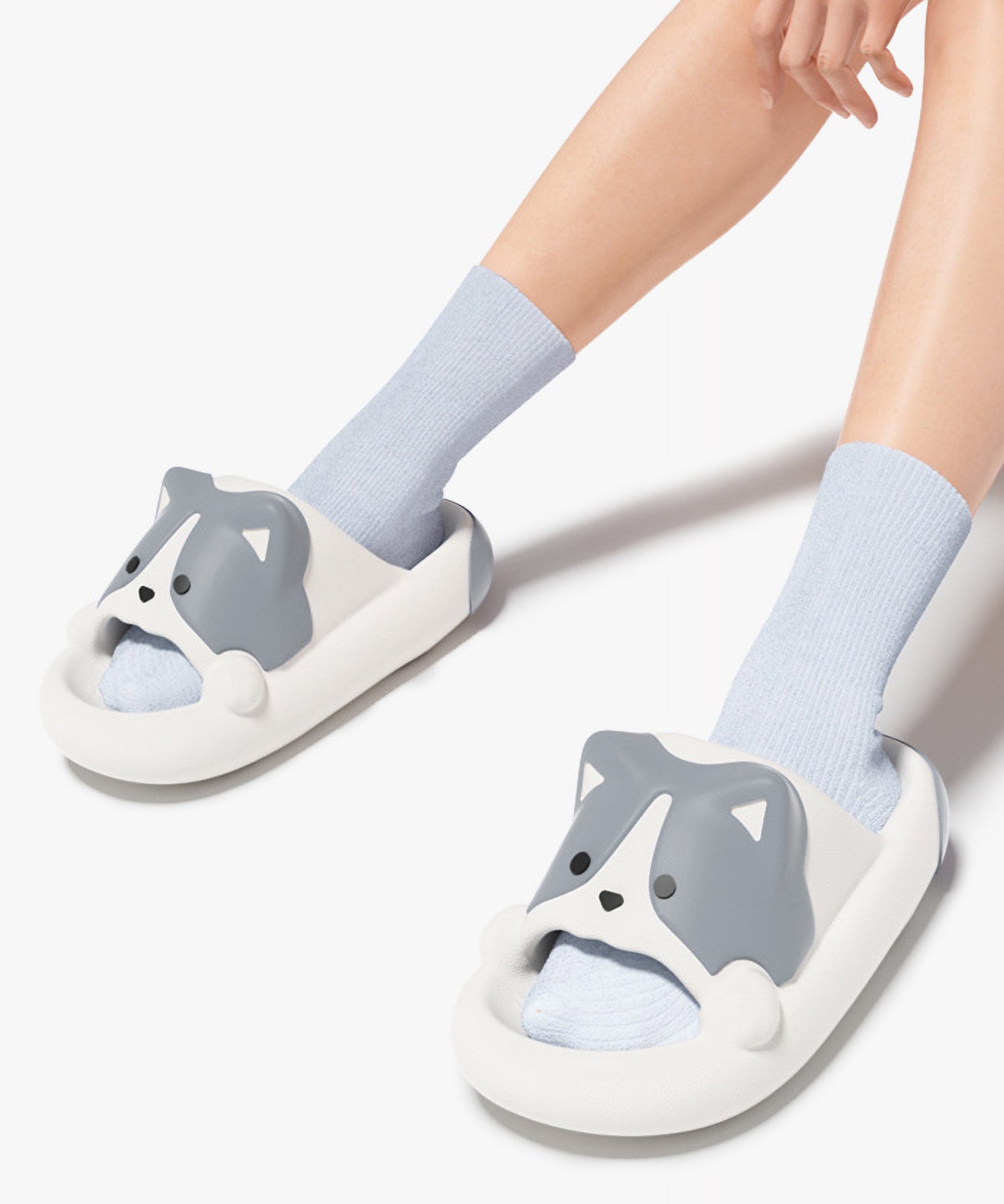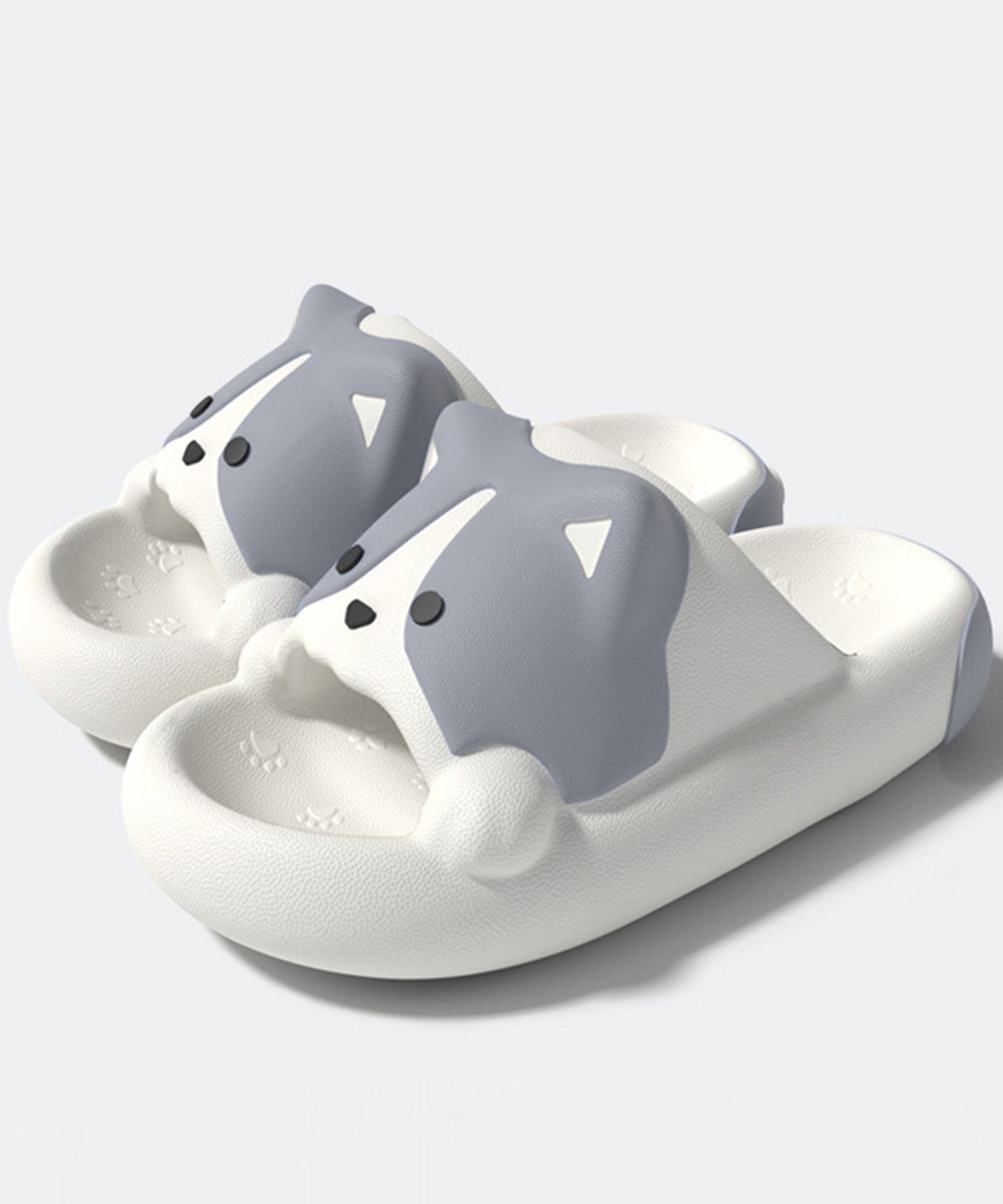 ハチワレ犬が一体化したキュートなルームサンダル。