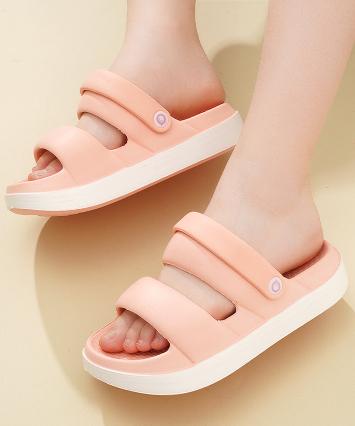 ストラップは後ろに倒してかかとに掛けられる2WAY仕様になっており、余裕のある履き心地ながらも脱げにくいデザインに仕上げました。
