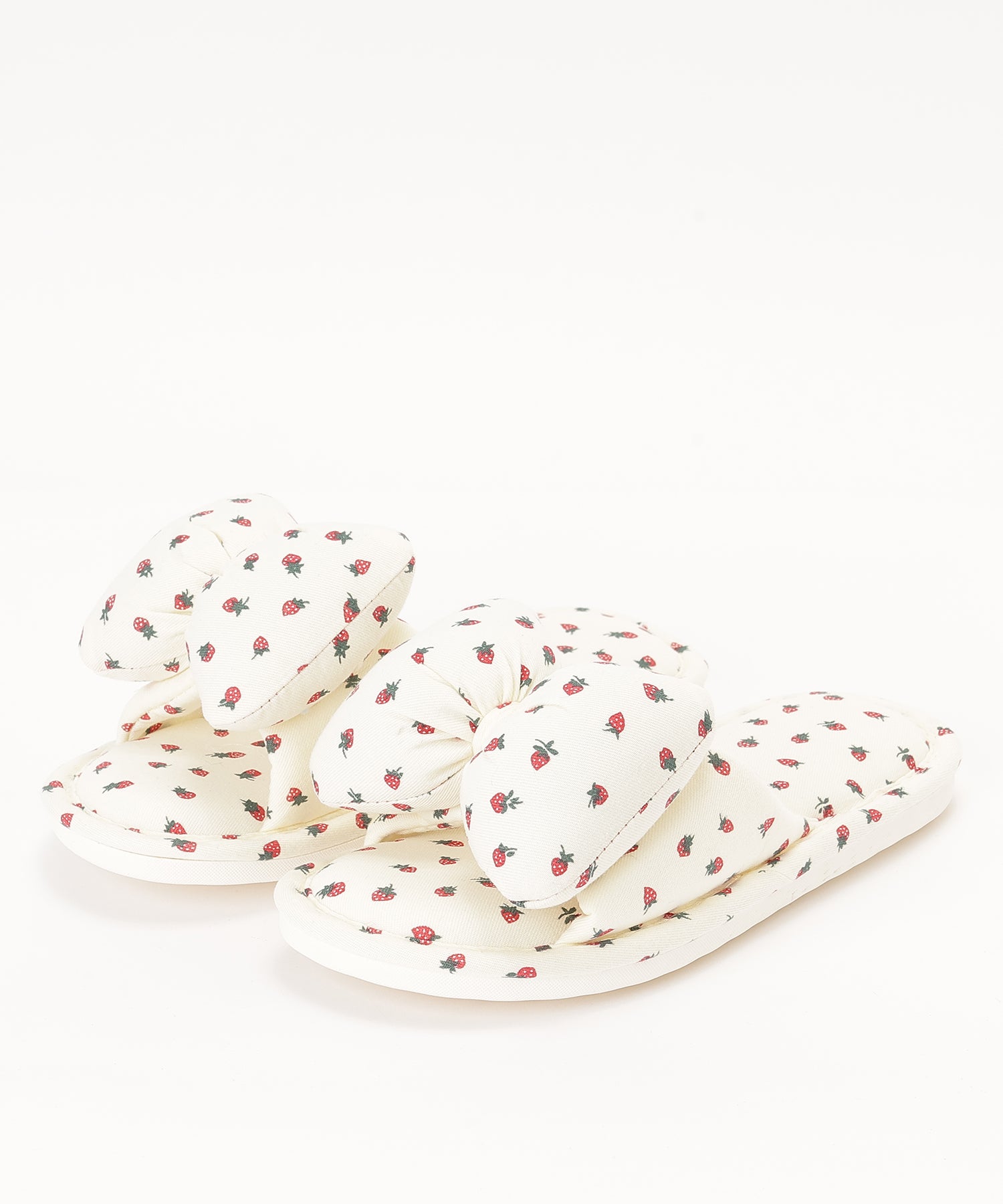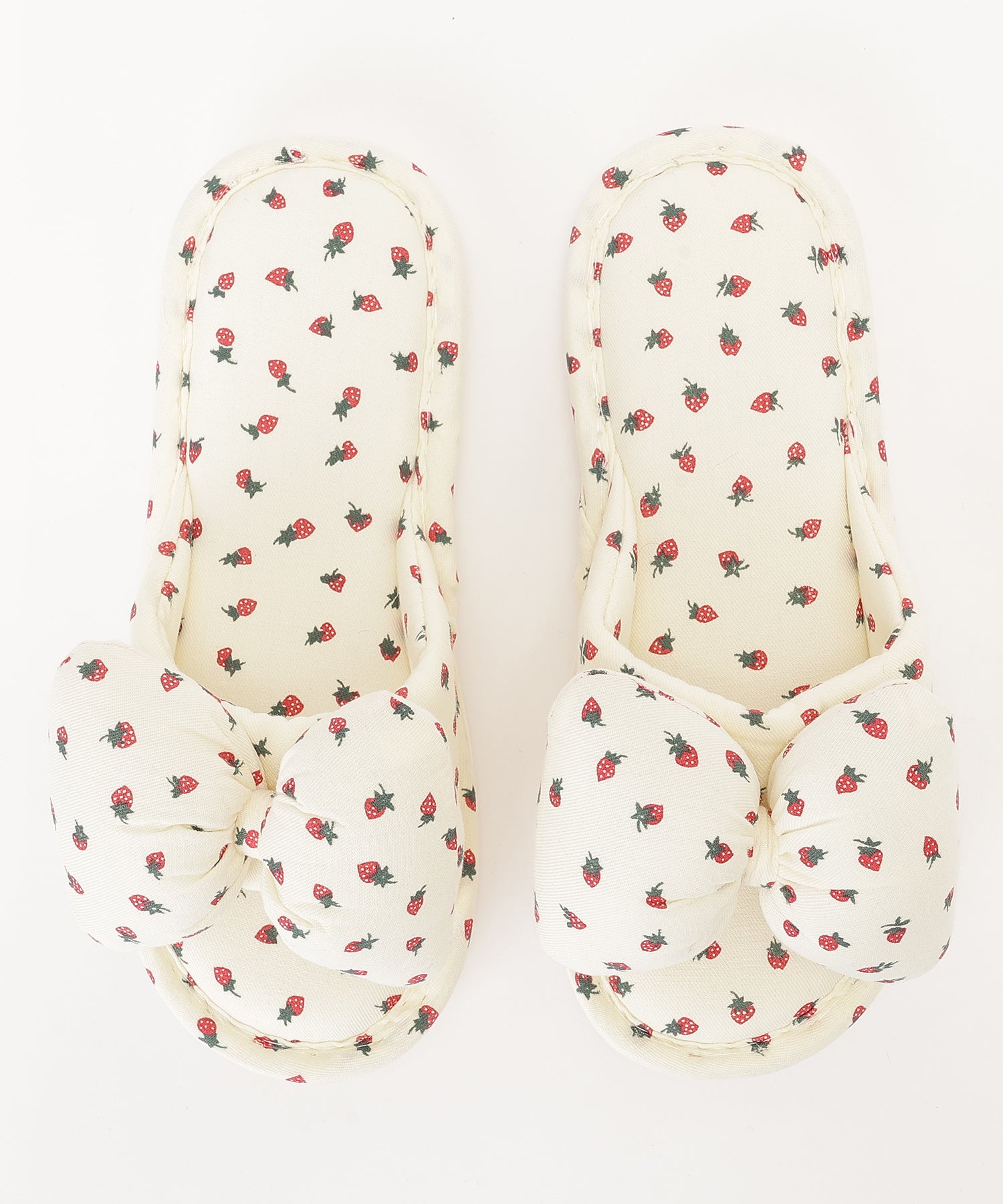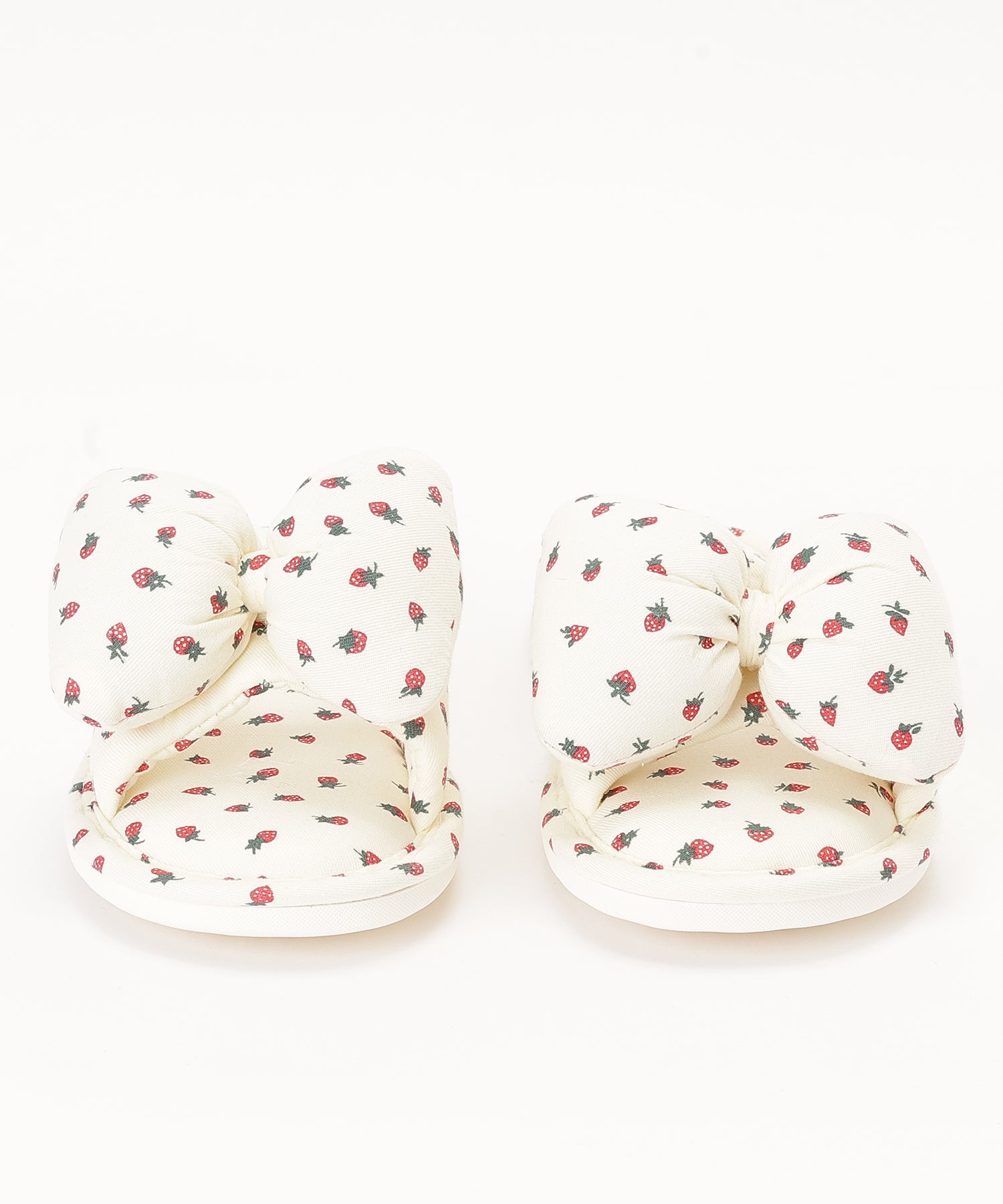 イチゴ柄 リボン オープン フラット スリッパ