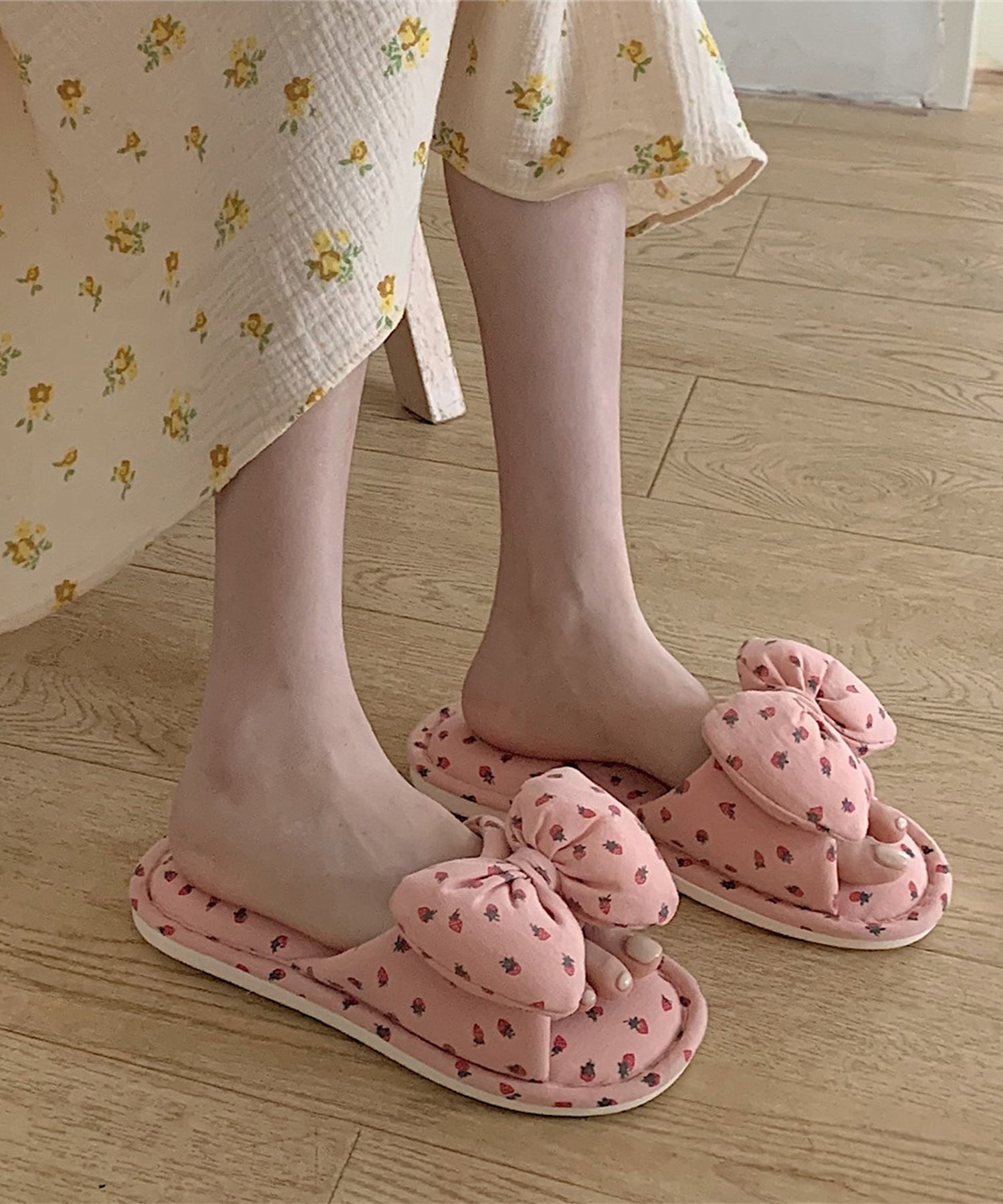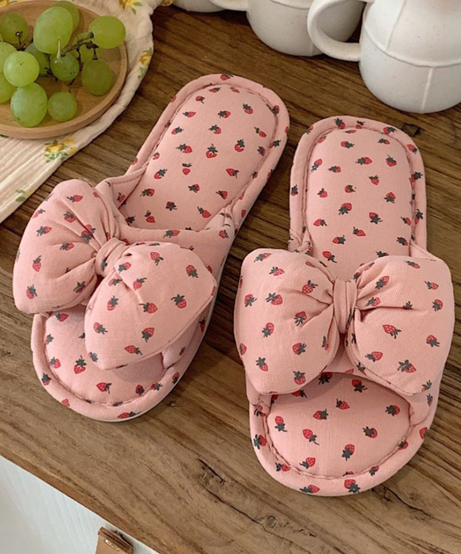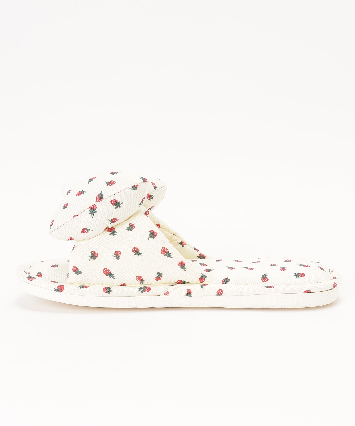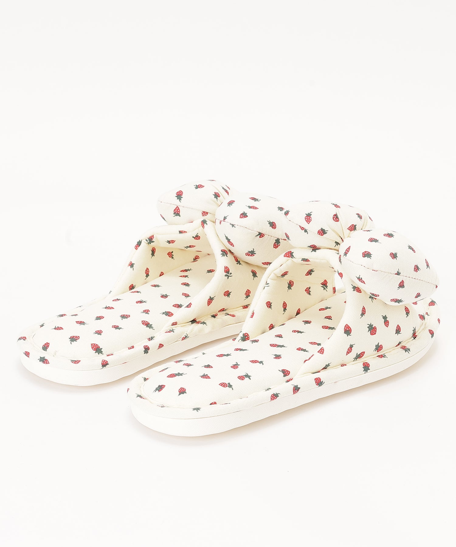 小さなイチゴ柄がキュートなルームスリッパ。