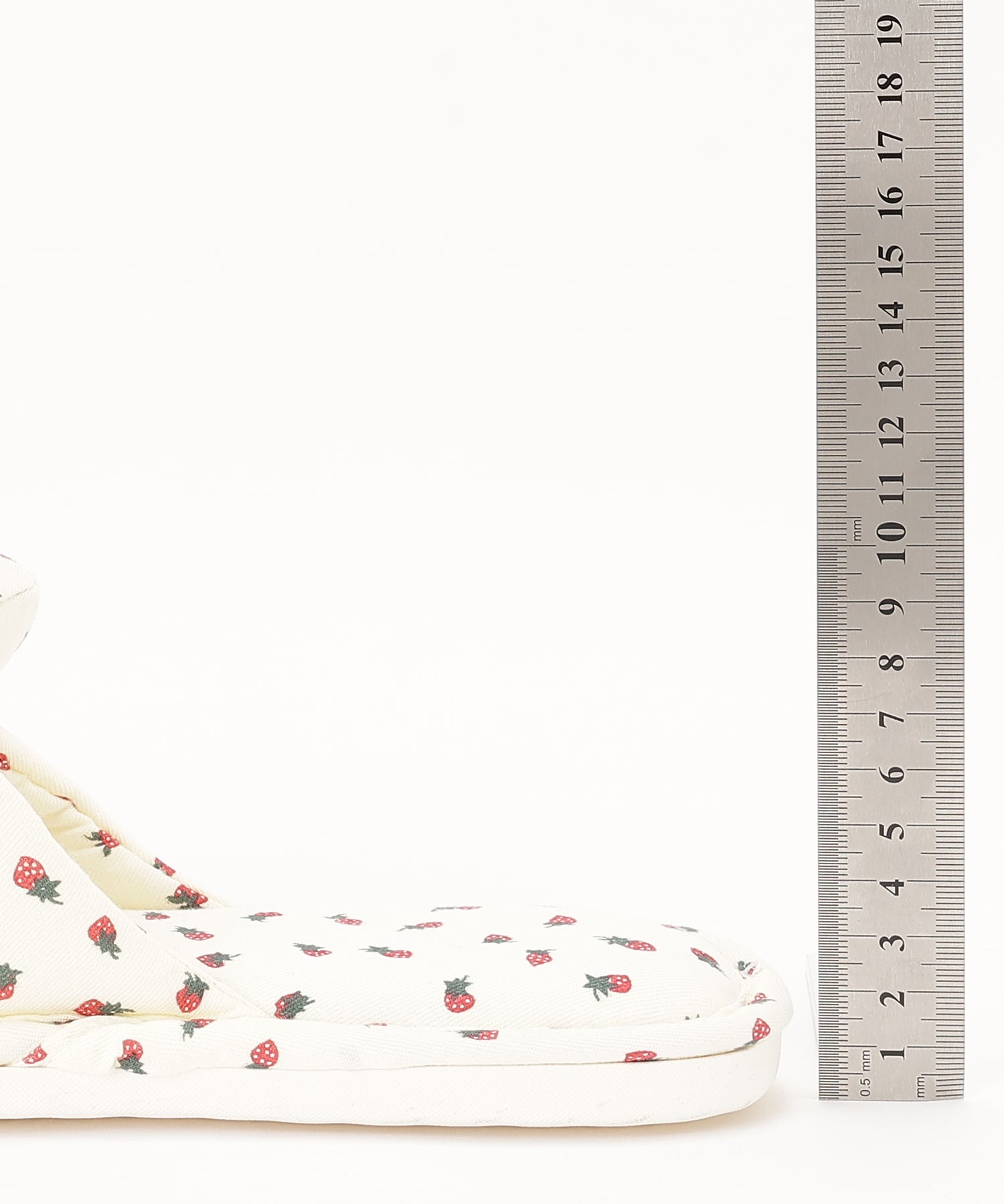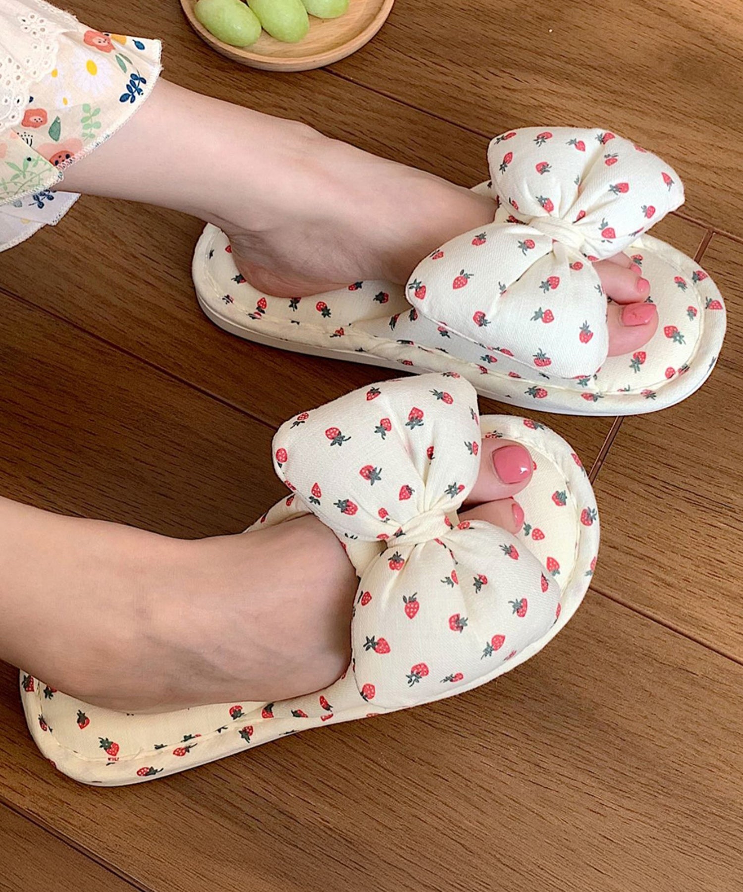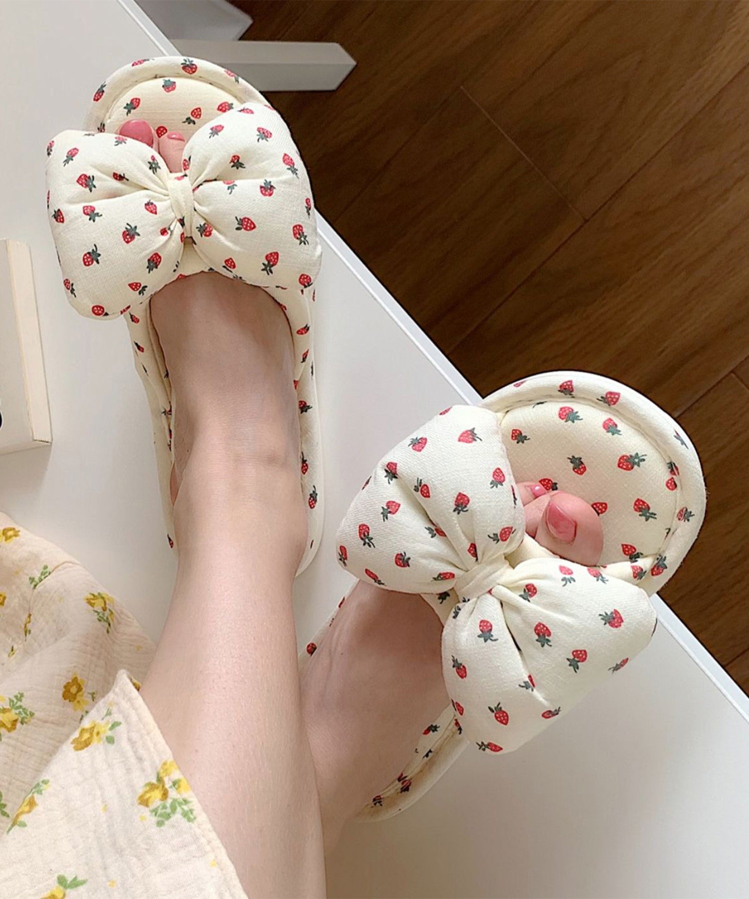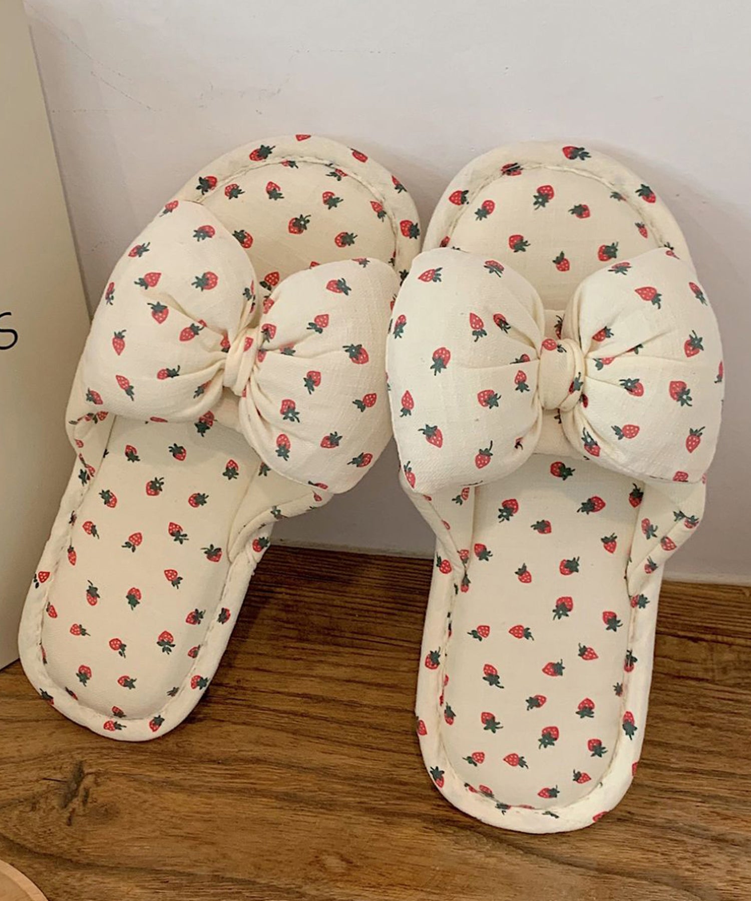 小さなイチゴ柄がキュートなルームスリッパ。