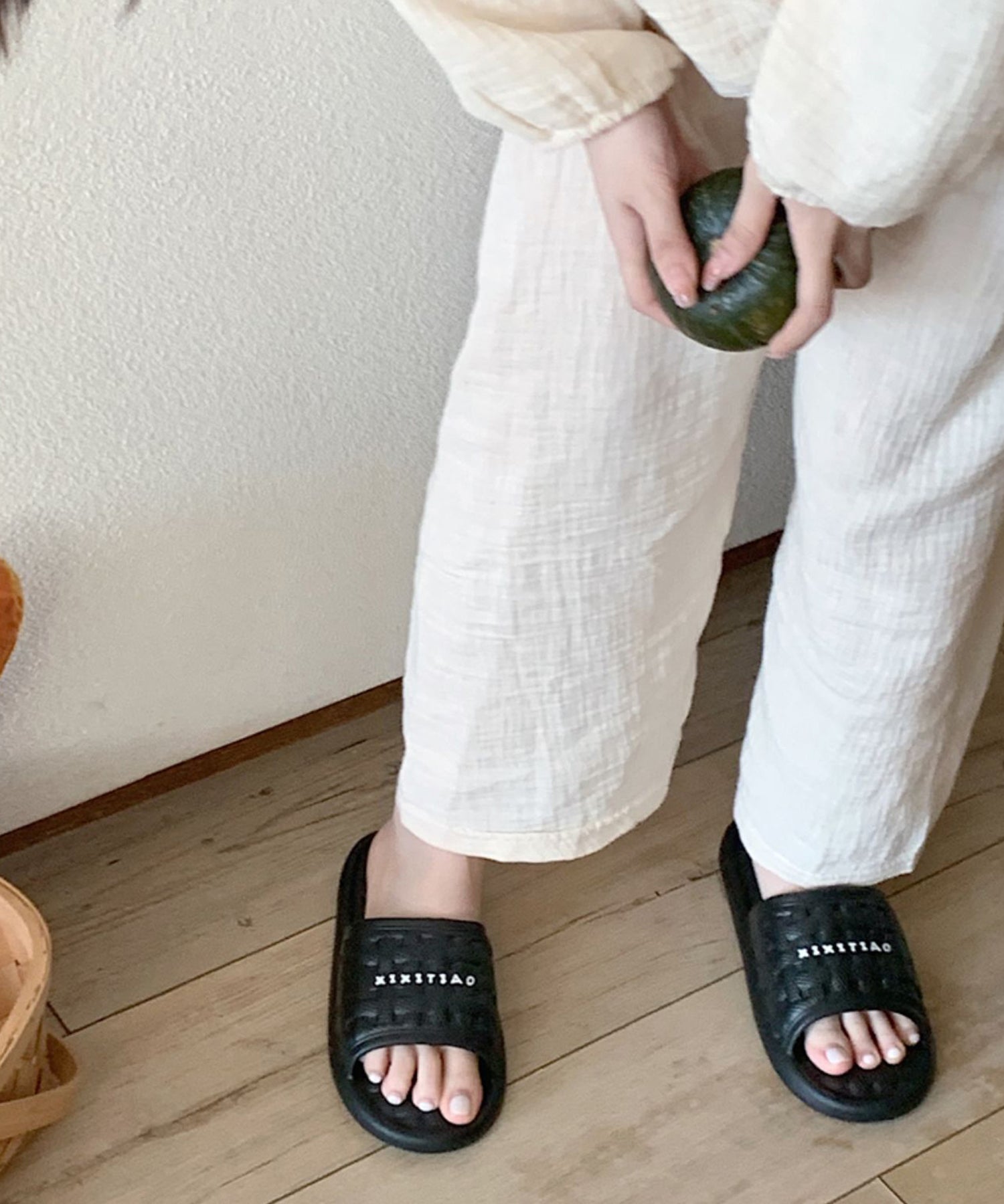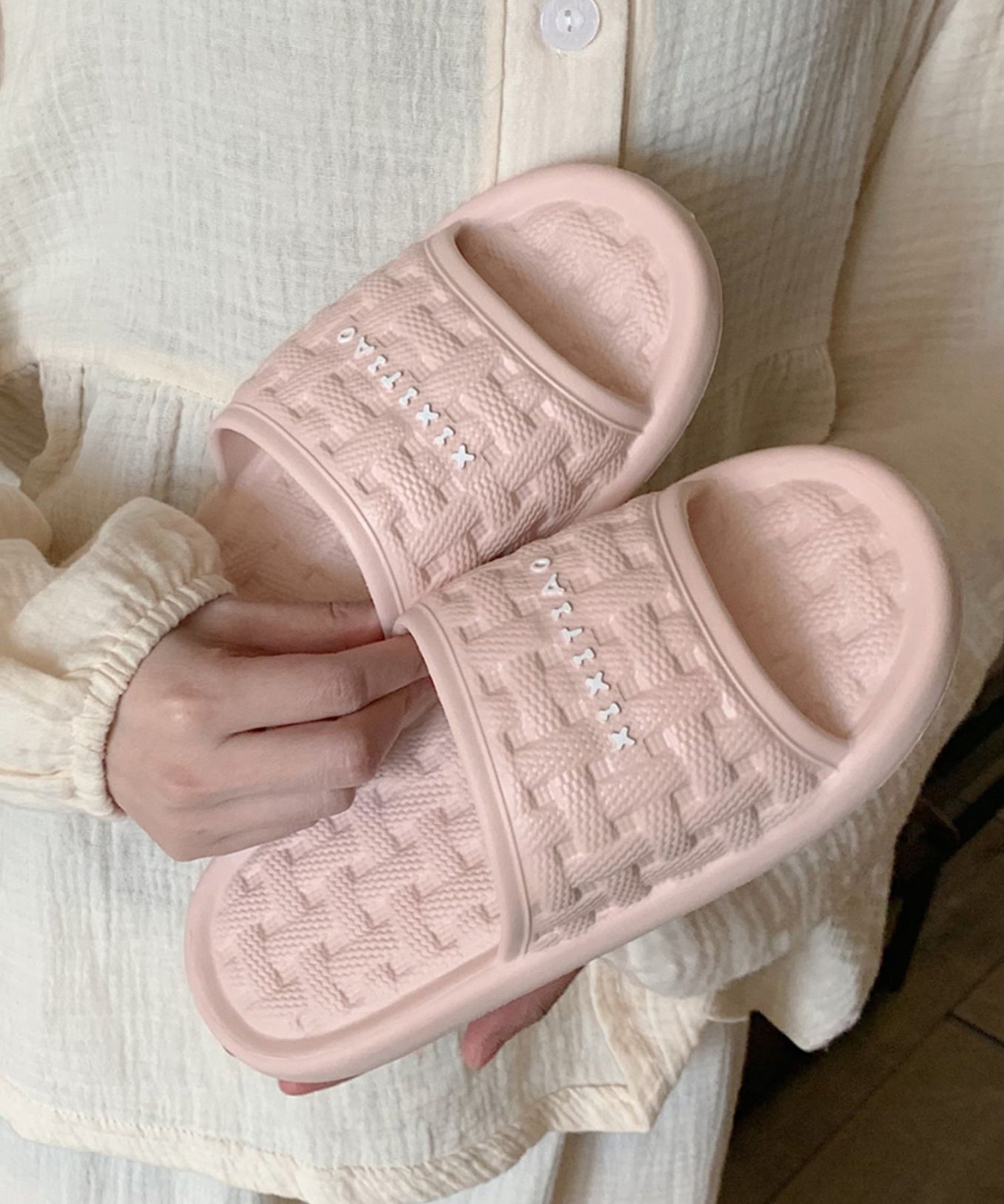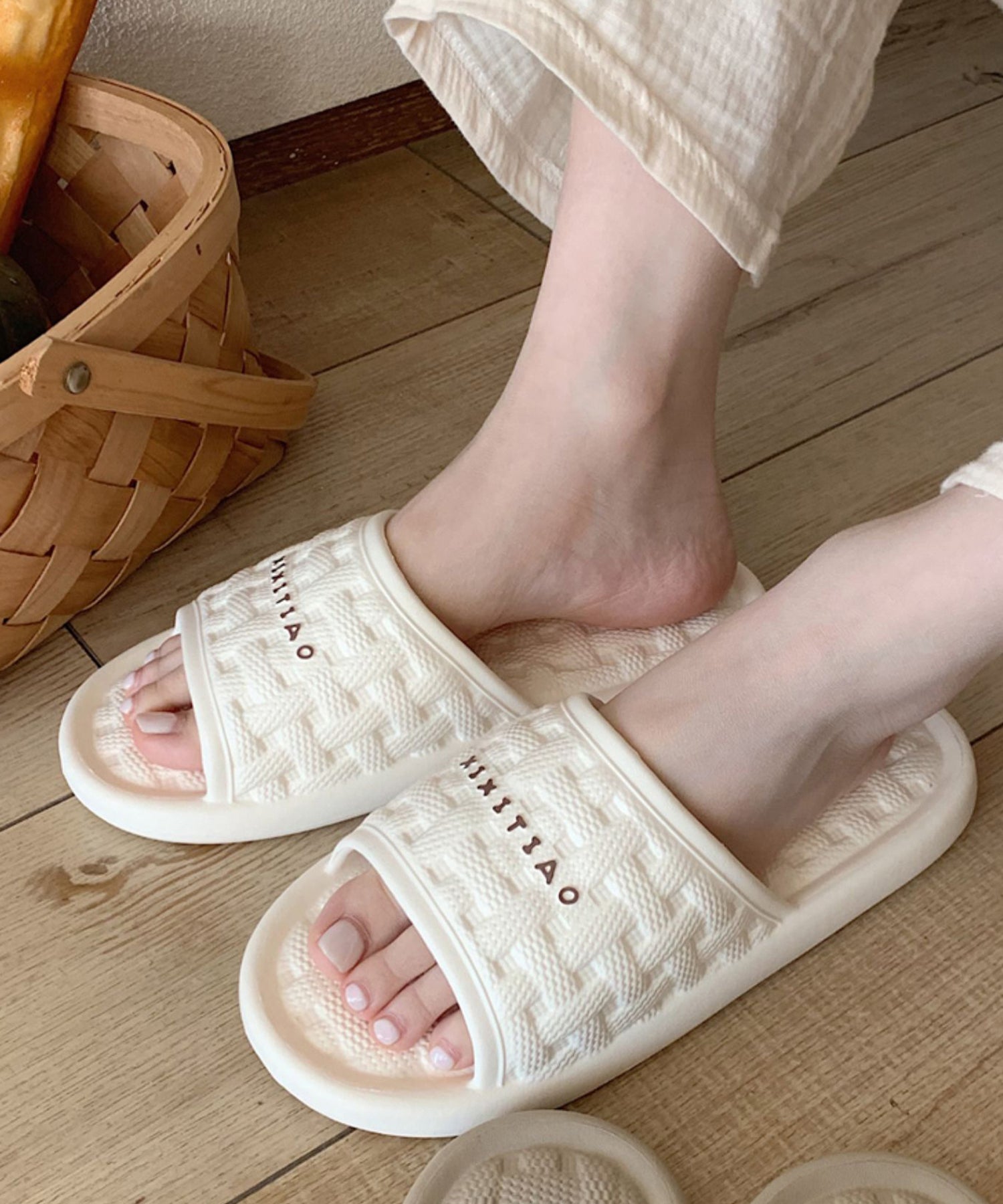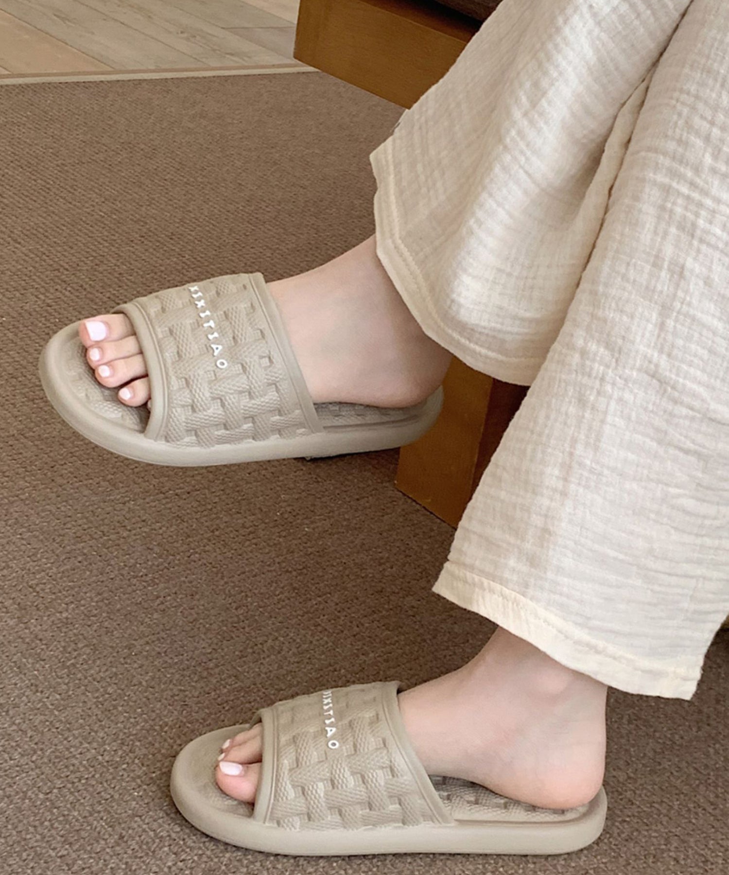 表面感のあるバスケット柄が大人可愛いスリッパサンダル。