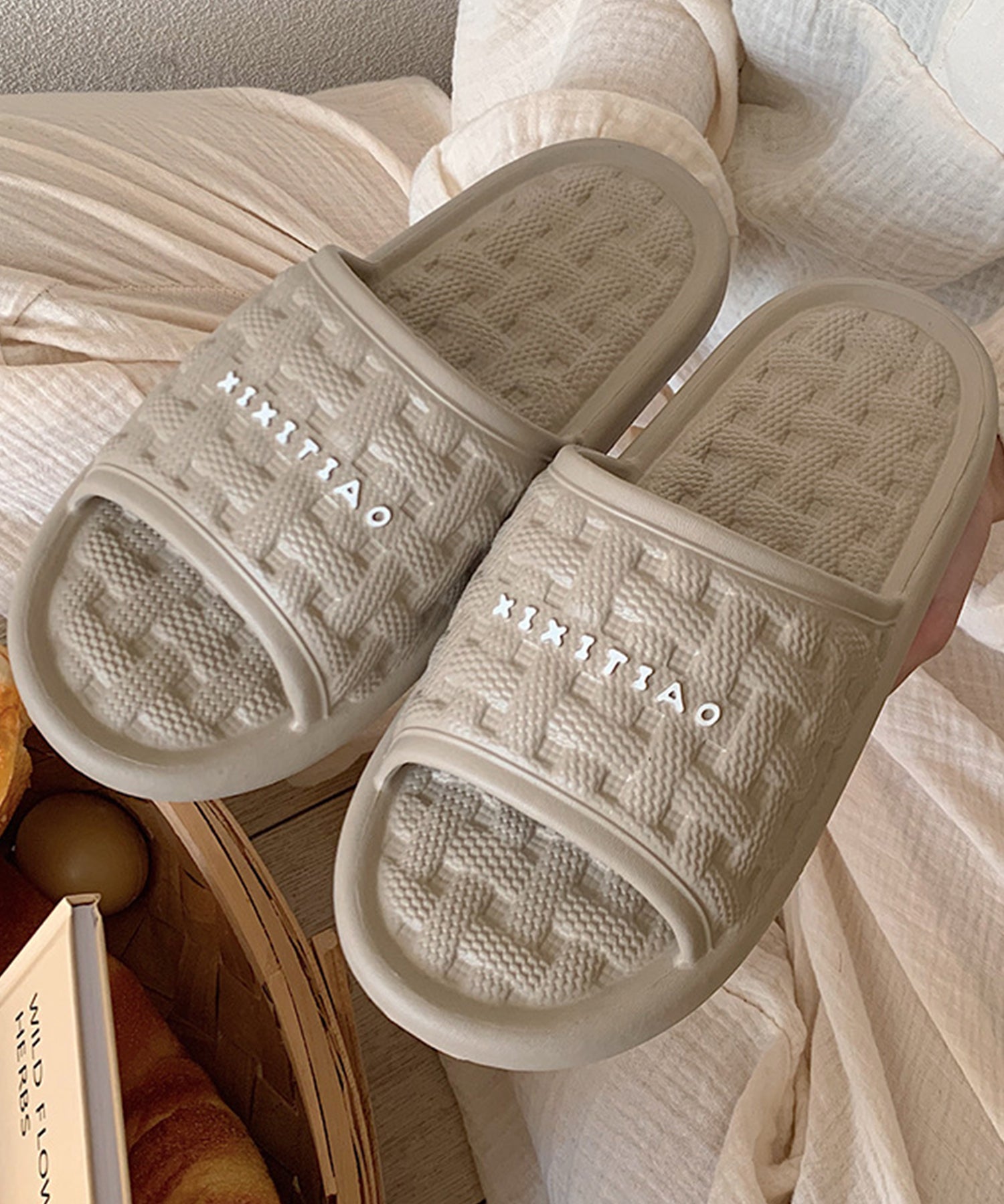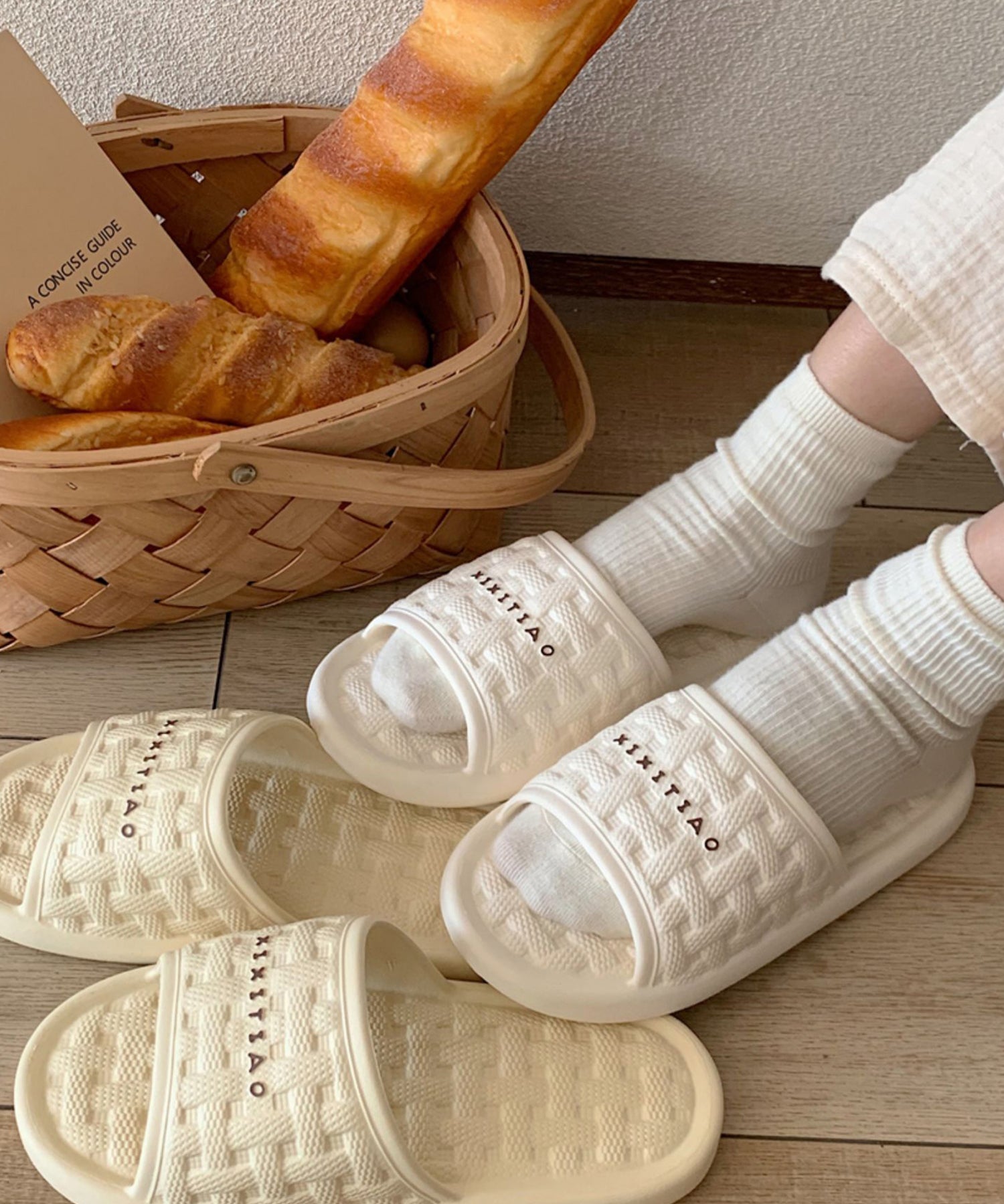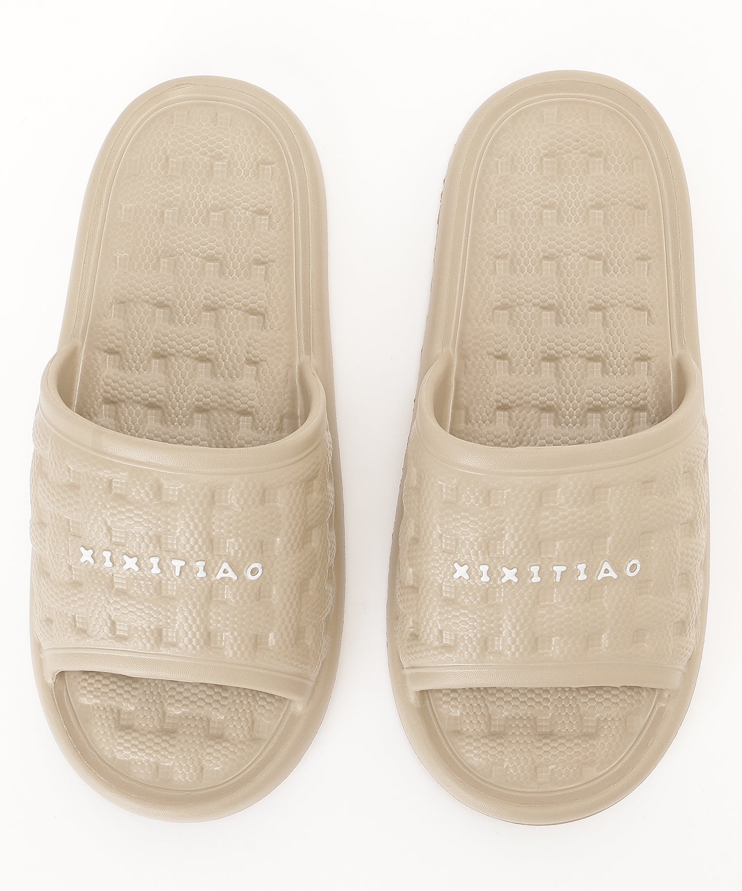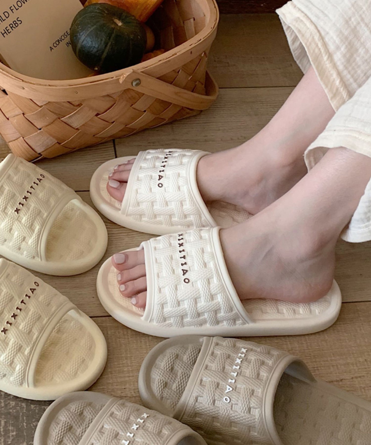 表面感のあるバスケット柄が大人可愛いスリッパサンダル。