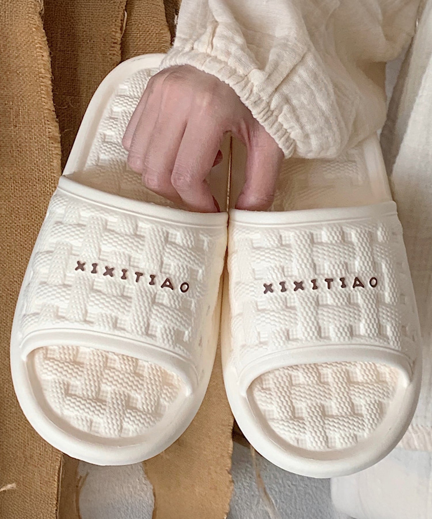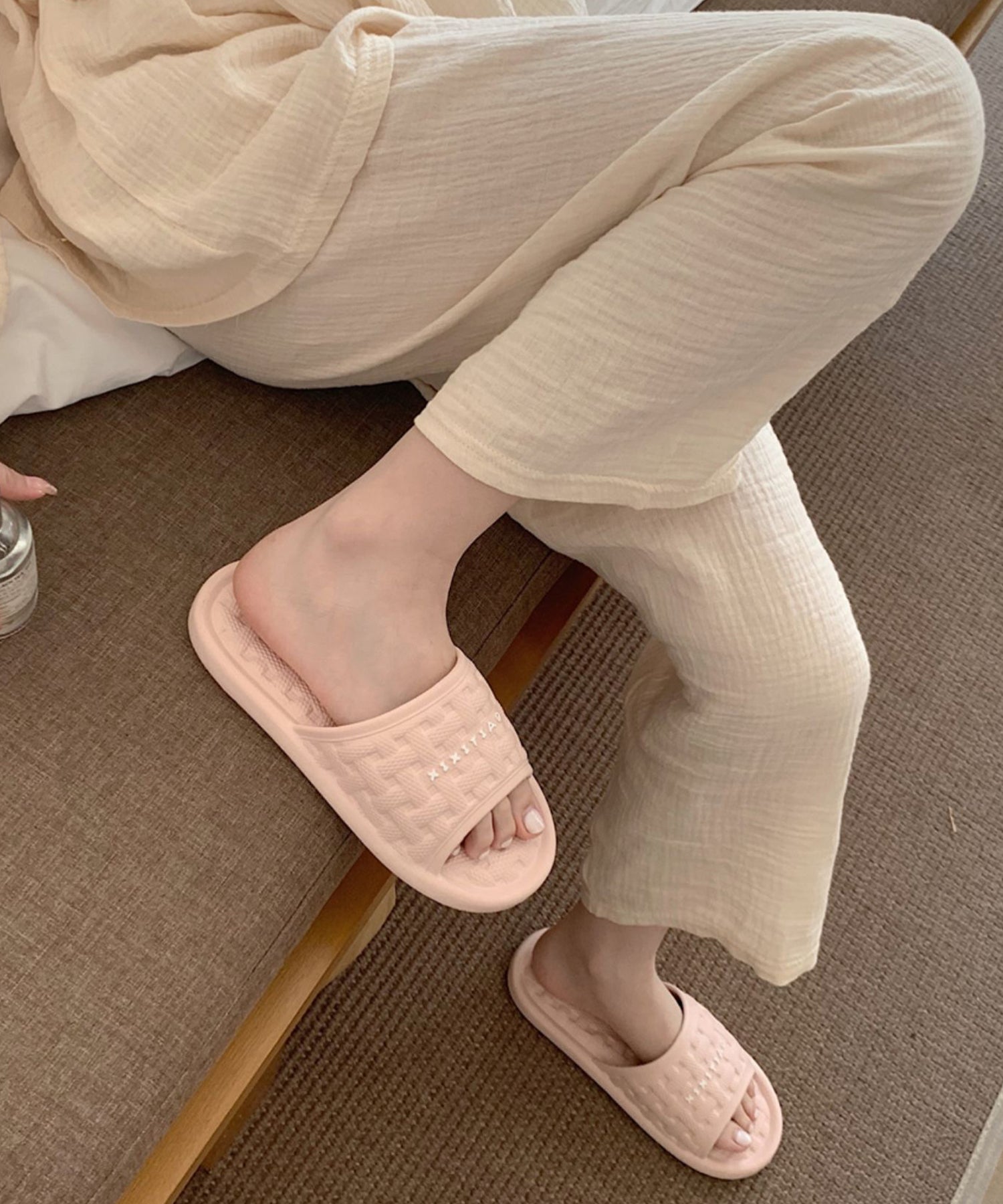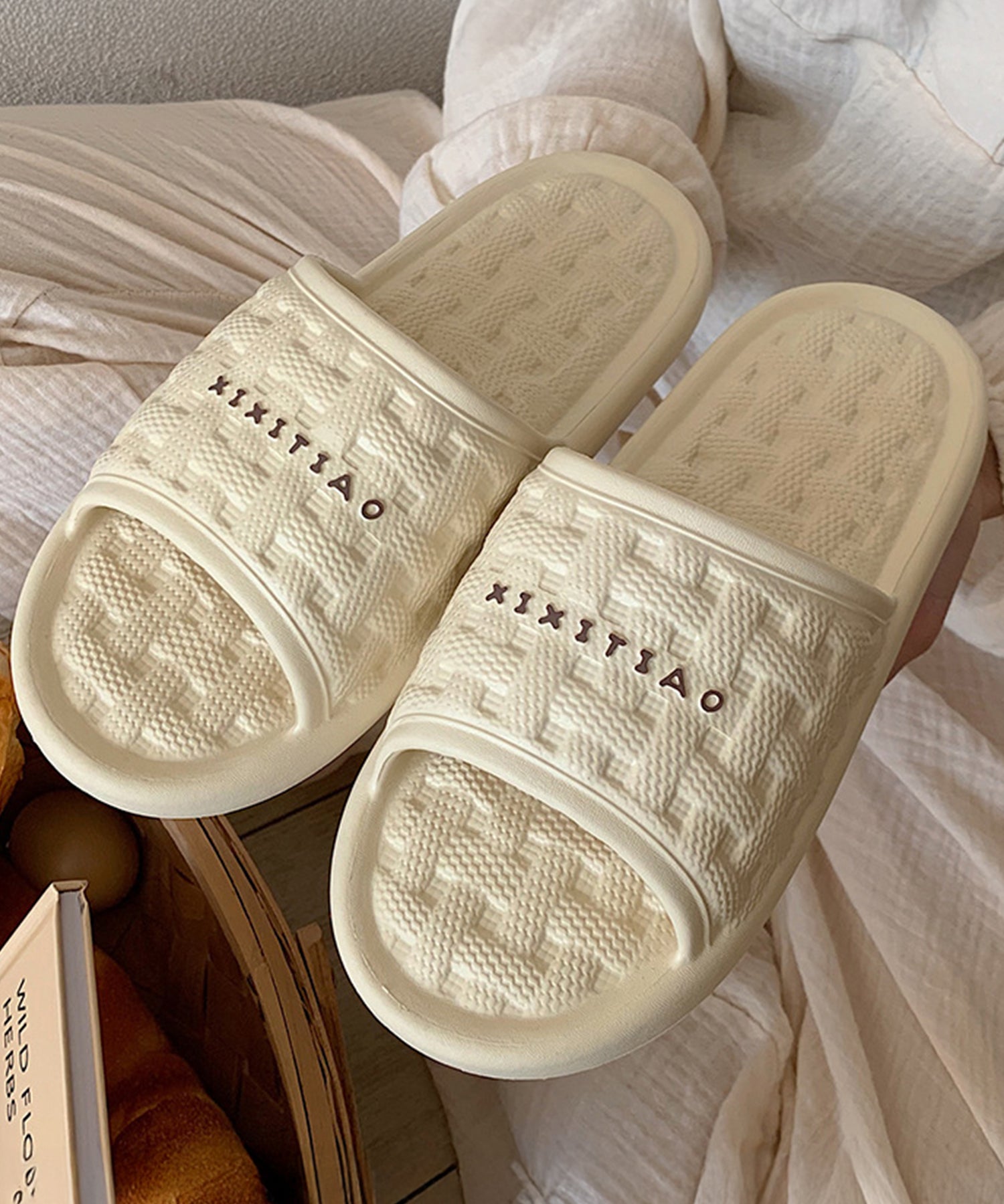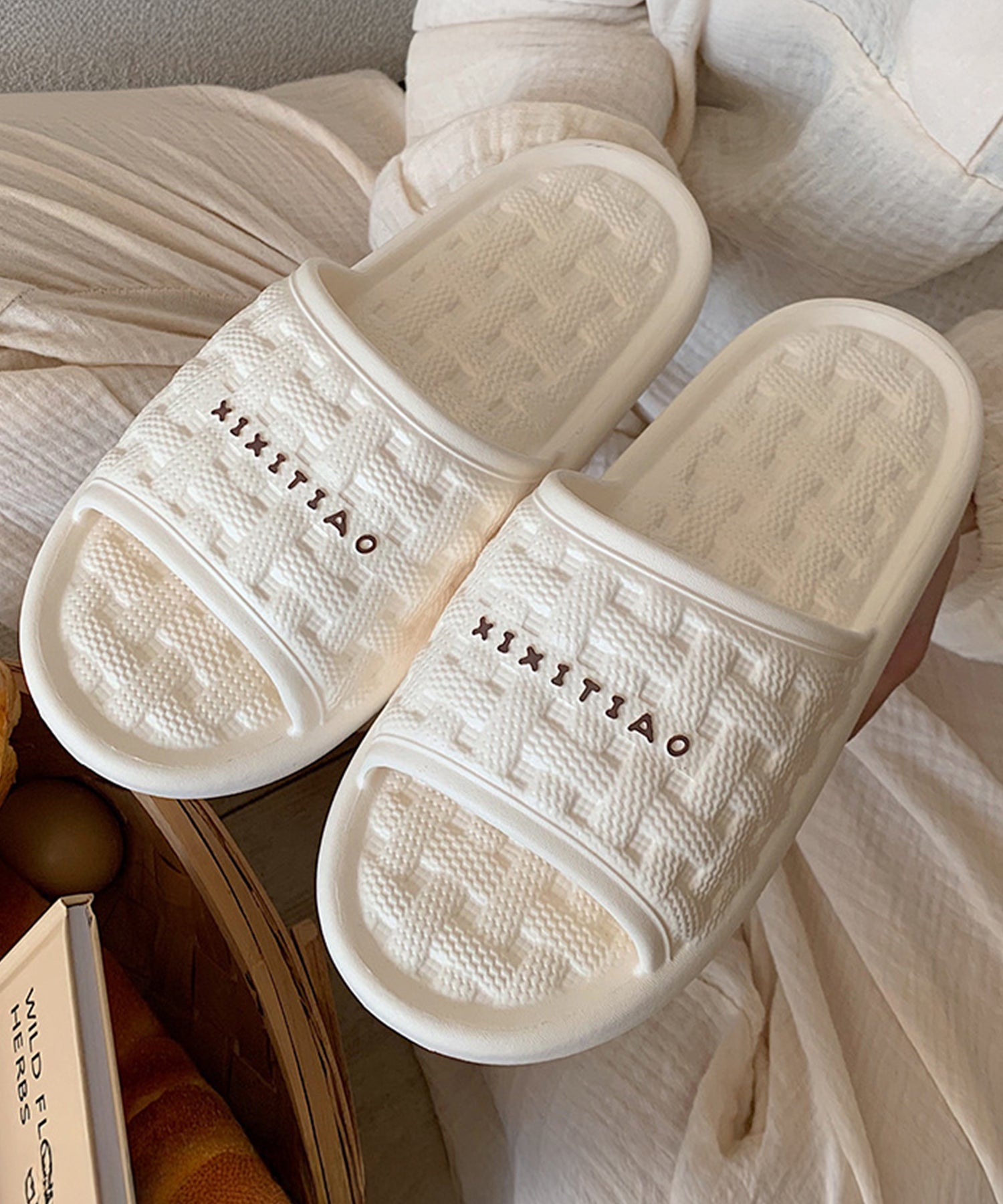 表面感のあるバスケット柄が大人可愛いスリッパサンダル。