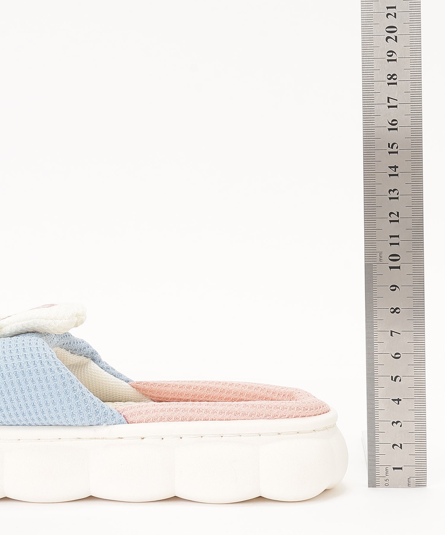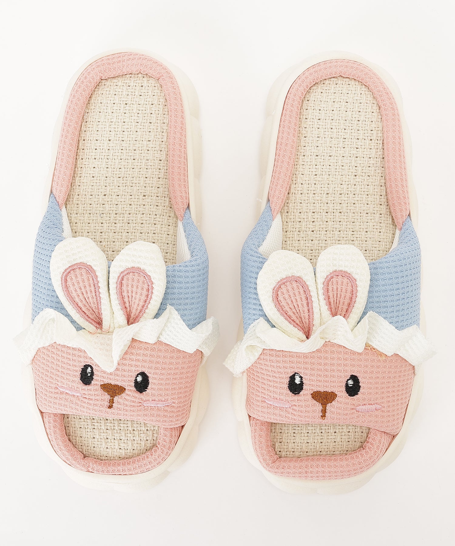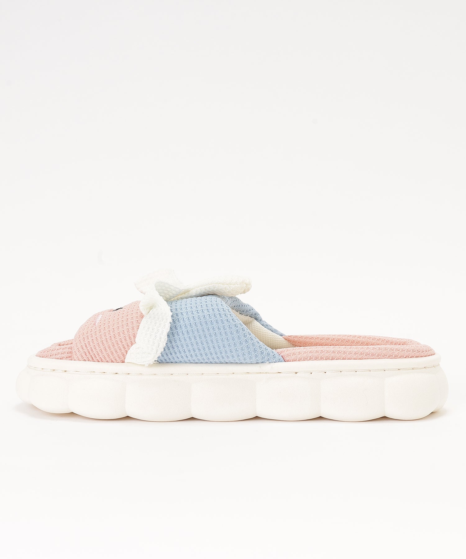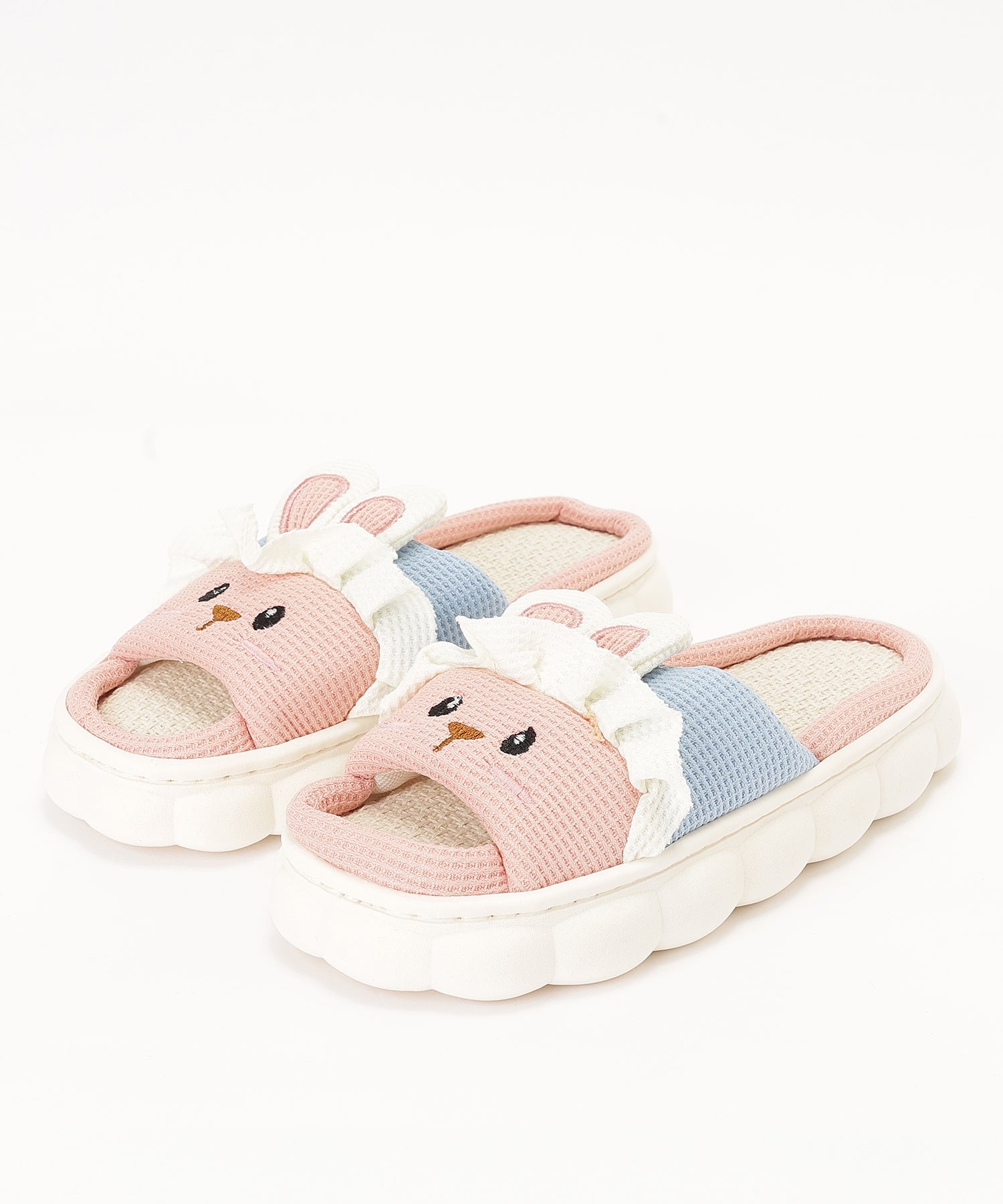 配色 ウサギ ワッフル オープン フラット スリッパ