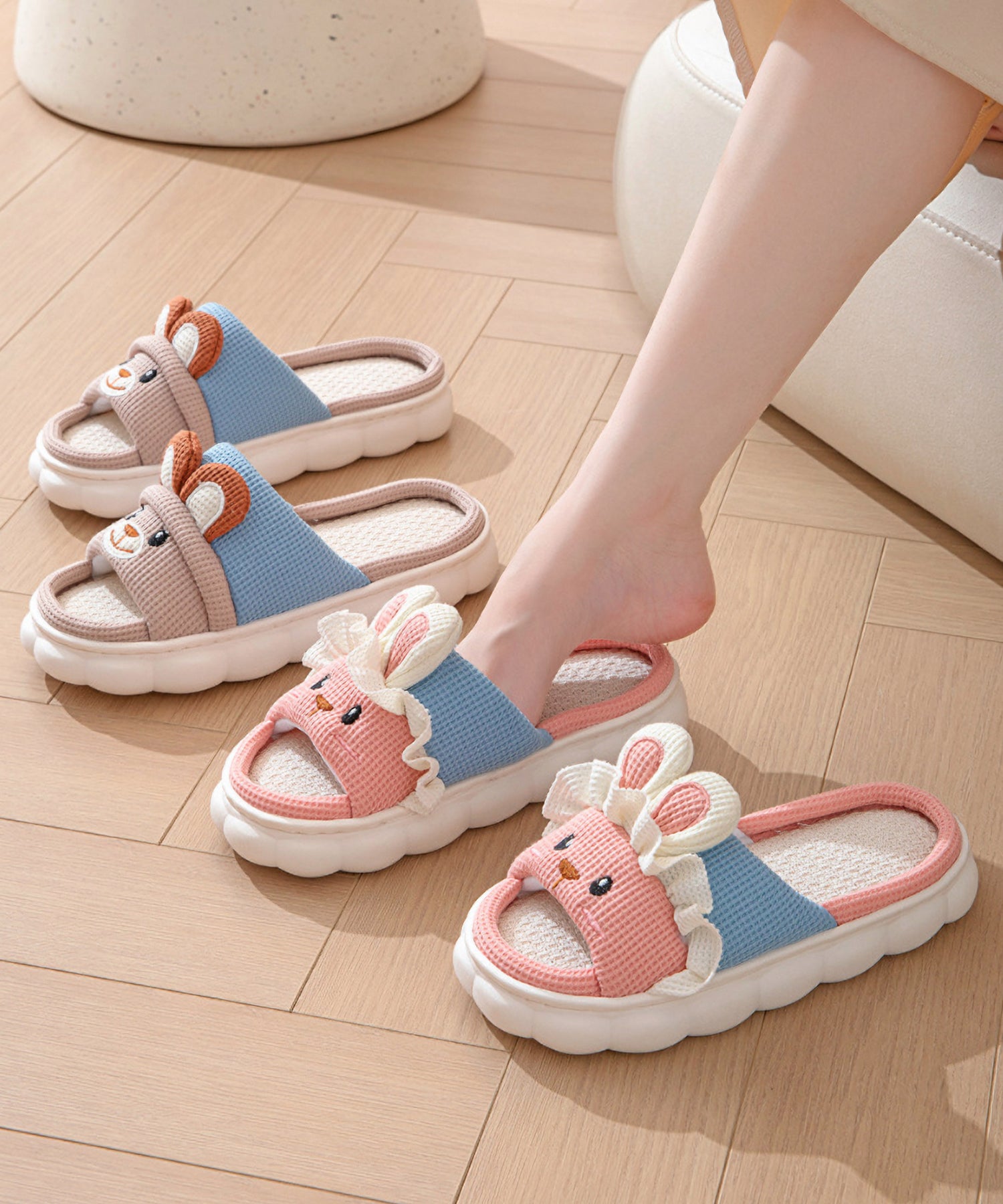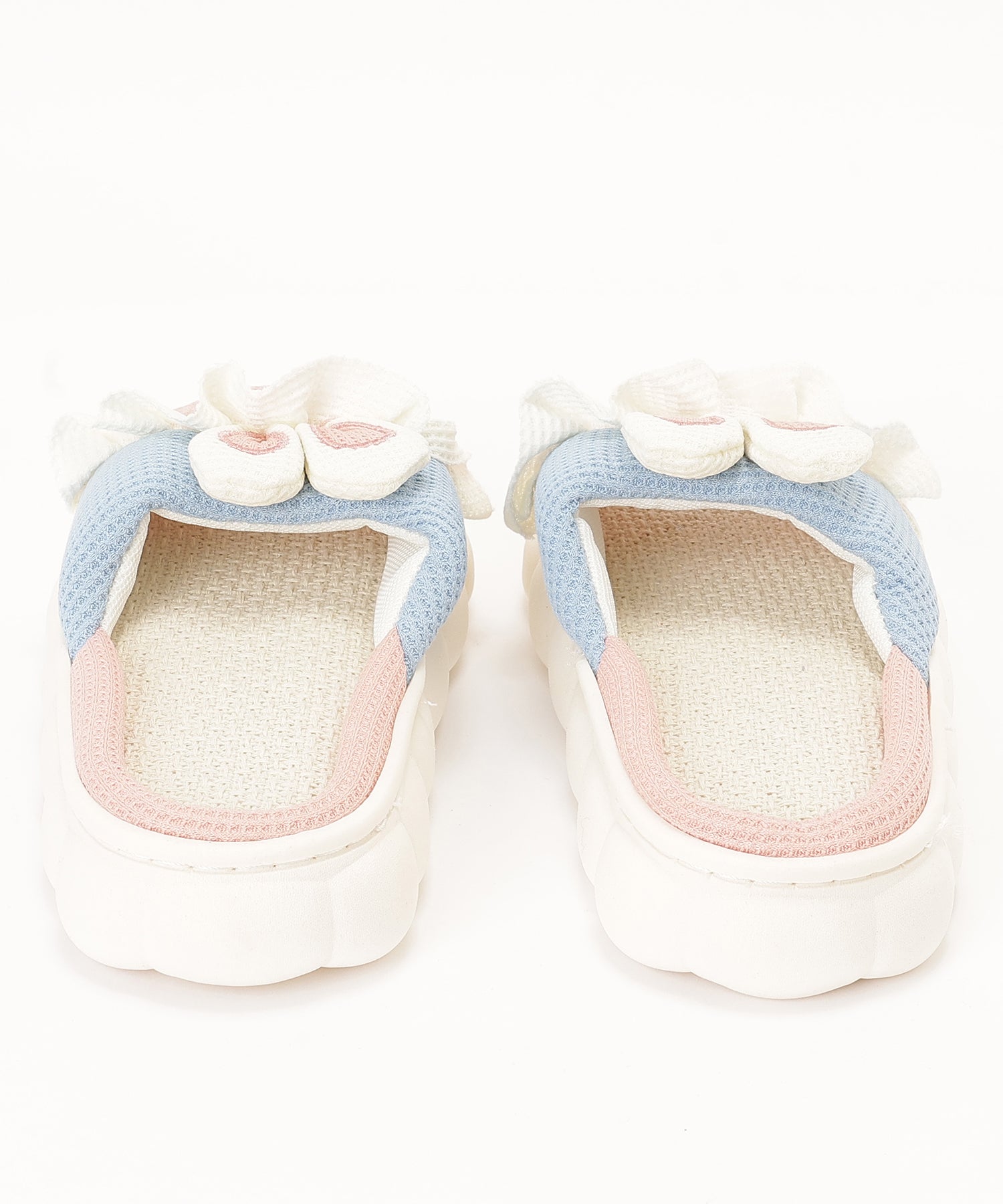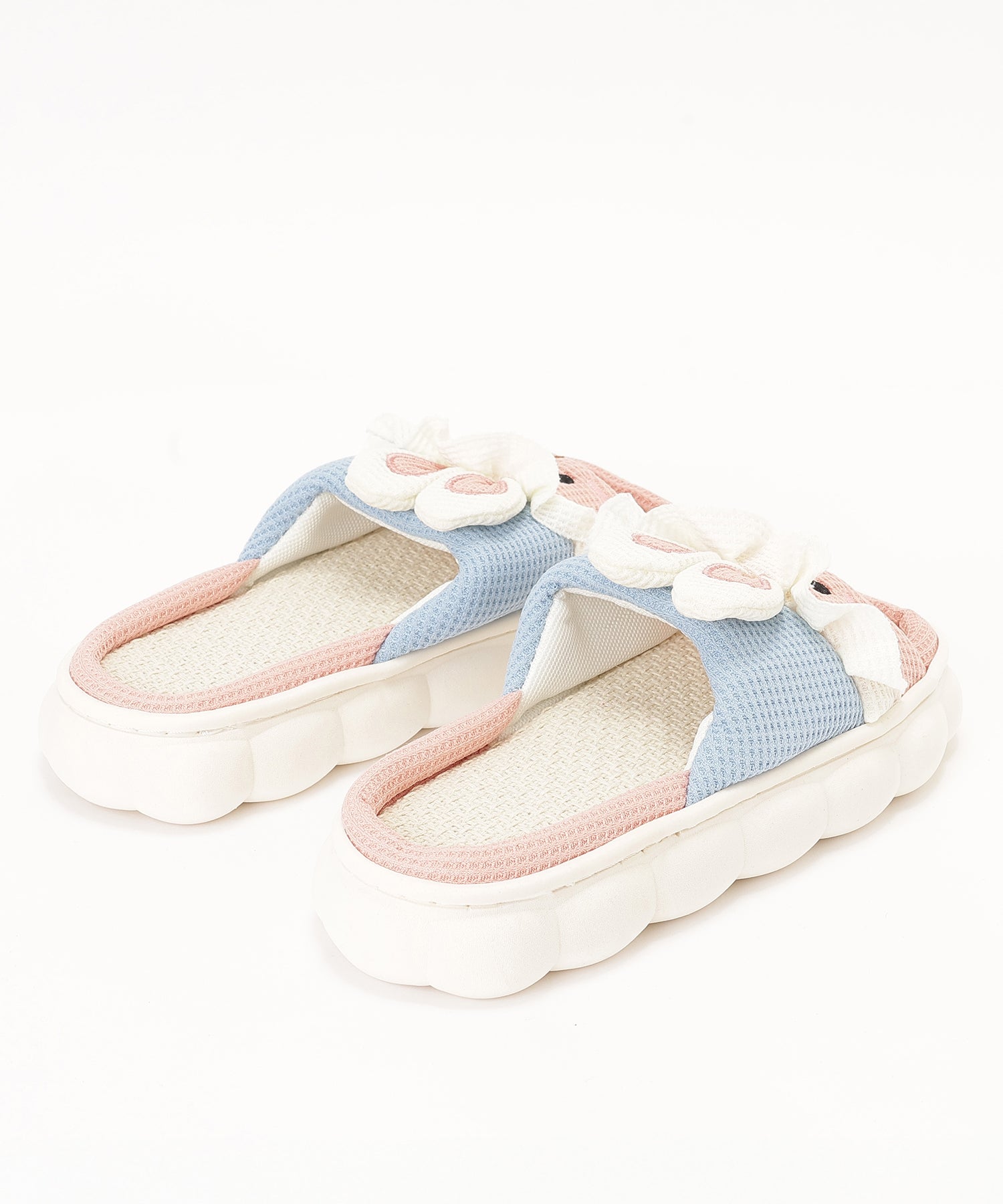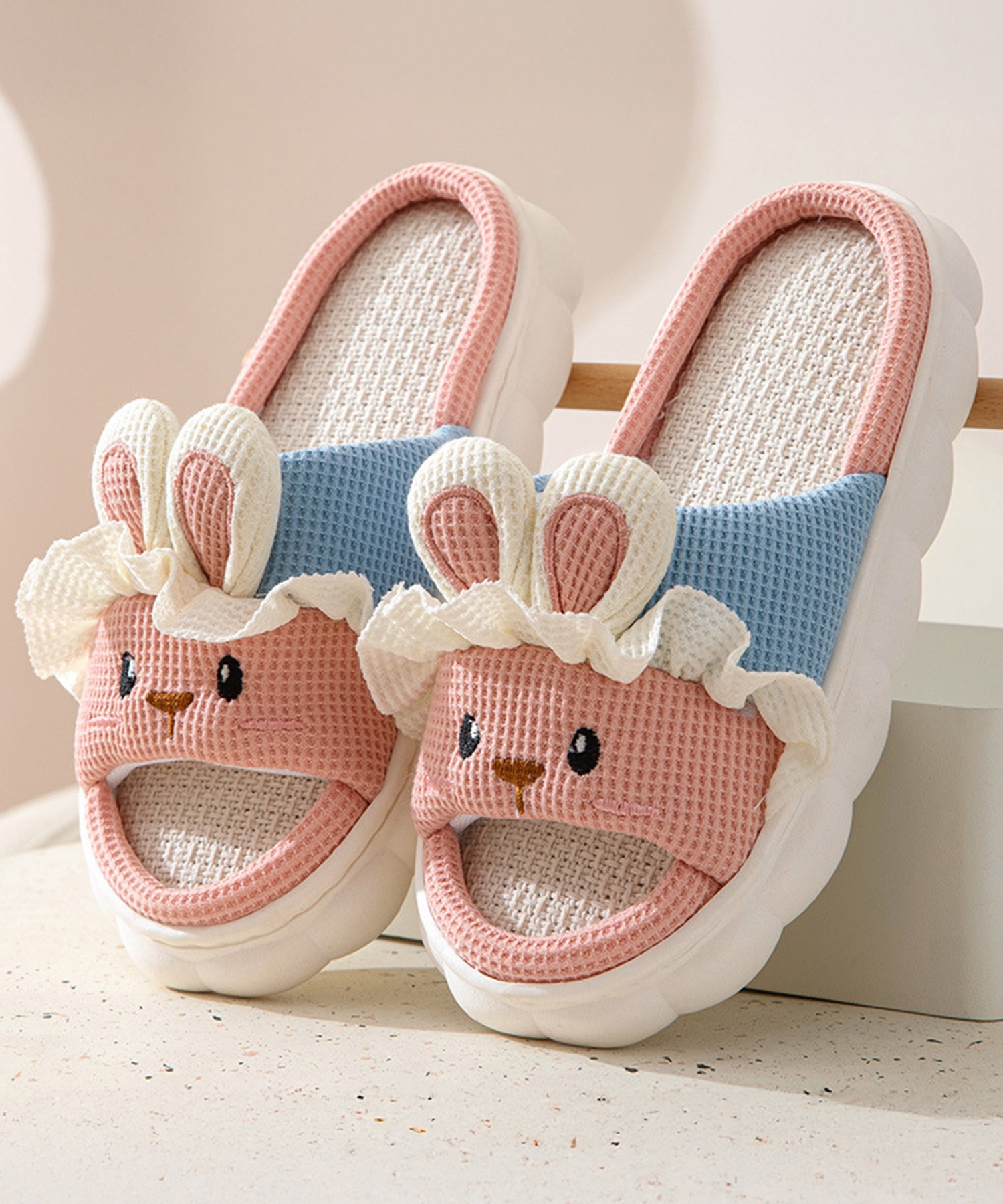 配色 ウサギ ワッフル オープン フラット スリッパ