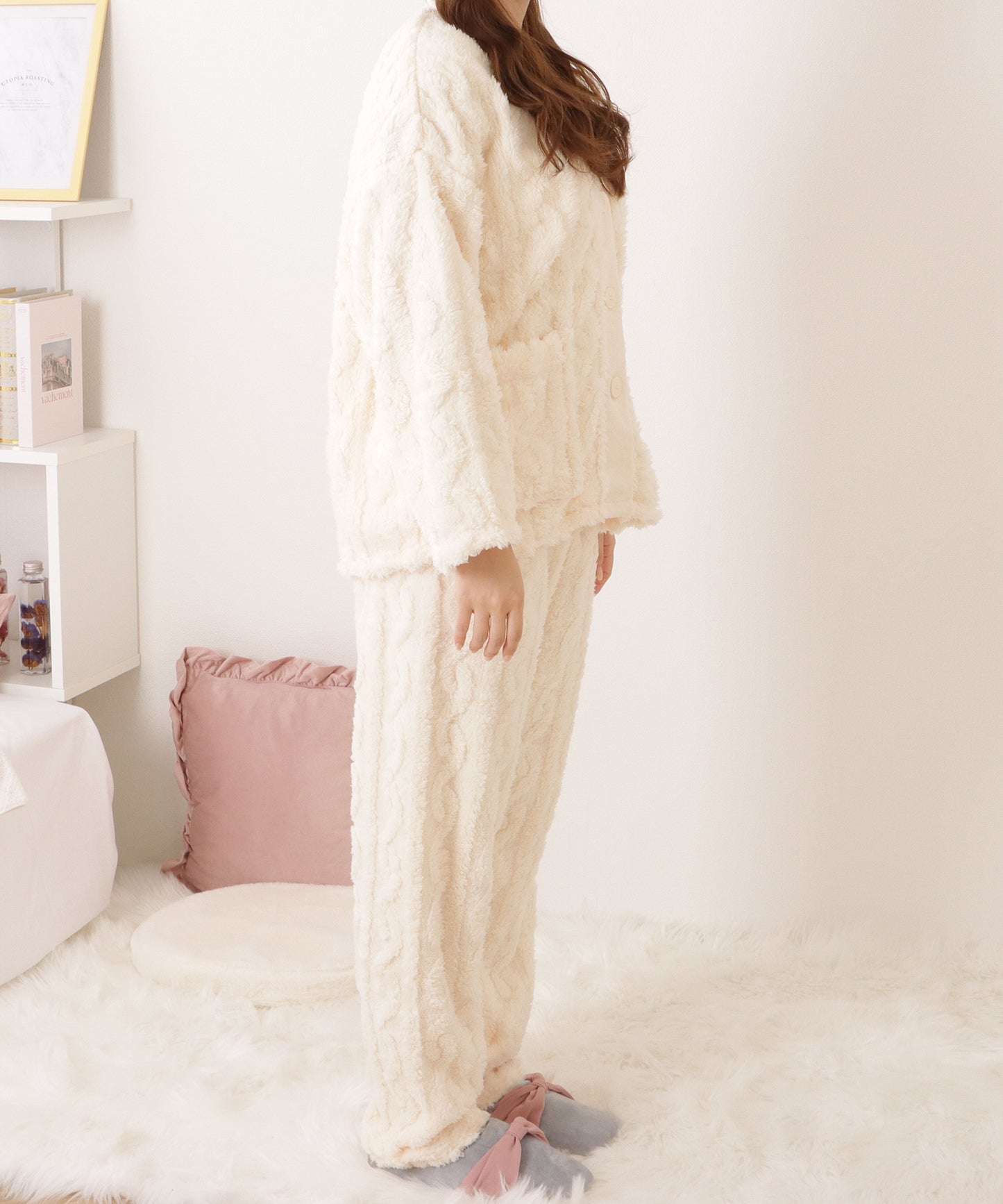 ウォーム感たっぷりのケーブル模様で、おうち時間も楽しくなるような可愛らしいデザインが魅力。