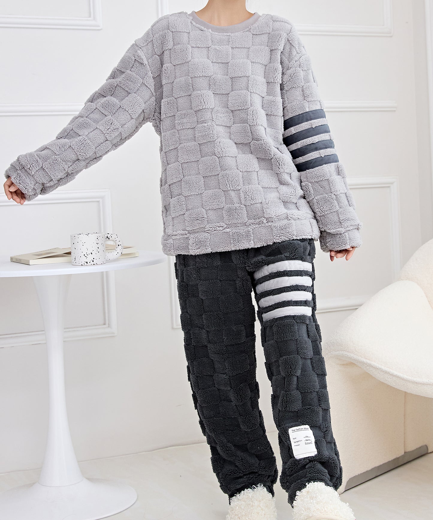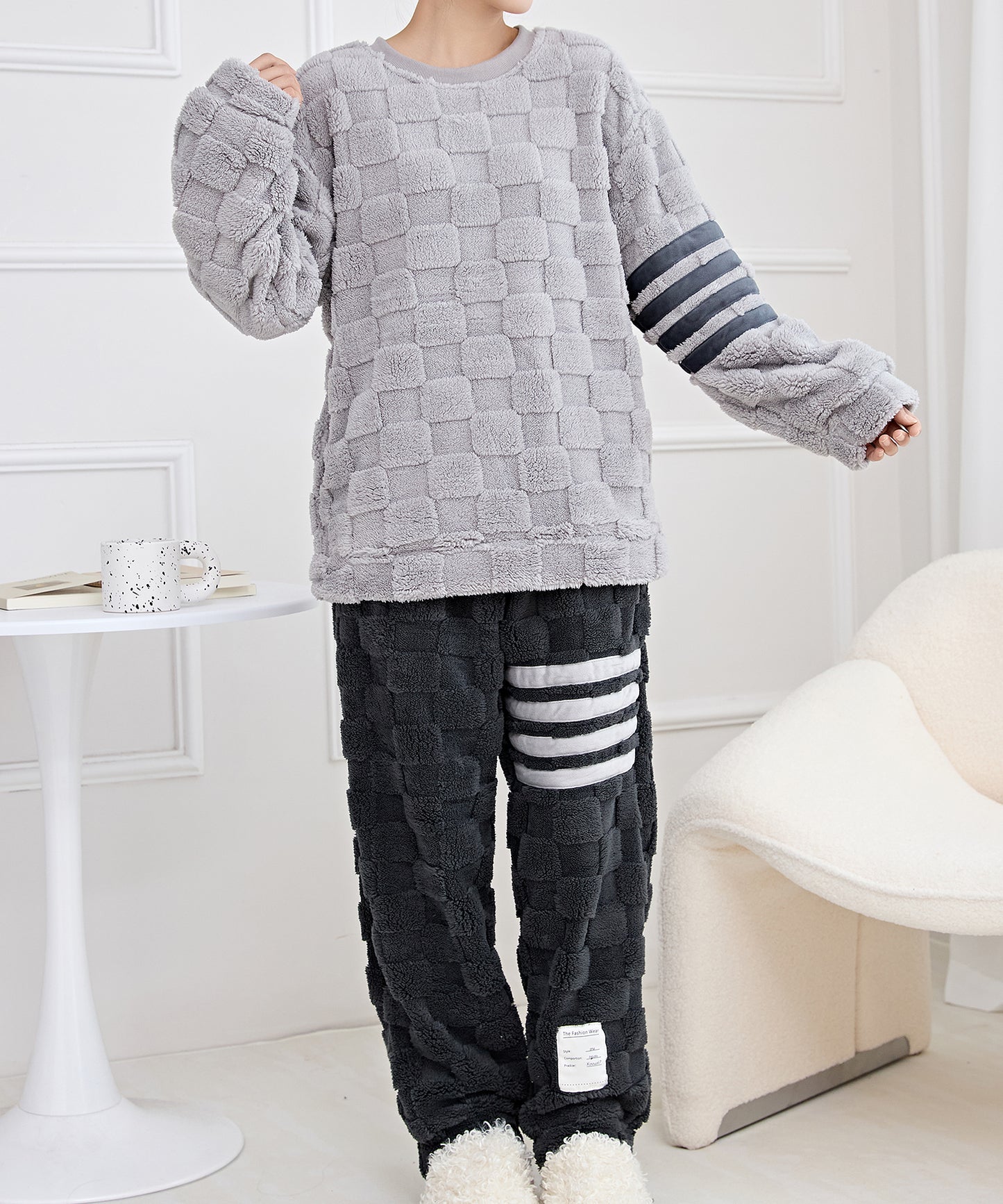 被りタイプなので着脱のしやすさもポイントで、お風呂上がりや休日のリラックスタイムに活躍すること間違いなしのセットアップです。