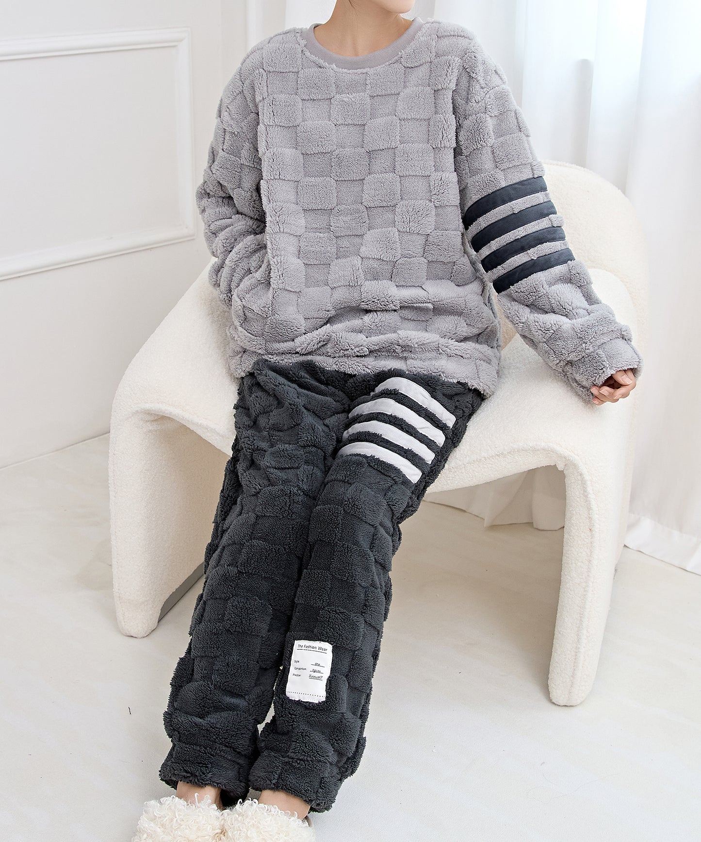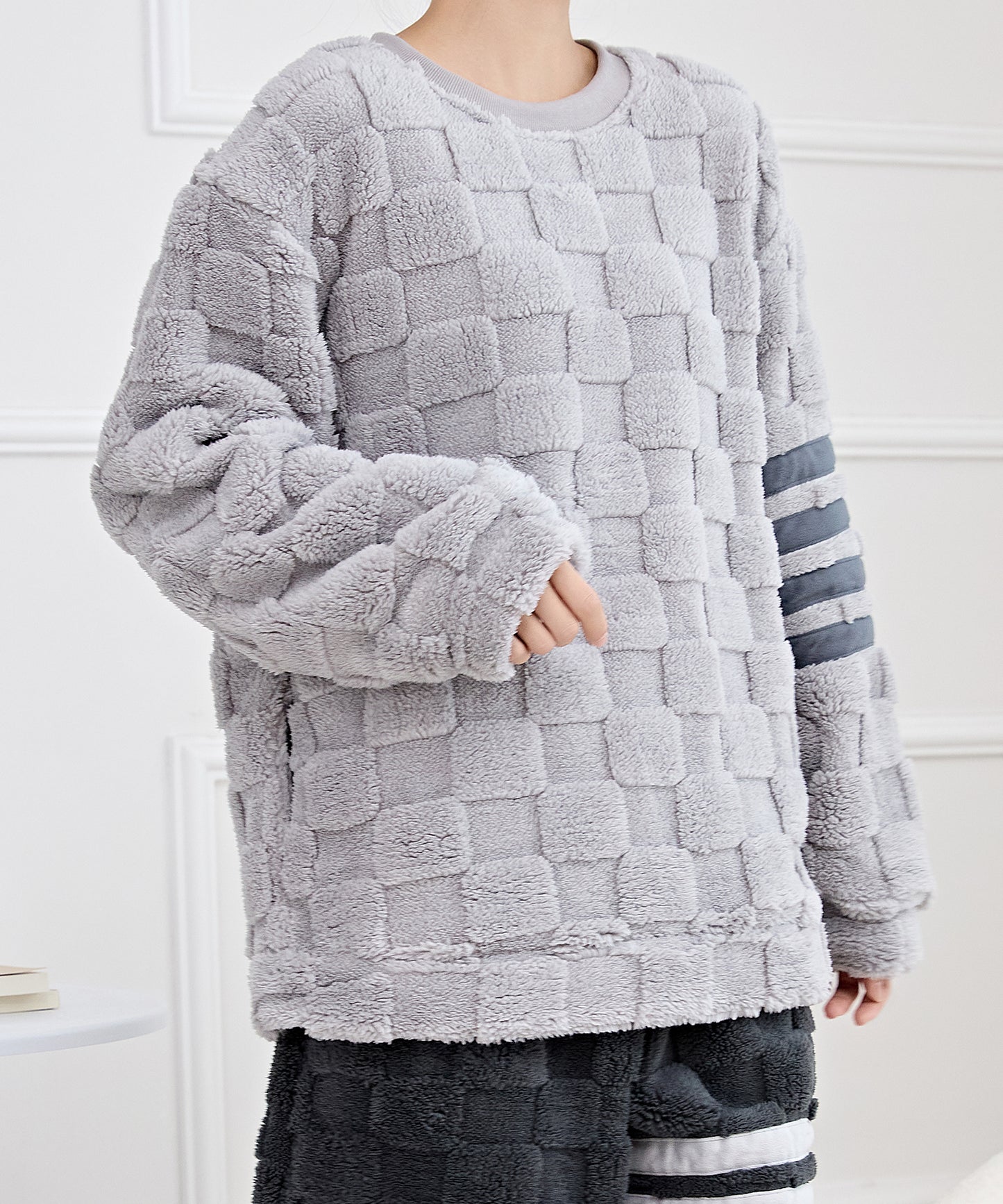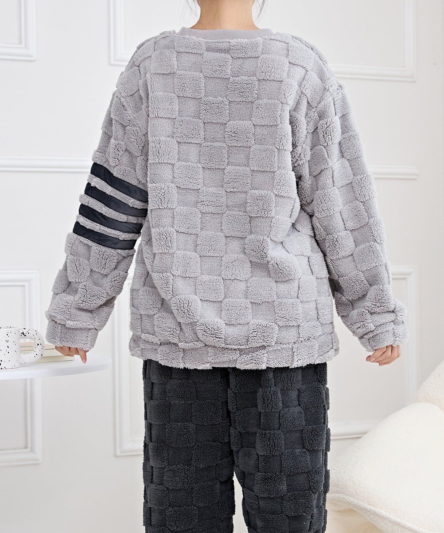 毛足長めのフリース生地でおつくりした、まるで毛布に包まれているかのような心地良さを叶えてくれるルームウエア。