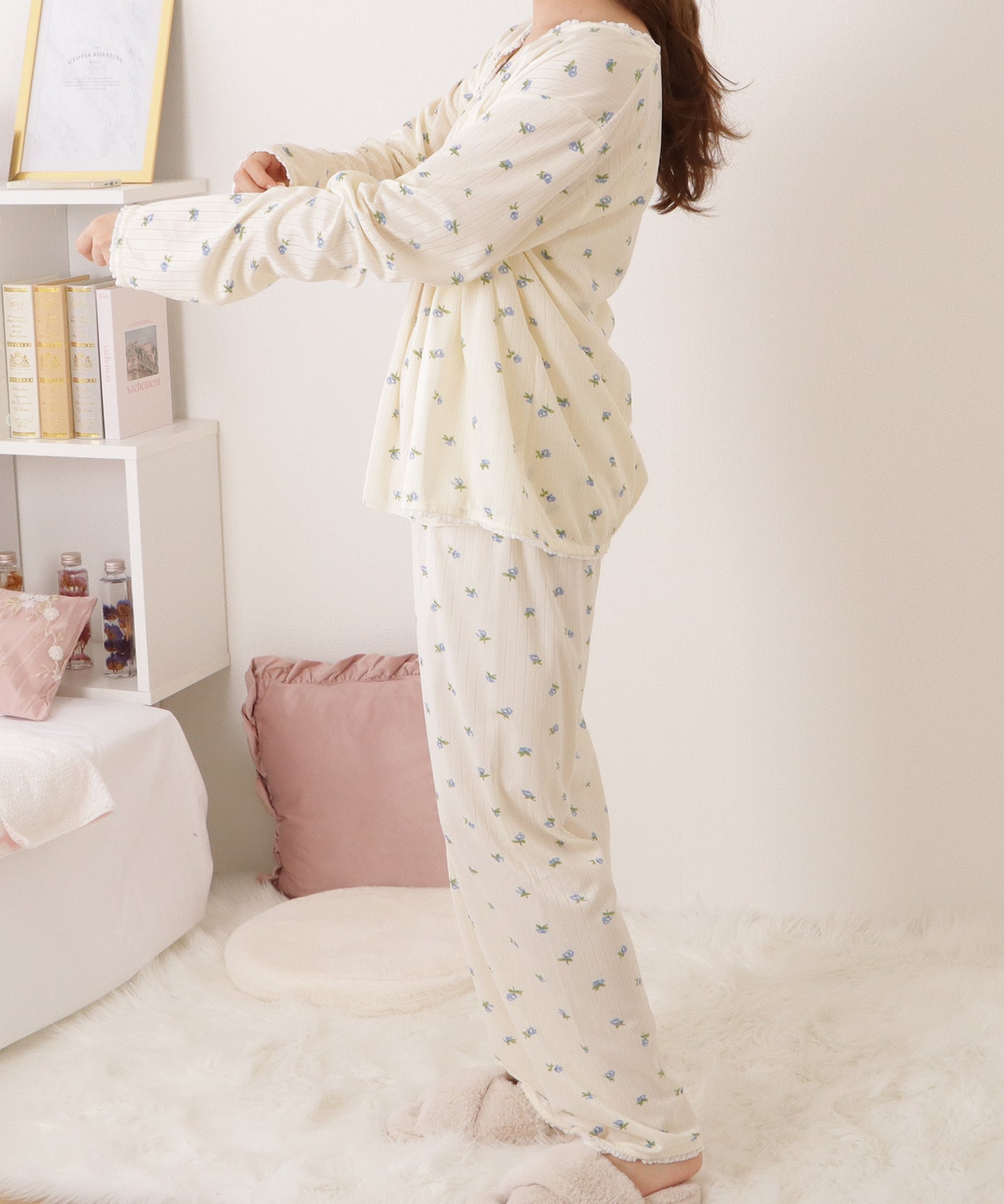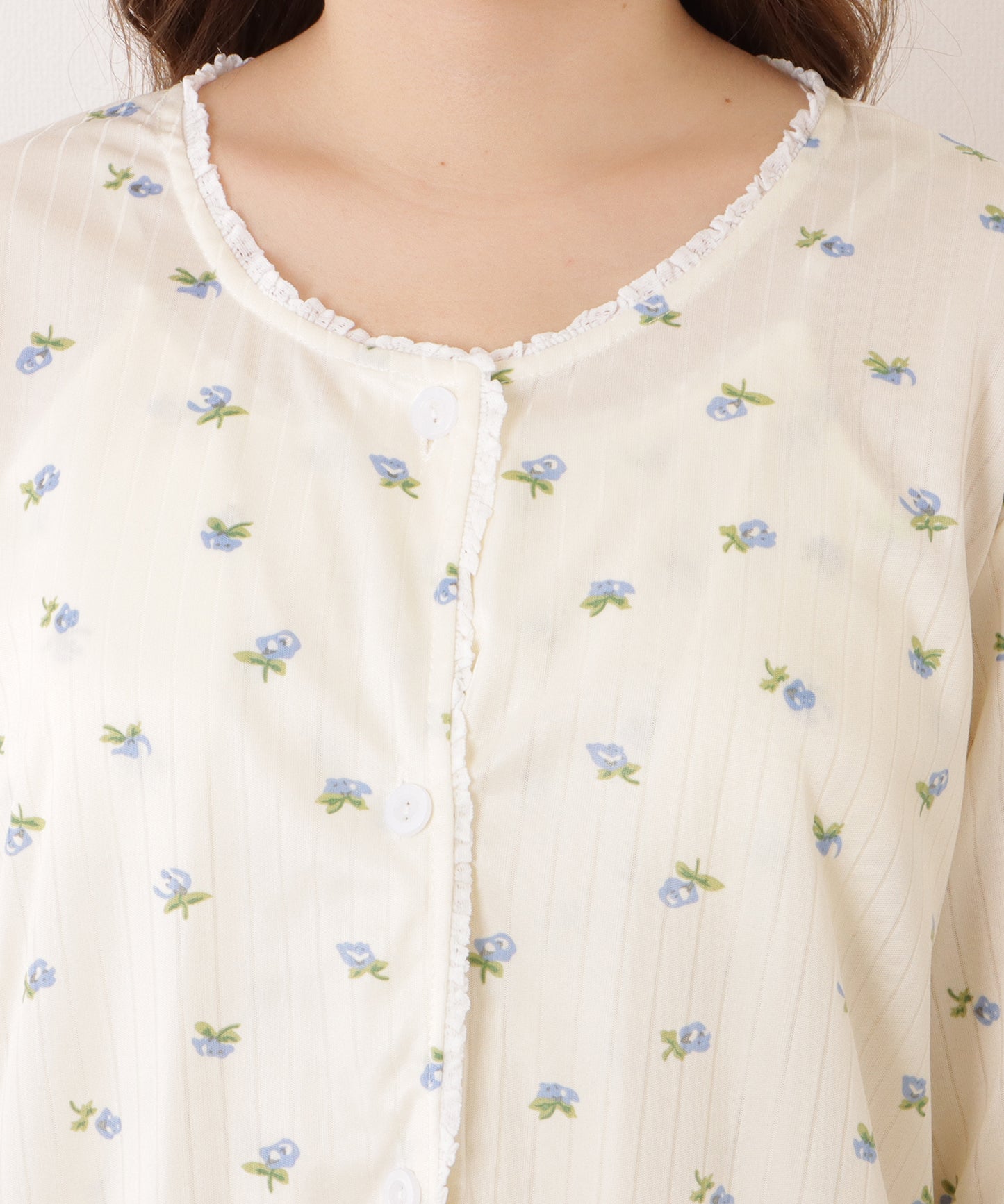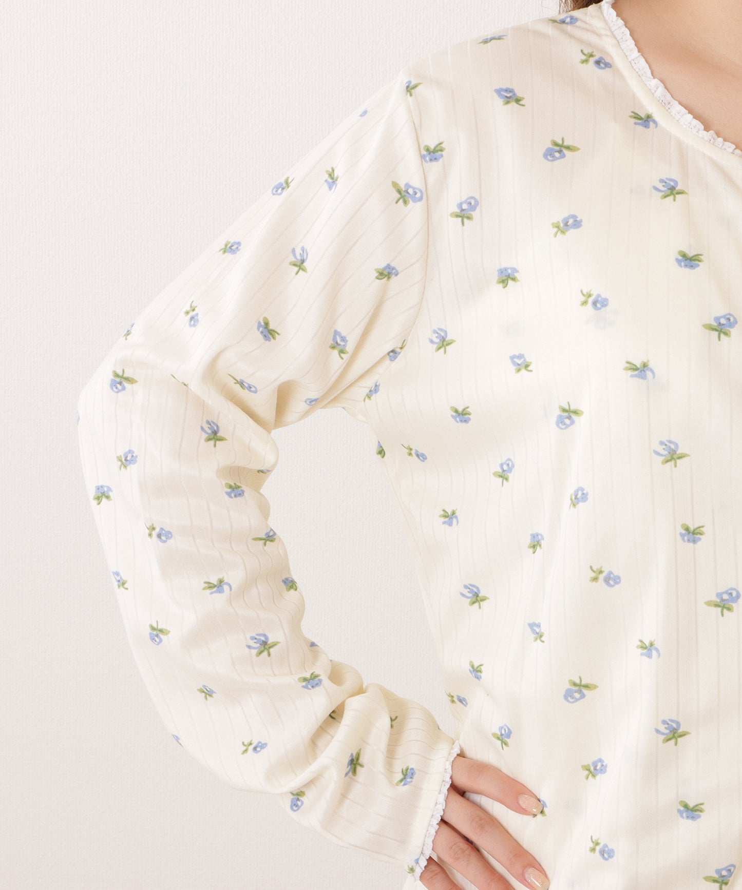 小花柄×ストライプの絶妙なバランス感がおしゃれなルームウエア。