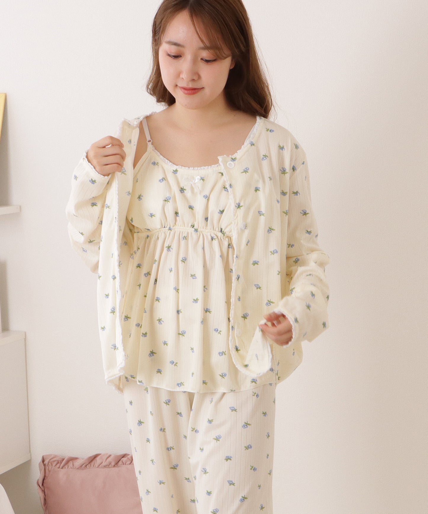 【3点セット】小花柄キャミソール×パンツ×カーディガンルームセット