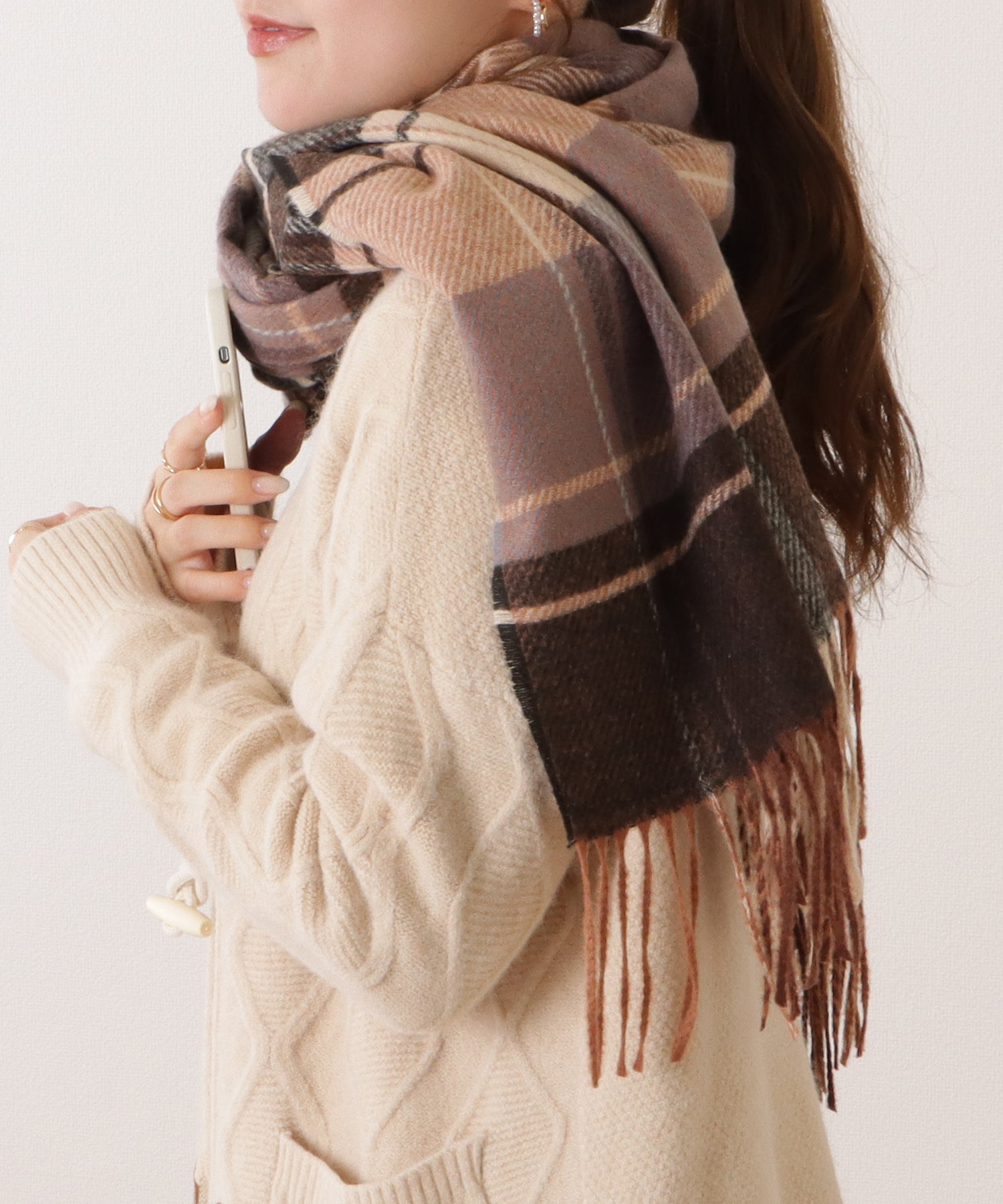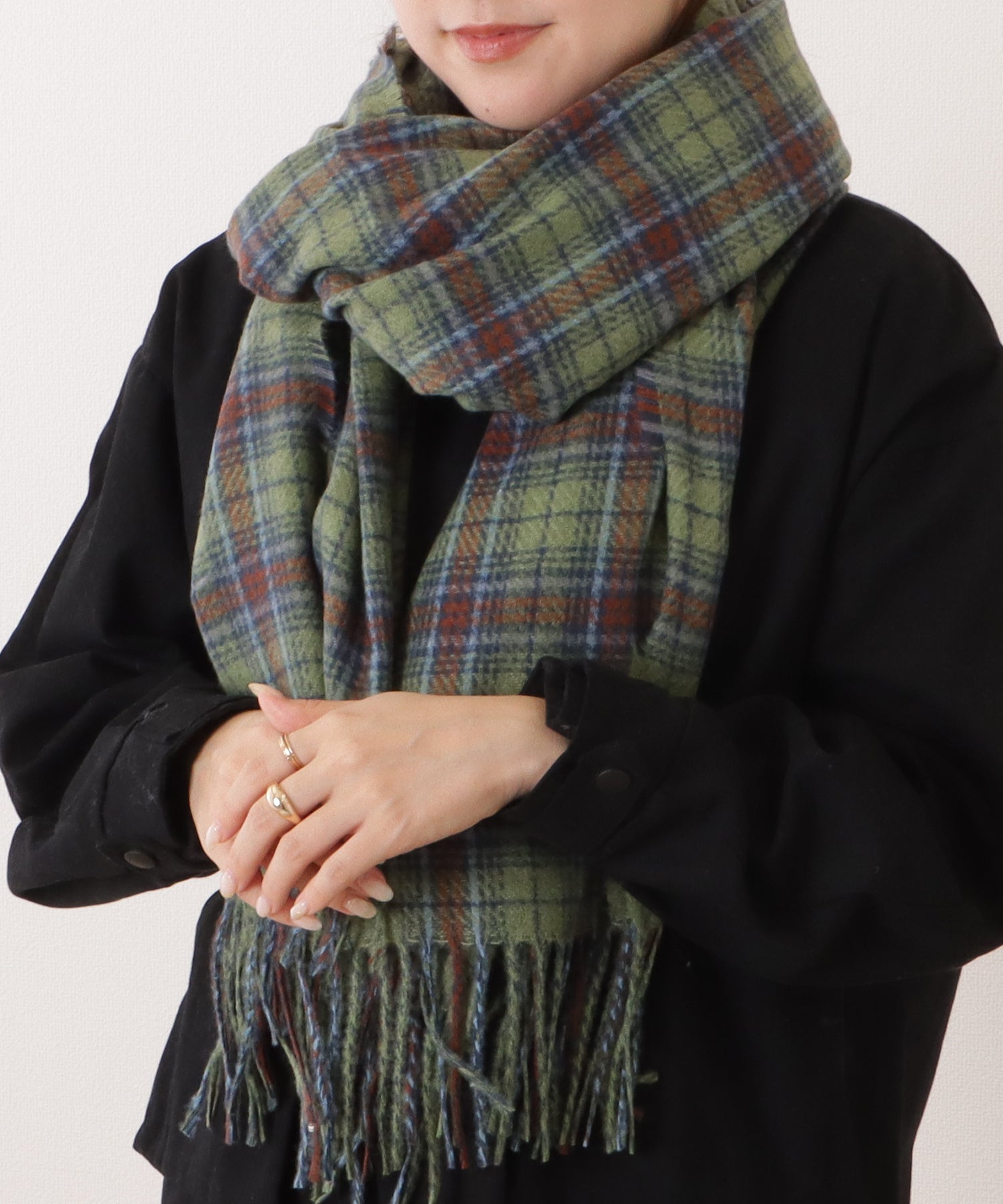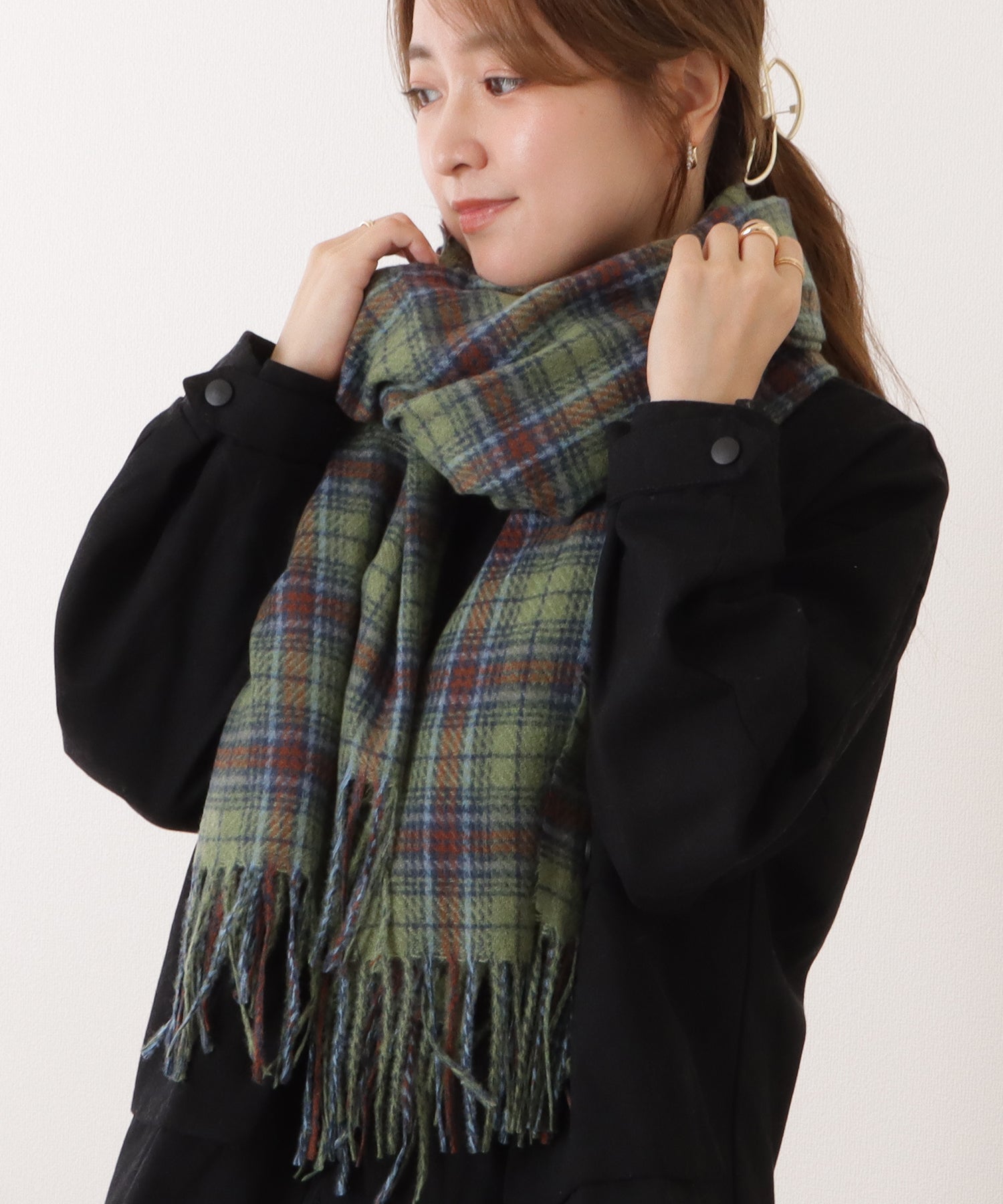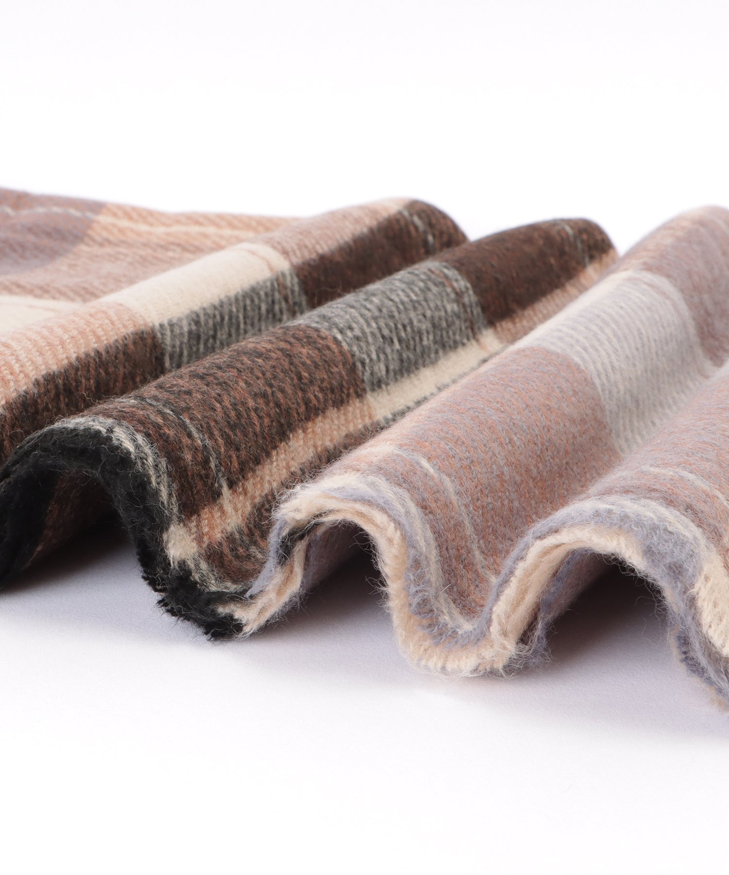 コーディネートに馴染む、やわらかな配色のチェック柄マフラー。