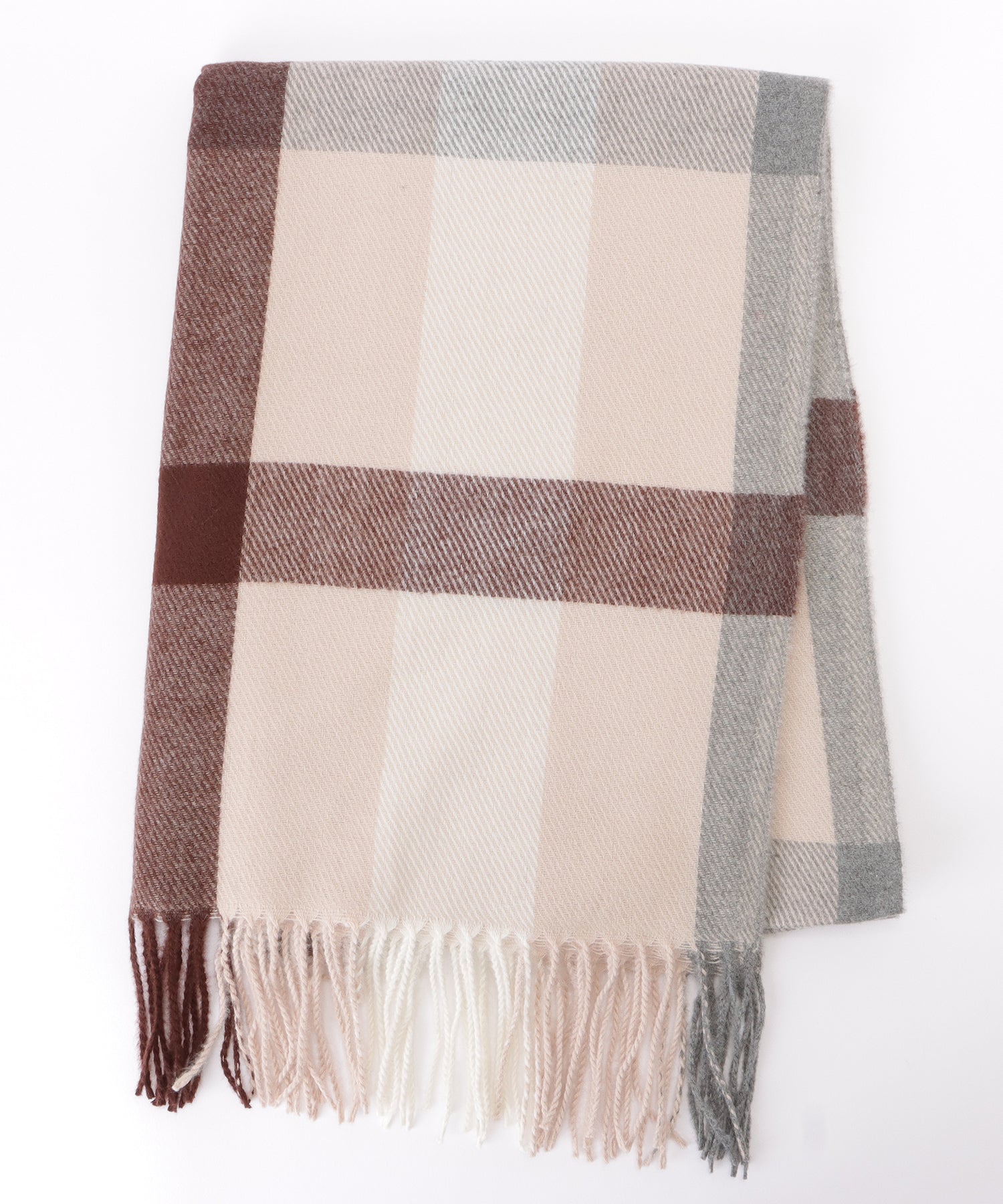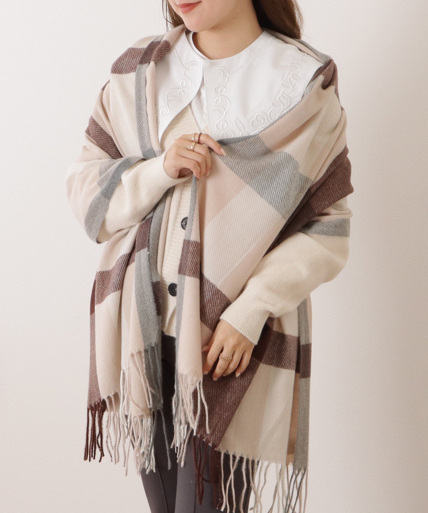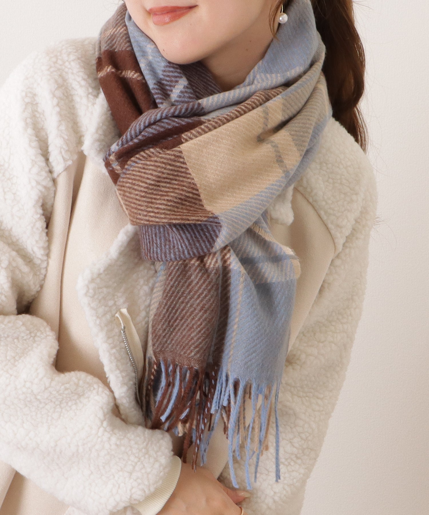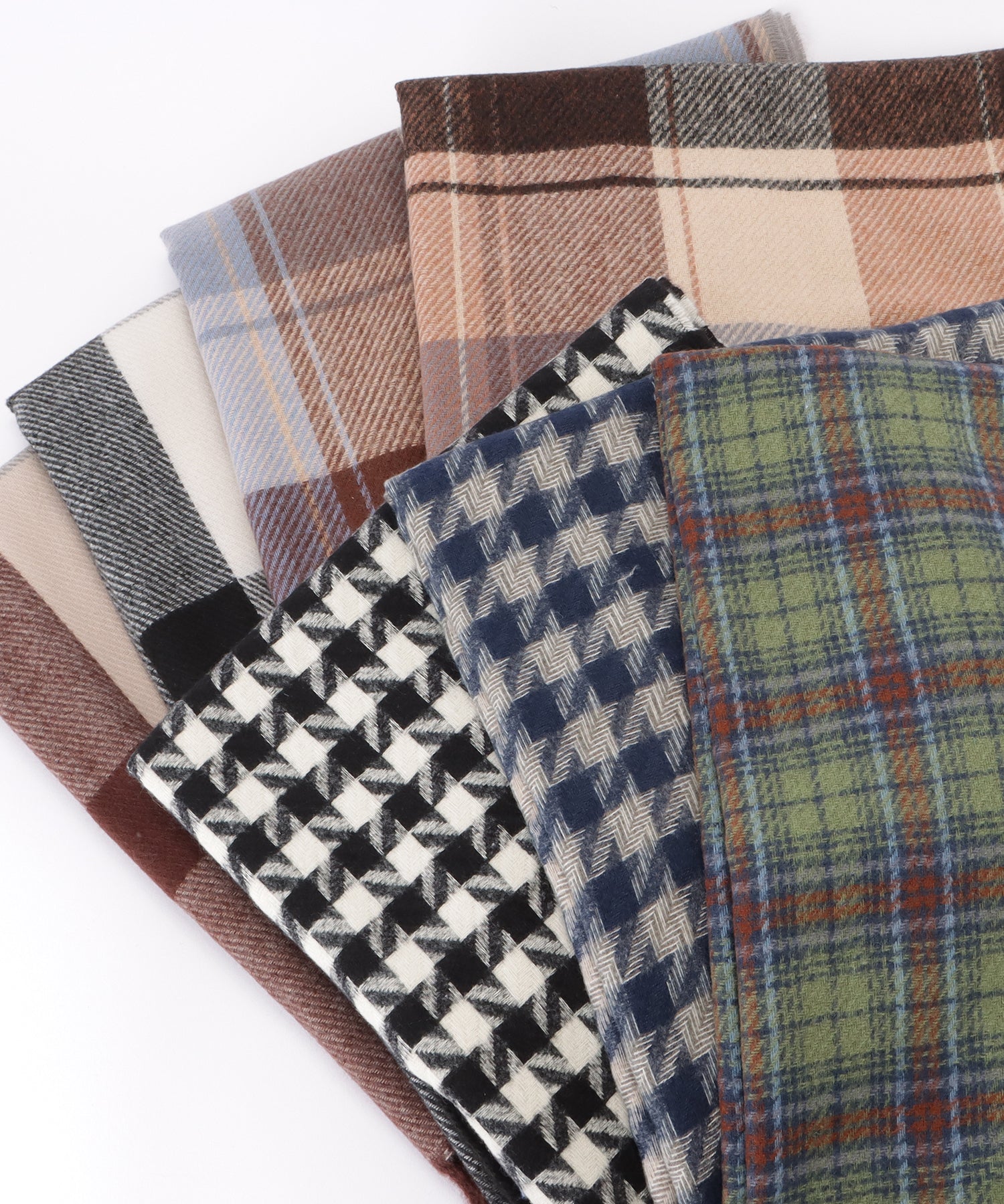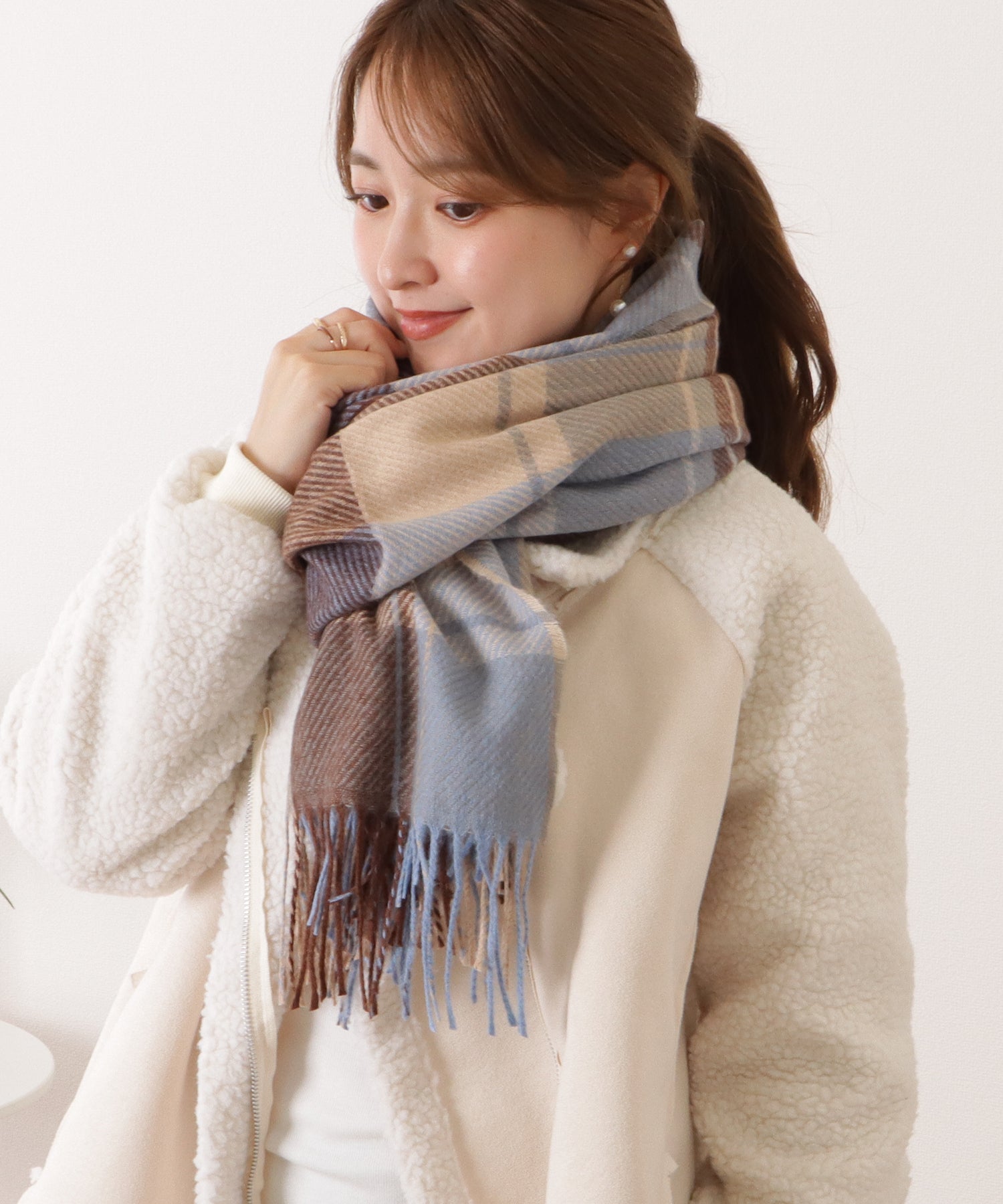 コーディネートに馴染む、やわらかな配色のチェック柄マフラー。