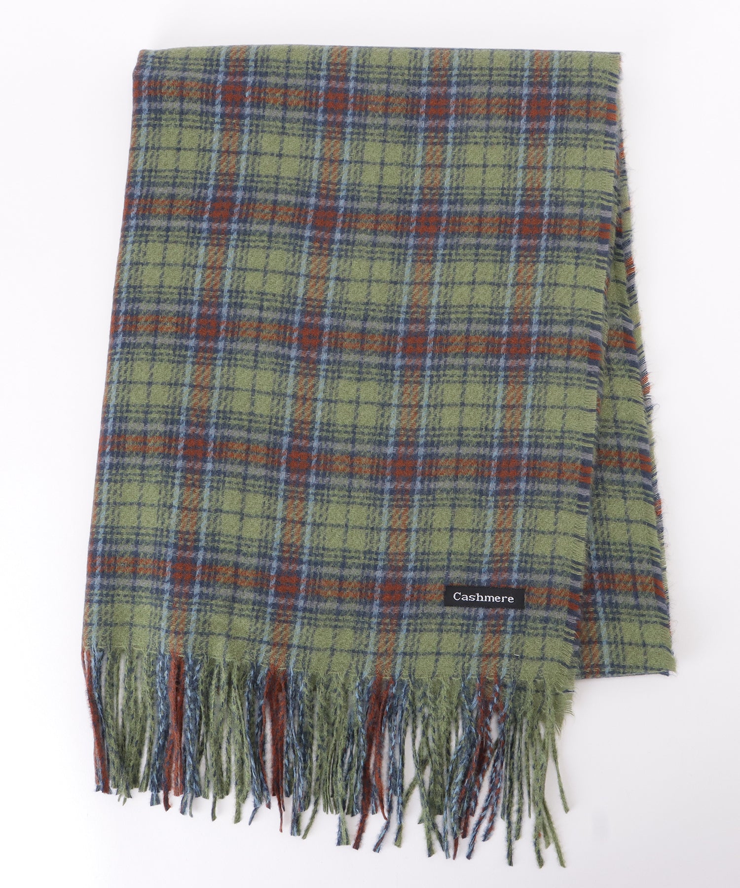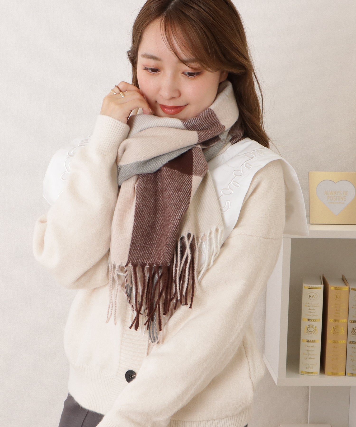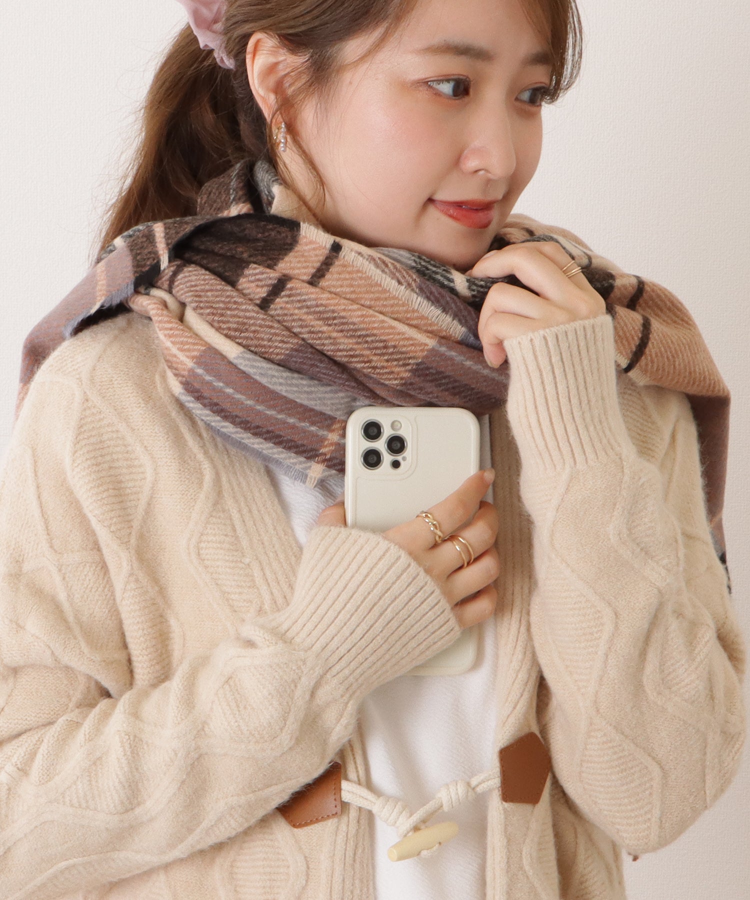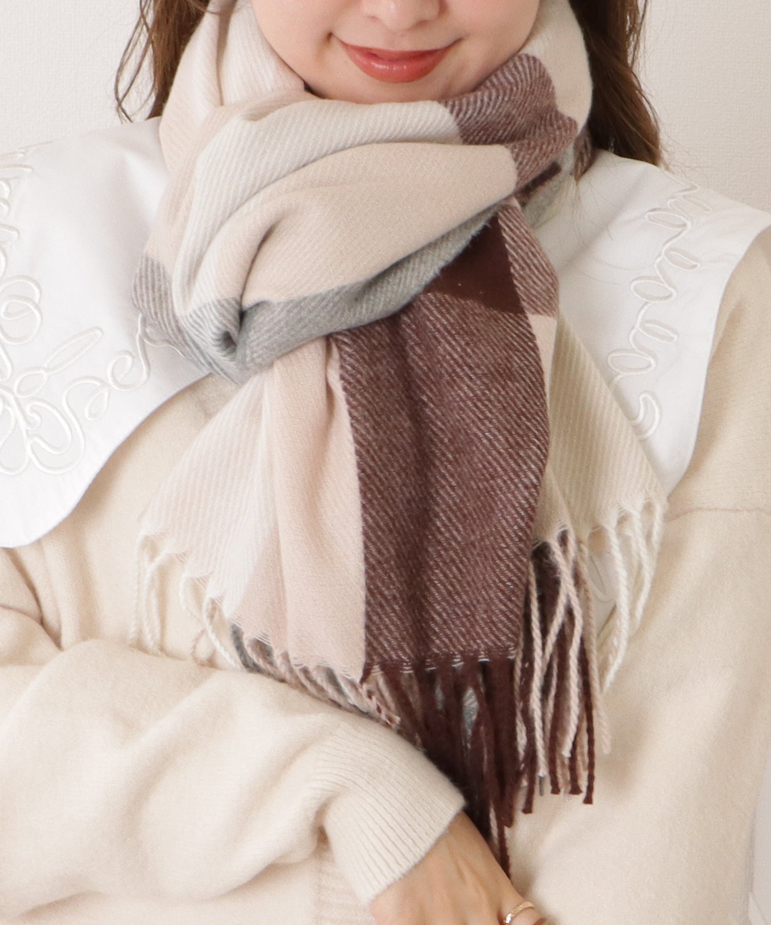 コーディネートに馴染む、やわらかな配色のチェック柄マフラー。