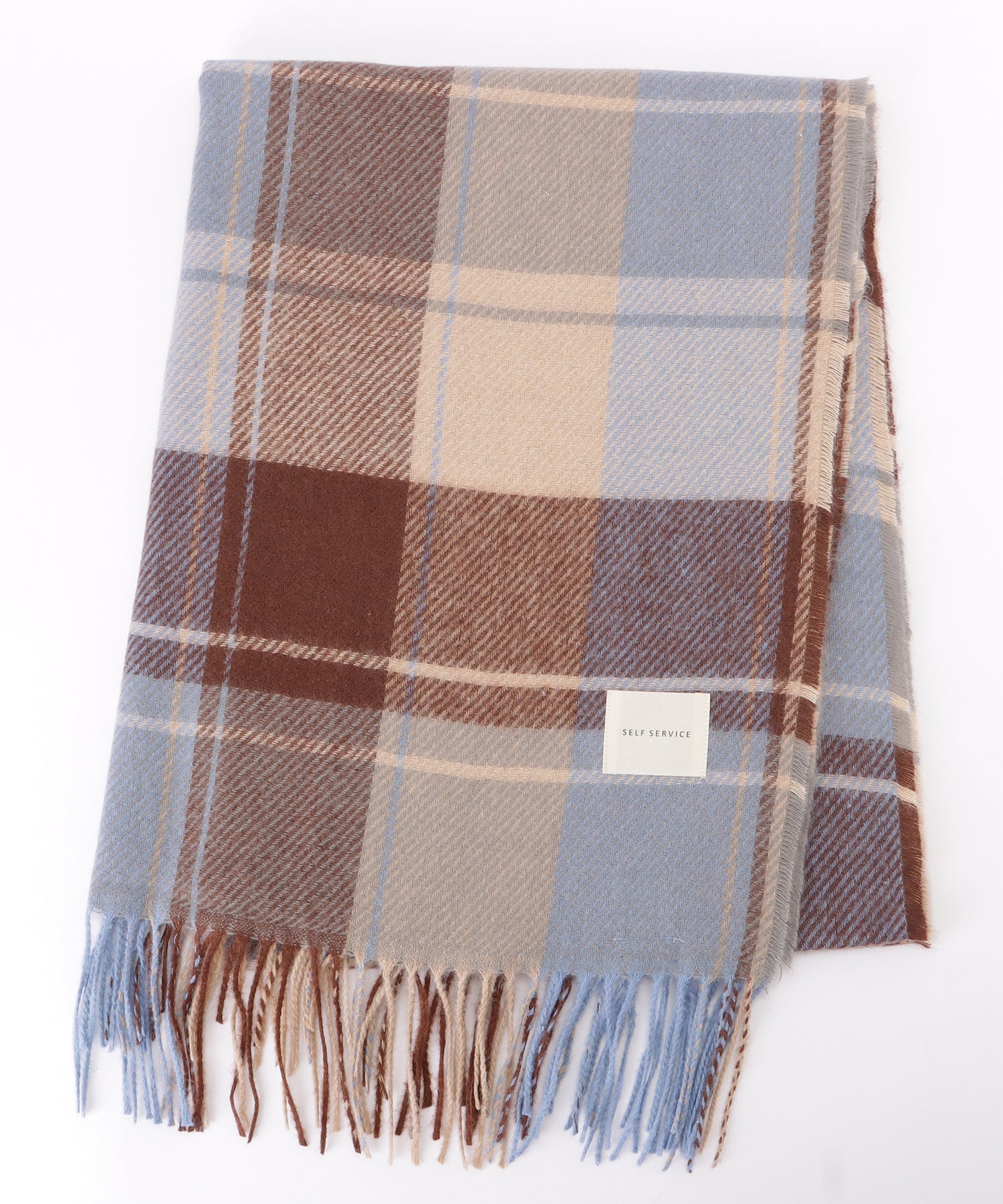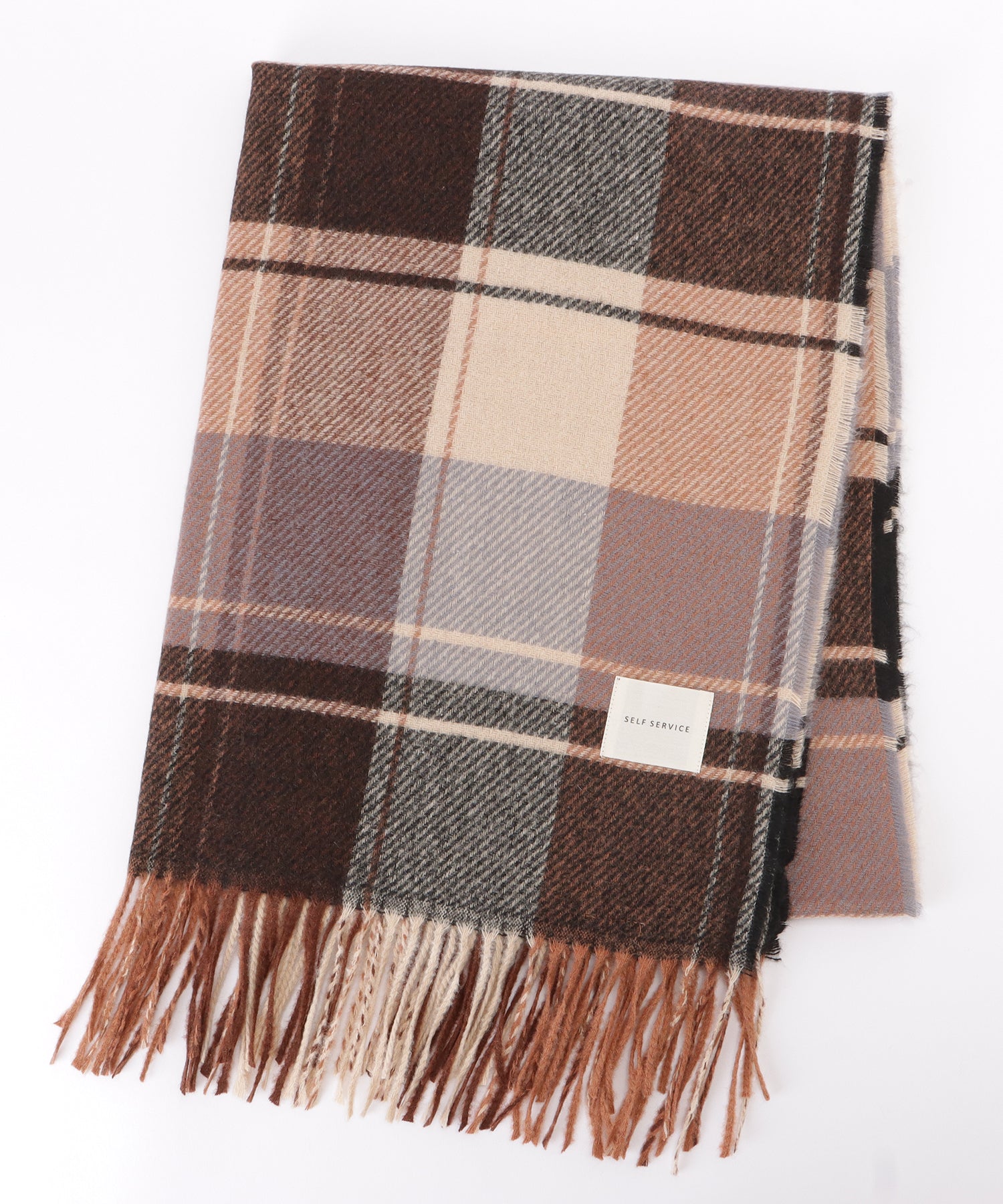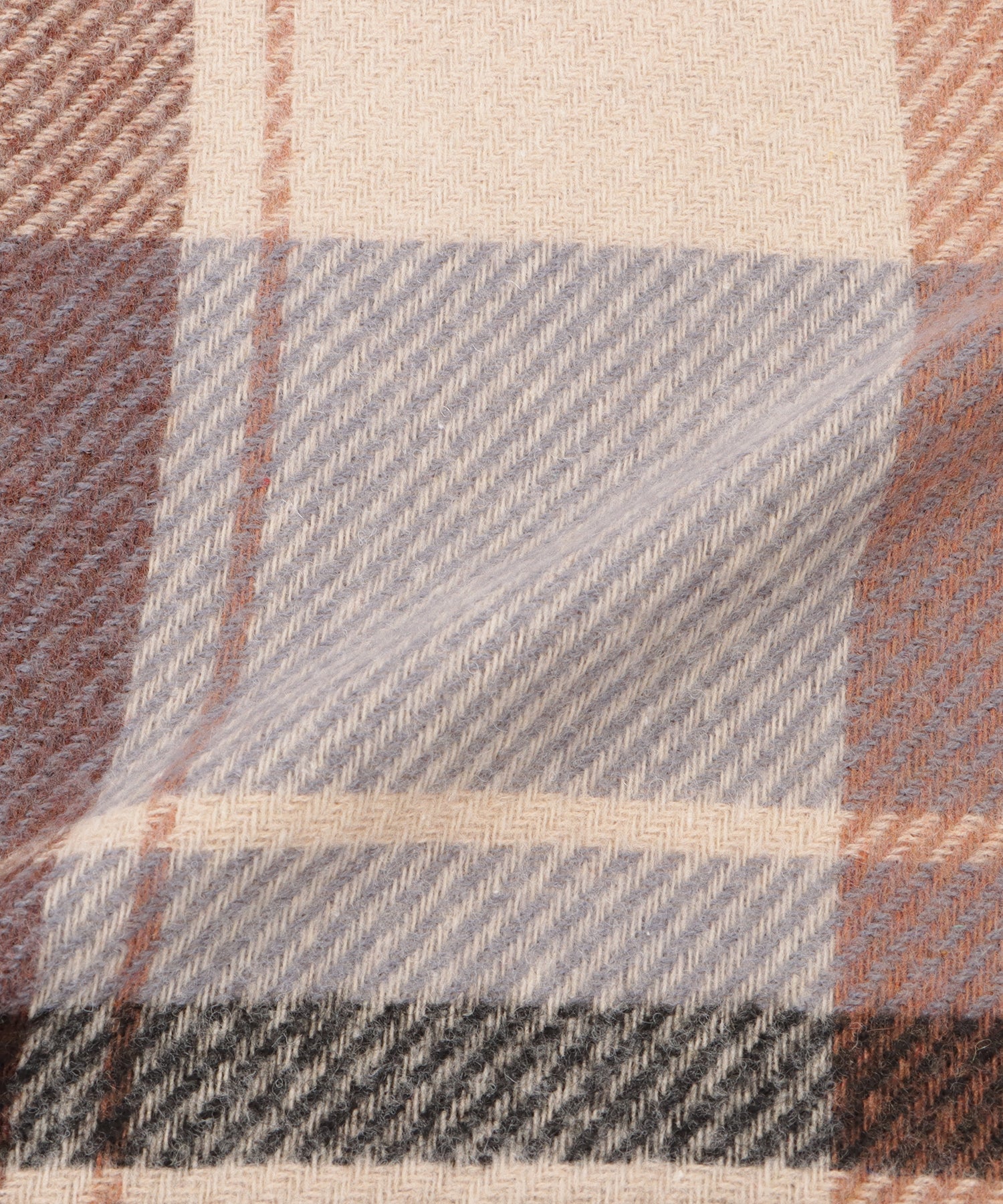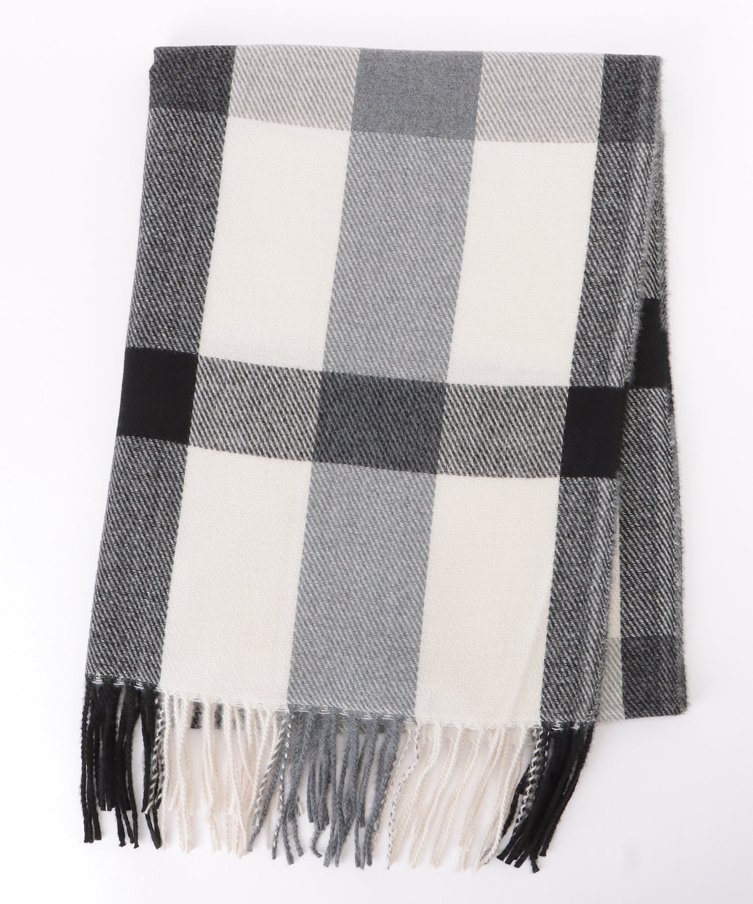 コーディネートに馴染む、やわらかな配色のチェック柄マフラー。