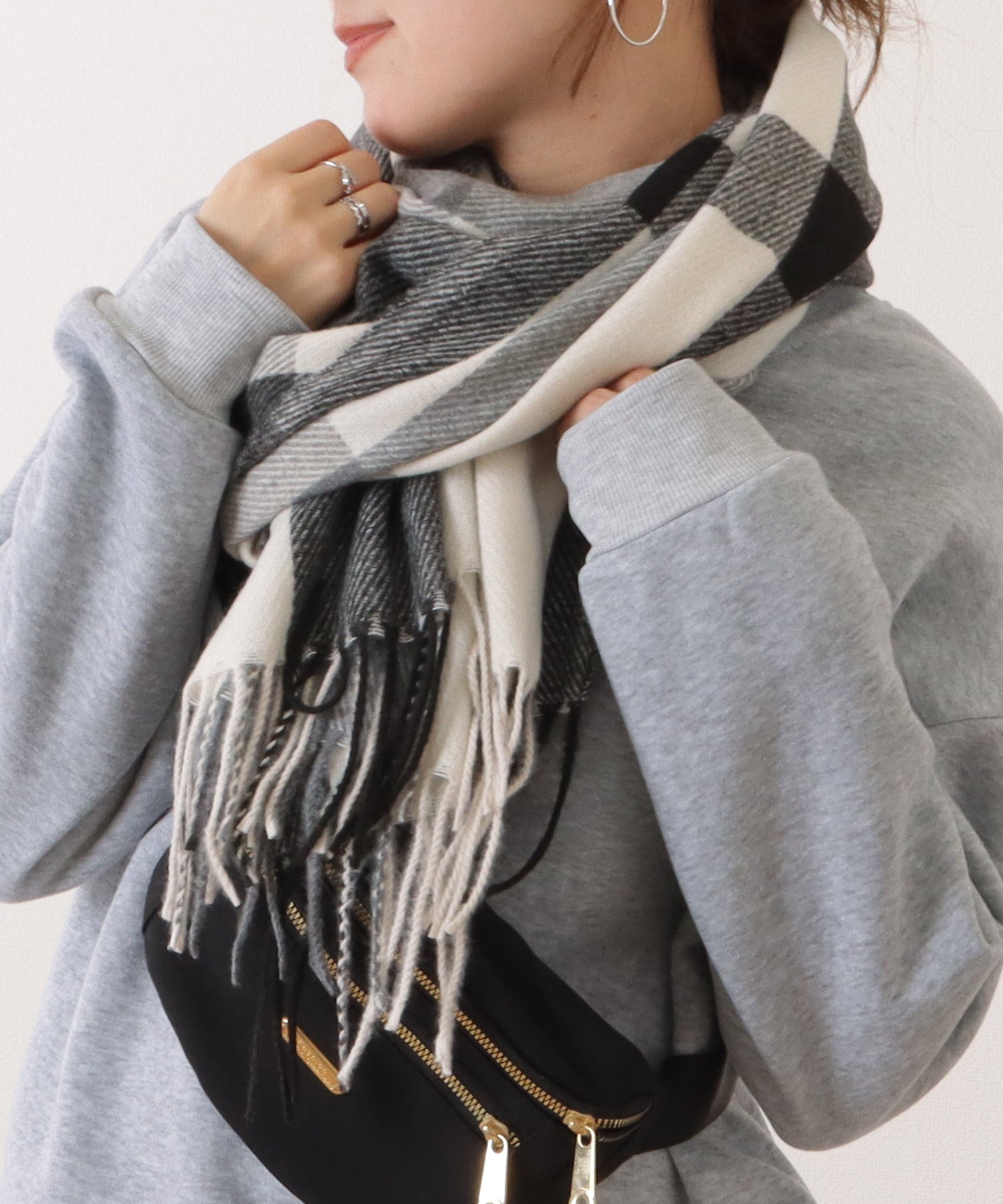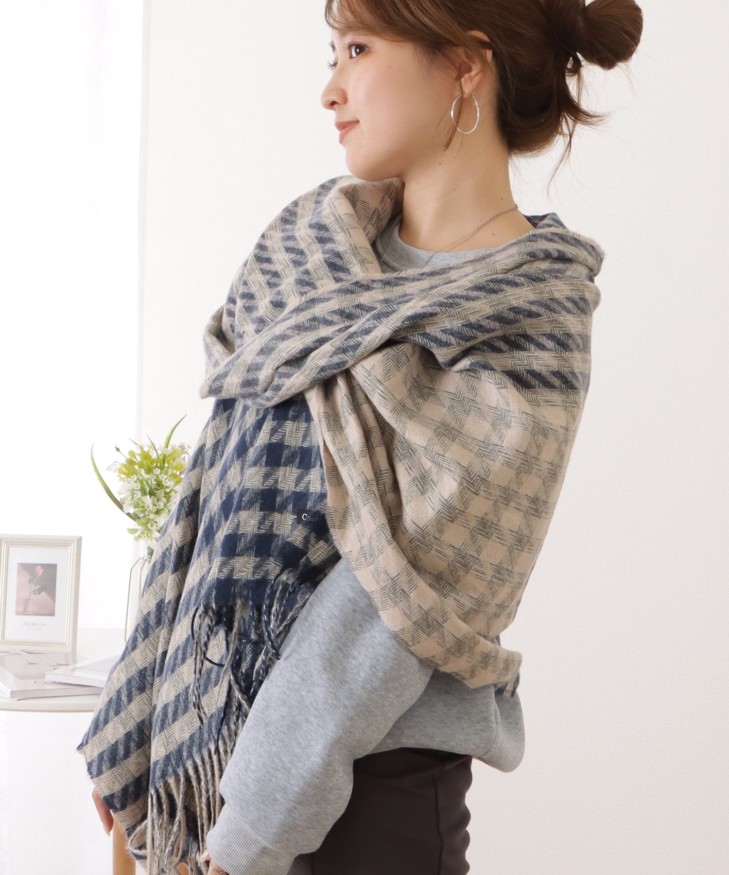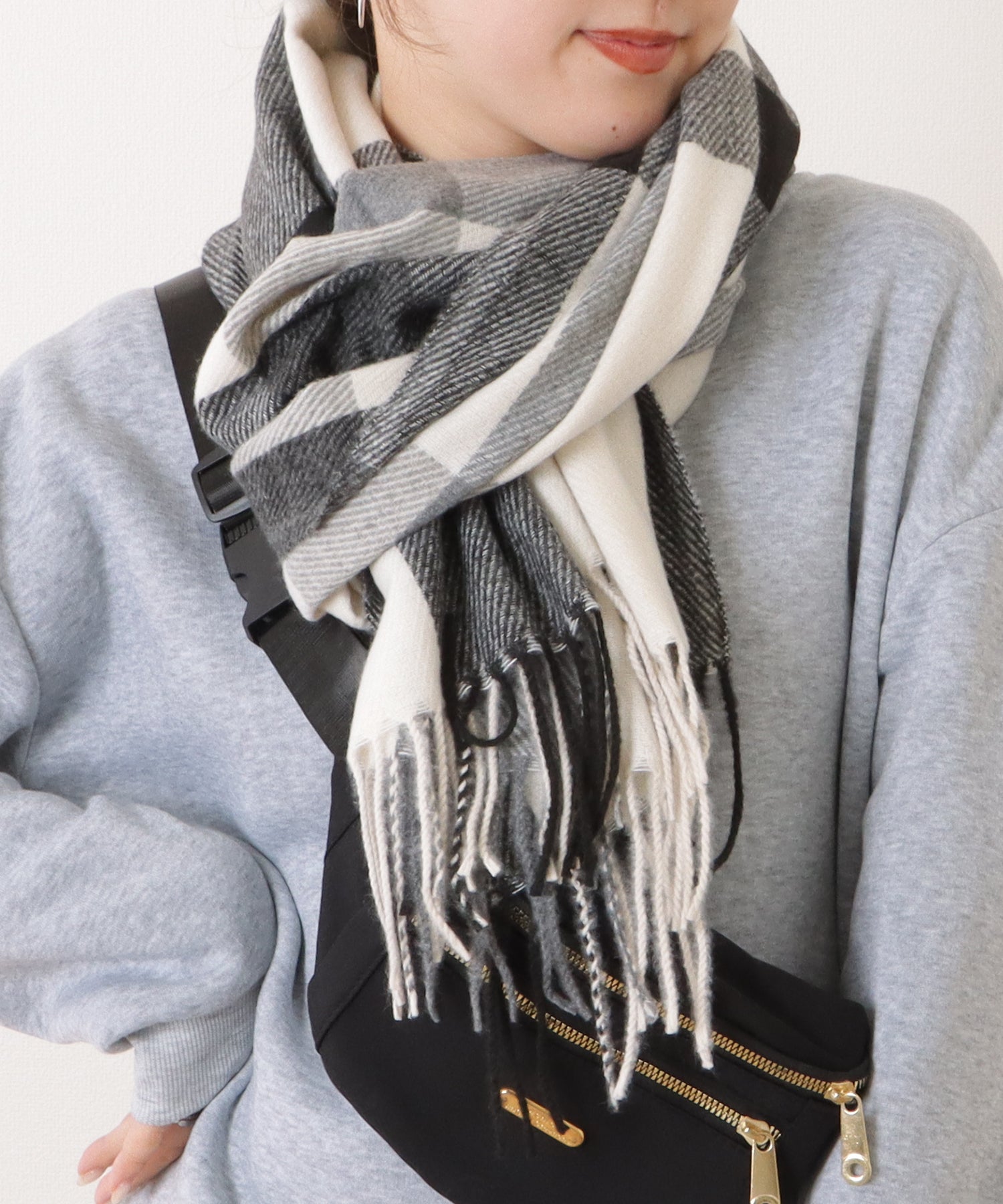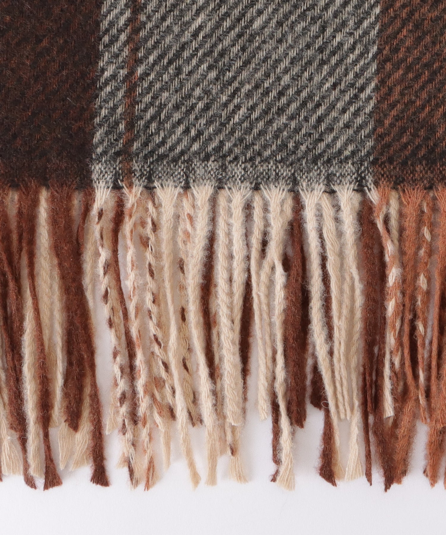 巻き方次第で表情が変わる、フリンジ仕上げの端もポイント。