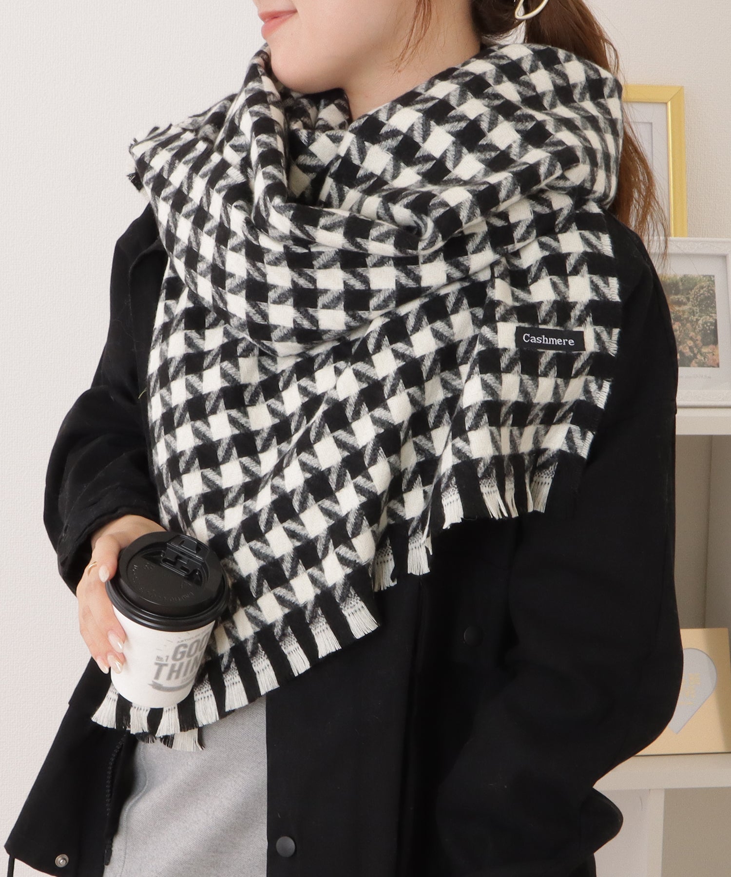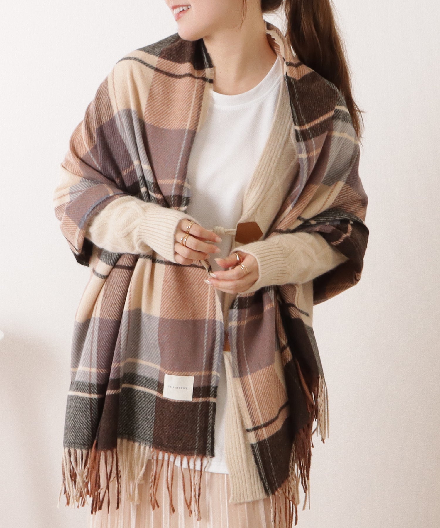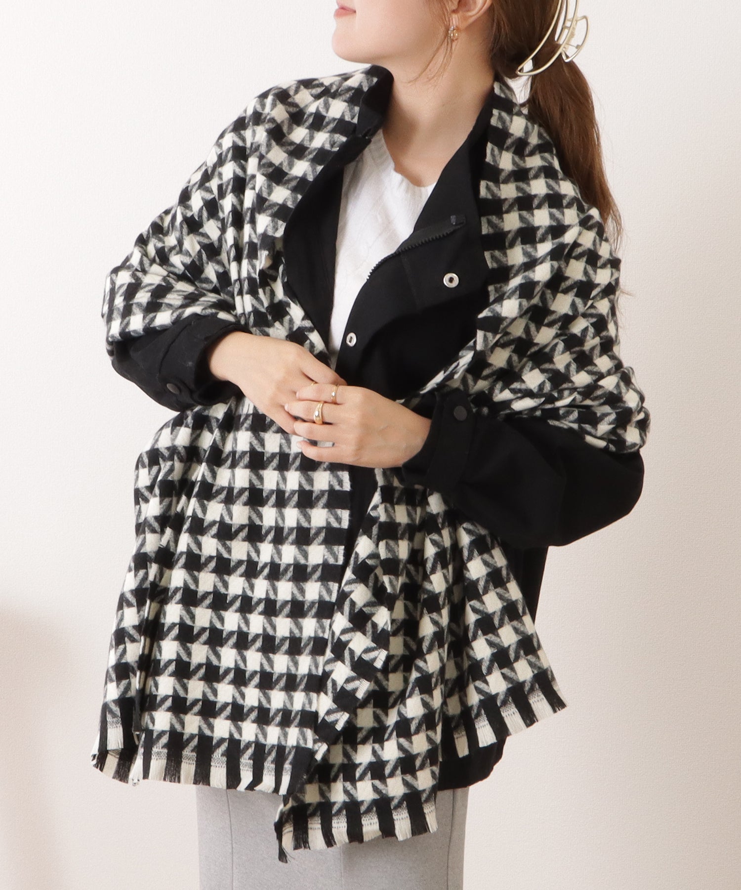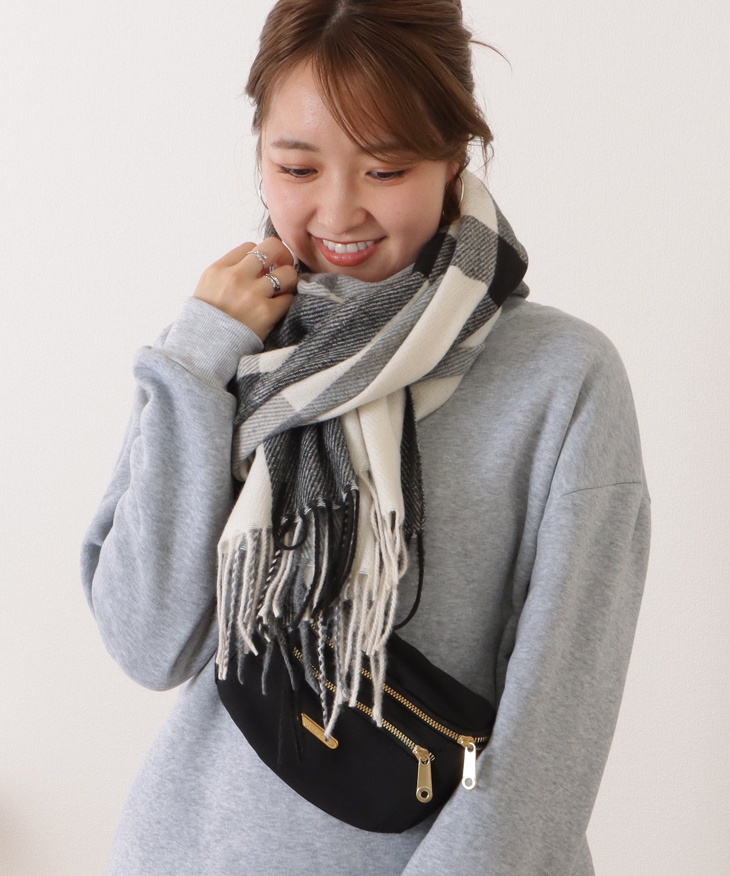 巻き方次第で表情が変わる、フリンジ仕上げの端もポイント。