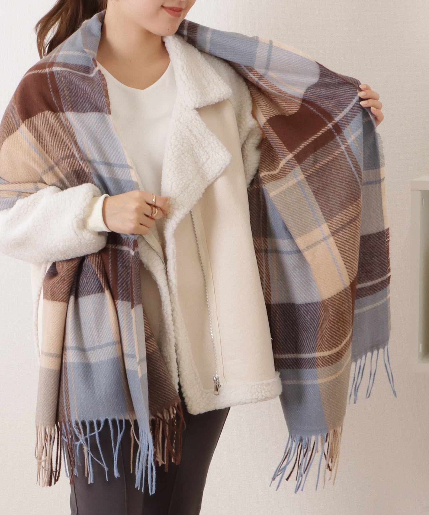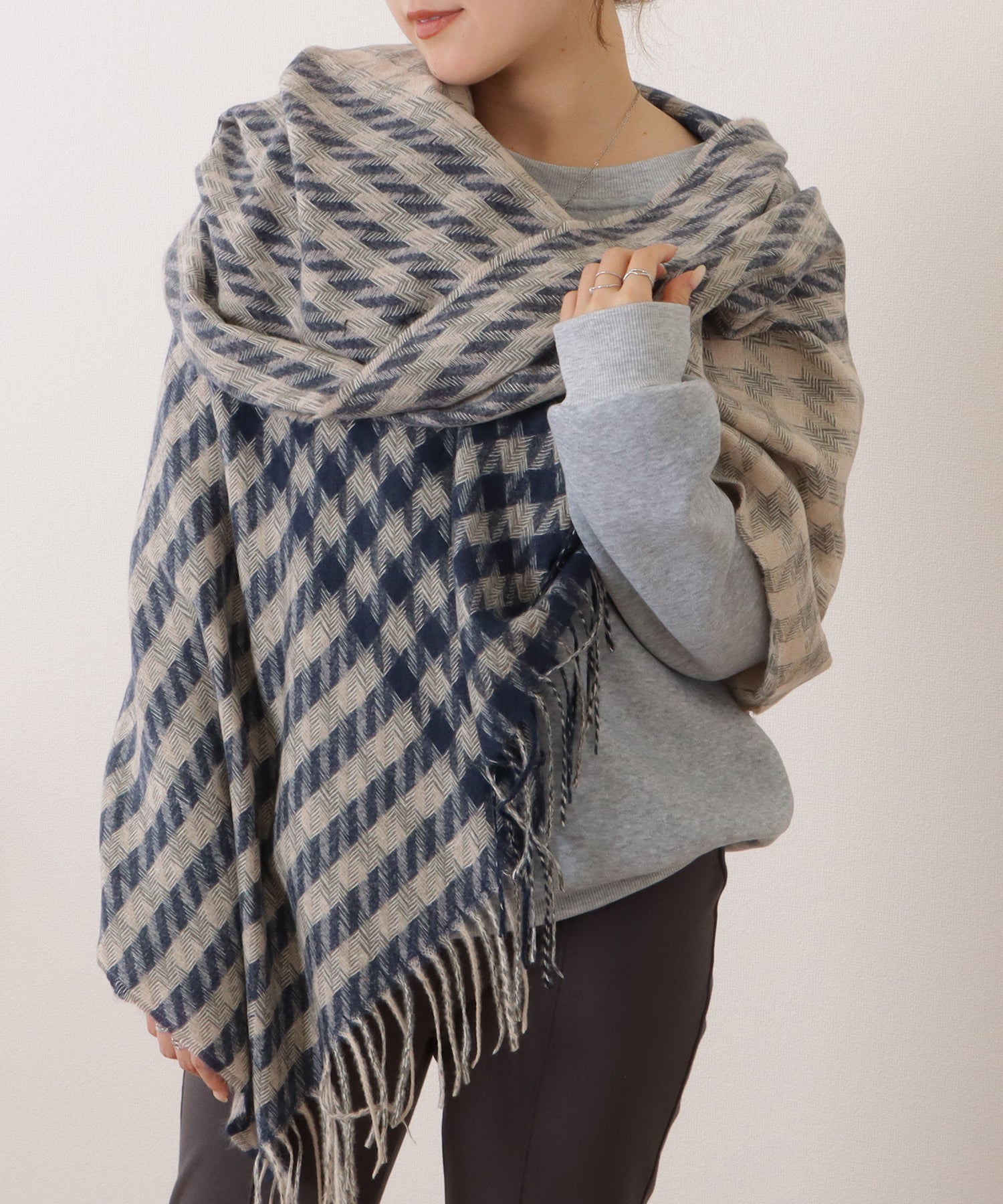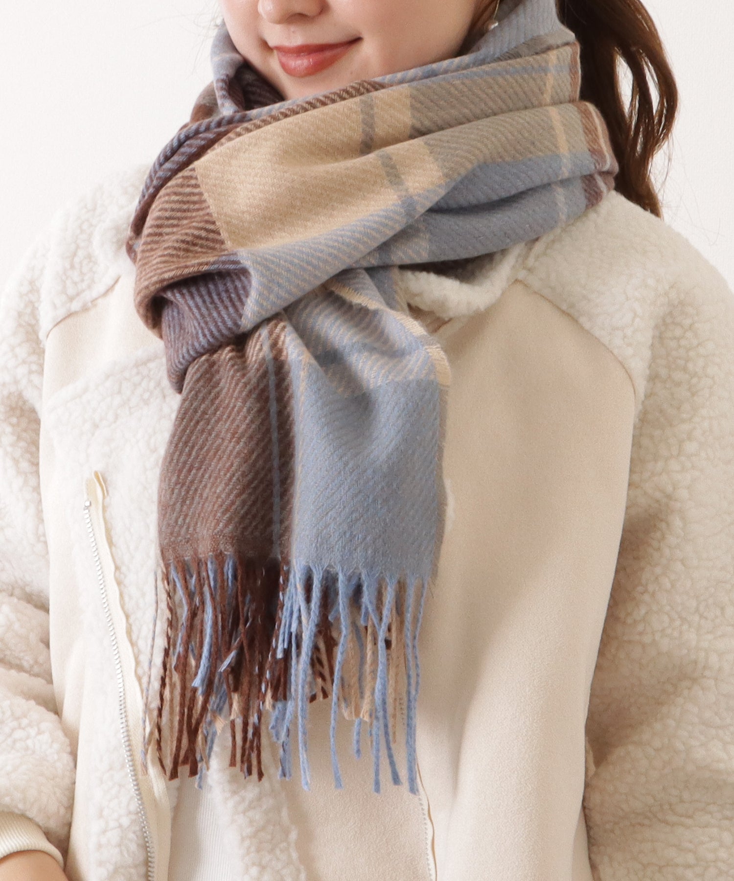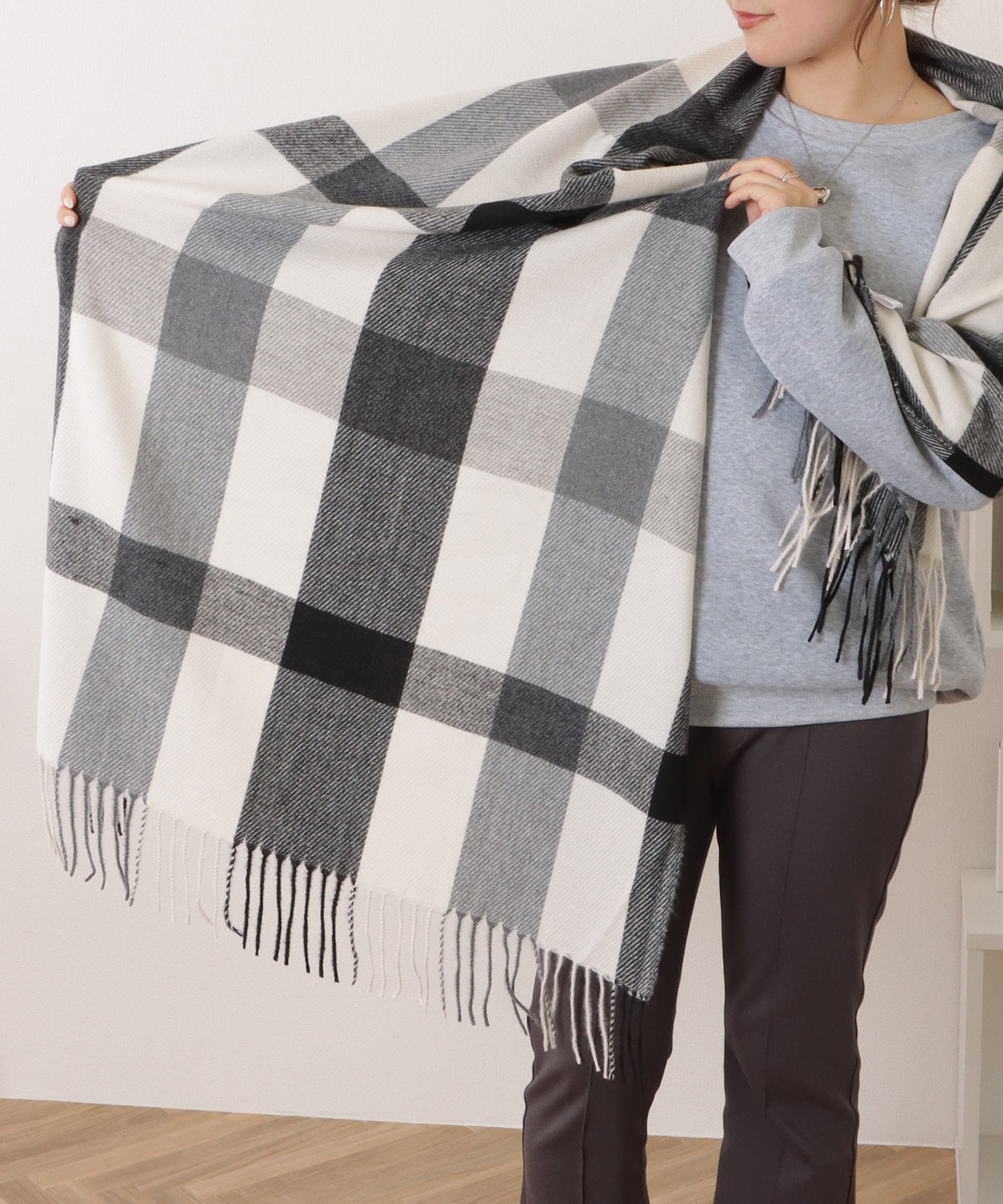 大判タイプなので、マフラーとしてはもちろん、羽織りやブランケットとして、マルチにお使いいただける便利なアイテムです。