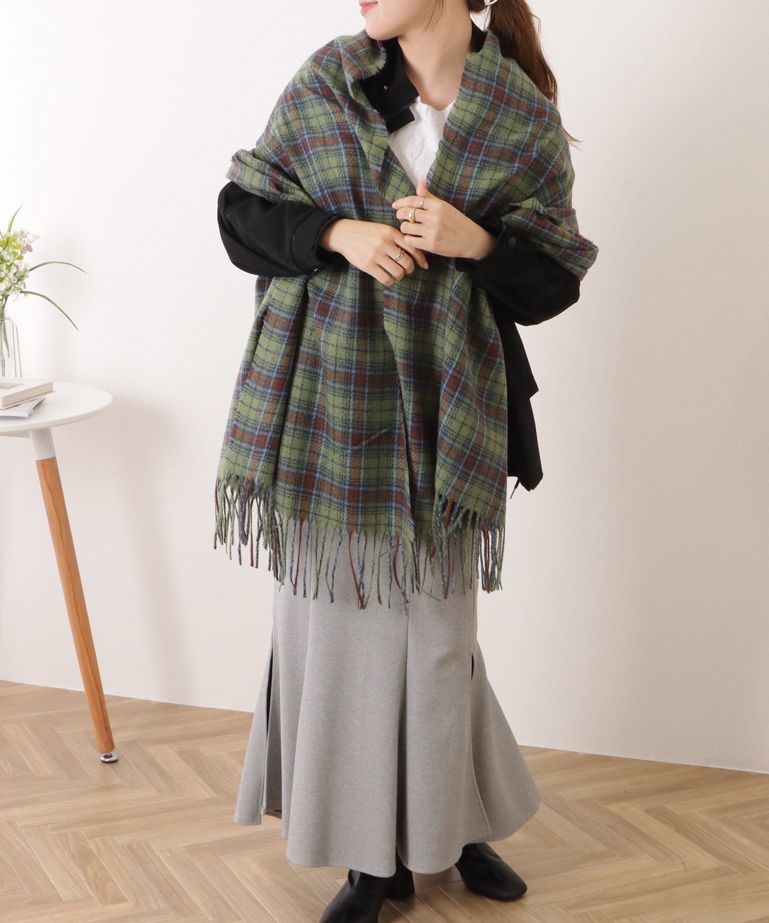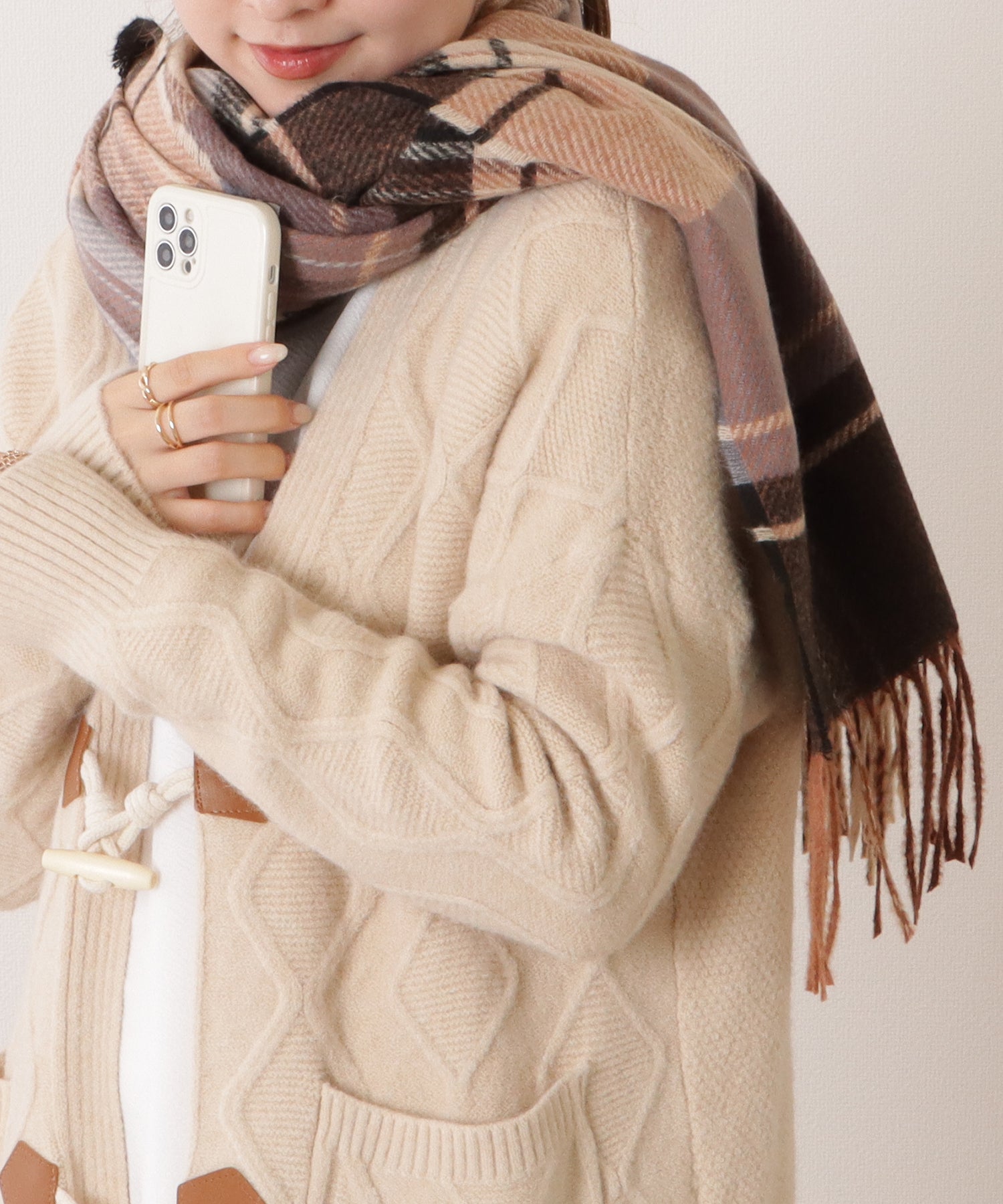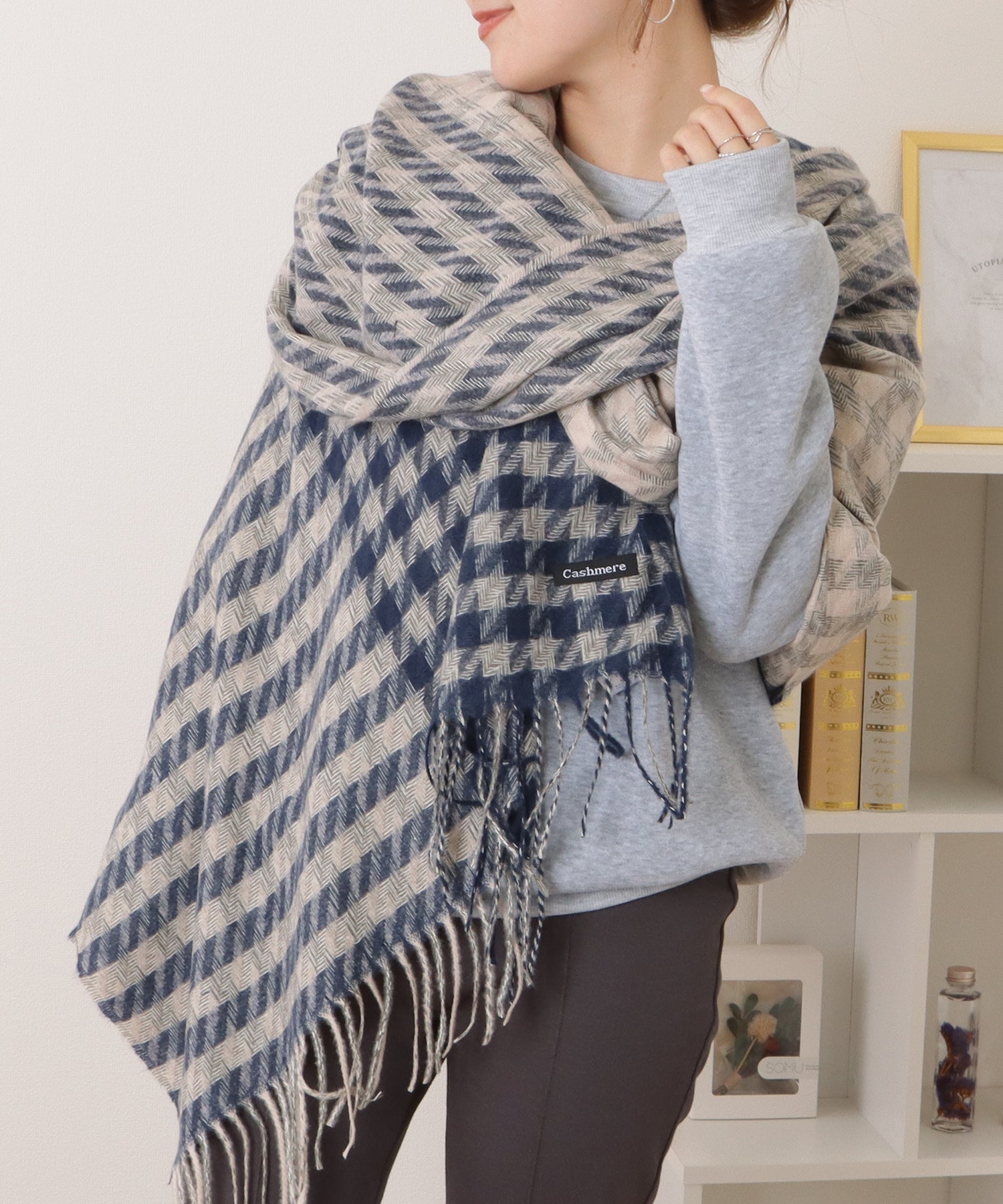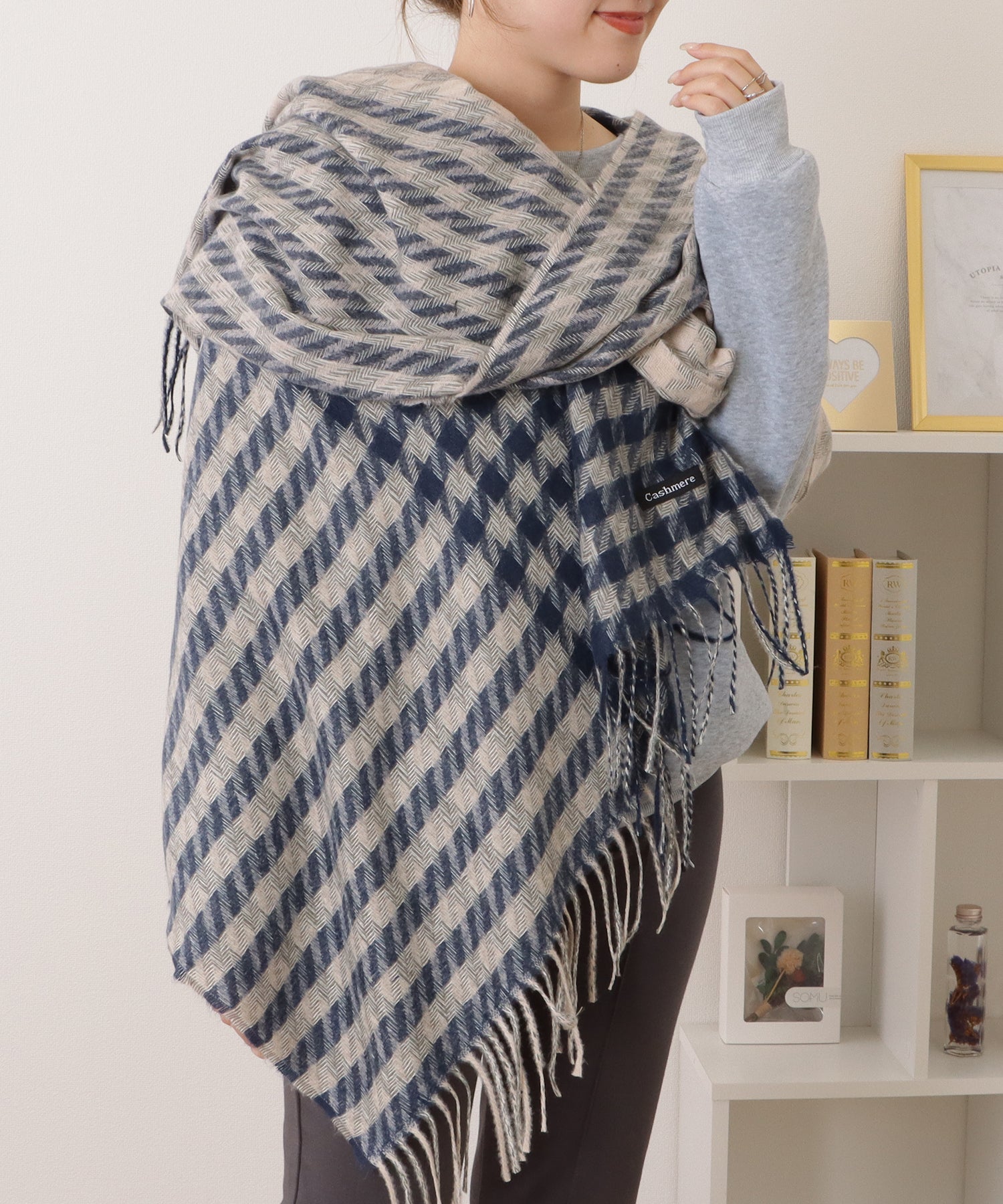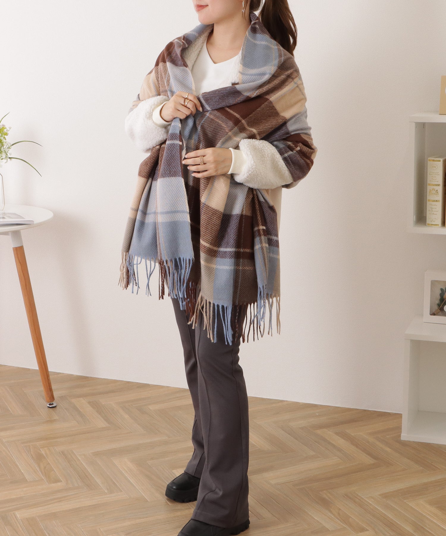 大判タイプなので、マフラーとしてはもちろん、羽織りやブランケットとして、マルチにお使いいただける便利なアイテムです。