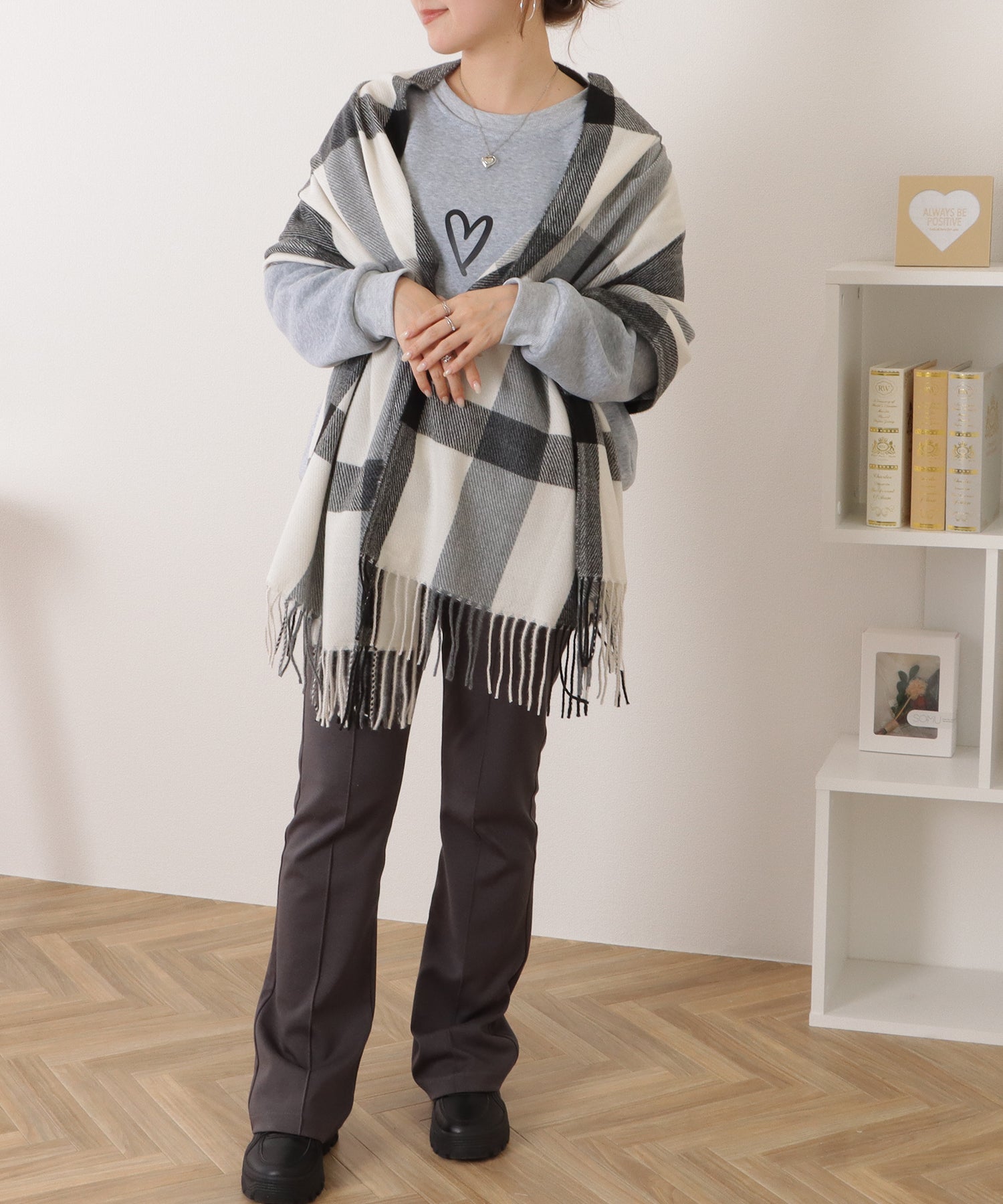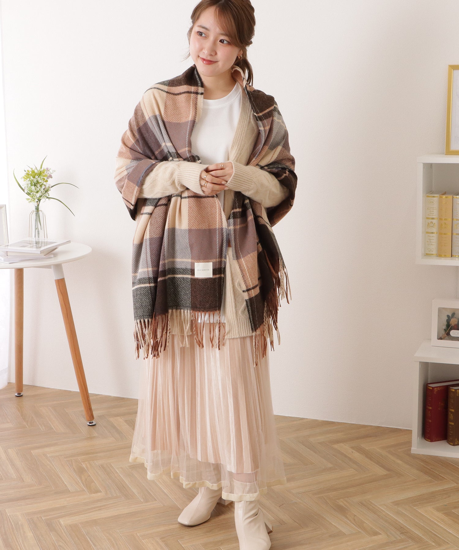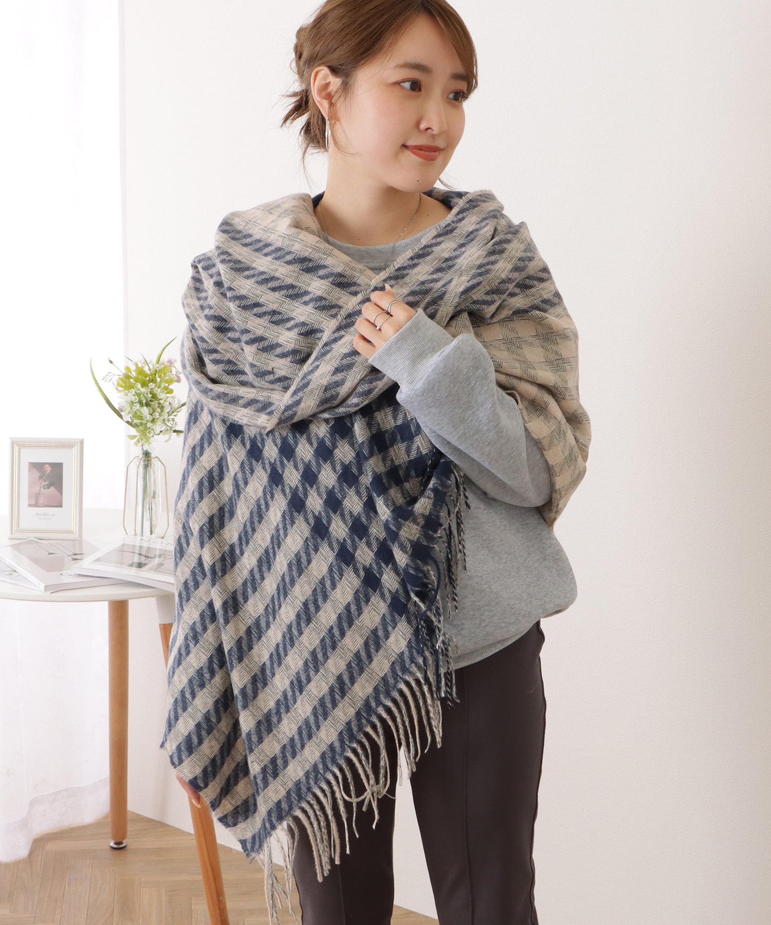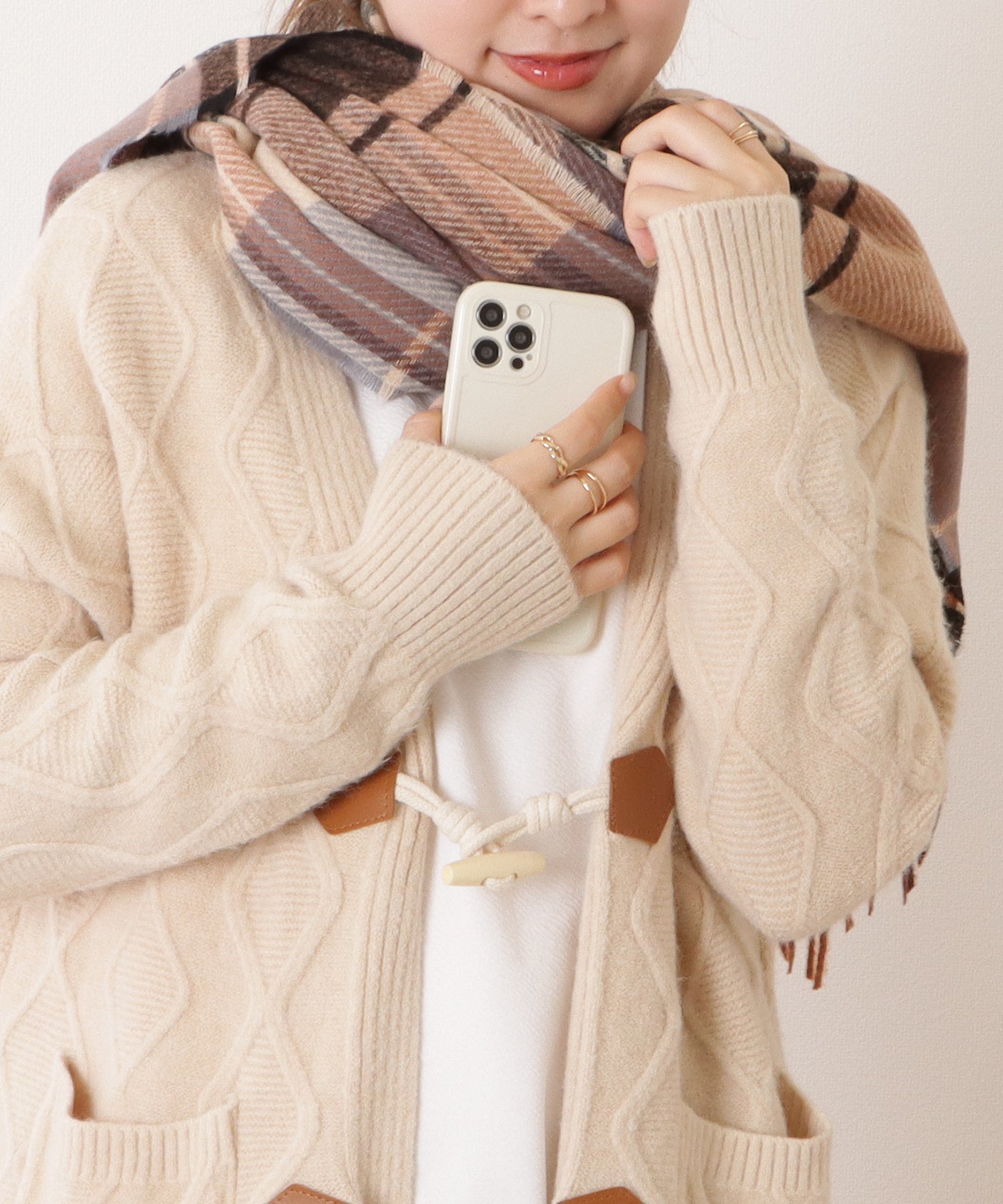 大判タイプなので、マフラーとしてはもちろん、羽織りやブランケットとして、マルチにお使いいただける便利なアイテムです。