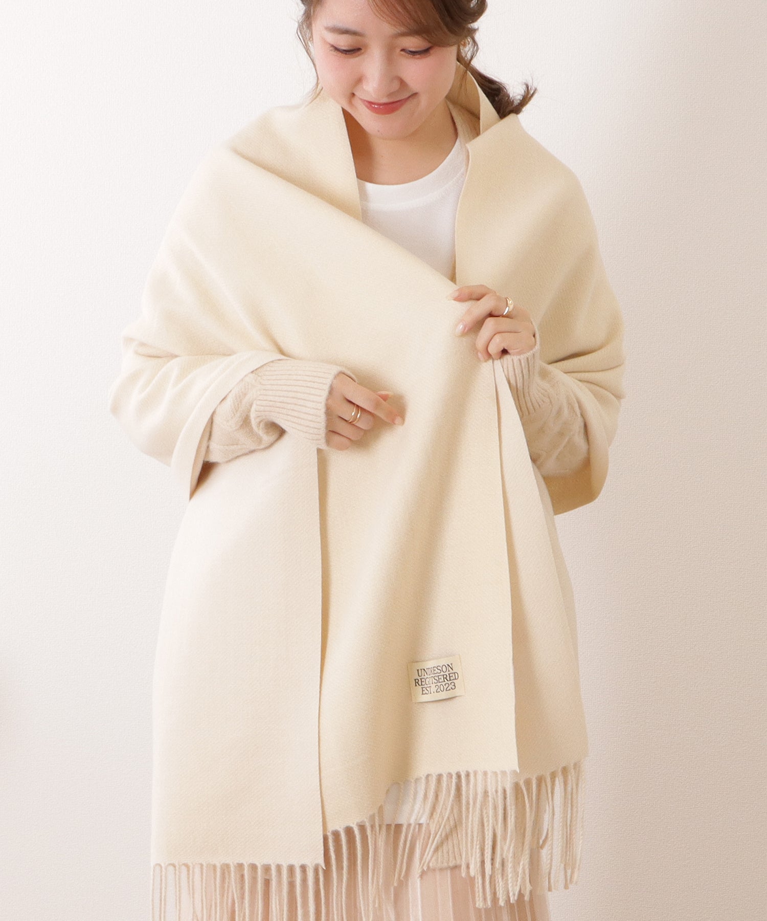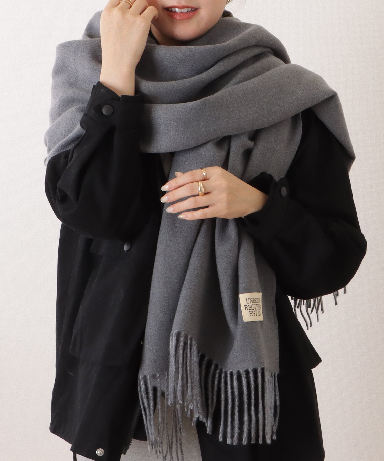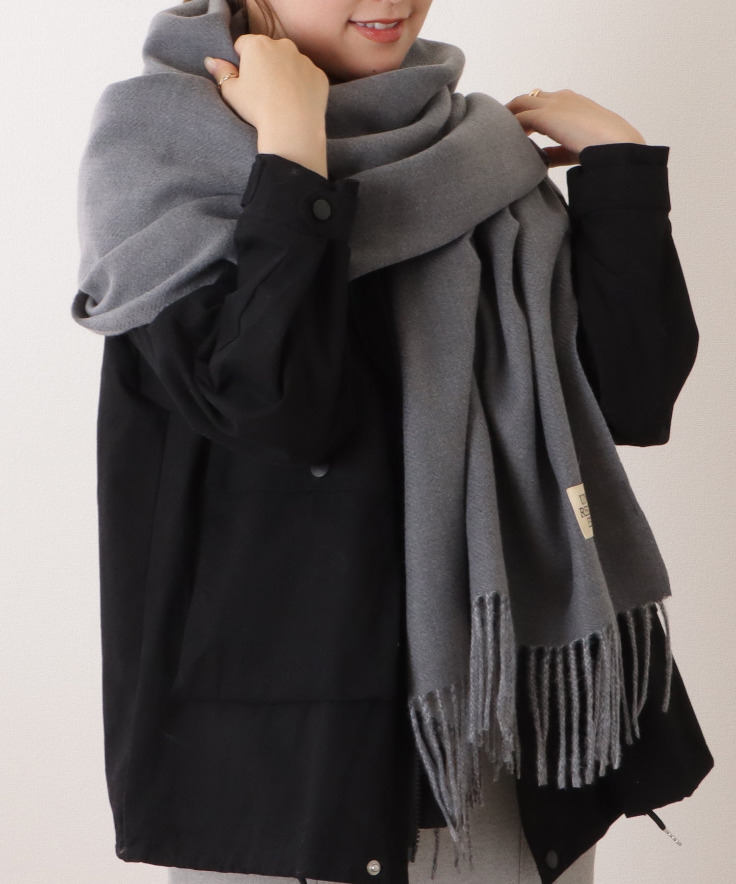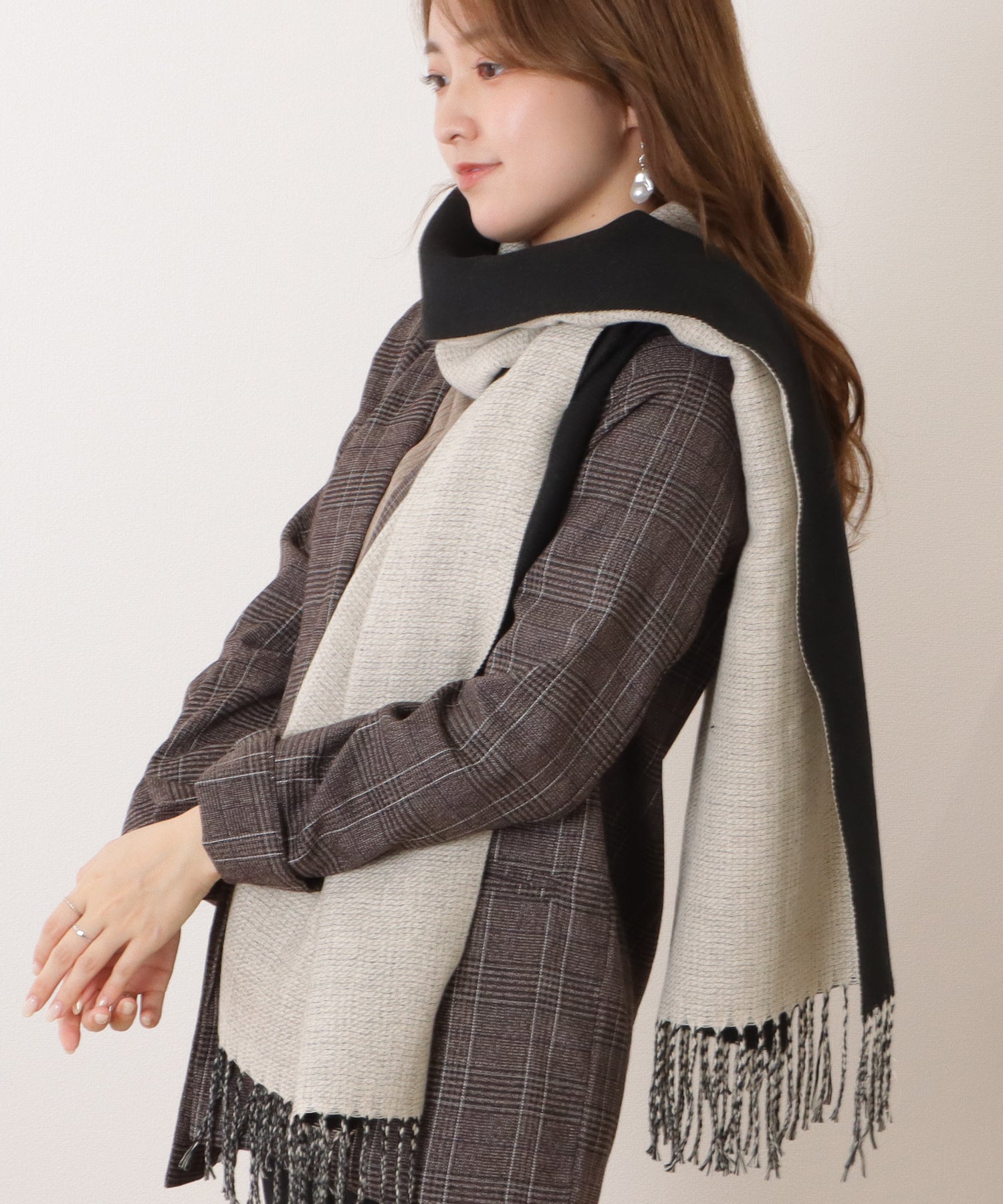 秋冬コーデの定番アイテムとして、羽織りやブランケットとしてもお使いいただける大判タイプ。