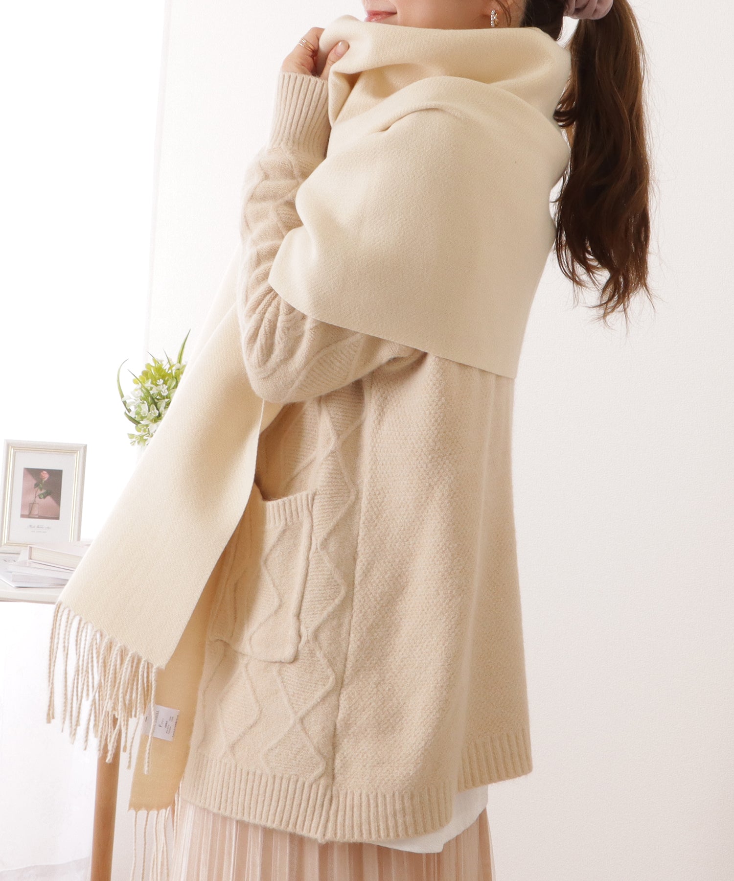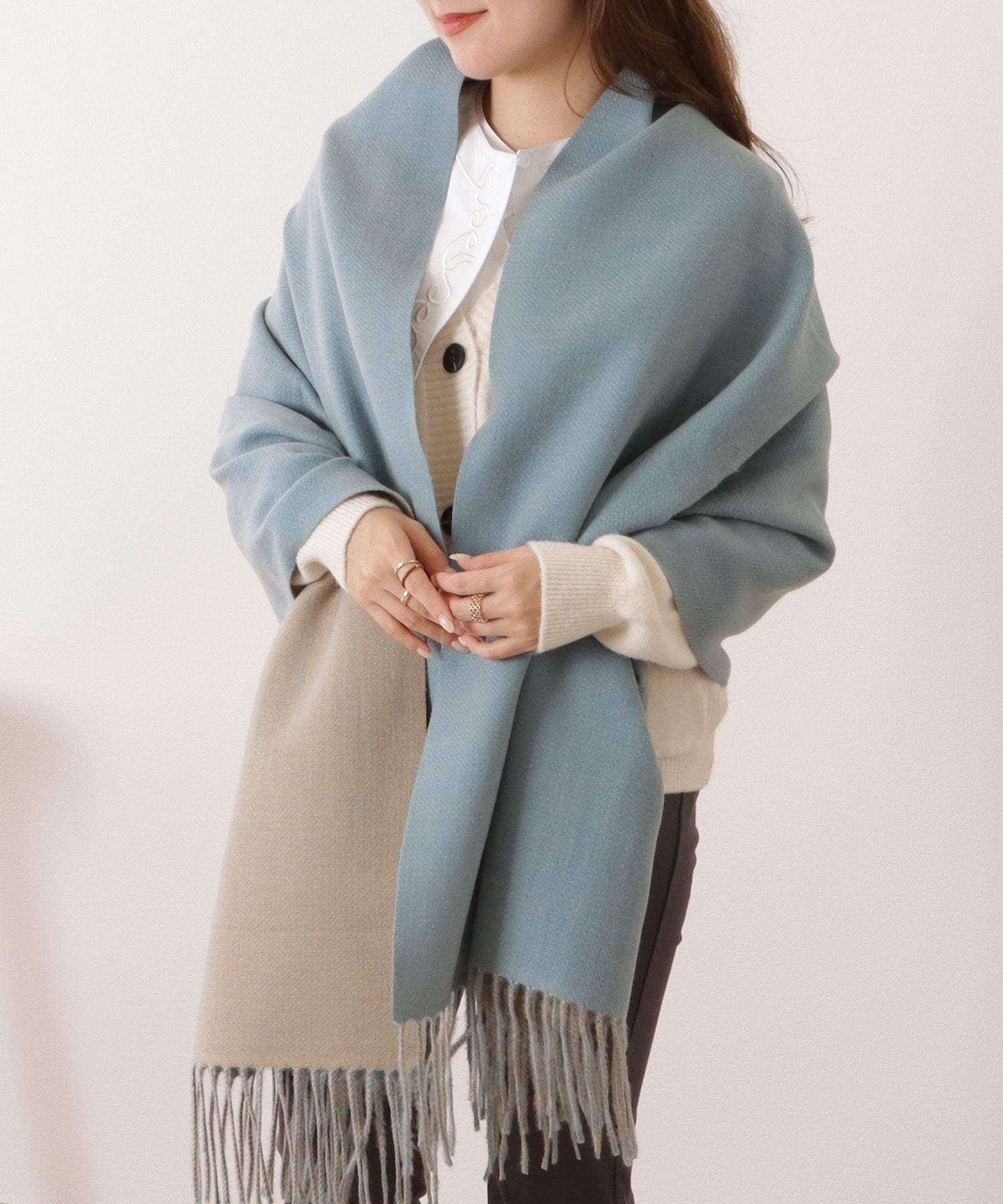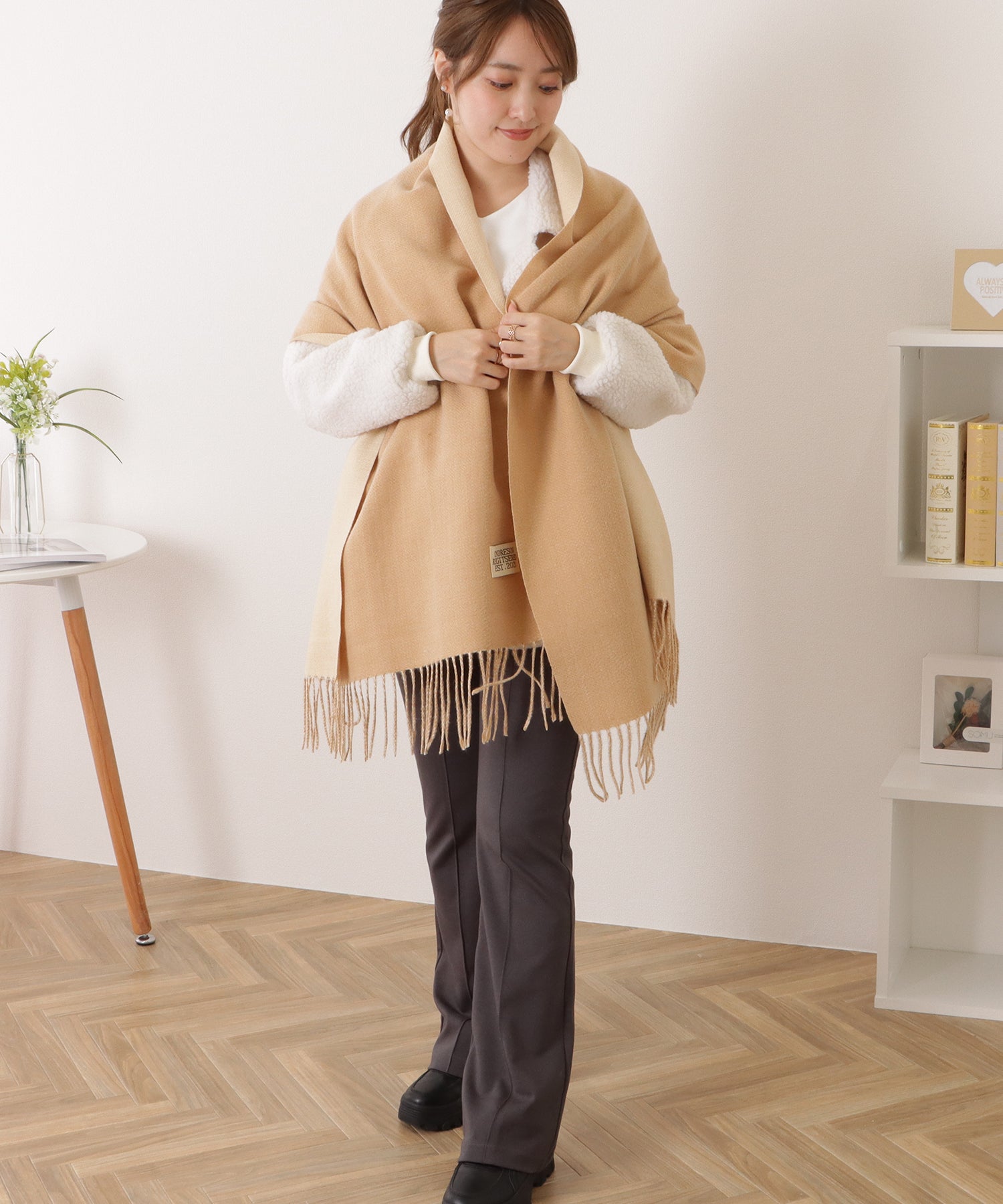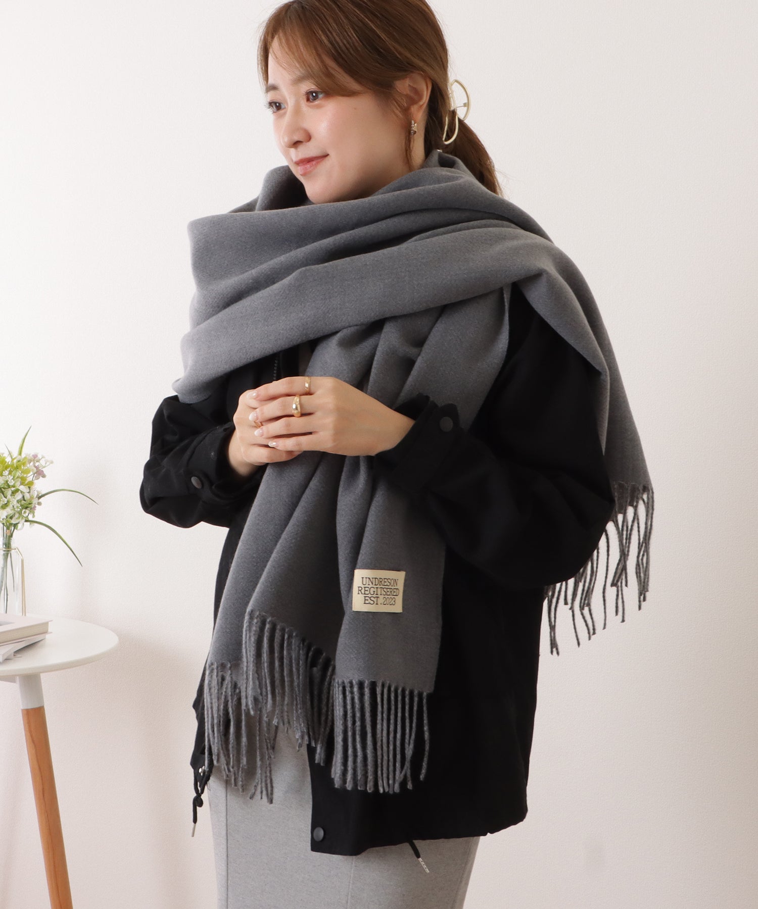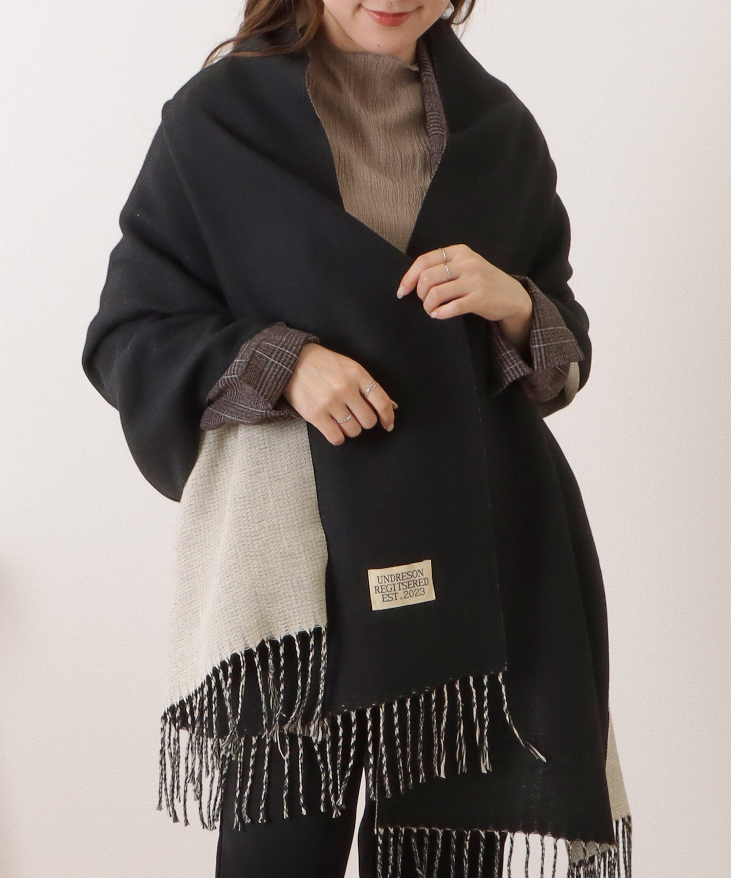 秋冬コーデの定番アイテムとして、羽織りやブランケットとしてもお使いいただける大判タイプ。