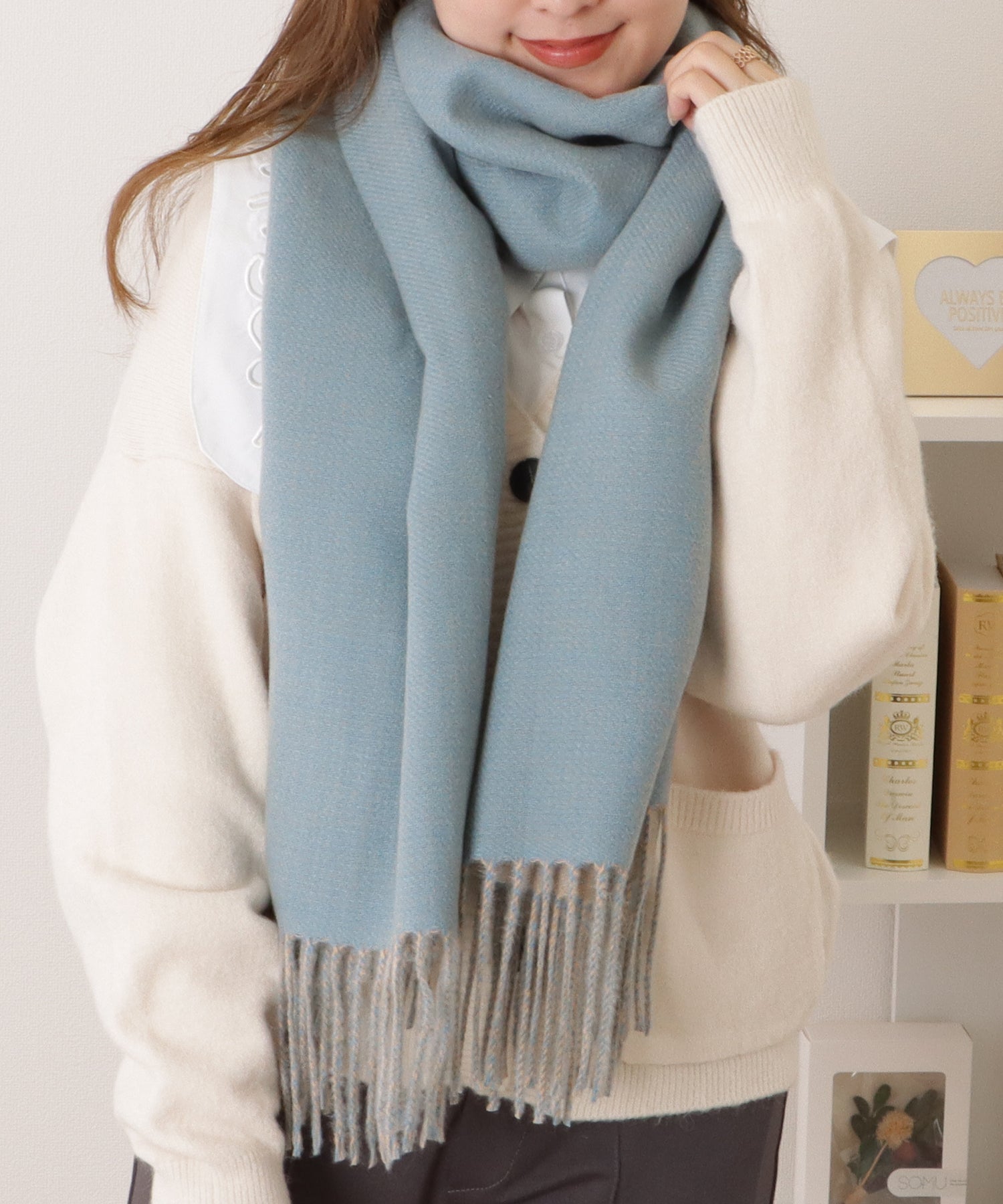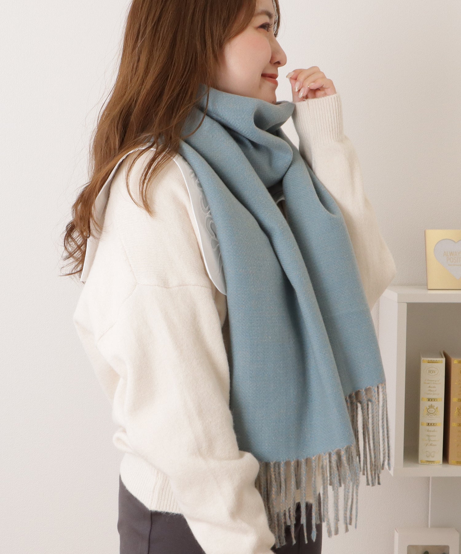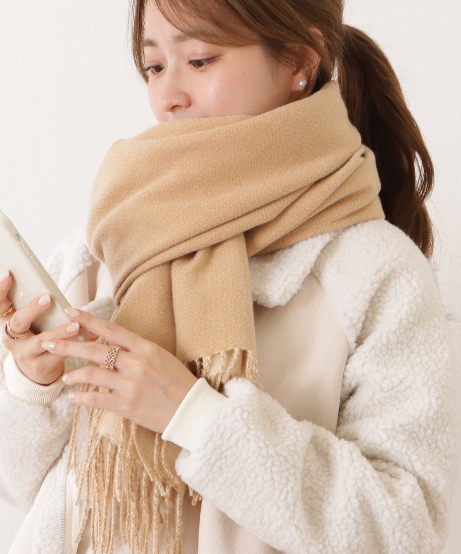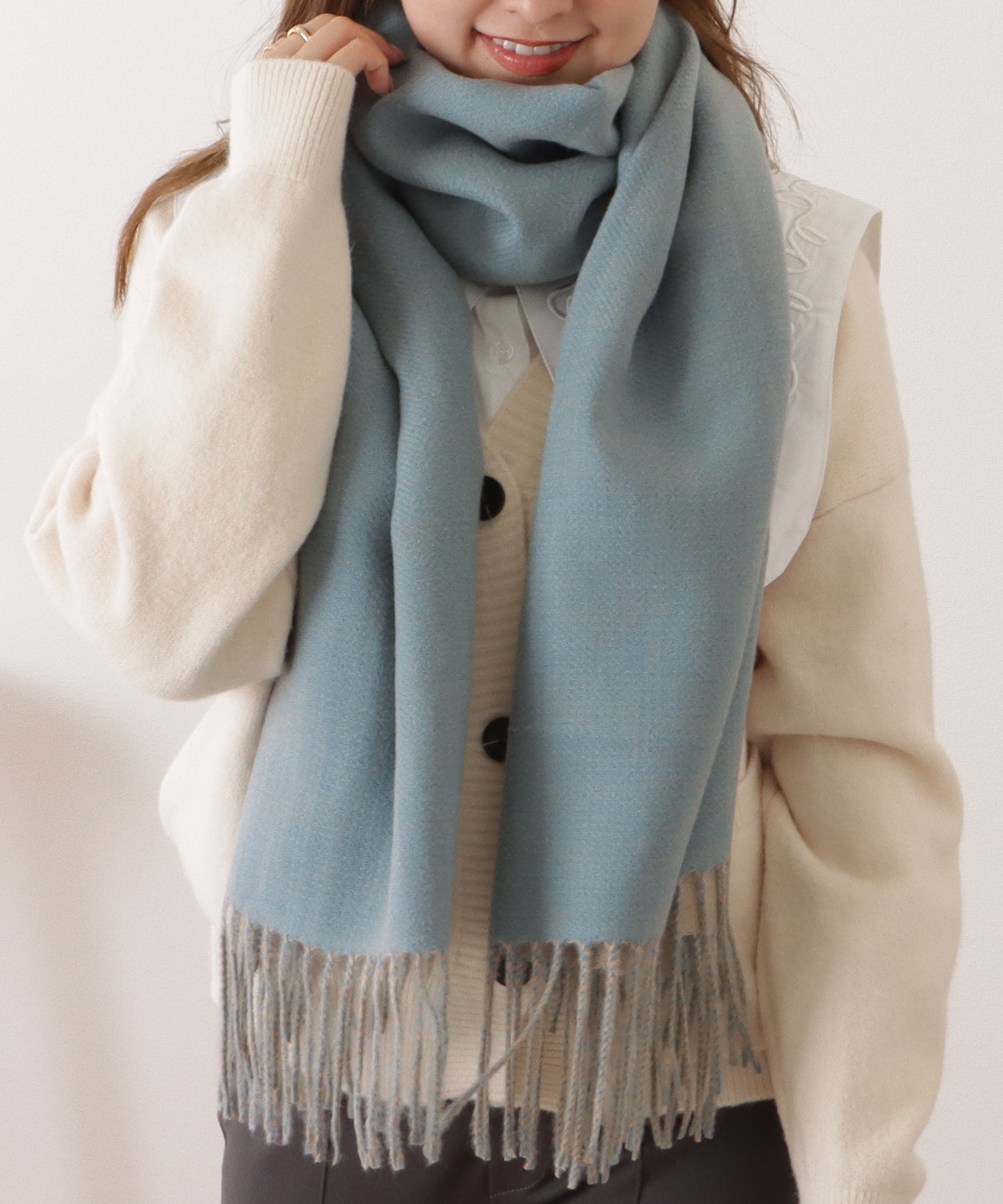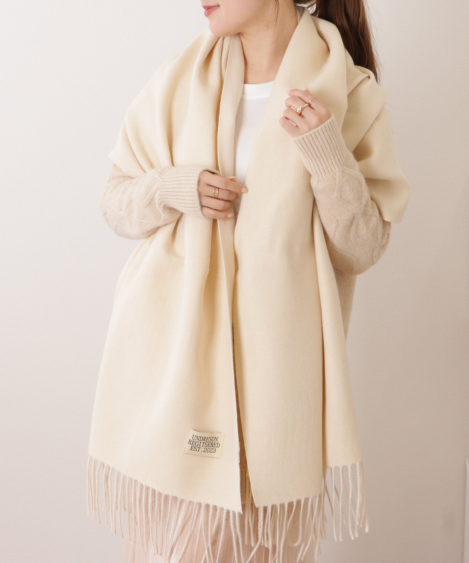 秋冬コーデの定番アイテムとして、羽織りやブランケットとしてもお使いいただける大判タイプ。