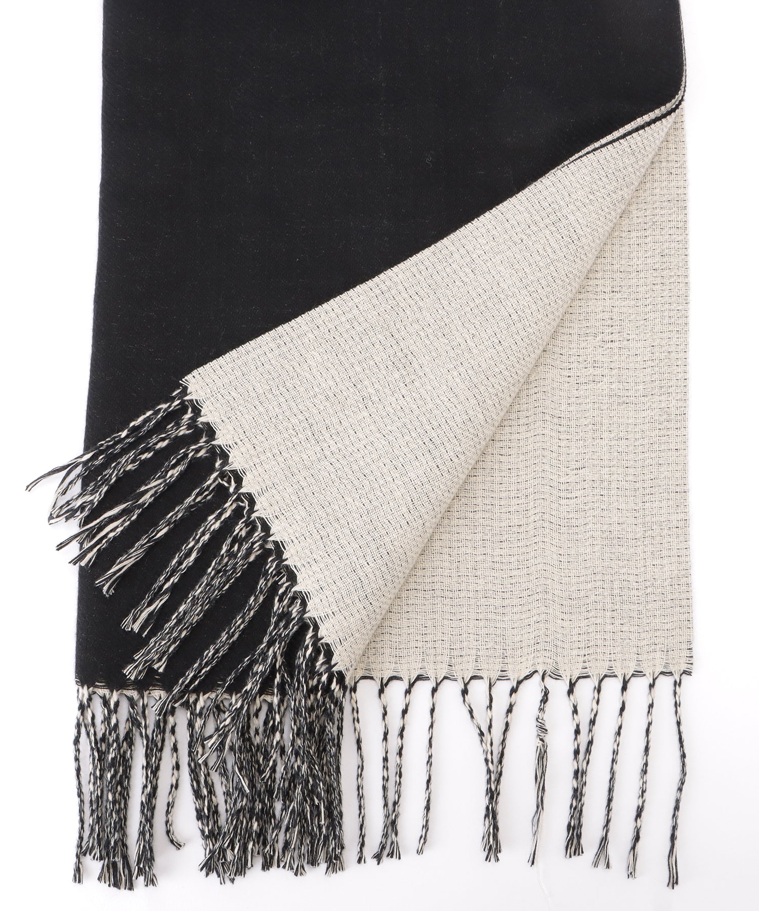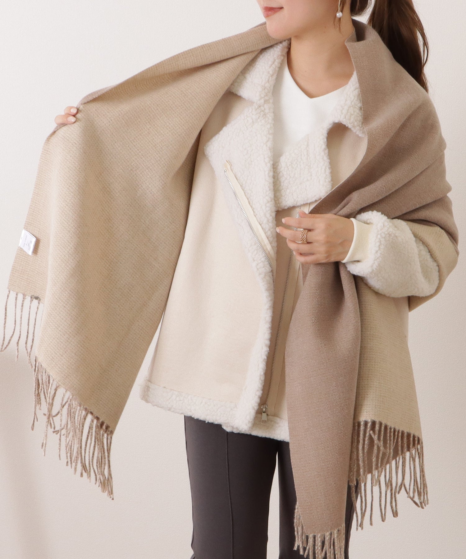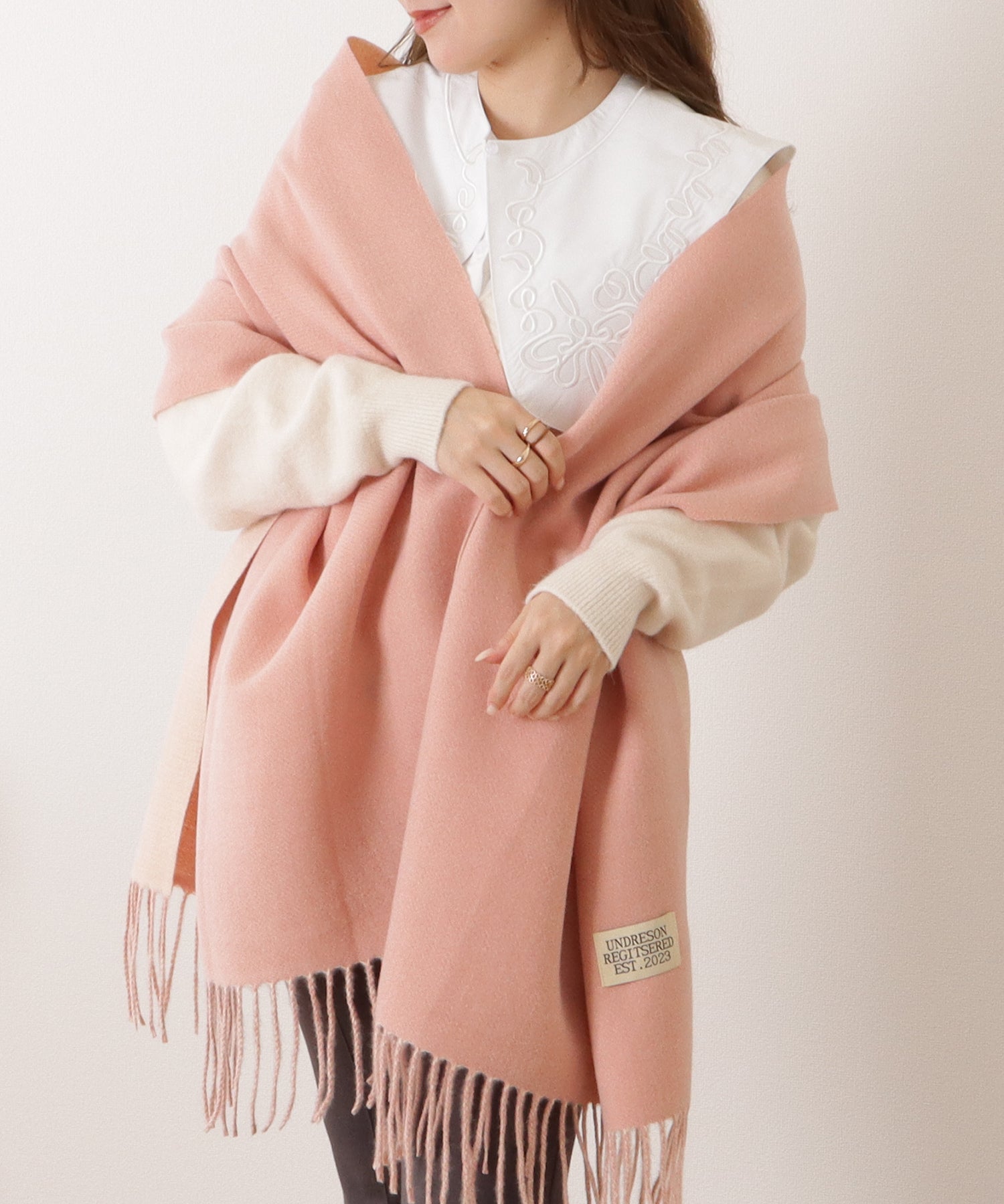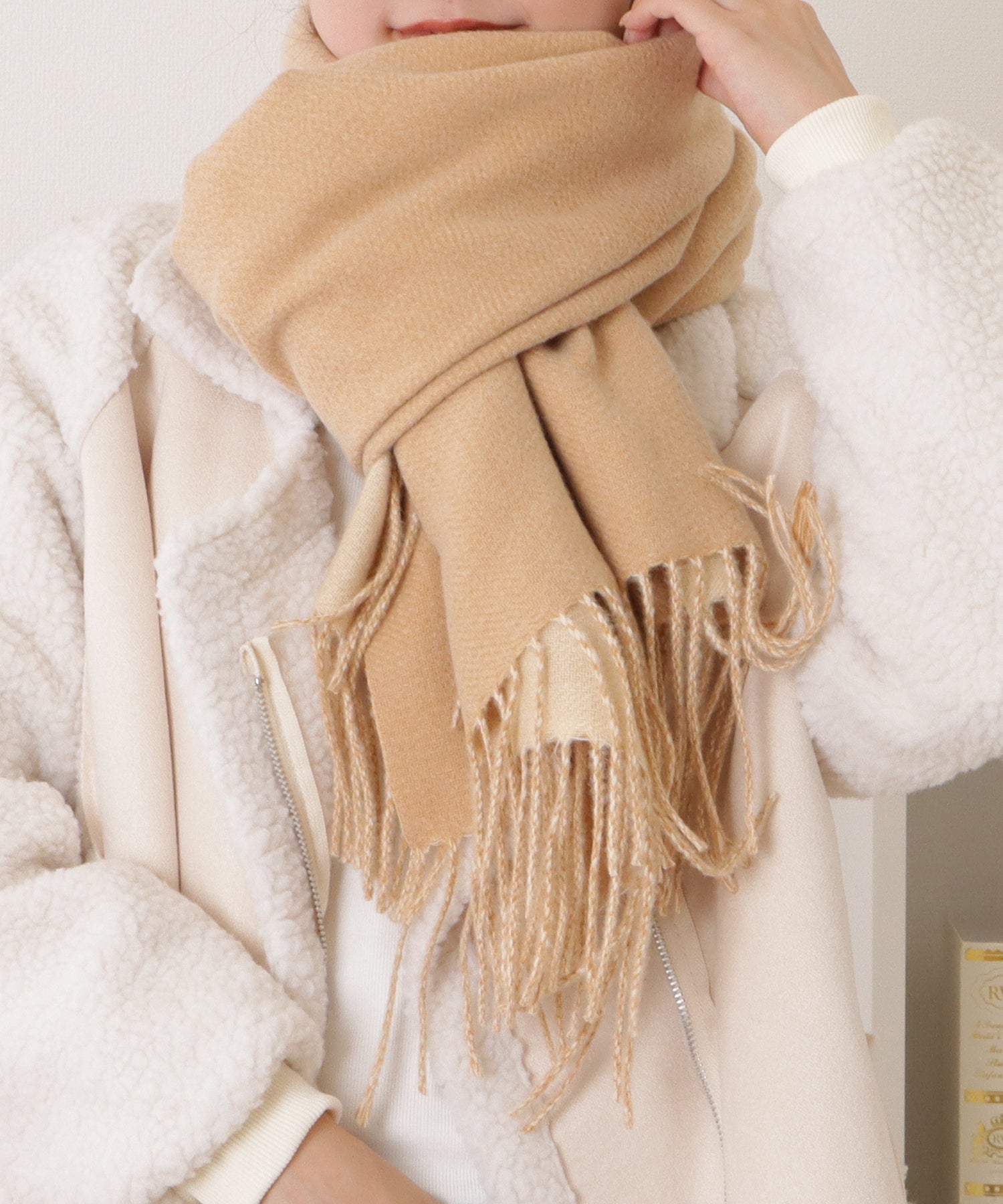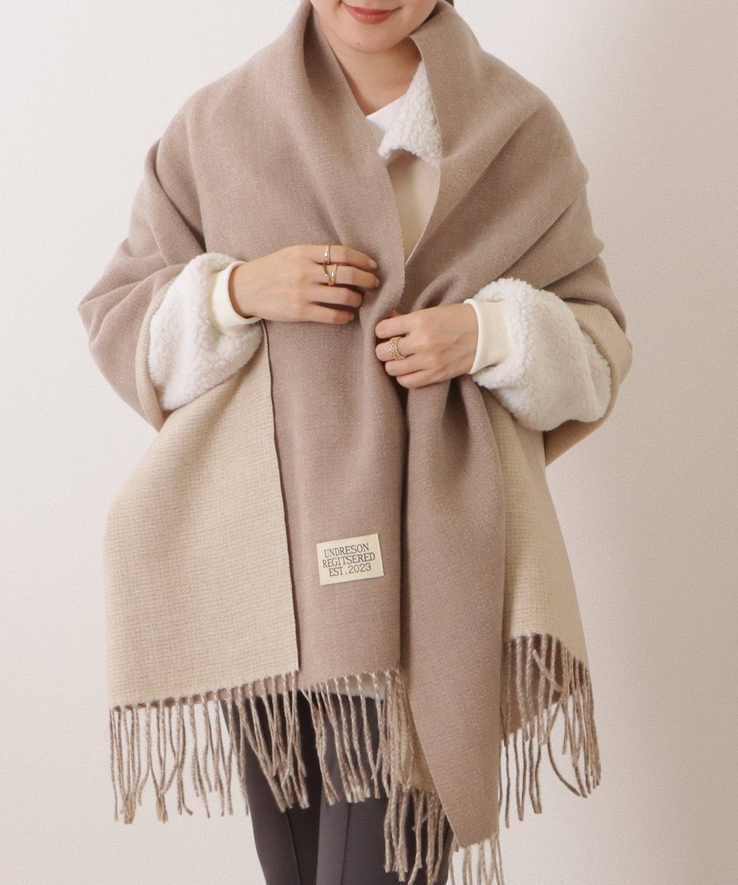 秋冬コーデの定番アイテムとして、羽織りやブランケットとしてもお使いいただける大判タイプ。
