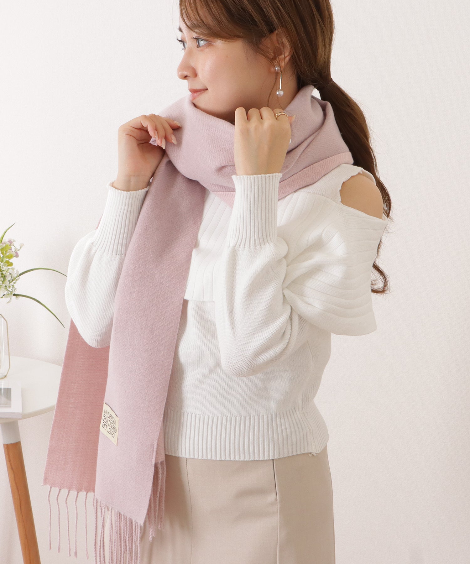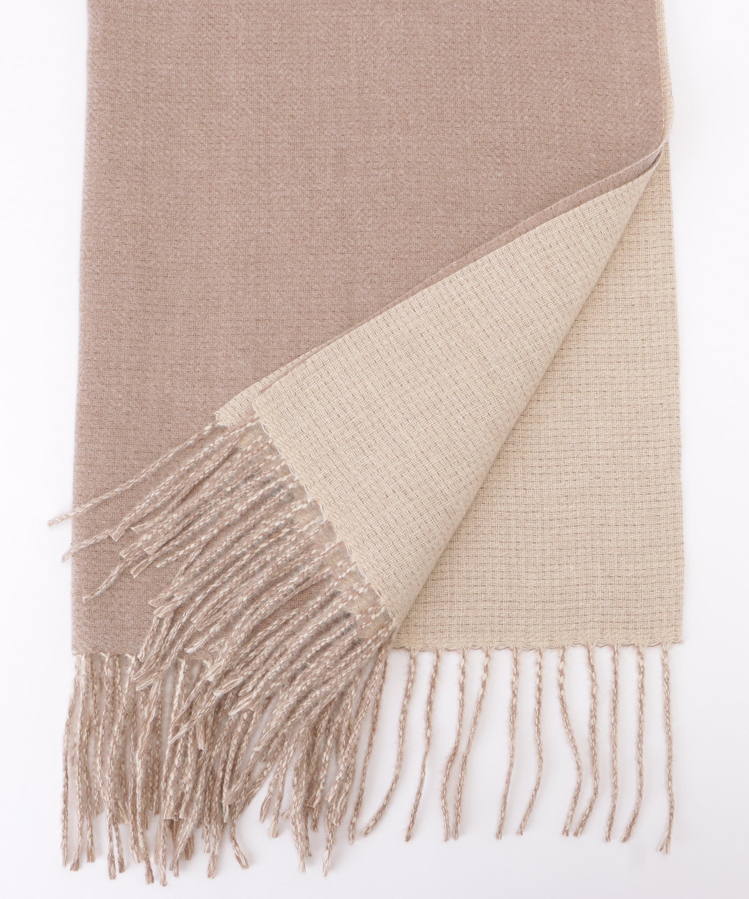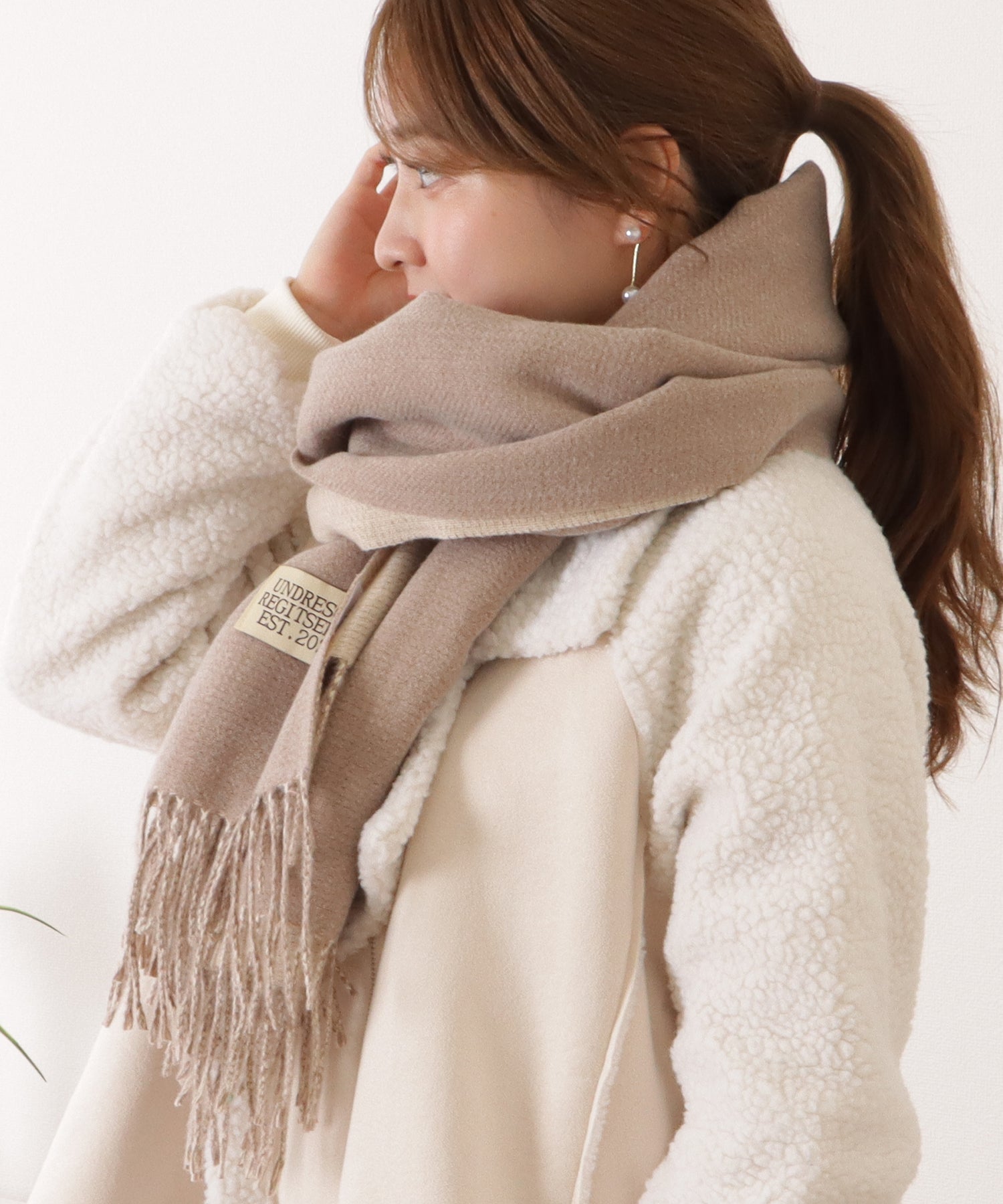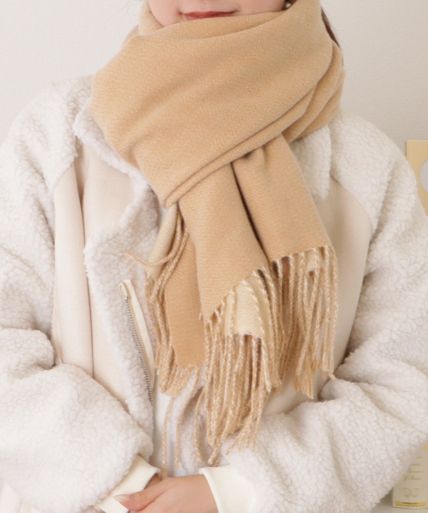 秋冬コーデの定番アイテムとして、羽織りやブランケットとしてもお使いいただける大判タイプ。