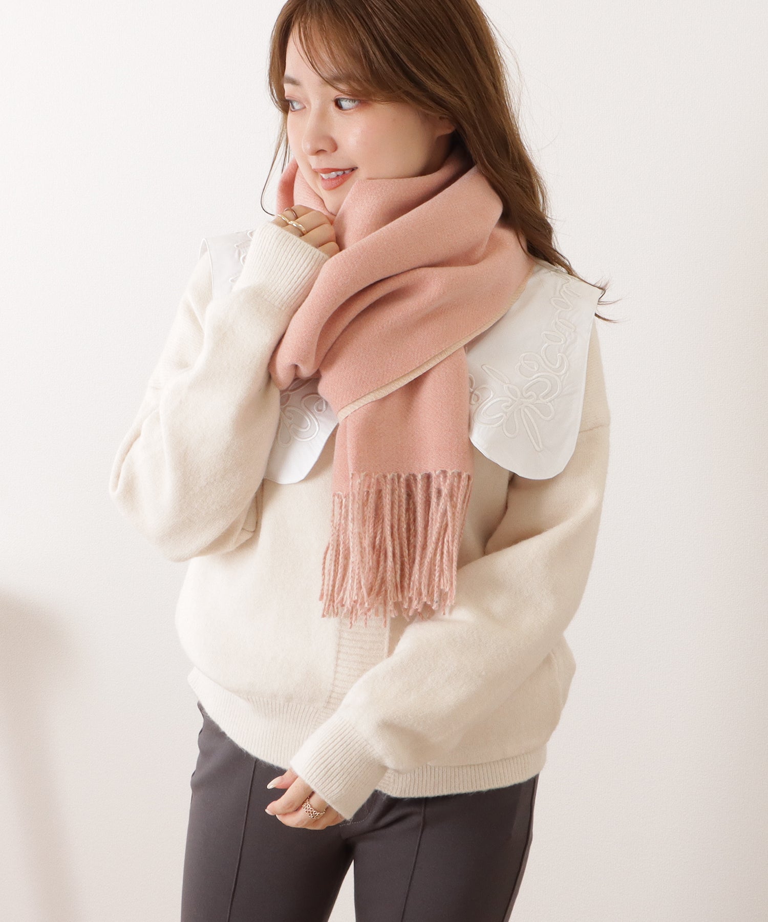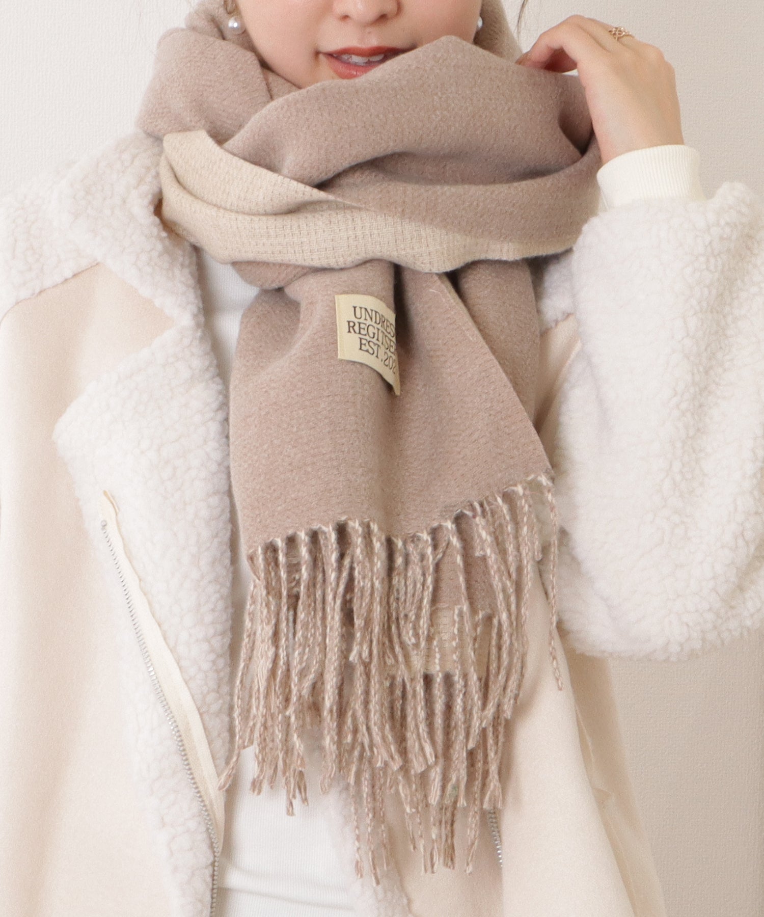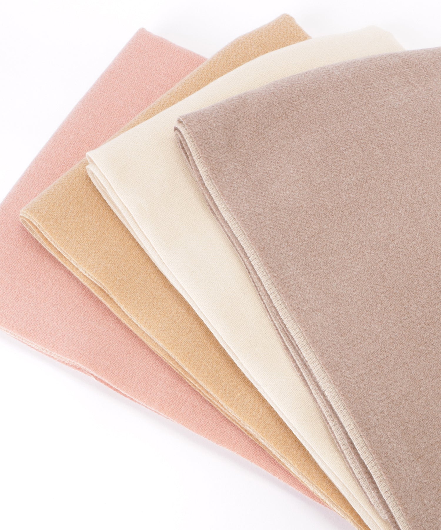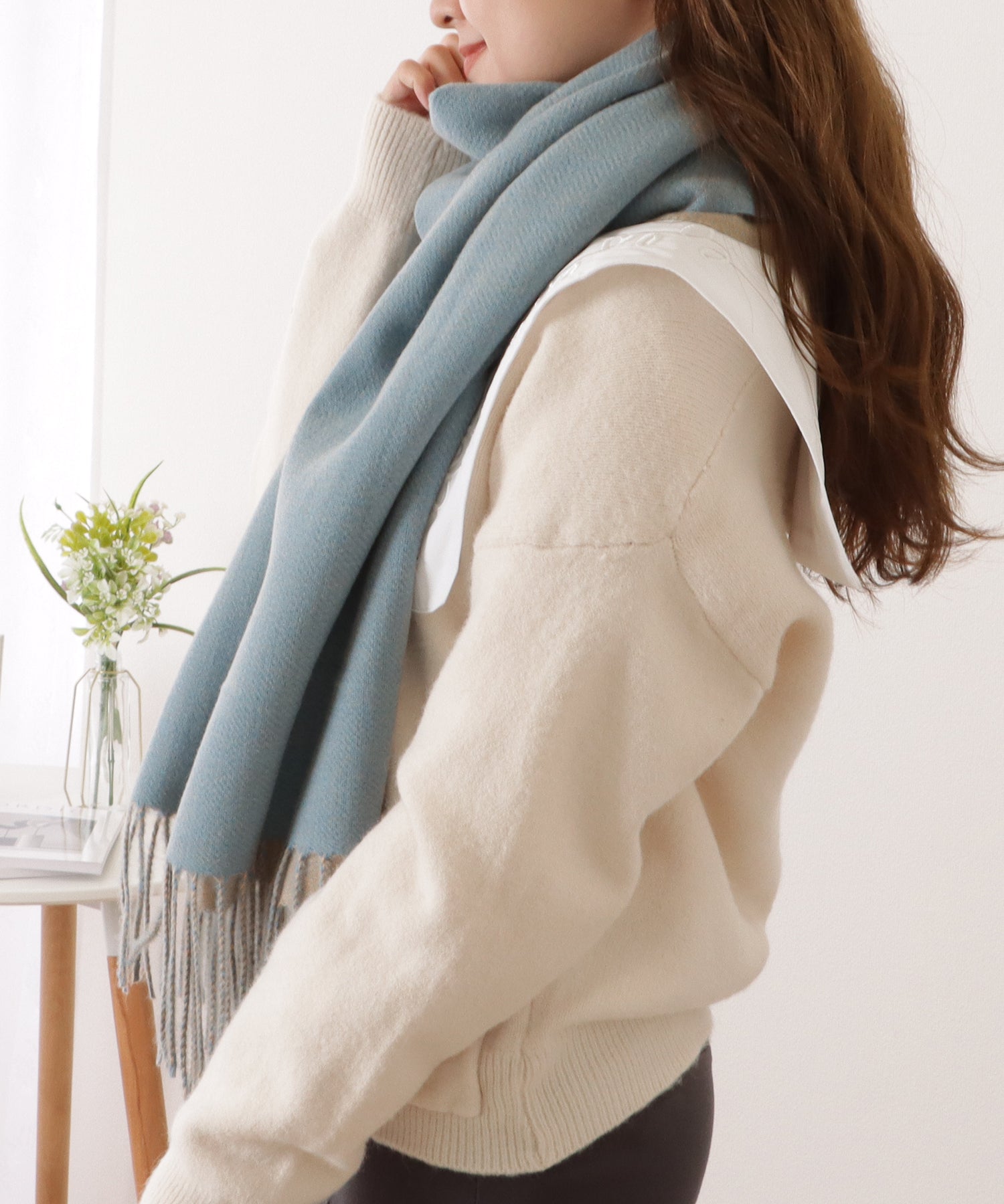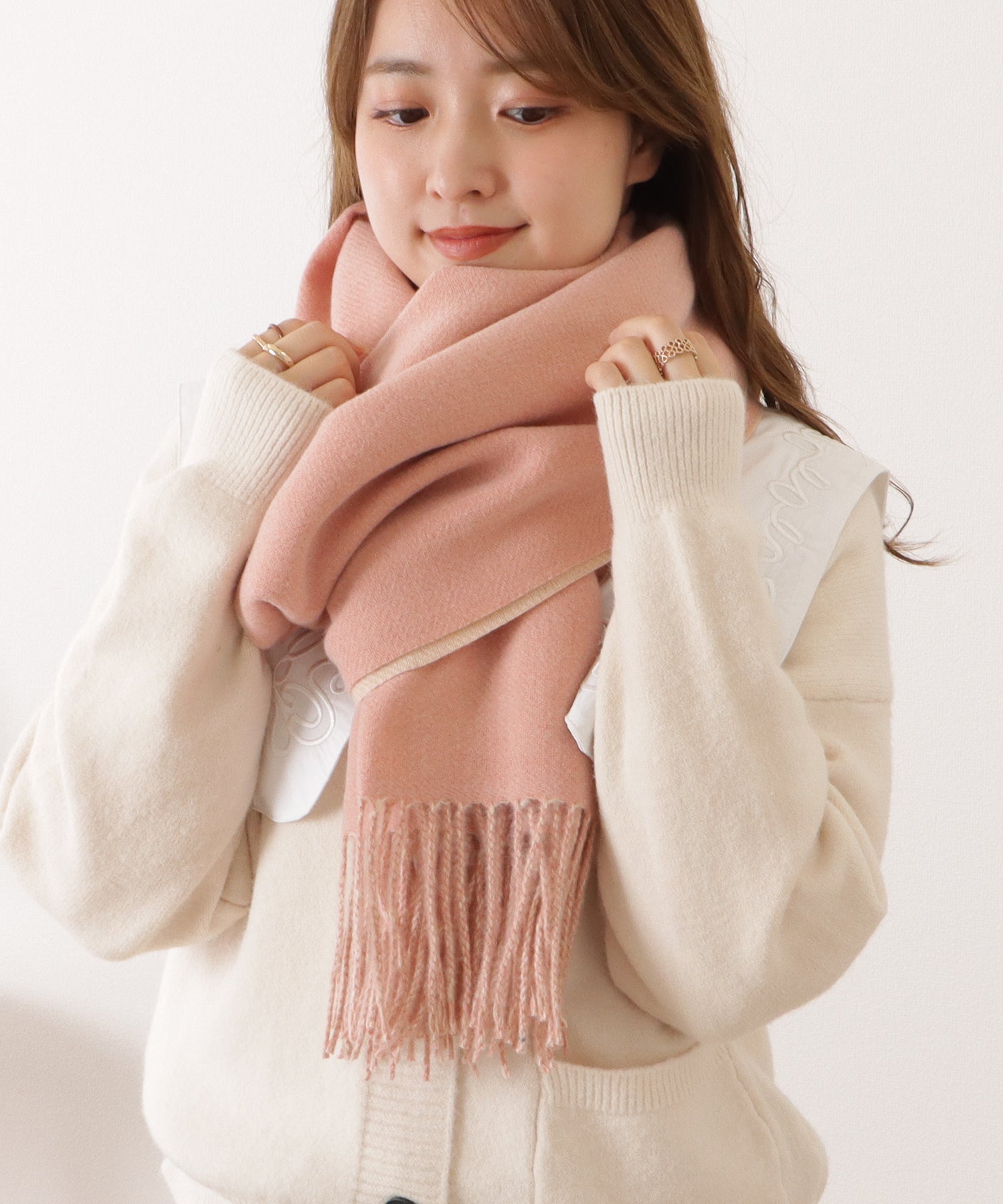 秋冬コーデの定番アイテムとして、羽織りやブランケットとしてもお使いいただける大判タイプ。