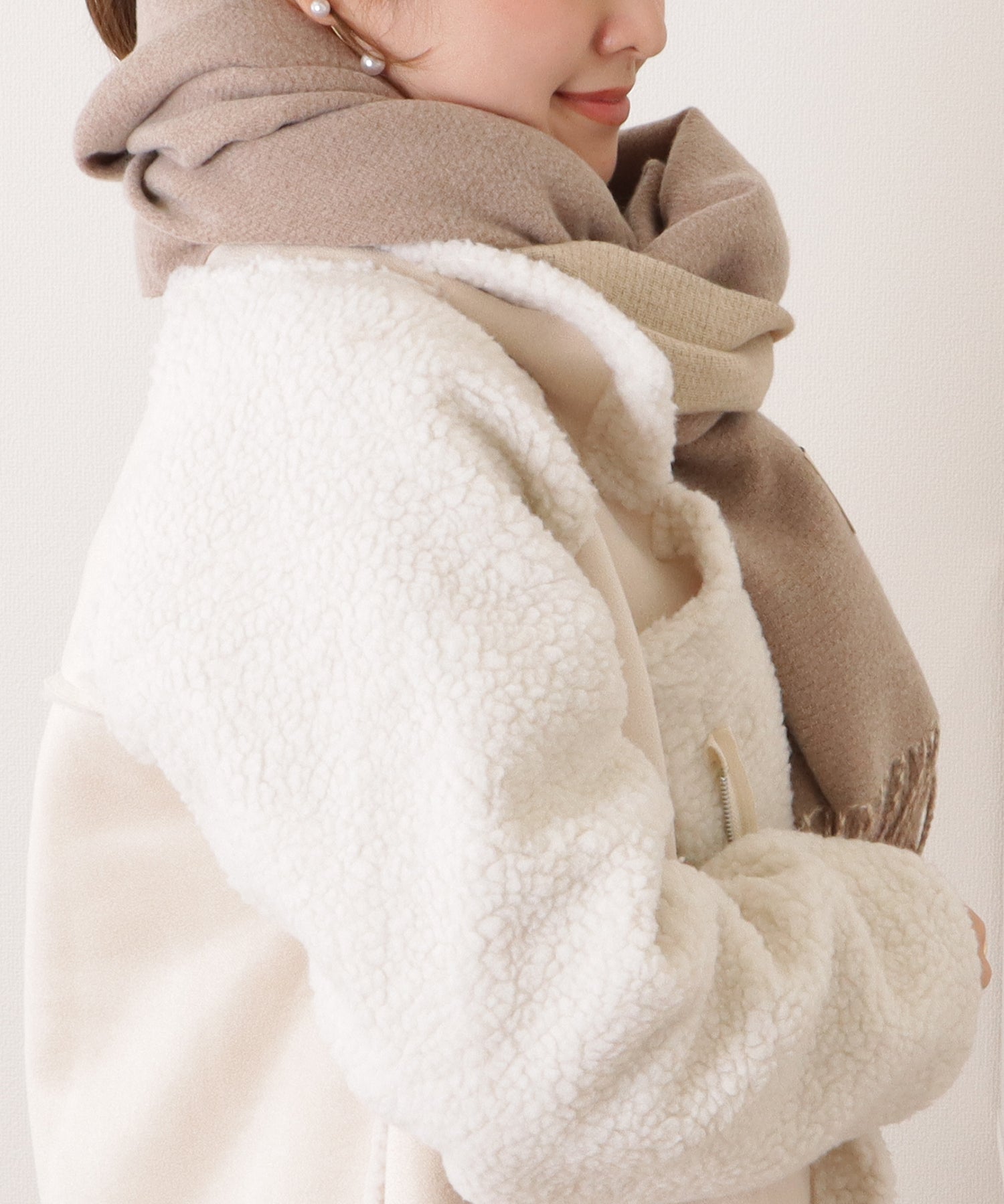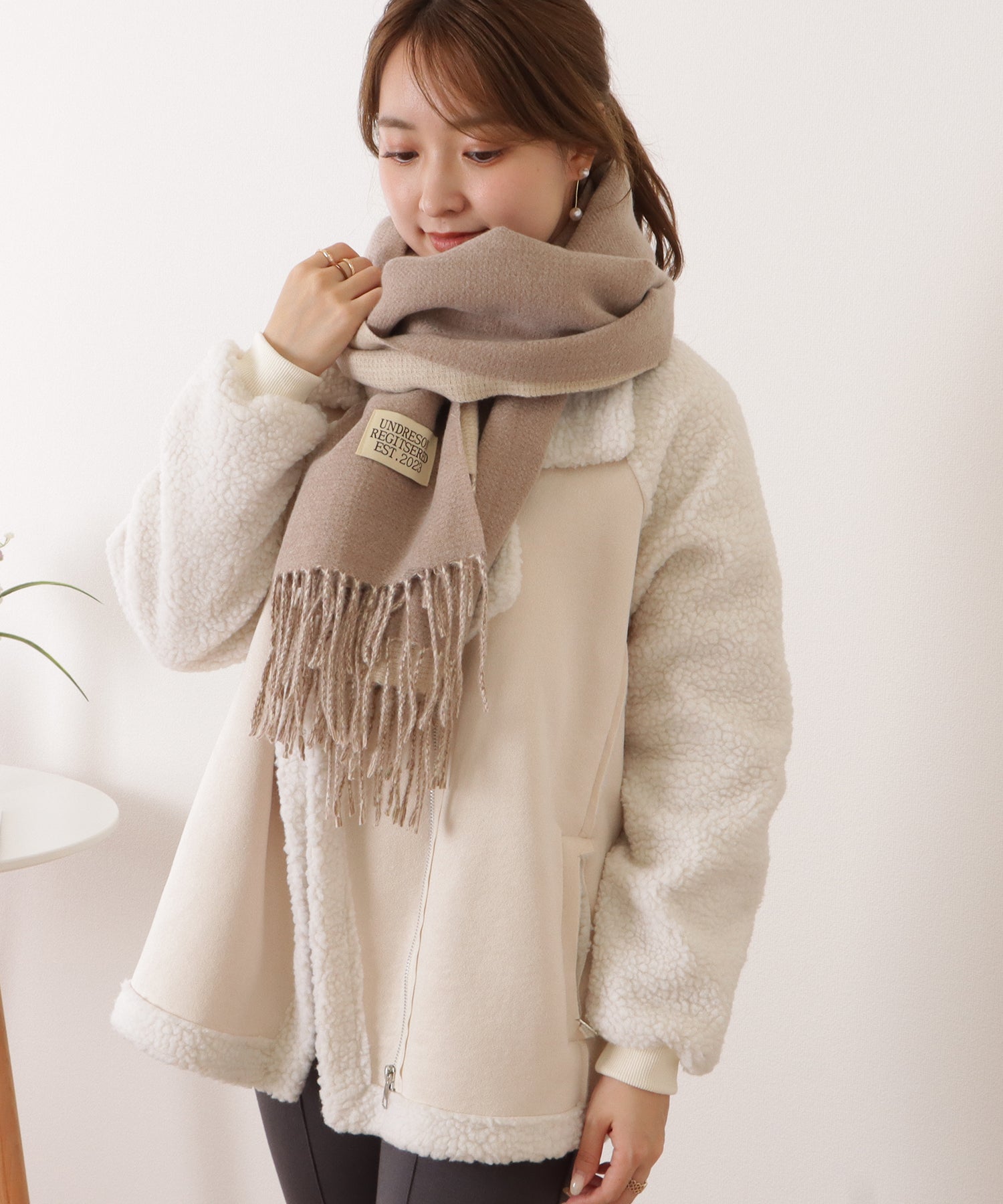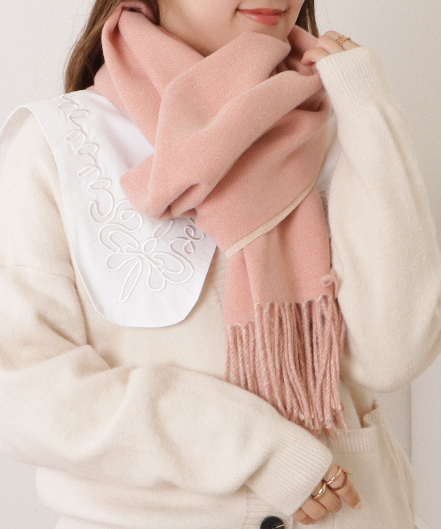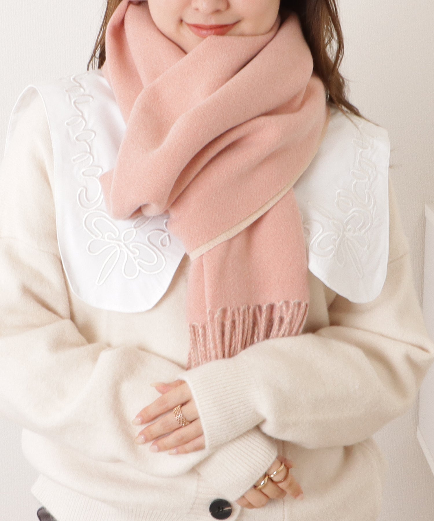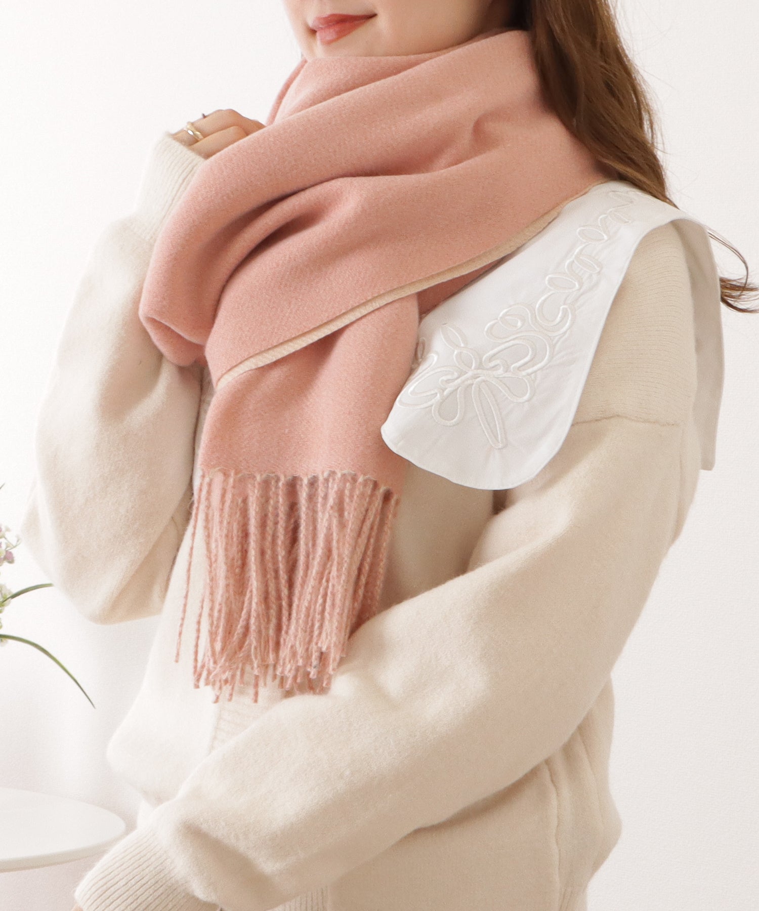秋冬コーデの定番アイテムとして、羽織りやブランケットとしてもお使いいただける大判タイプ。