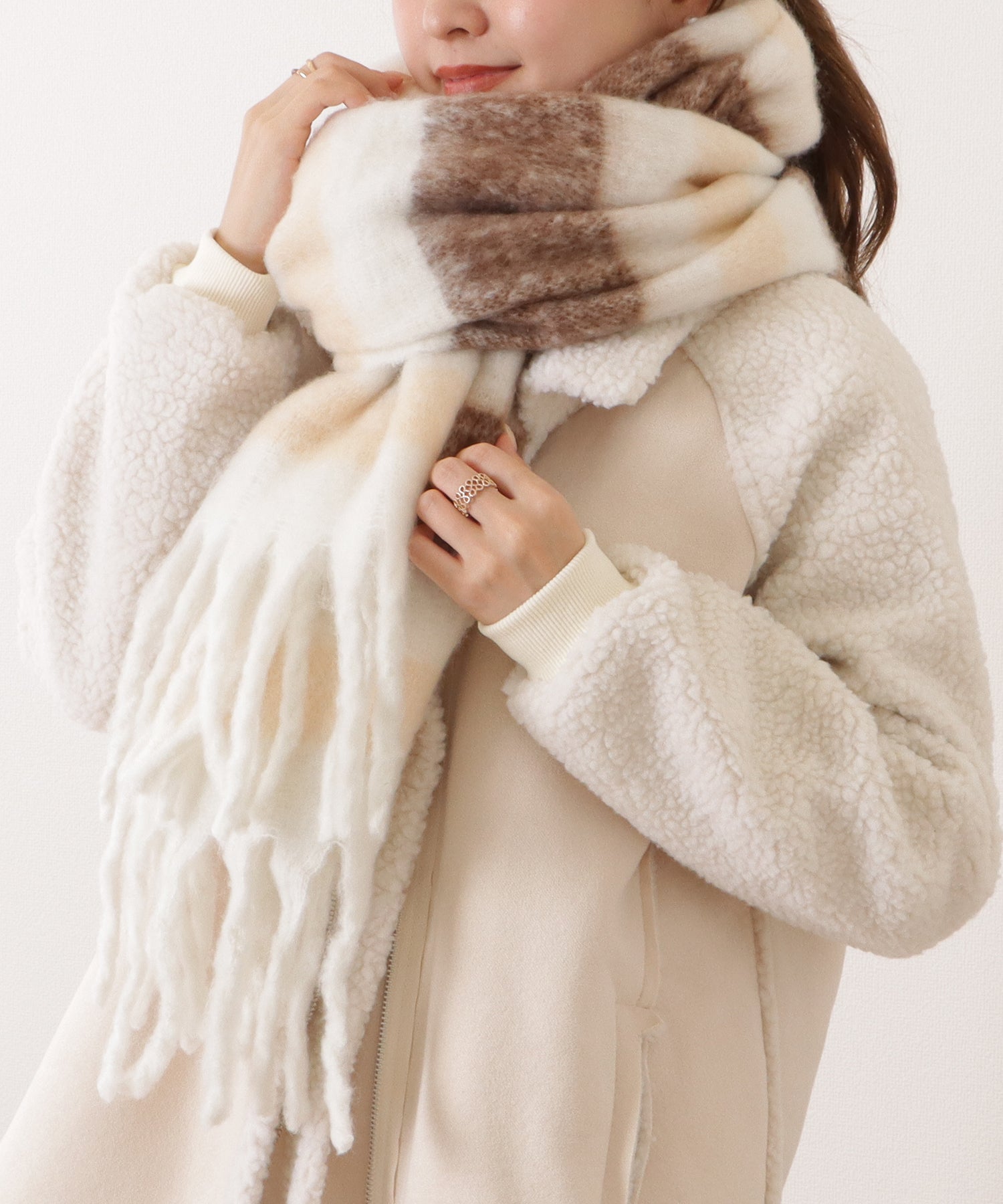 もっちりとした厚手生地があたたく、しっかりと防寒できる大判サイズも嬉しいところ。
