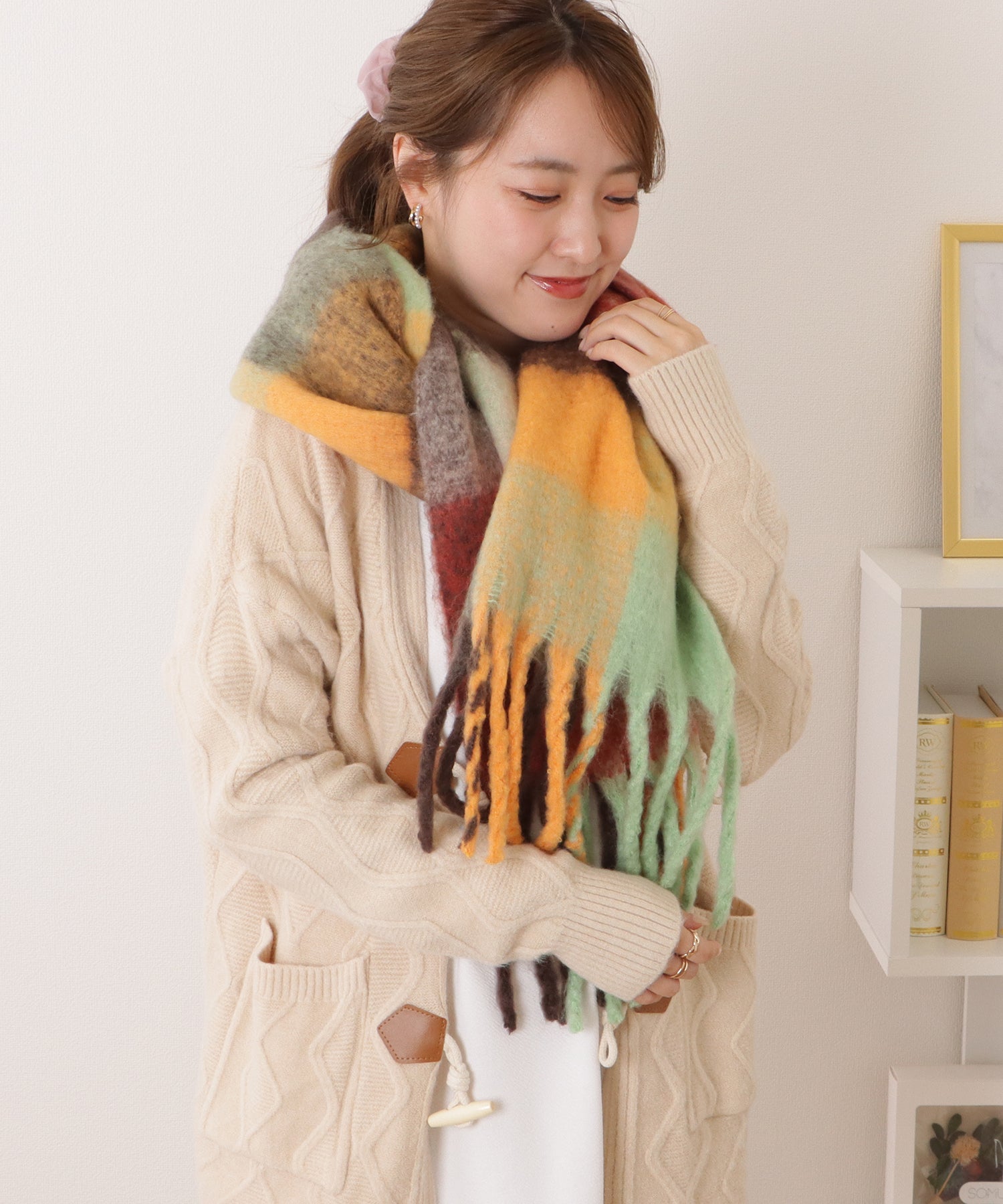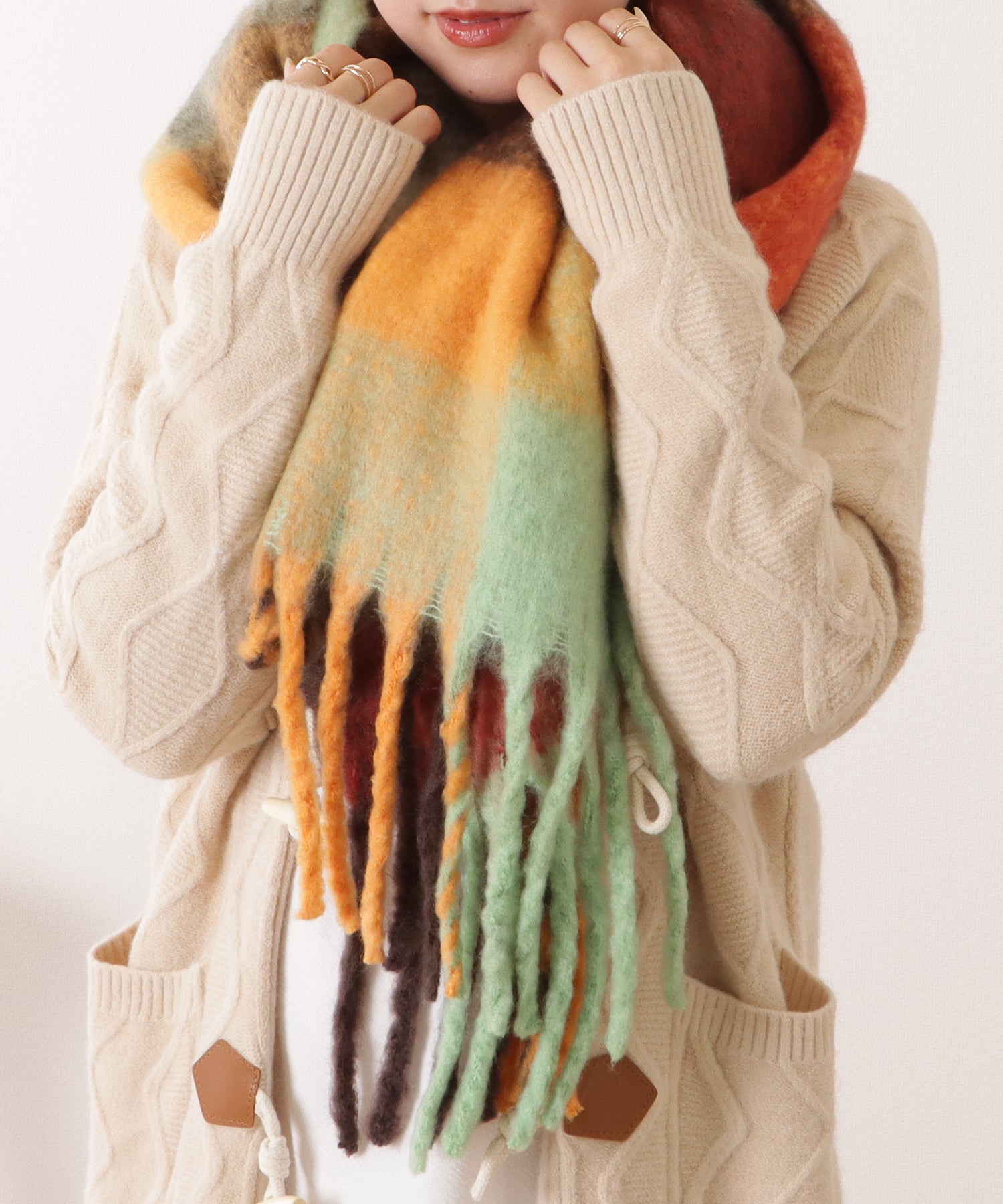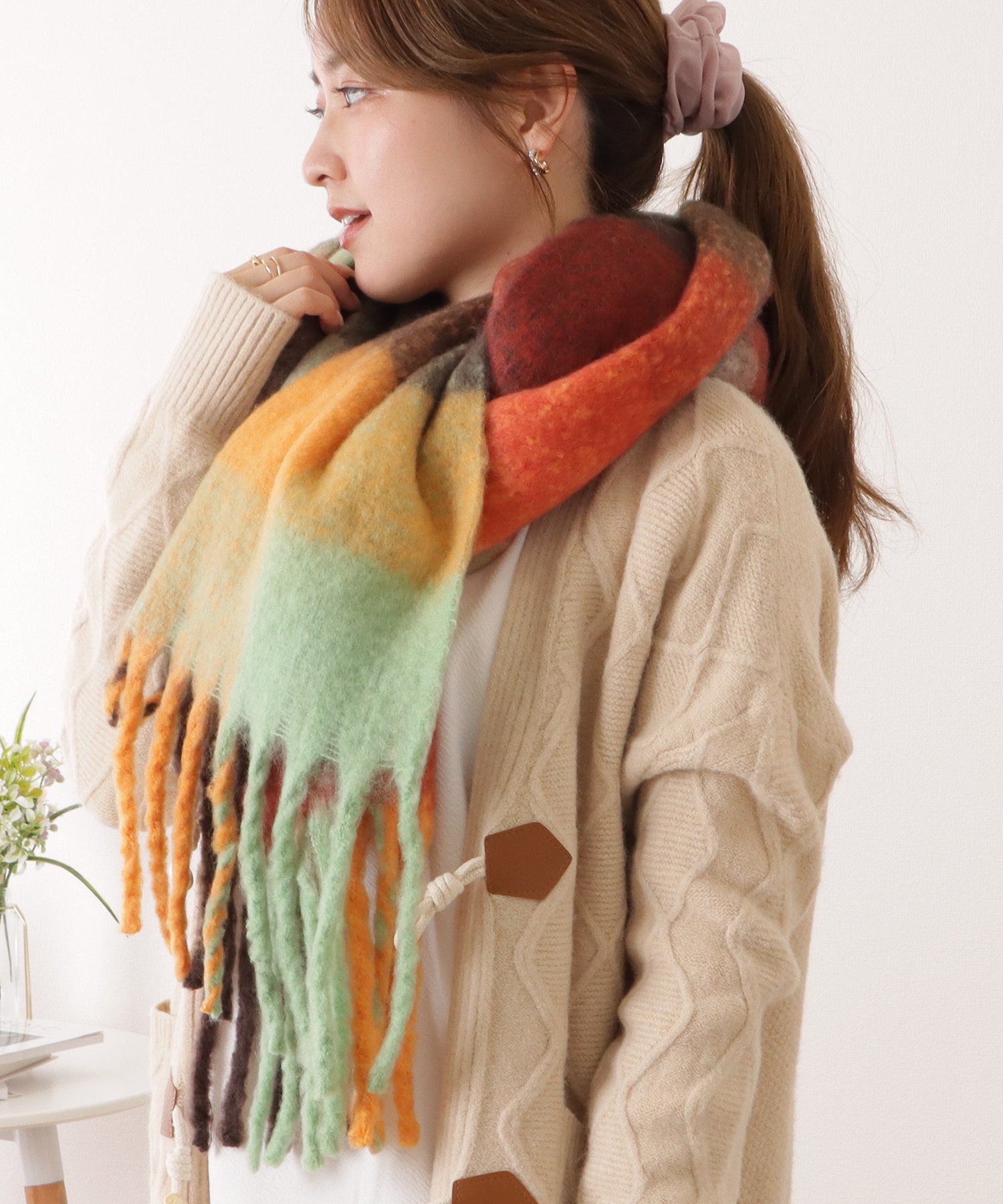 いつものコーデにプラスするだけで、装いがグッと華やぐカラフルなニットマフラー。