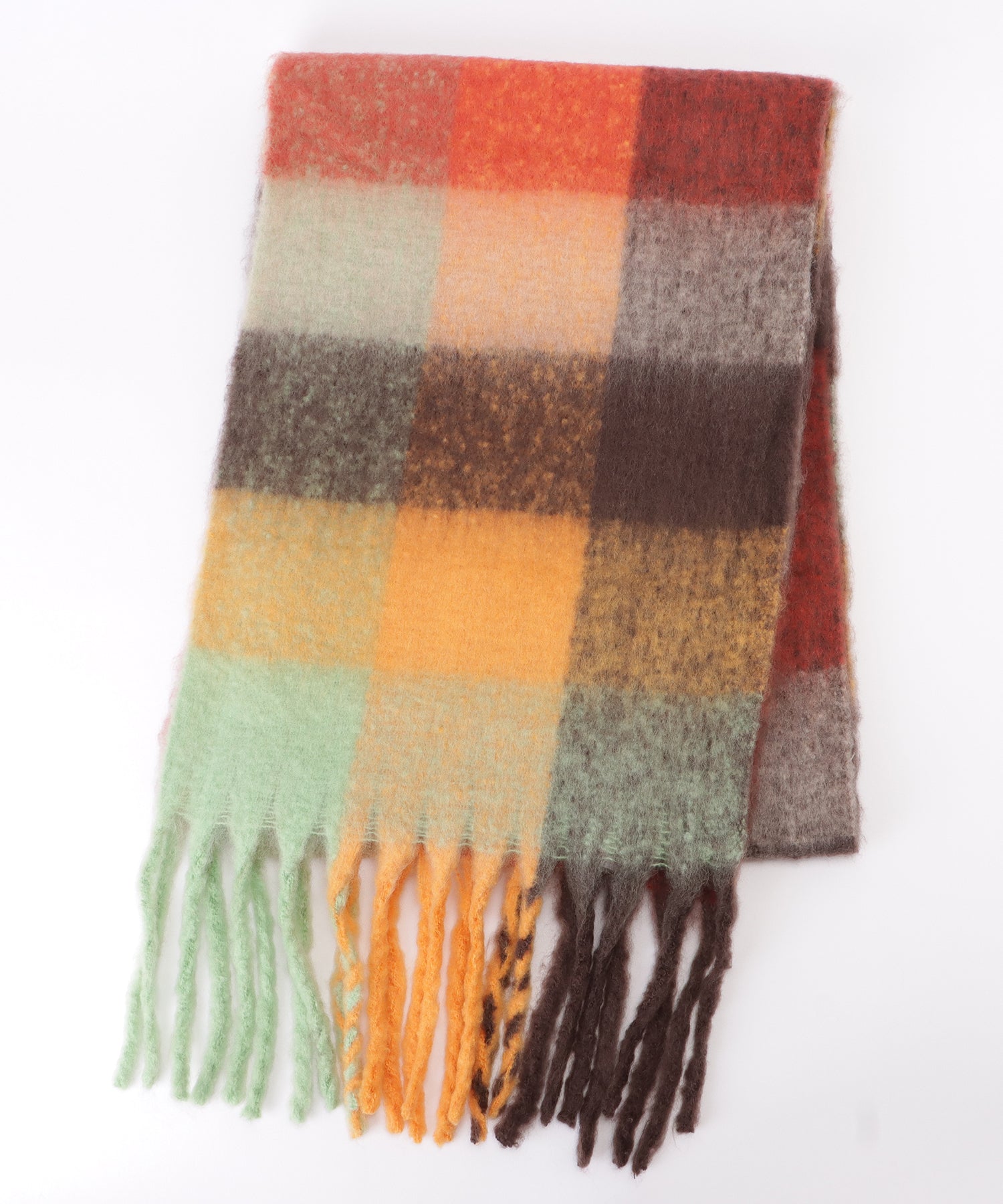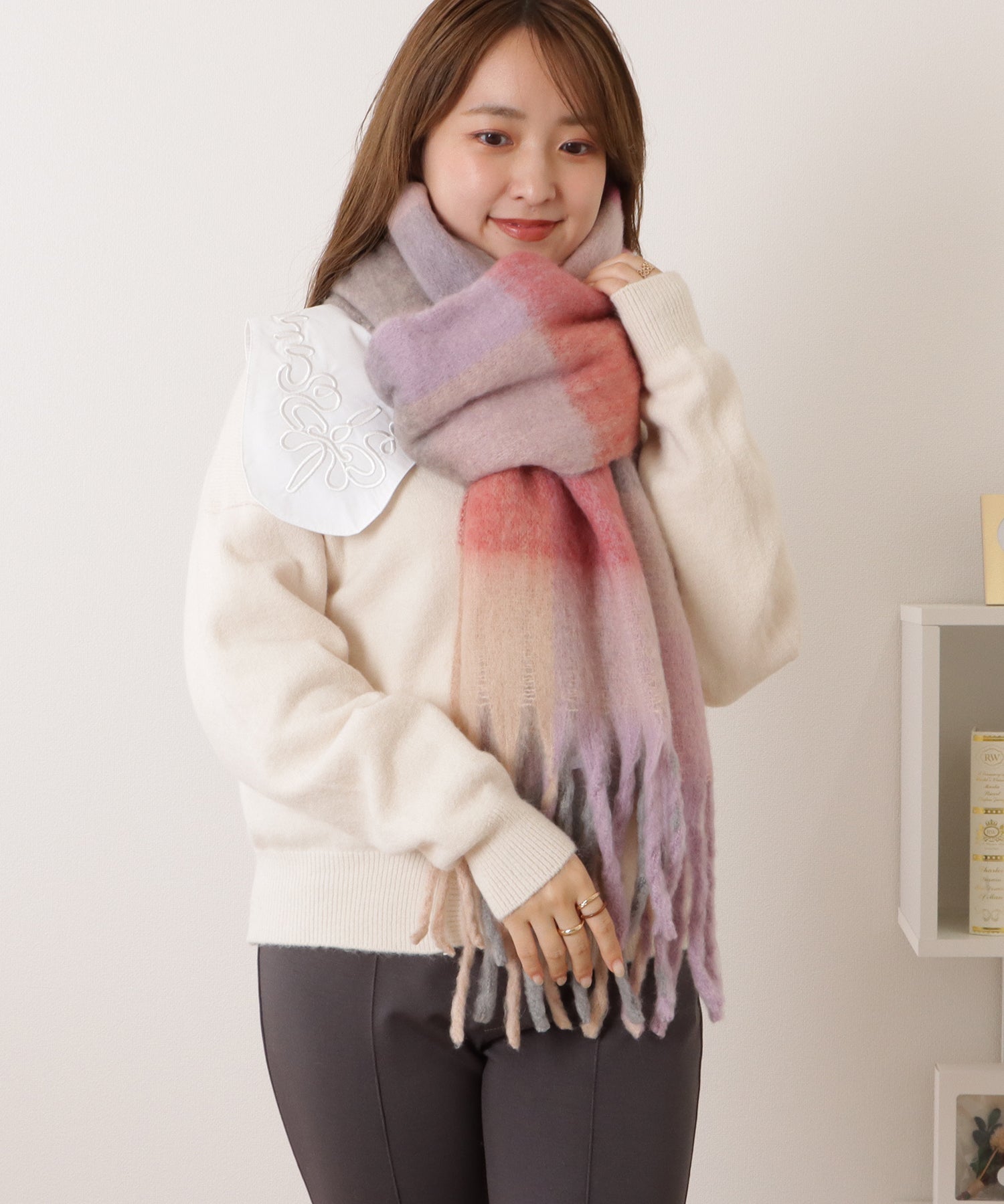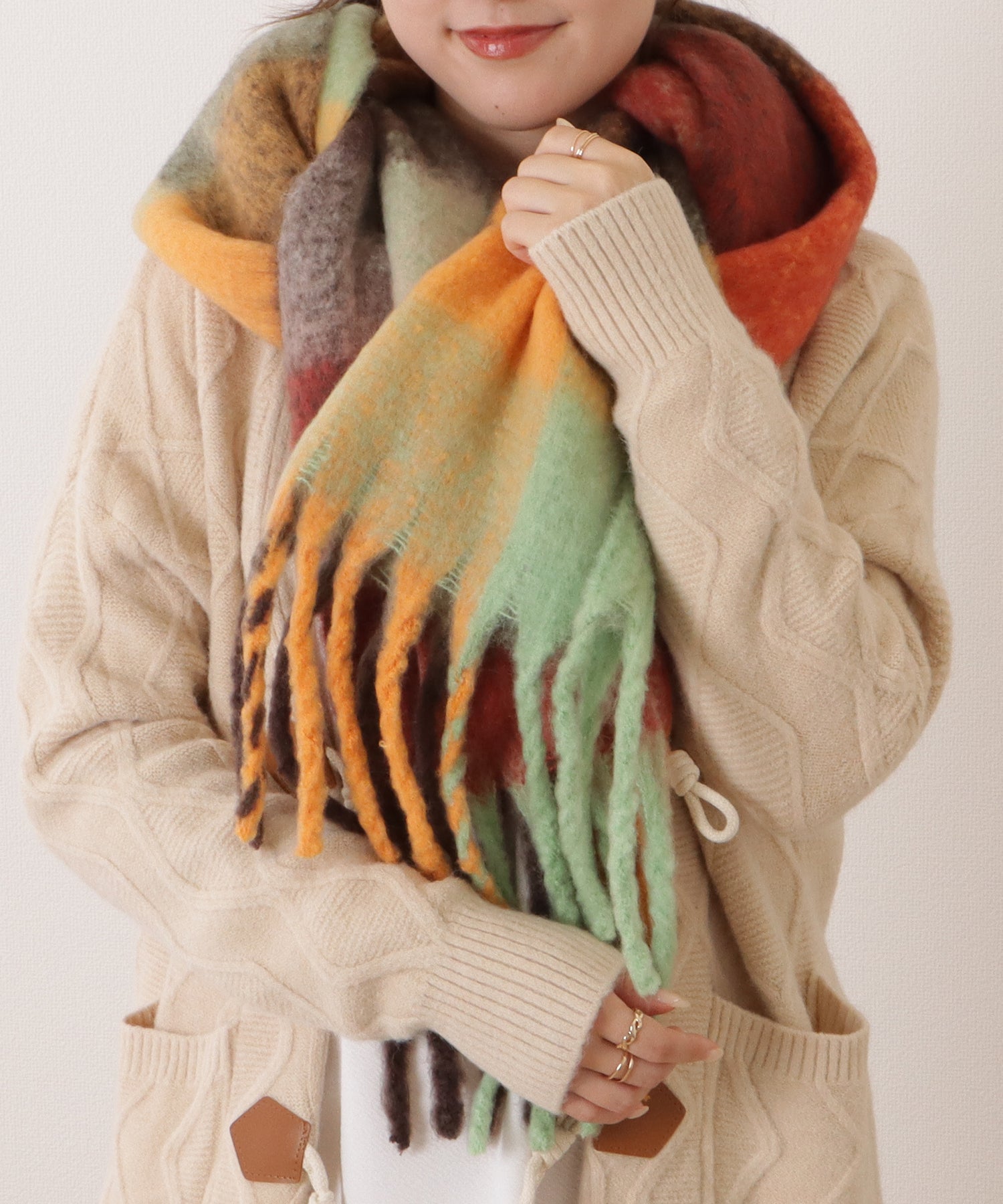 いつものコーデにプラスするだけで、装いがグッと華やぐカラフルなニットマフラー。