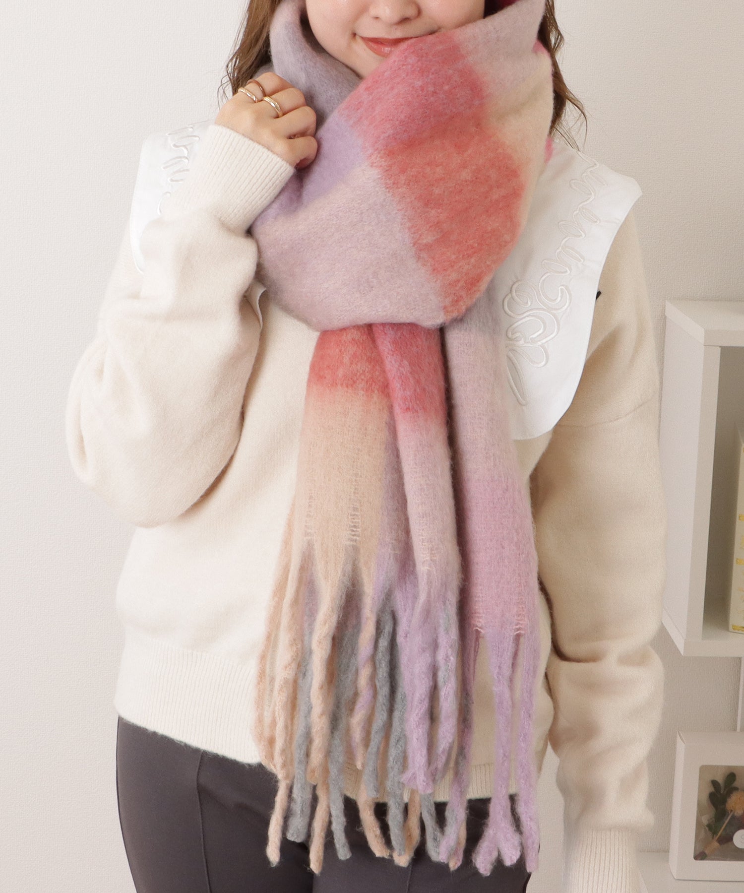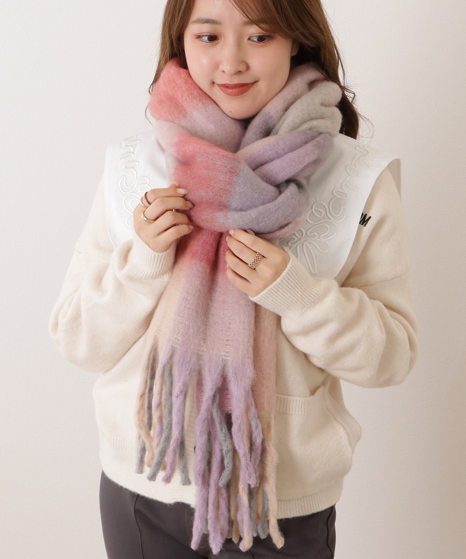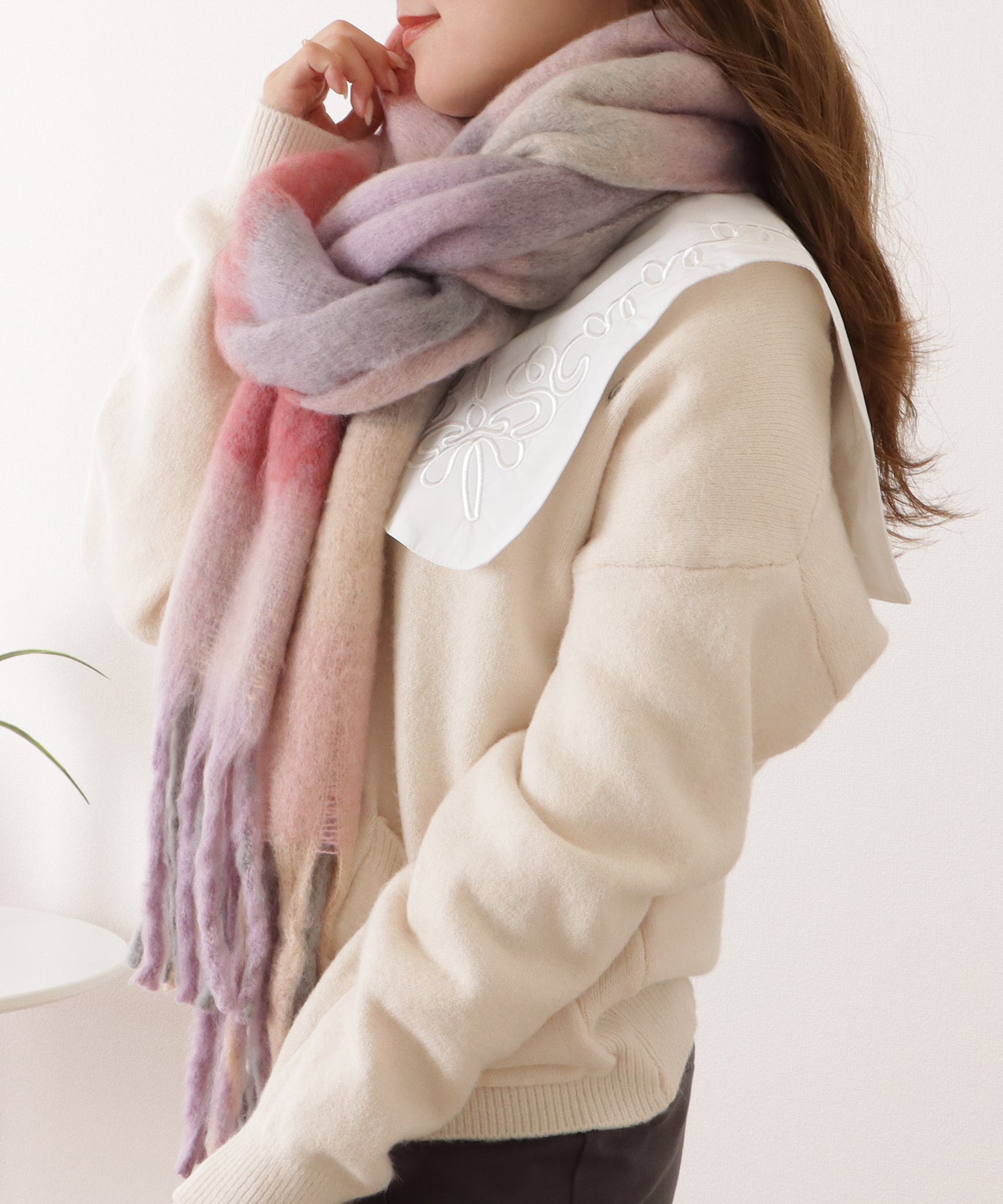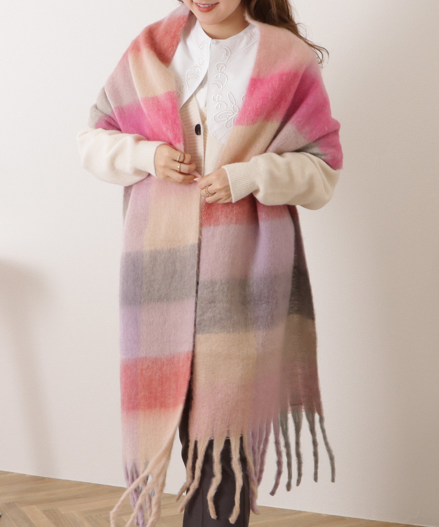 羽織りや膝掛け、ブランケット代わりとしてなど、マフラー以外の用途でもお使いいただけます。