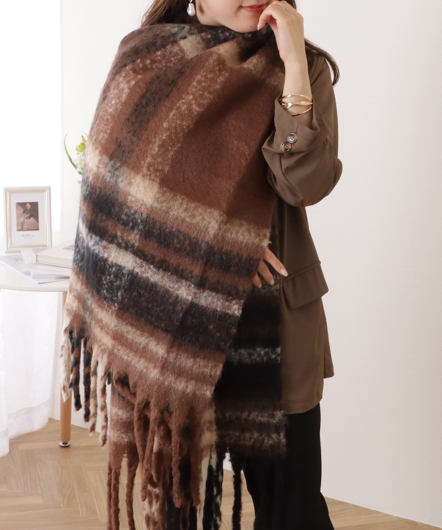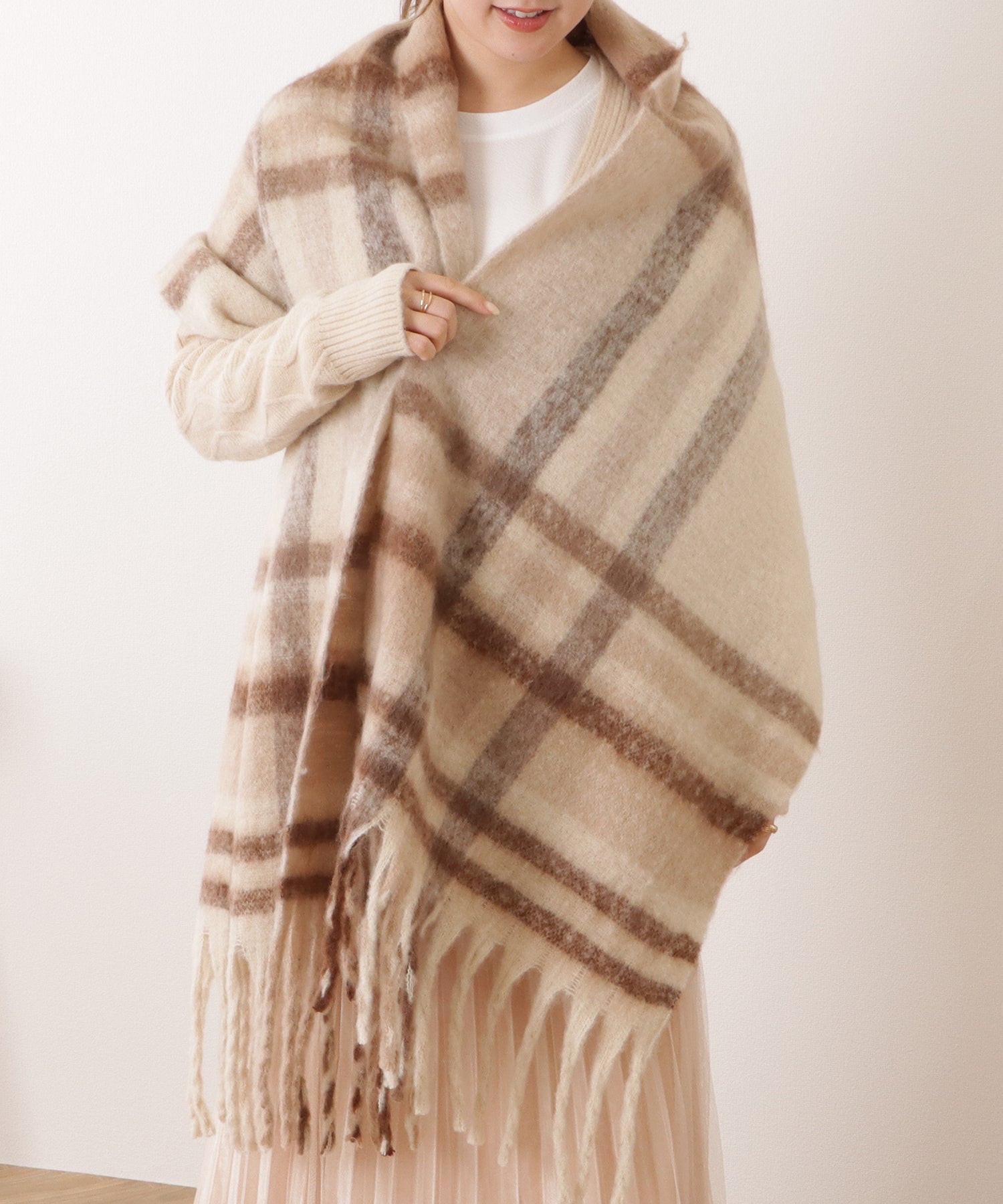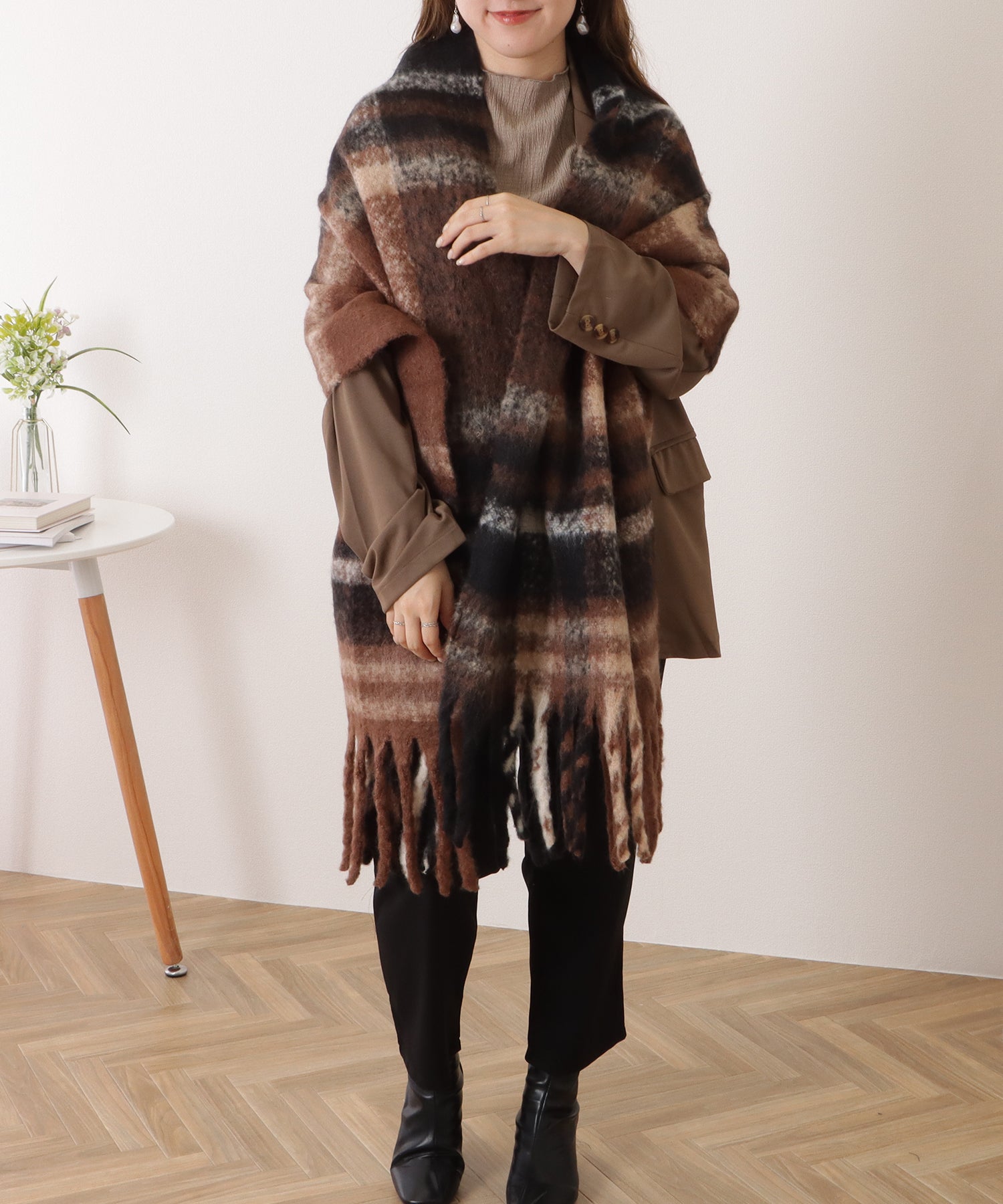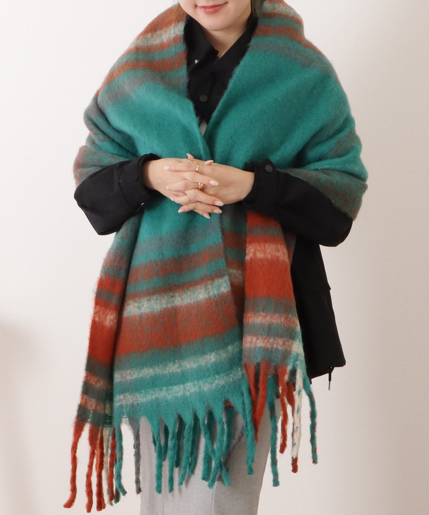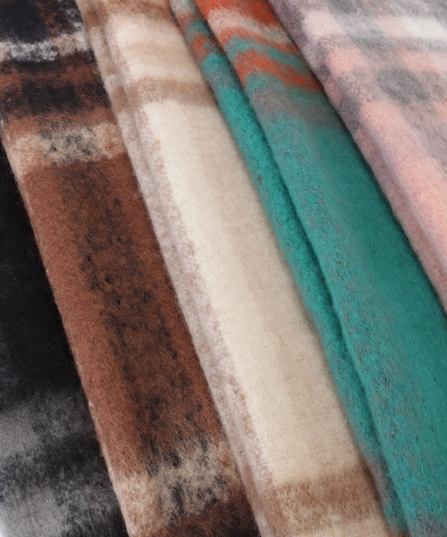 存在感のある大判サイズで、ショールやブランケットとしてなどマルチにお使いいただけるのも嬉しいところ。