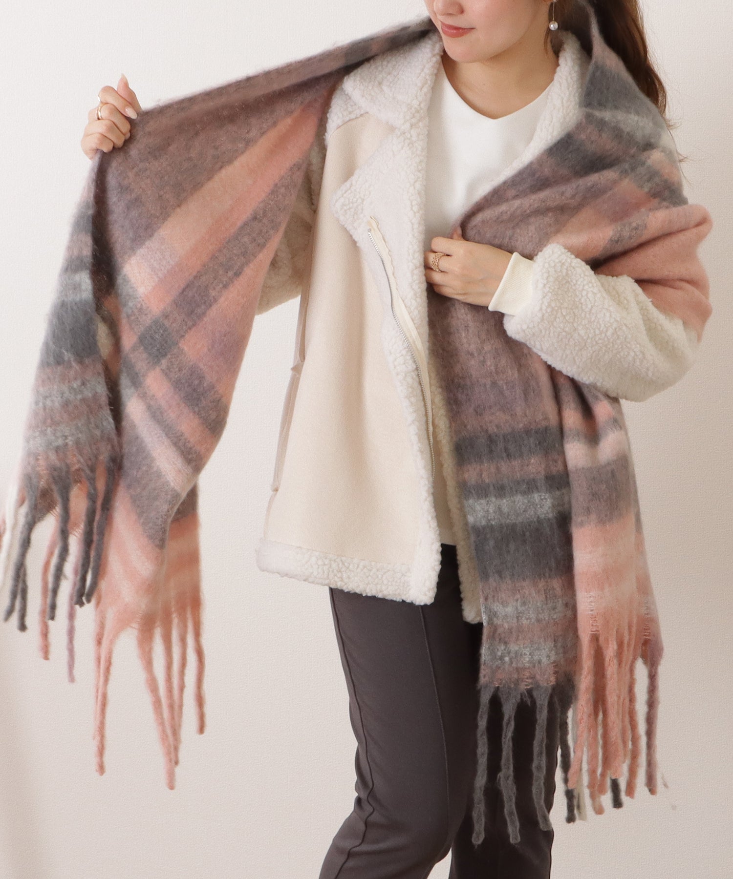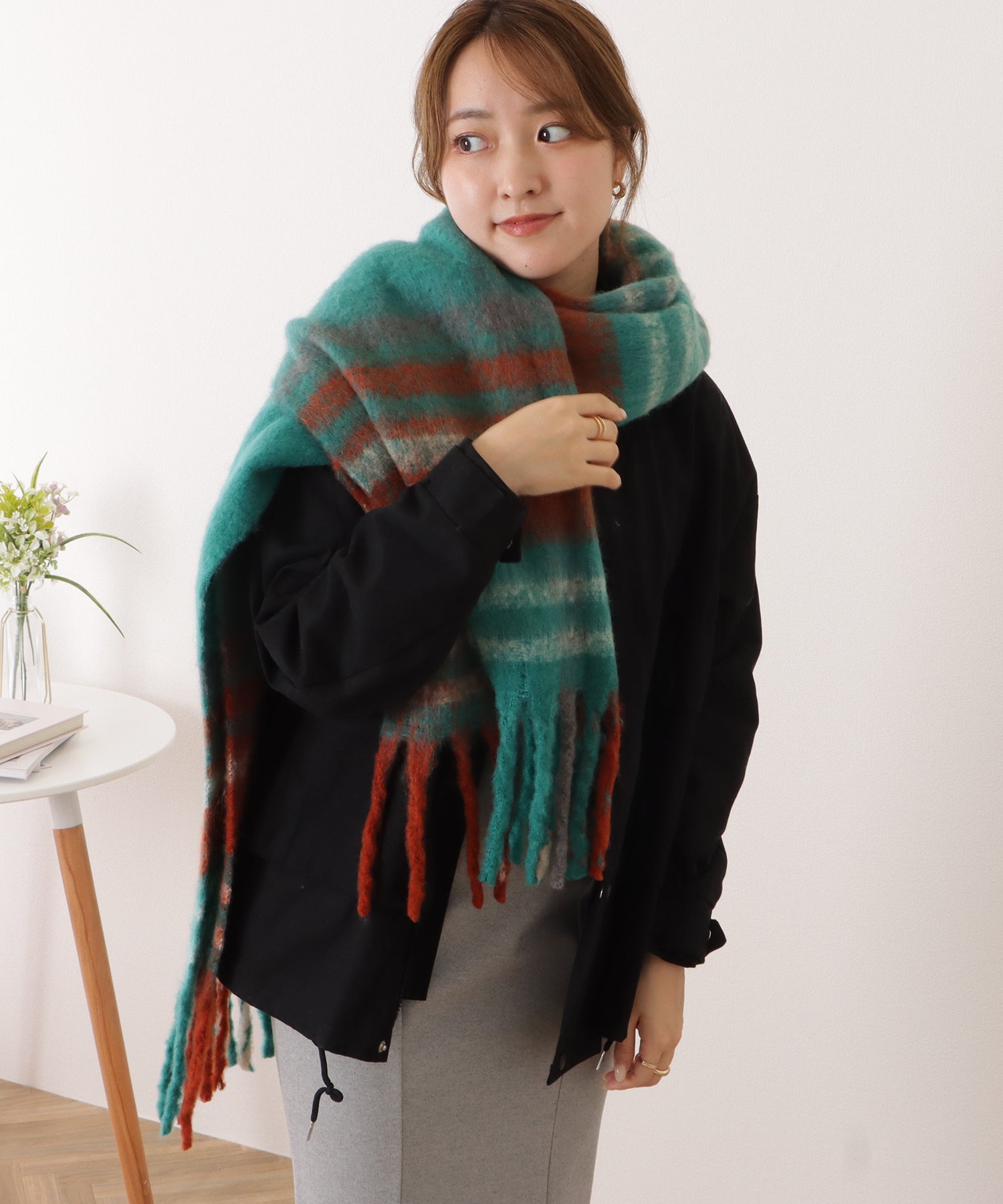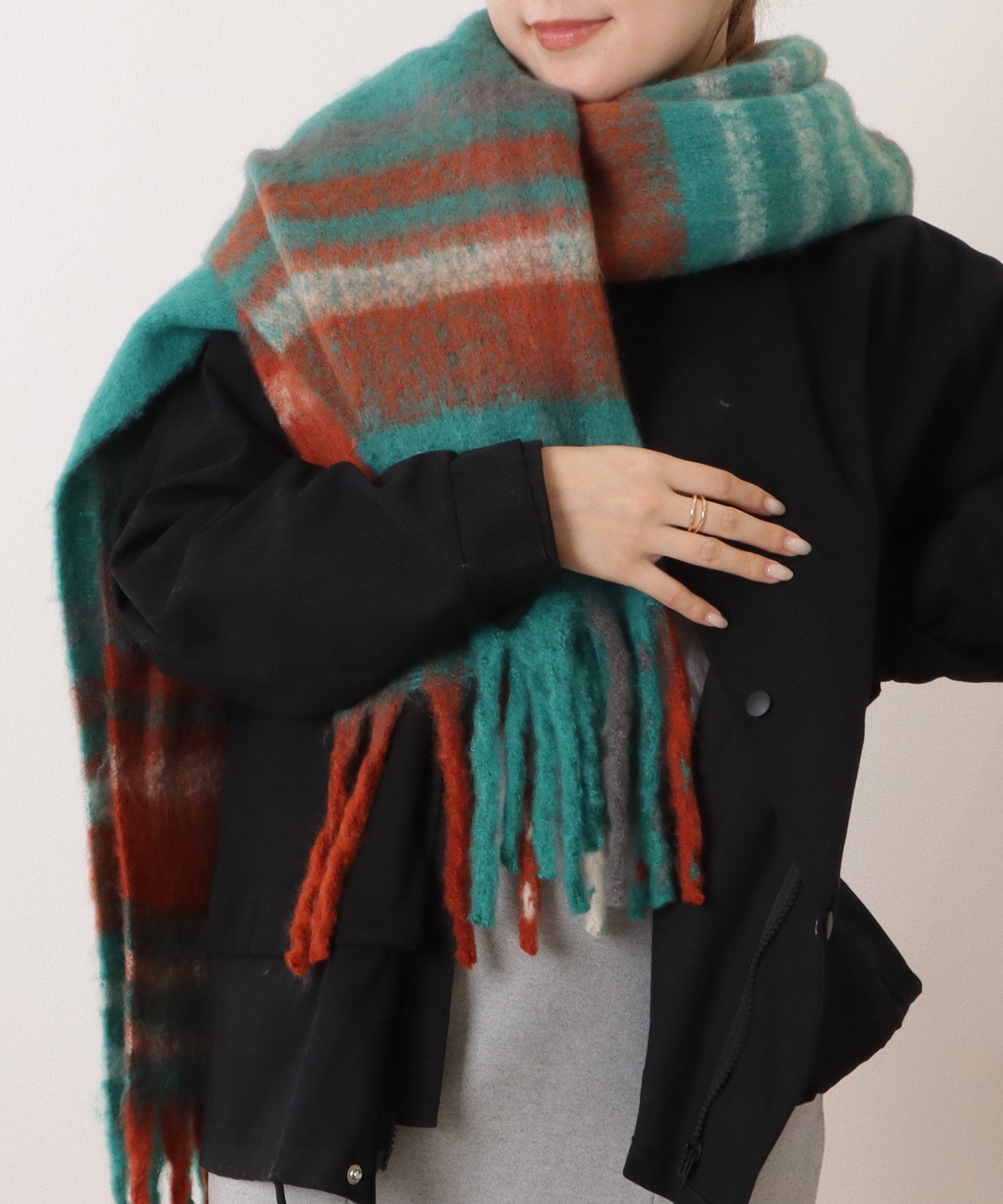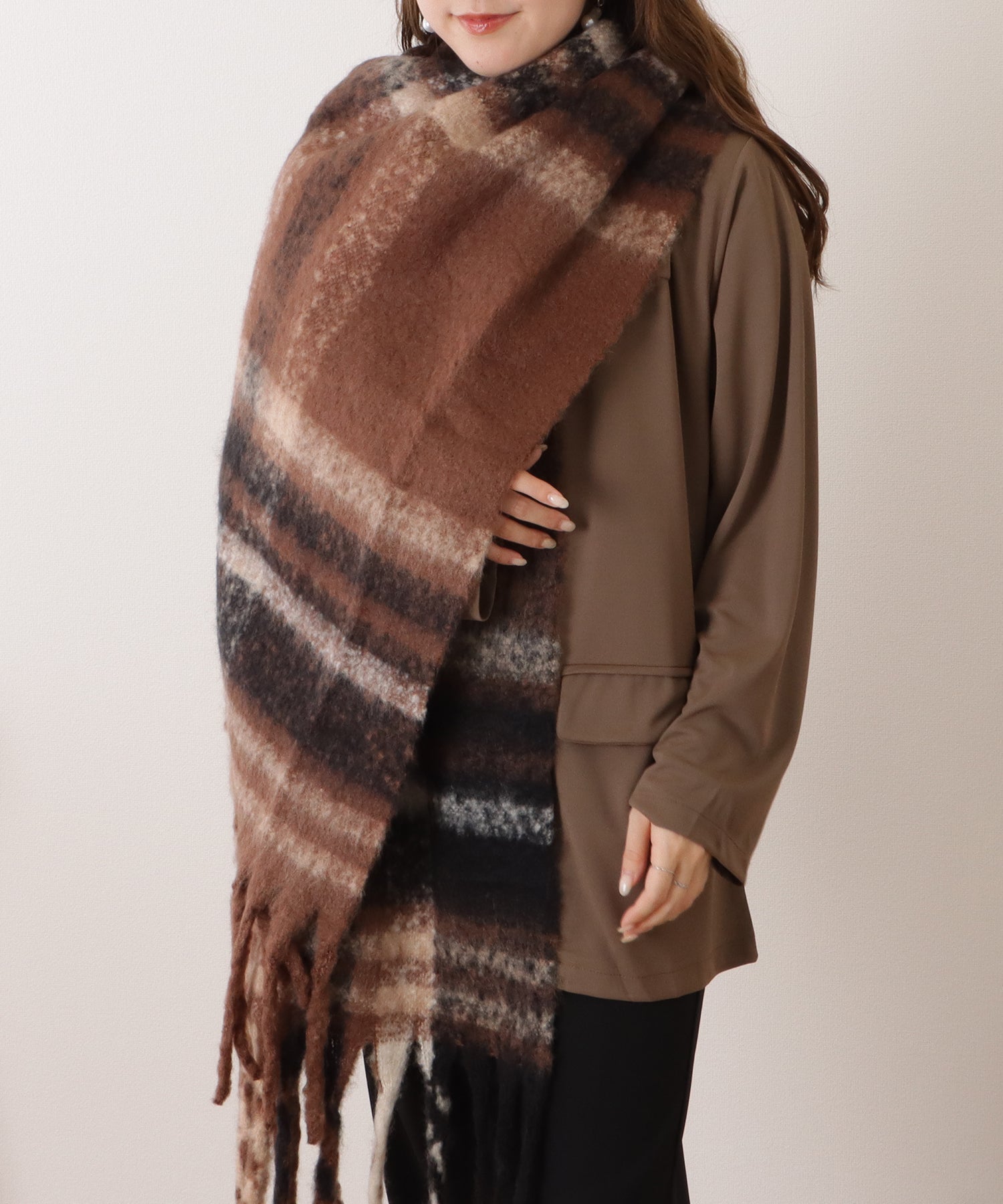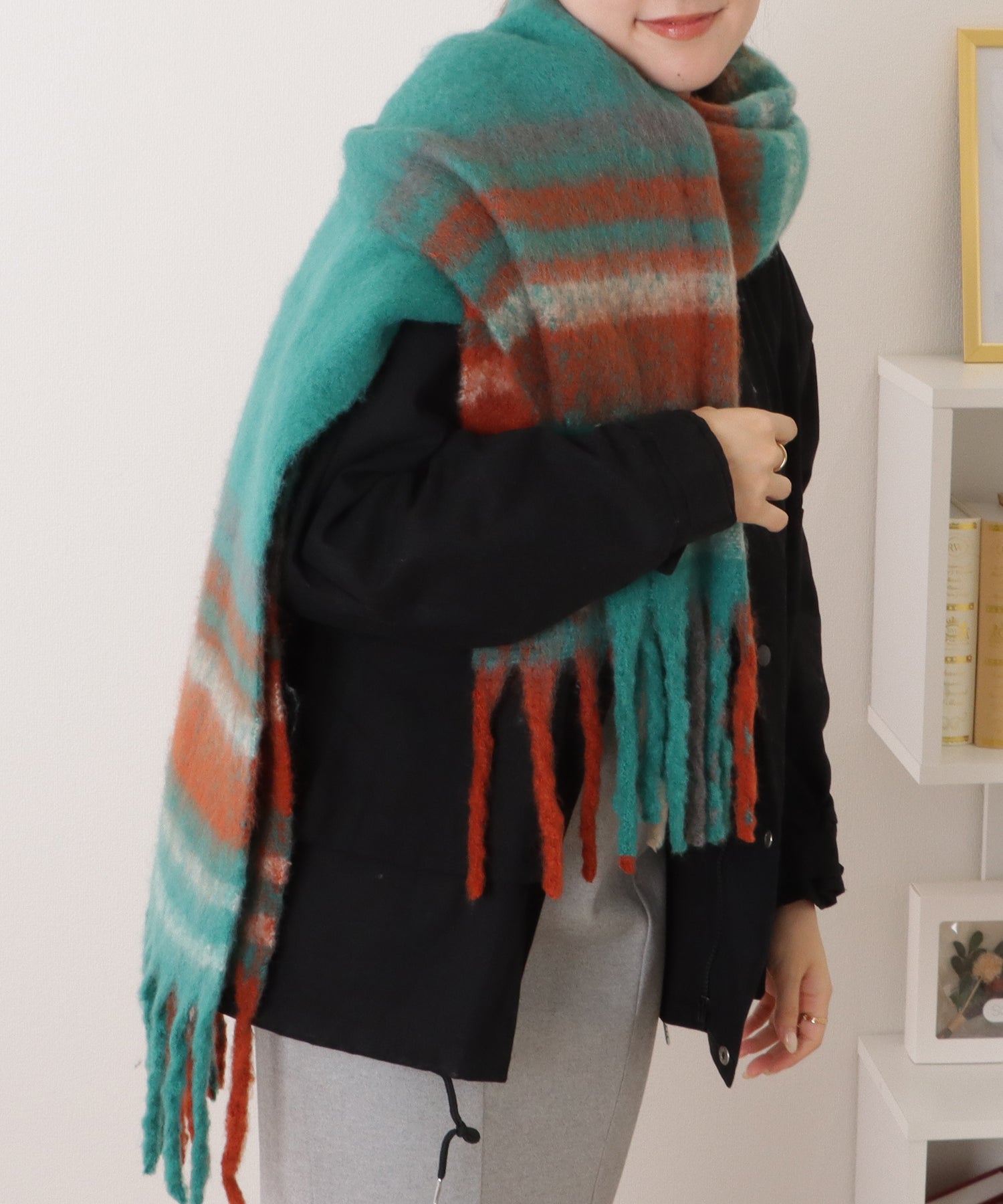 存在感のある大判サイズで、ショールやブランケットとしてなどマルチにお使いいただけるのも嬉しいところ。