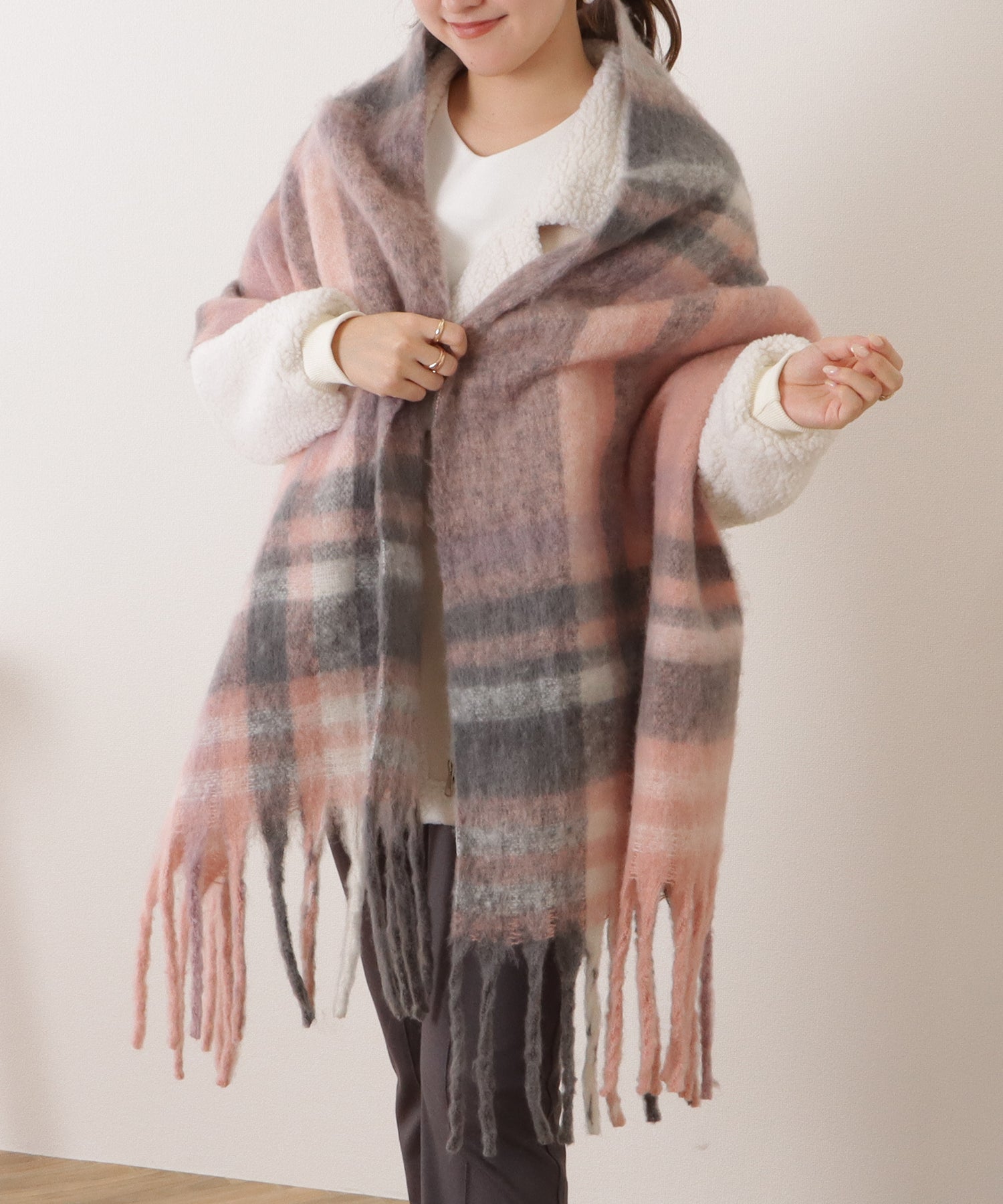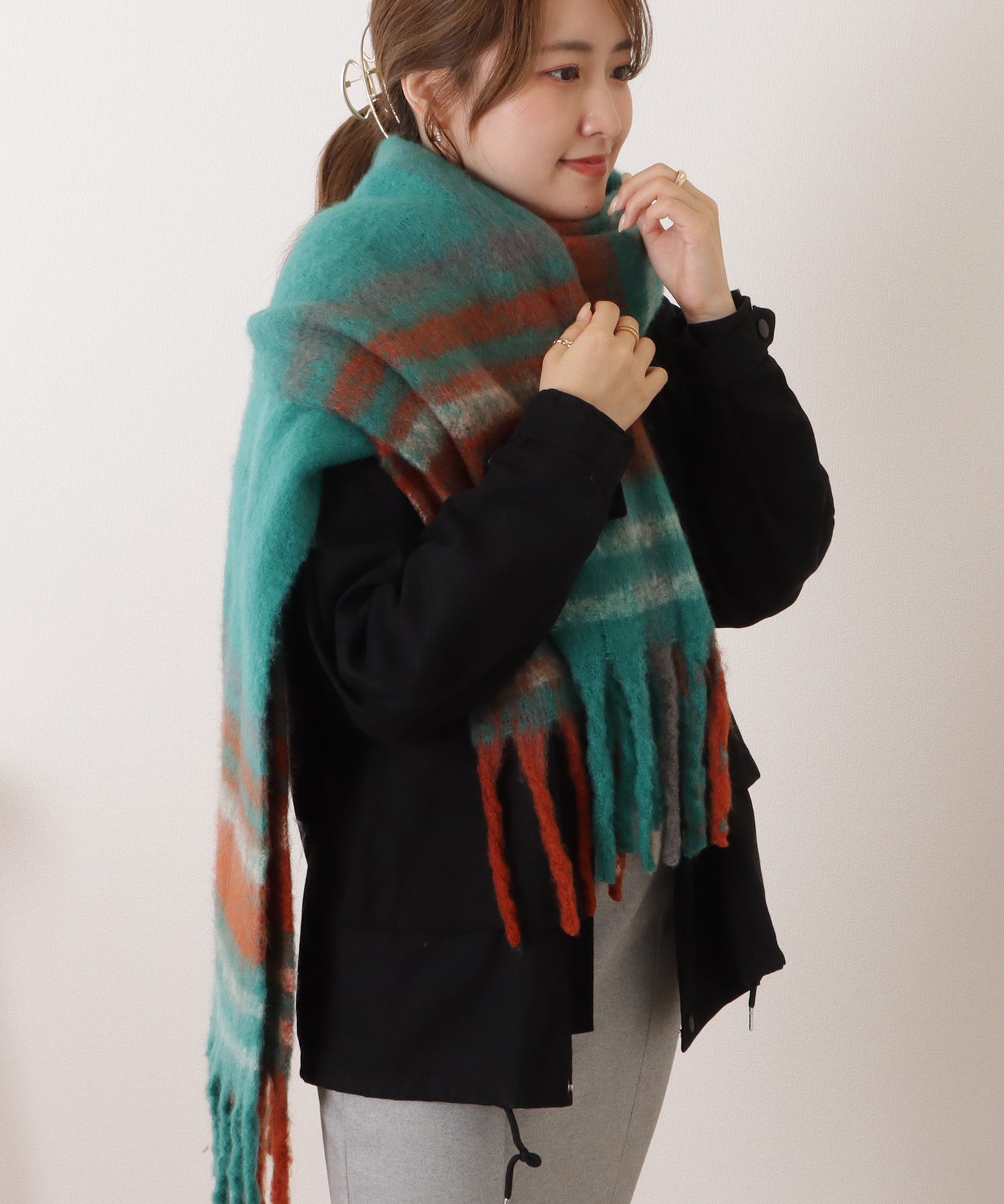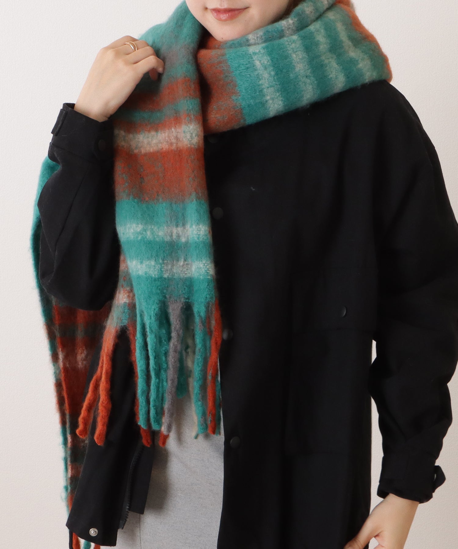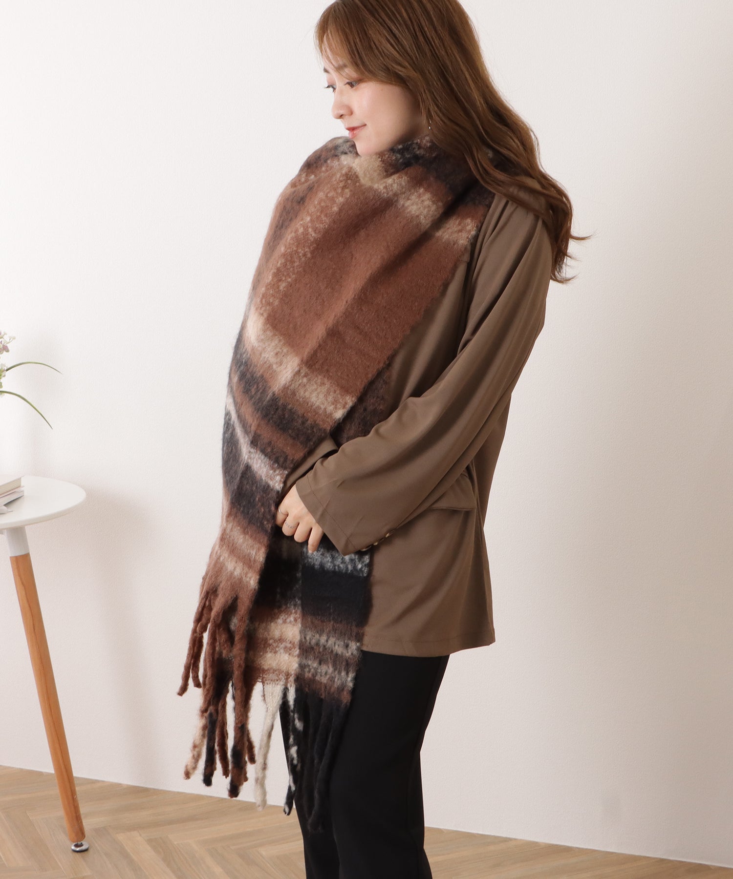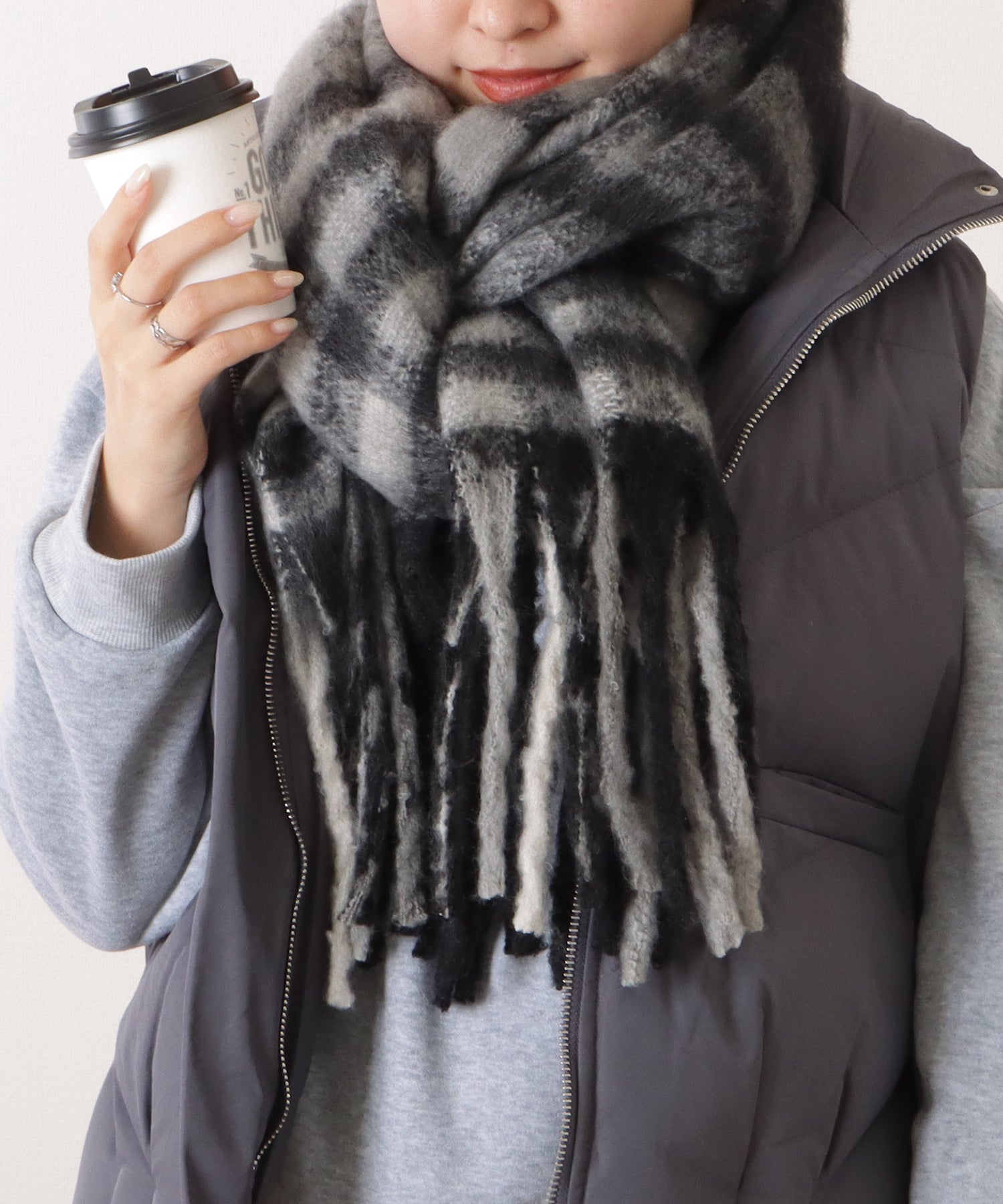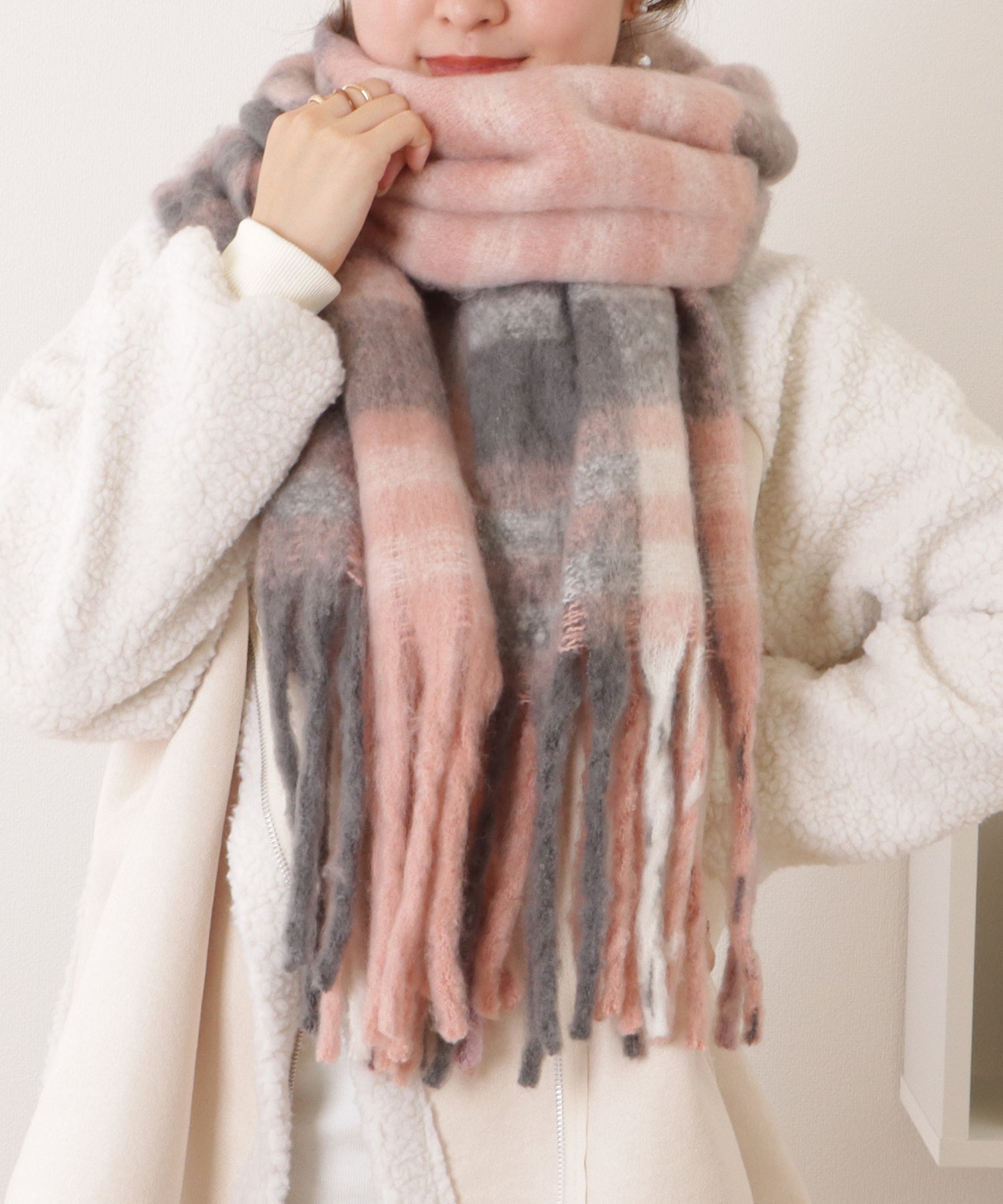 存在感のある大判サイズで、ショールやブランケットとしてなどマルチにお使いいただけるのも嬉しいところ。