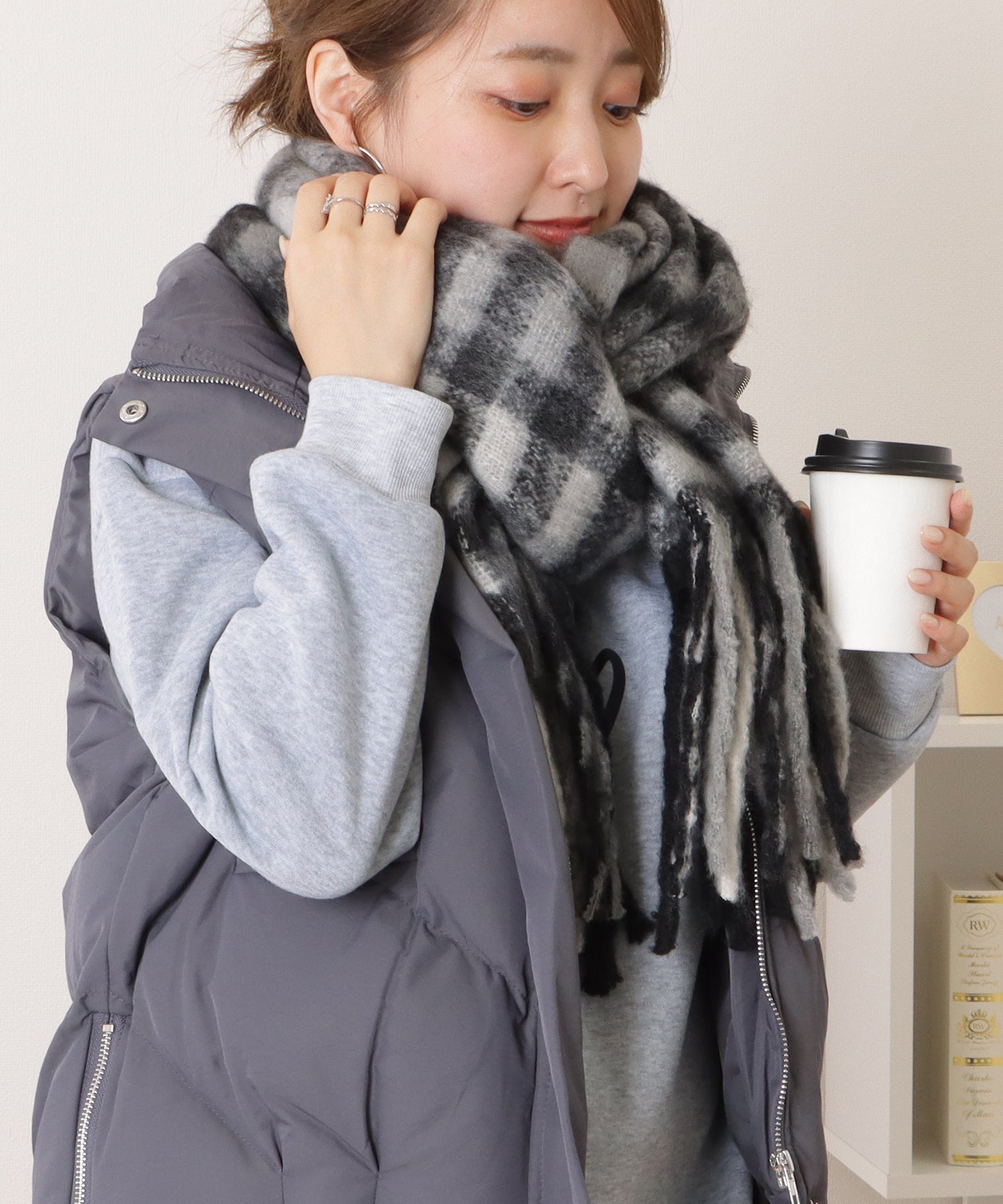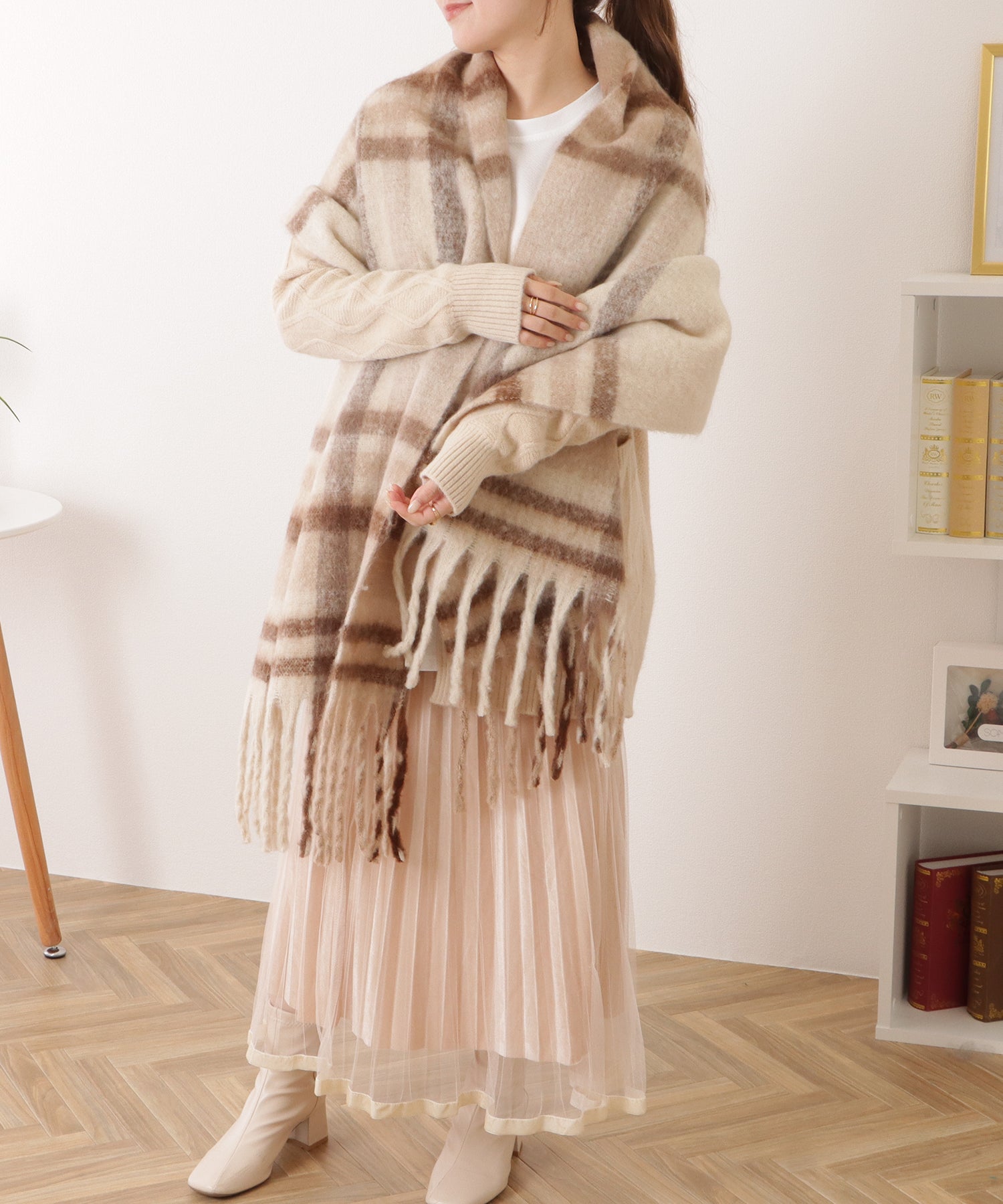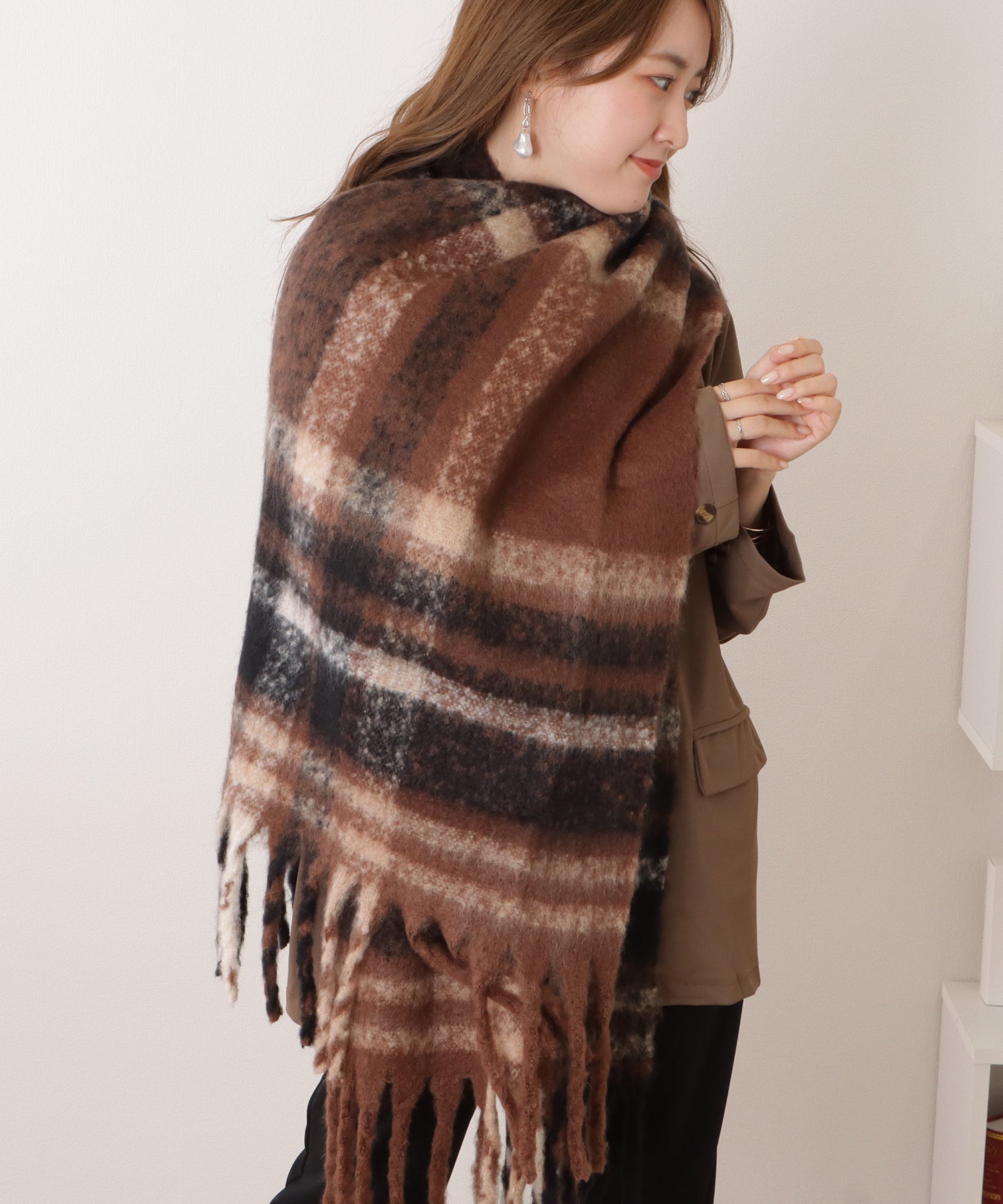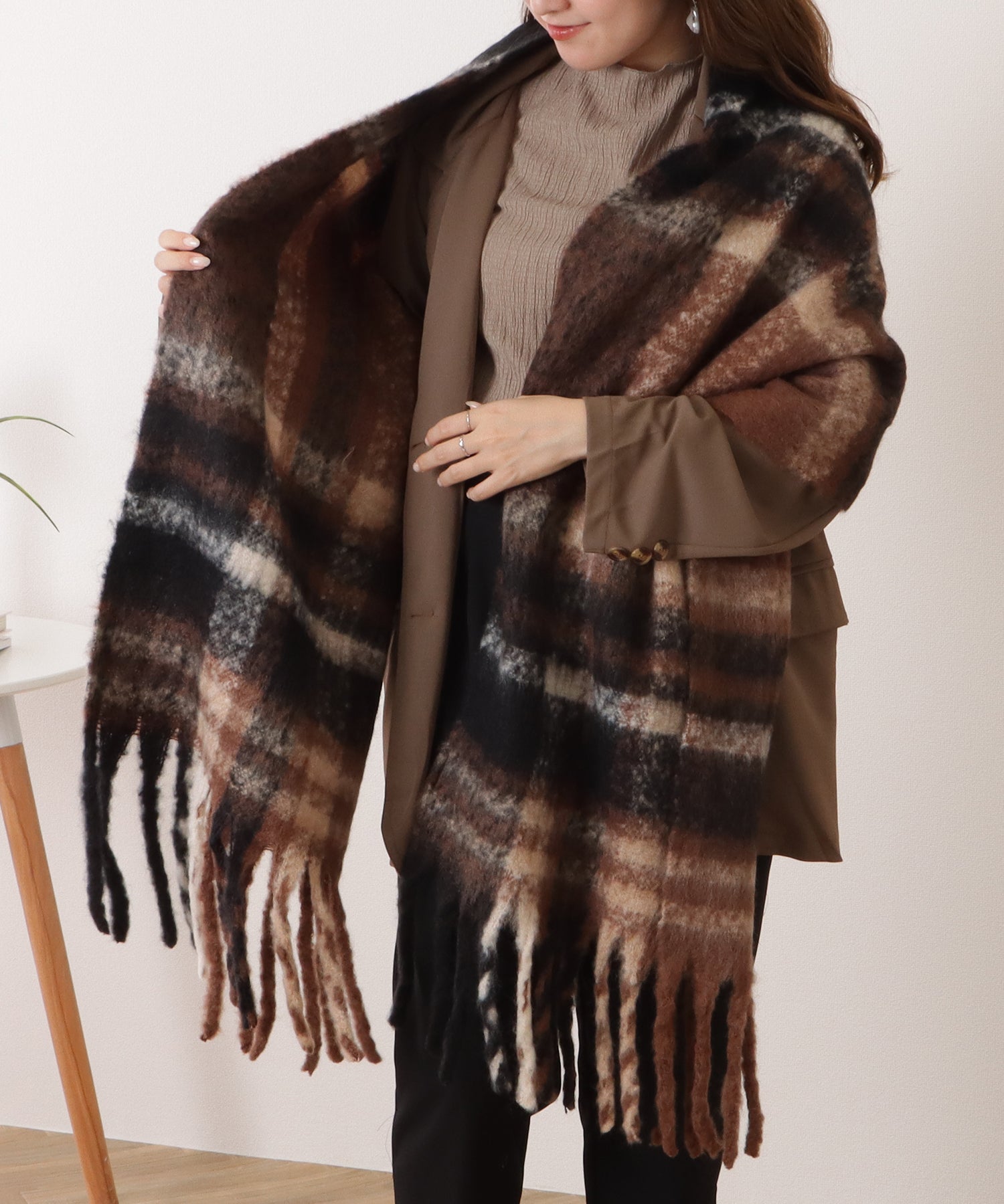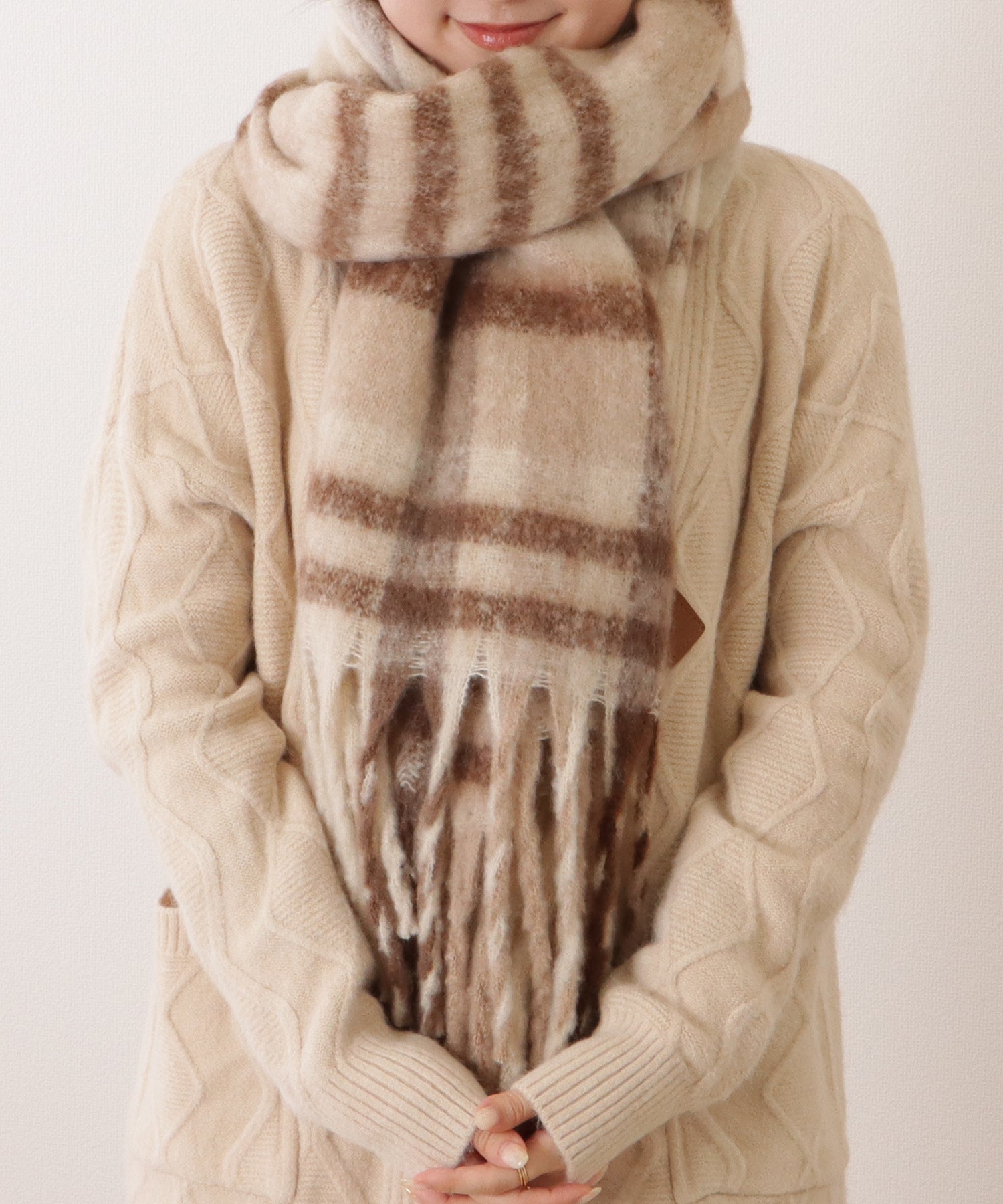存在感のある大判サイズで、ショールやブランケットとしてなどマルチにお使いいただけるのも嬉しいところ。