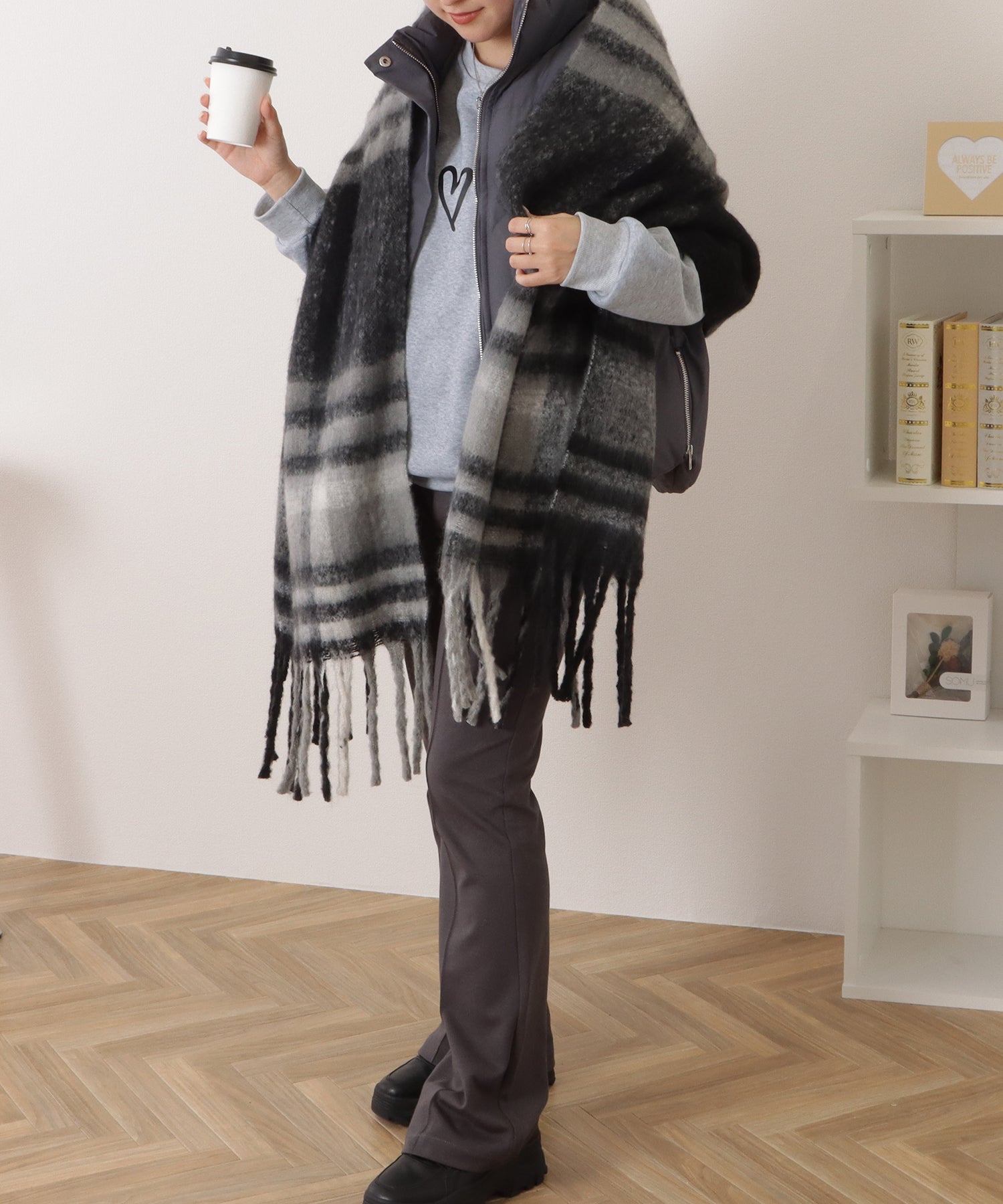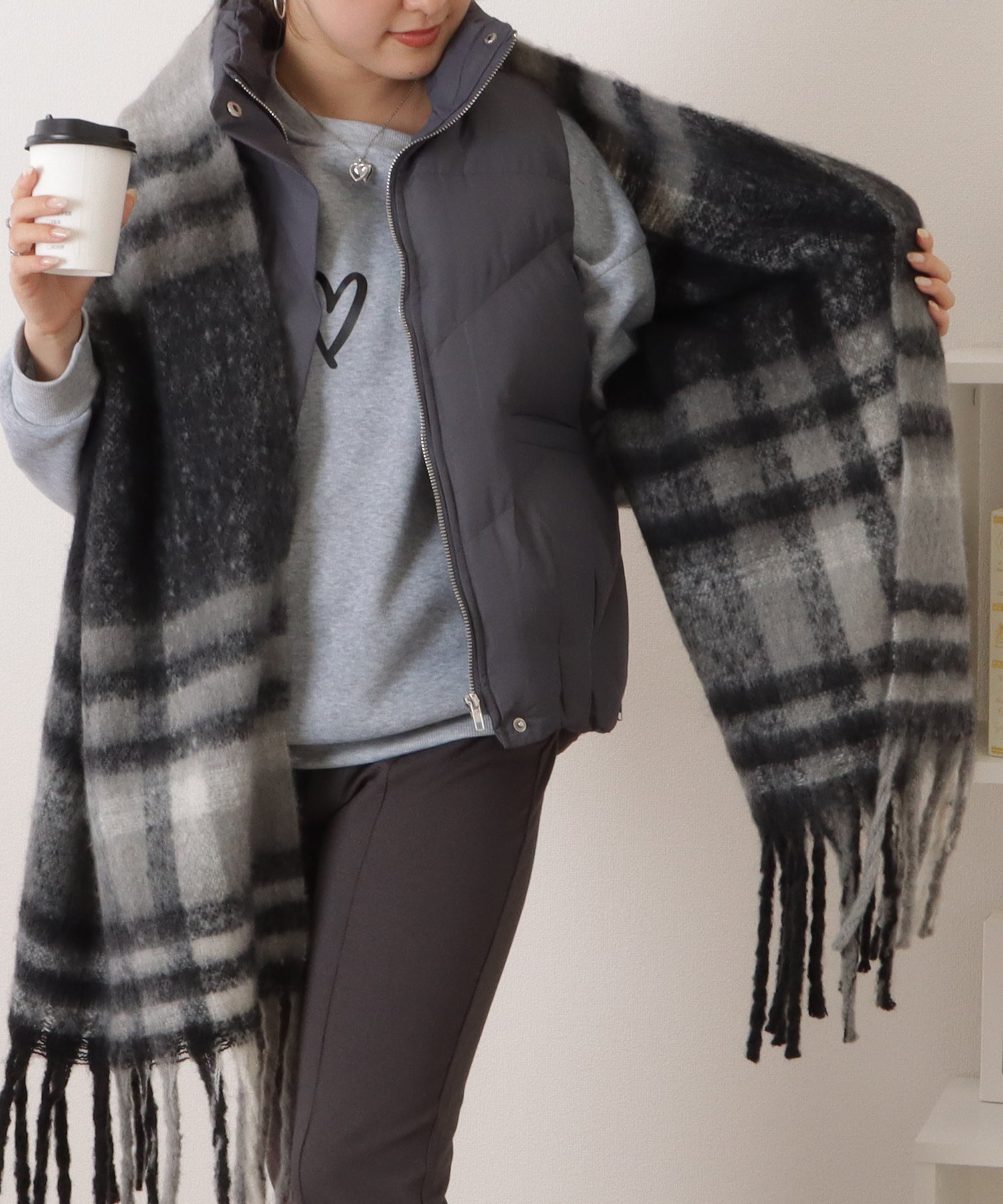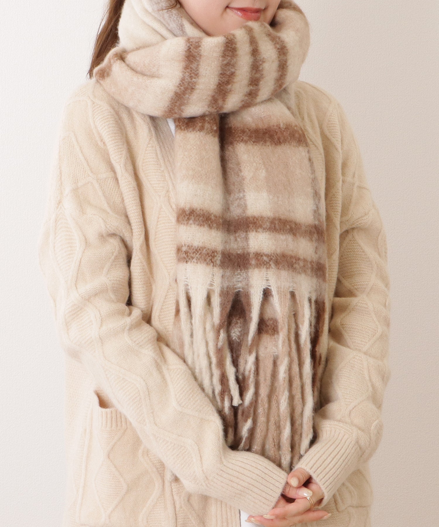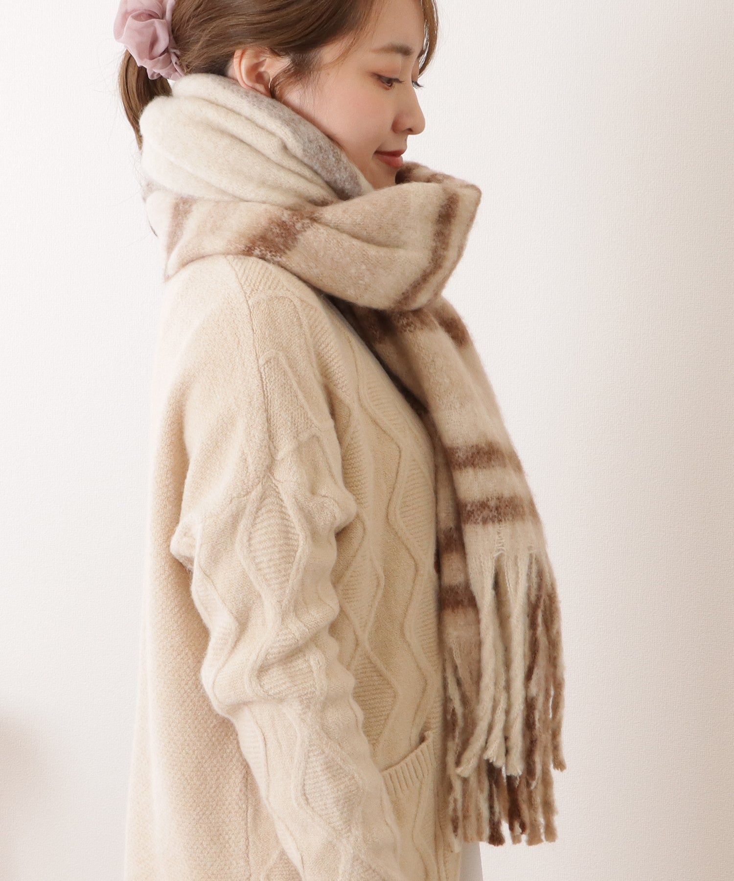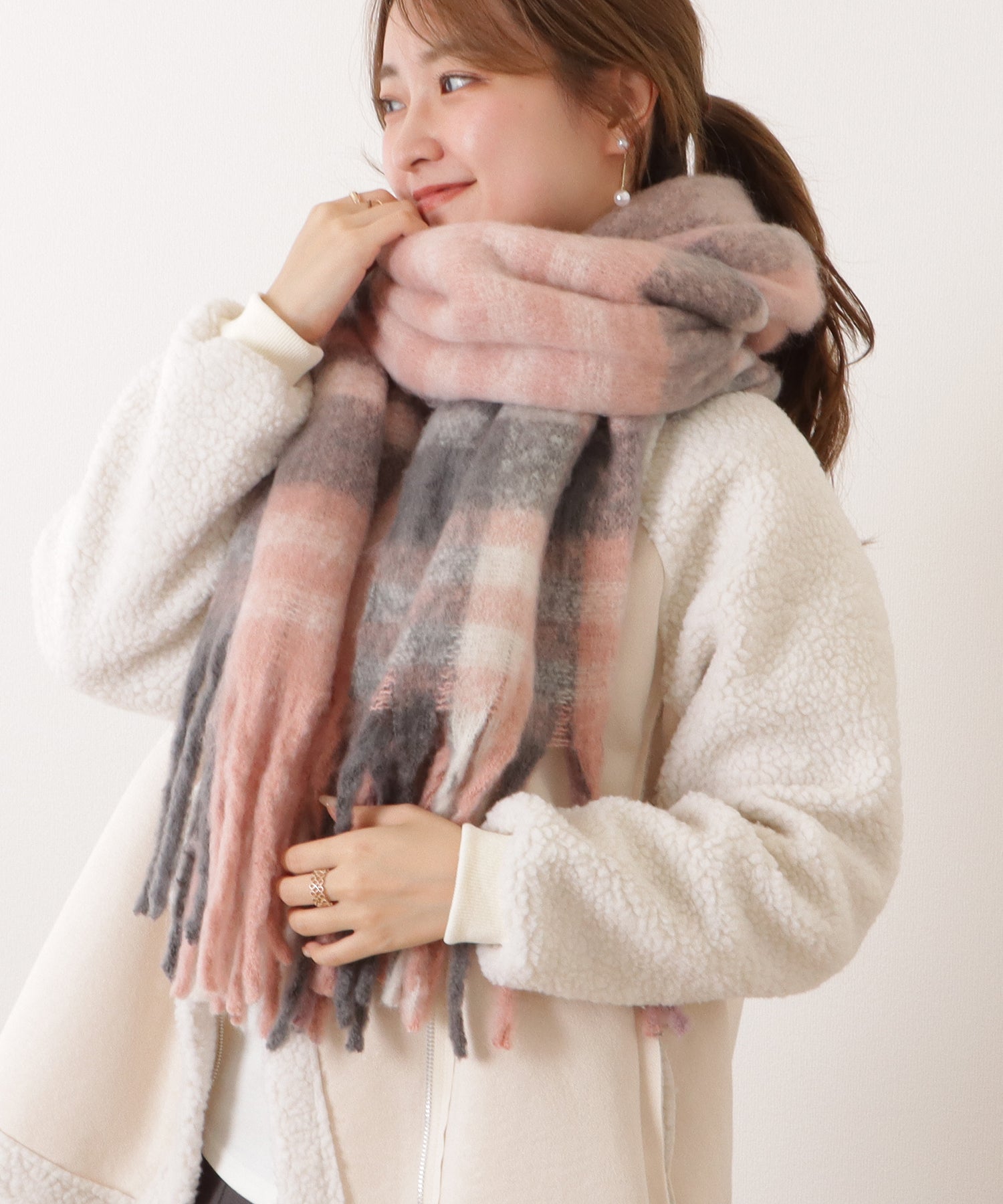 存在感のある大判サイズで、ショールやブランケットとしてなどマルチにお使いいただけるのも嬉しいところ。