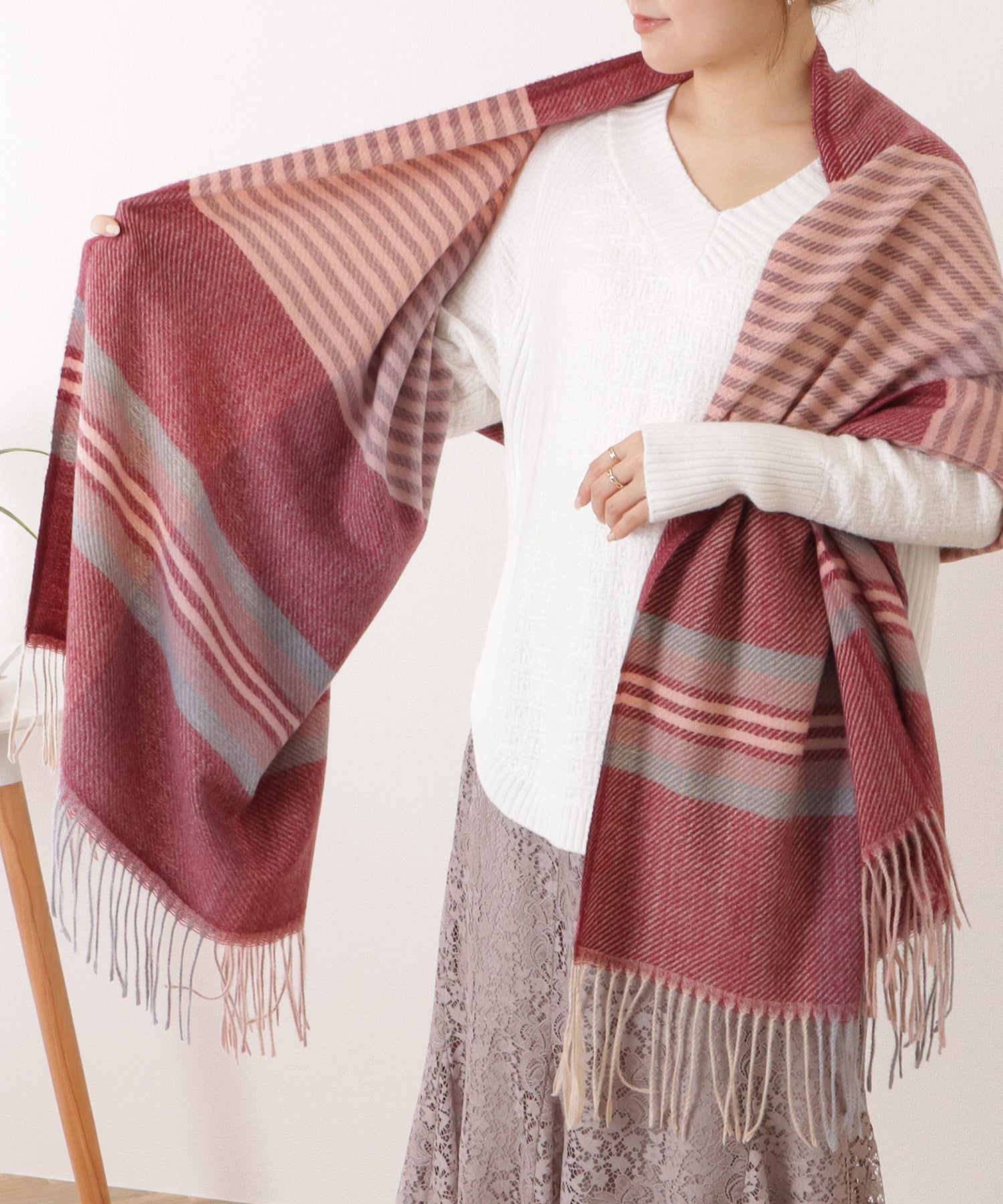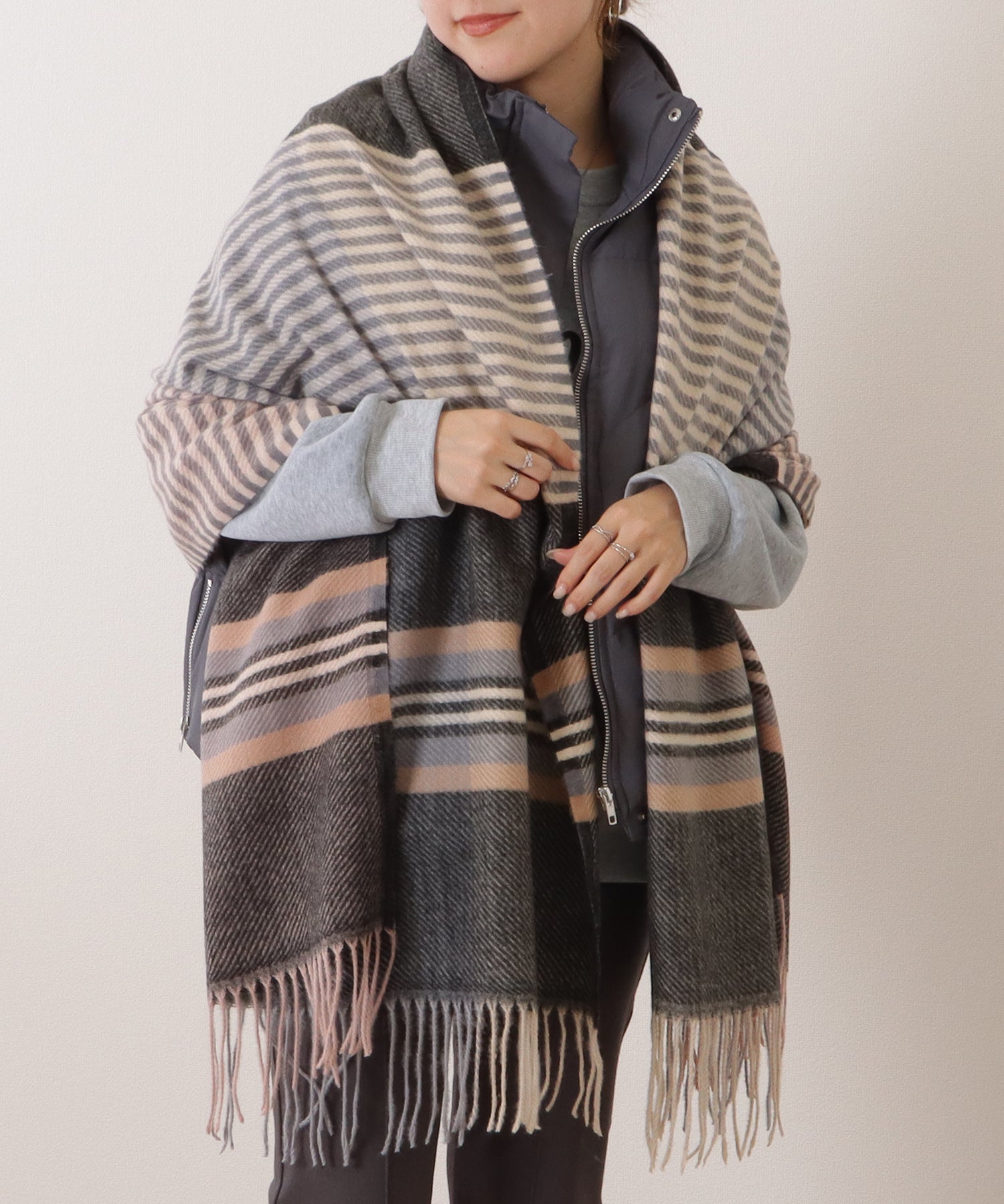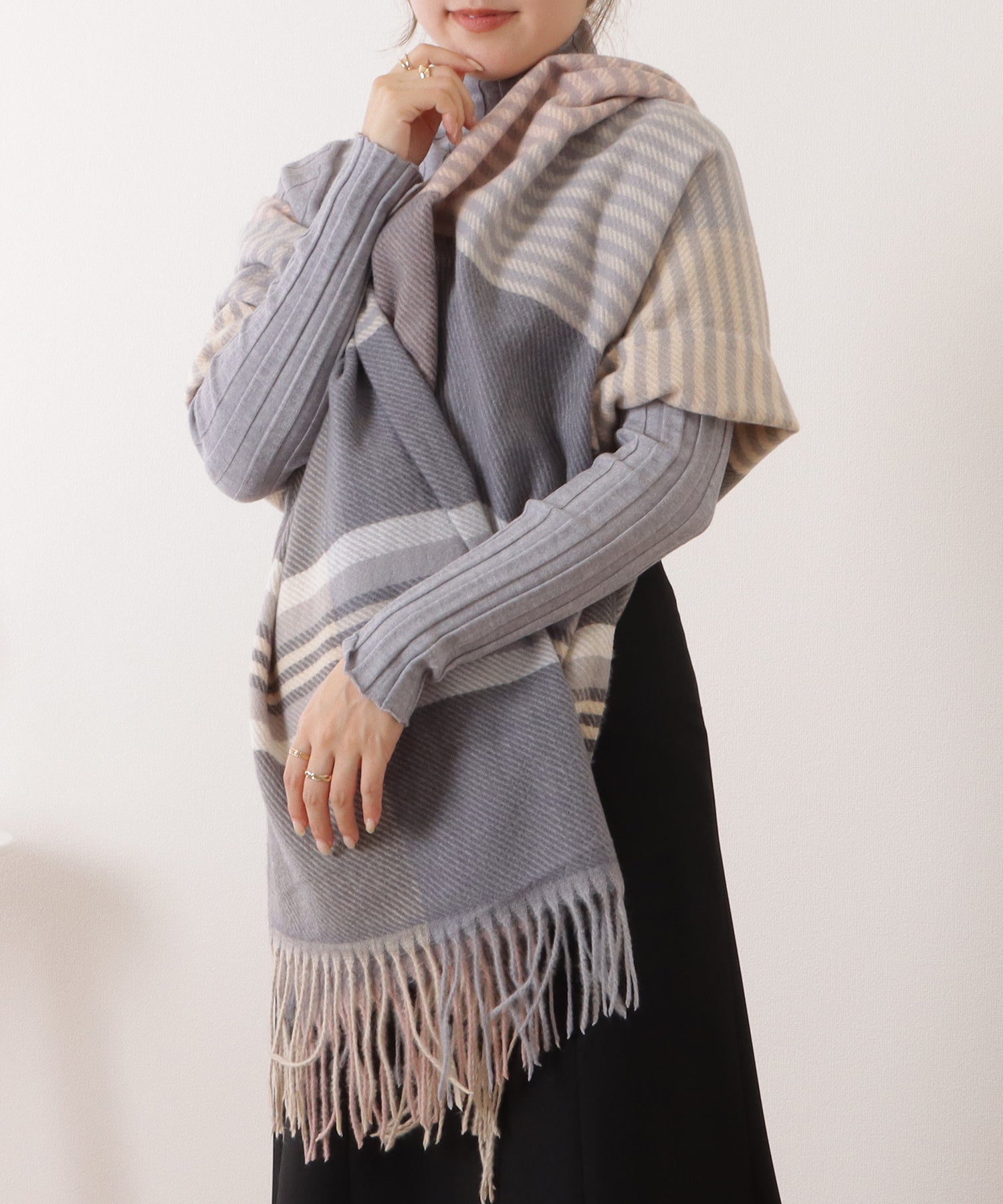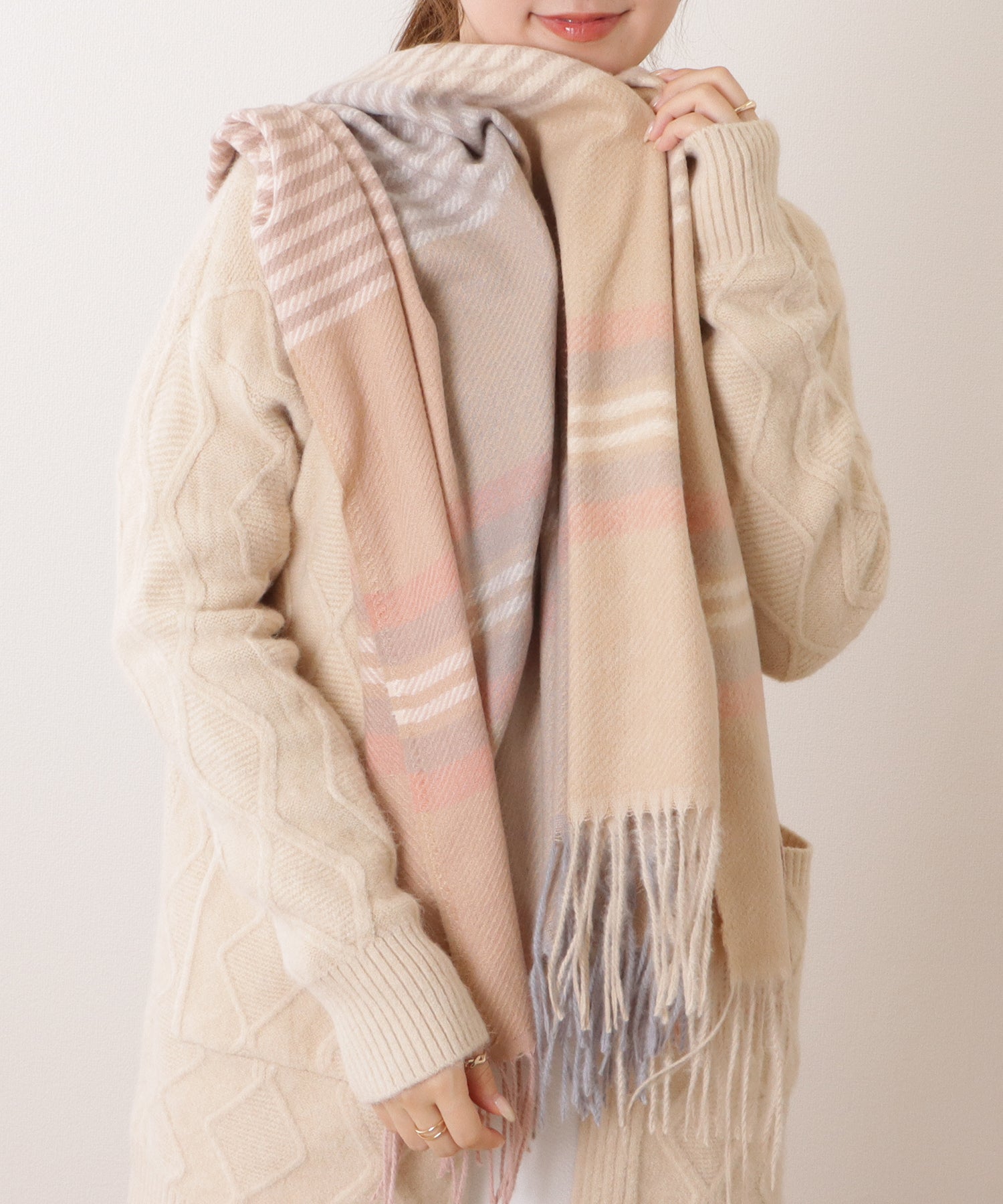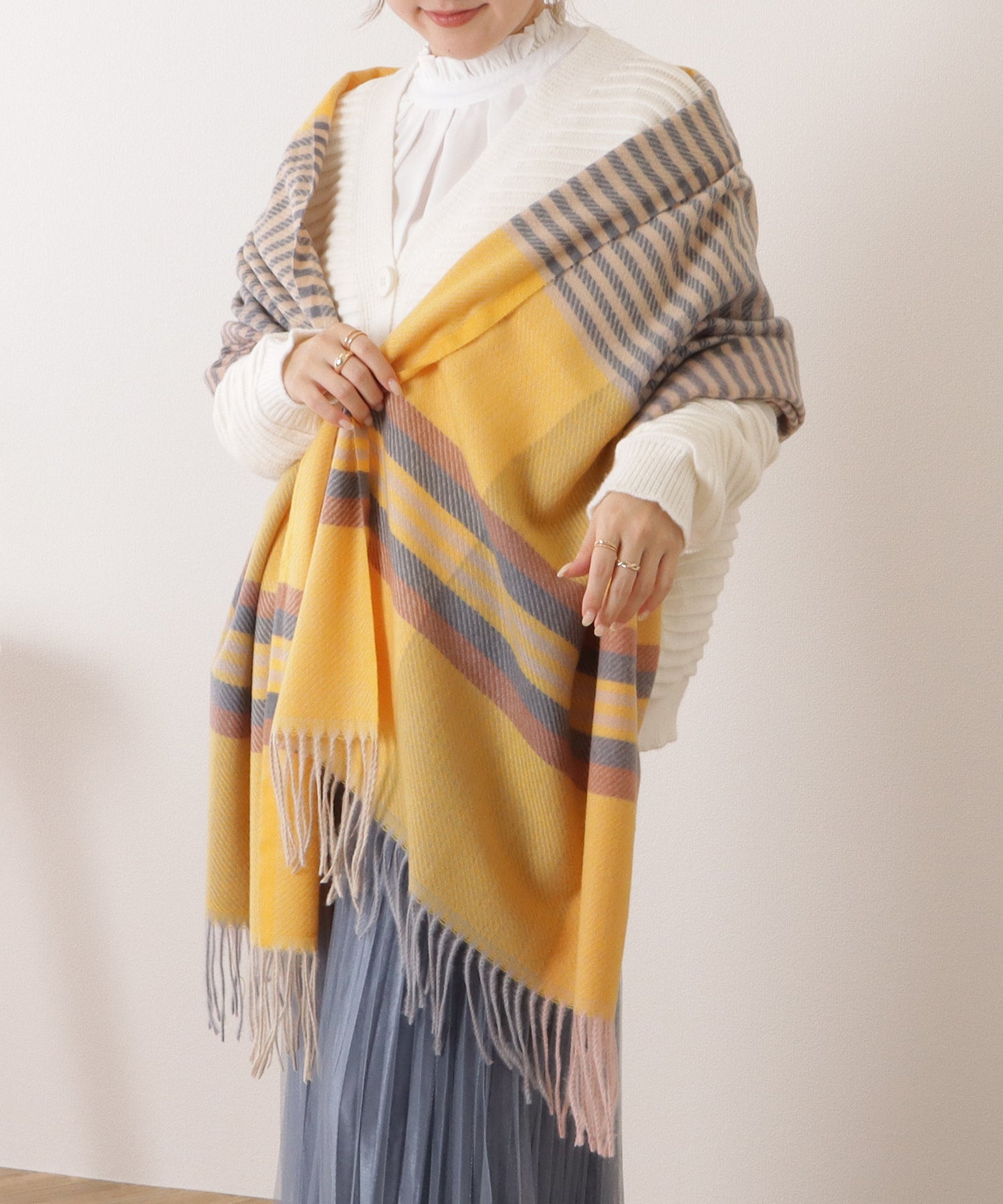 存在感のある大判サイズで、ショールやブランケットとしてなどマルチにお使いいただけるのも嬉しいところ。