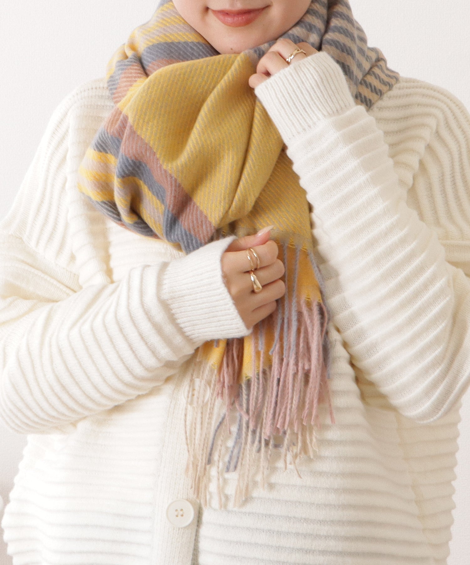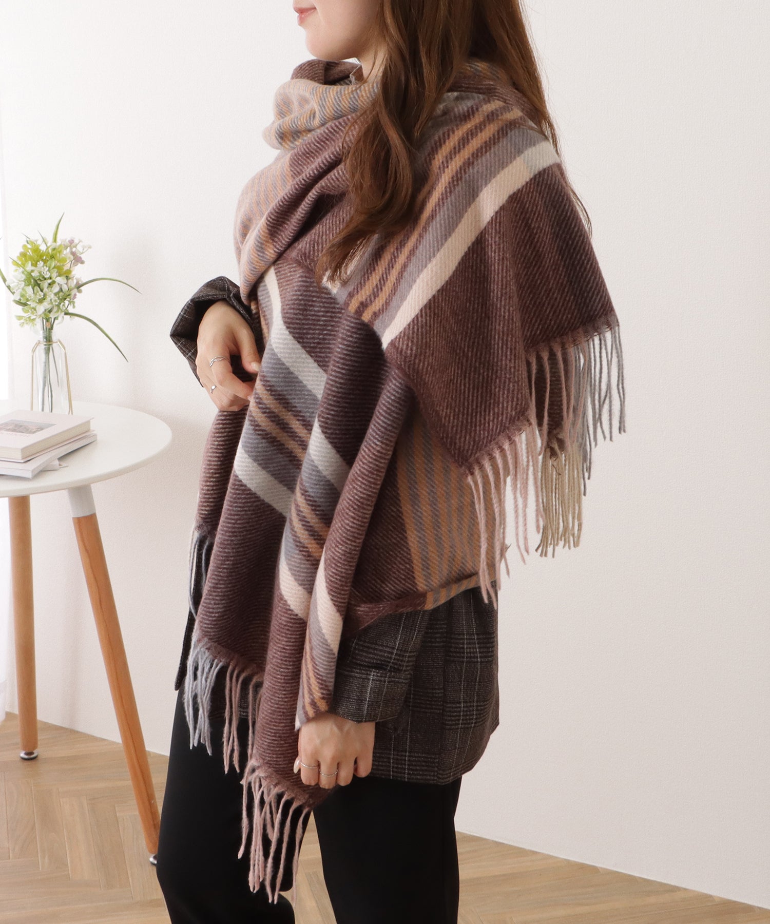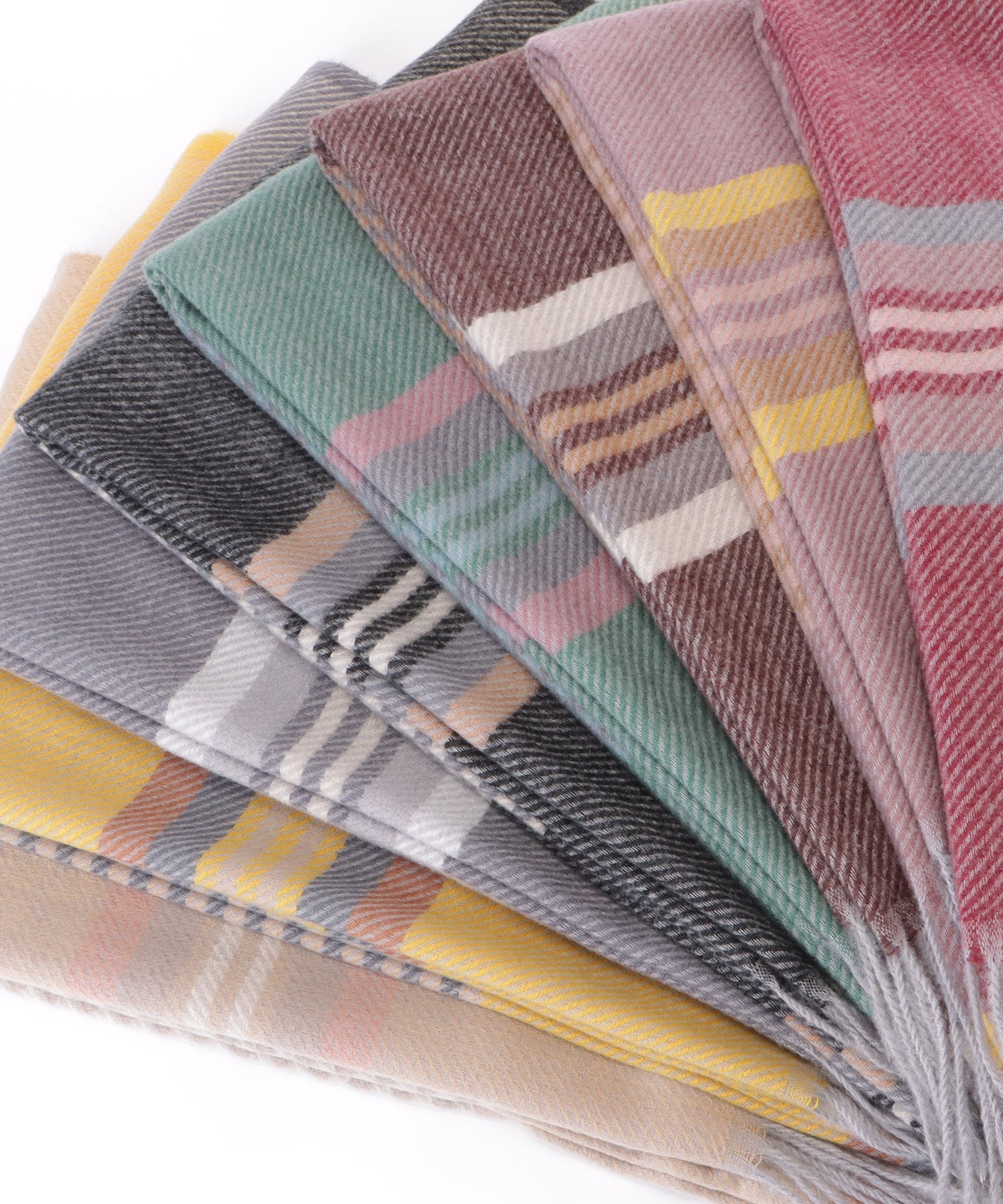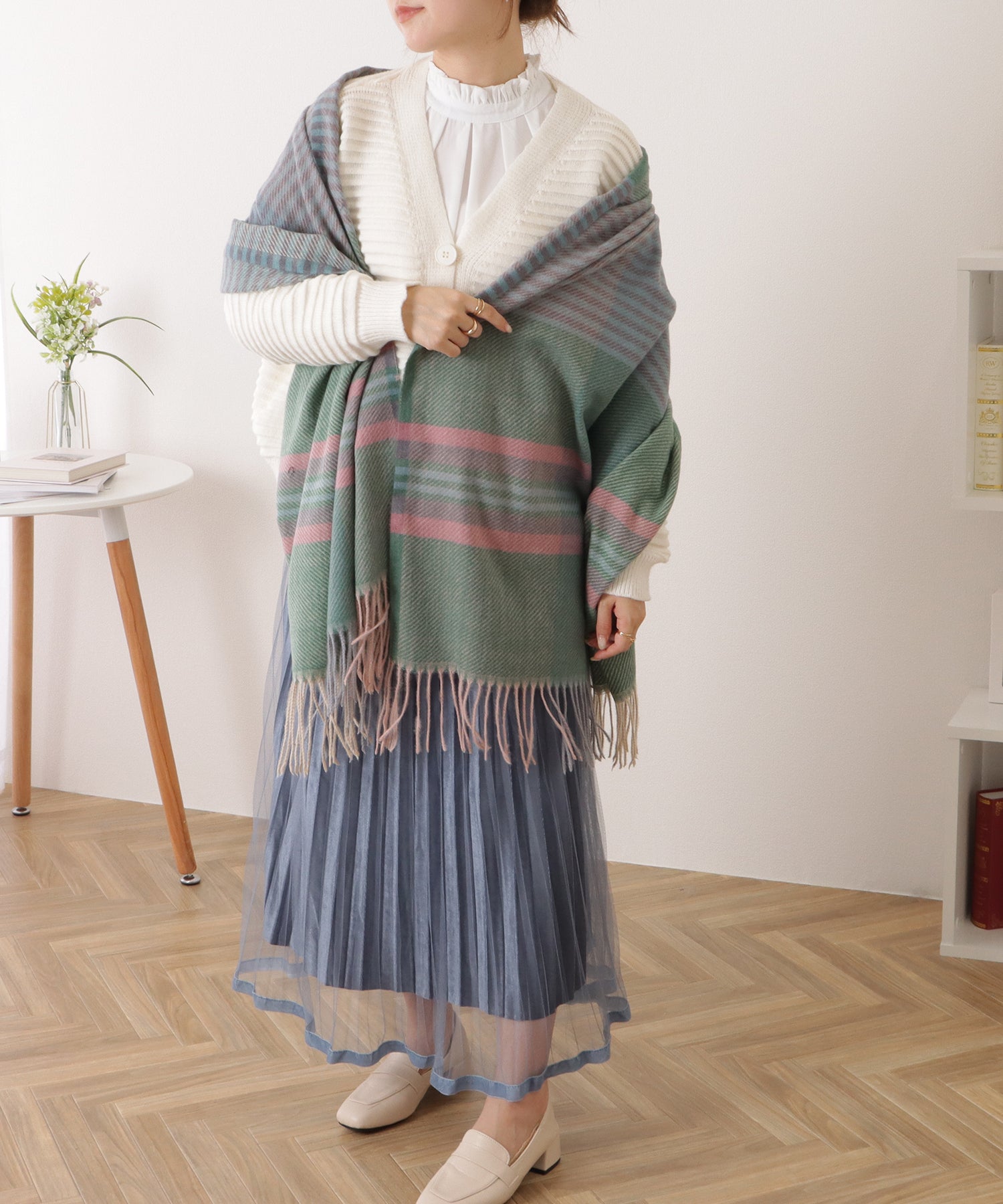 存在感のある大判サイズで、ショールやブランケットとしてなどマルチにお使いいただけるのも嬉しいところ。