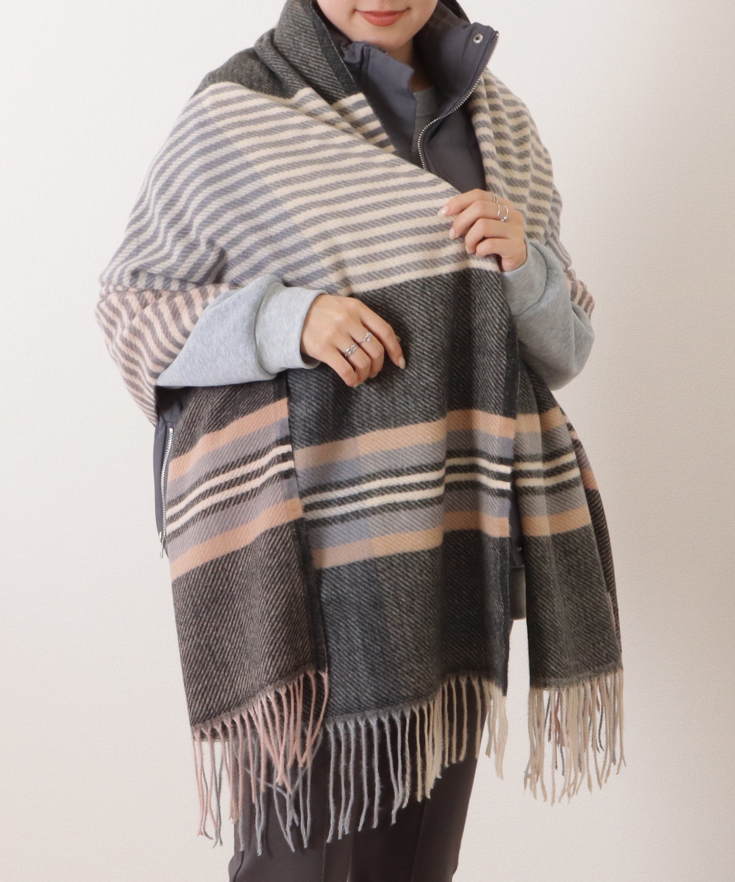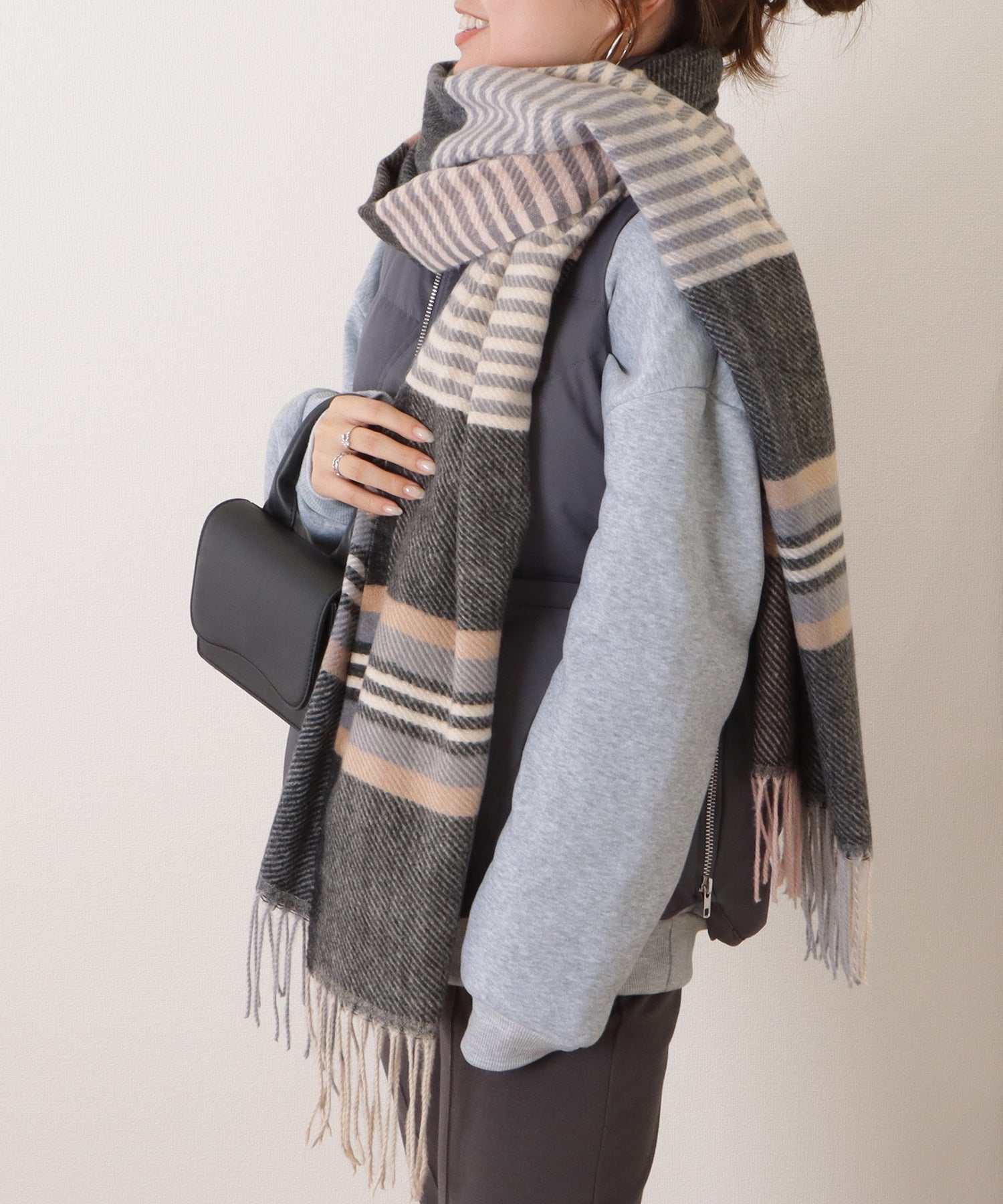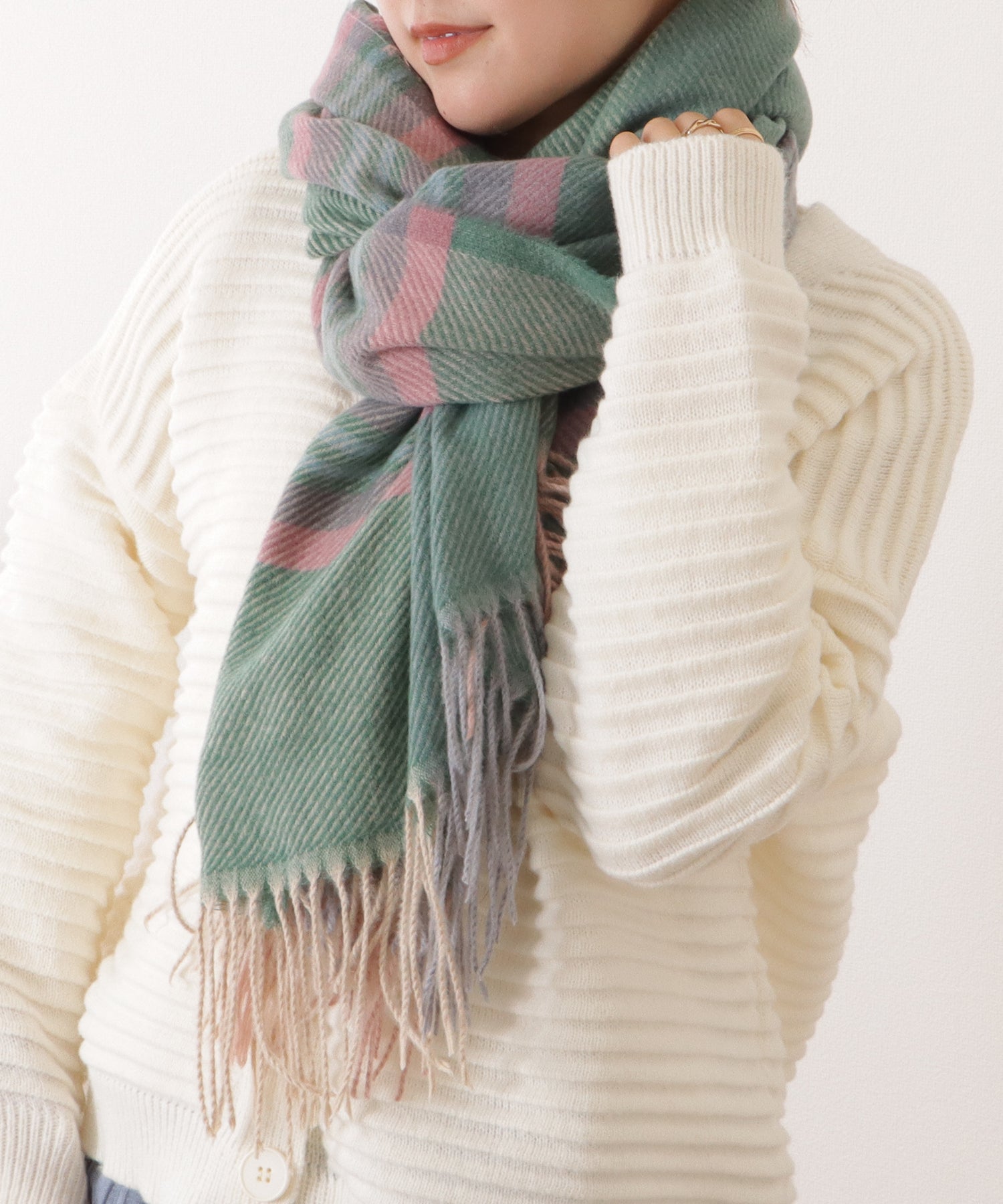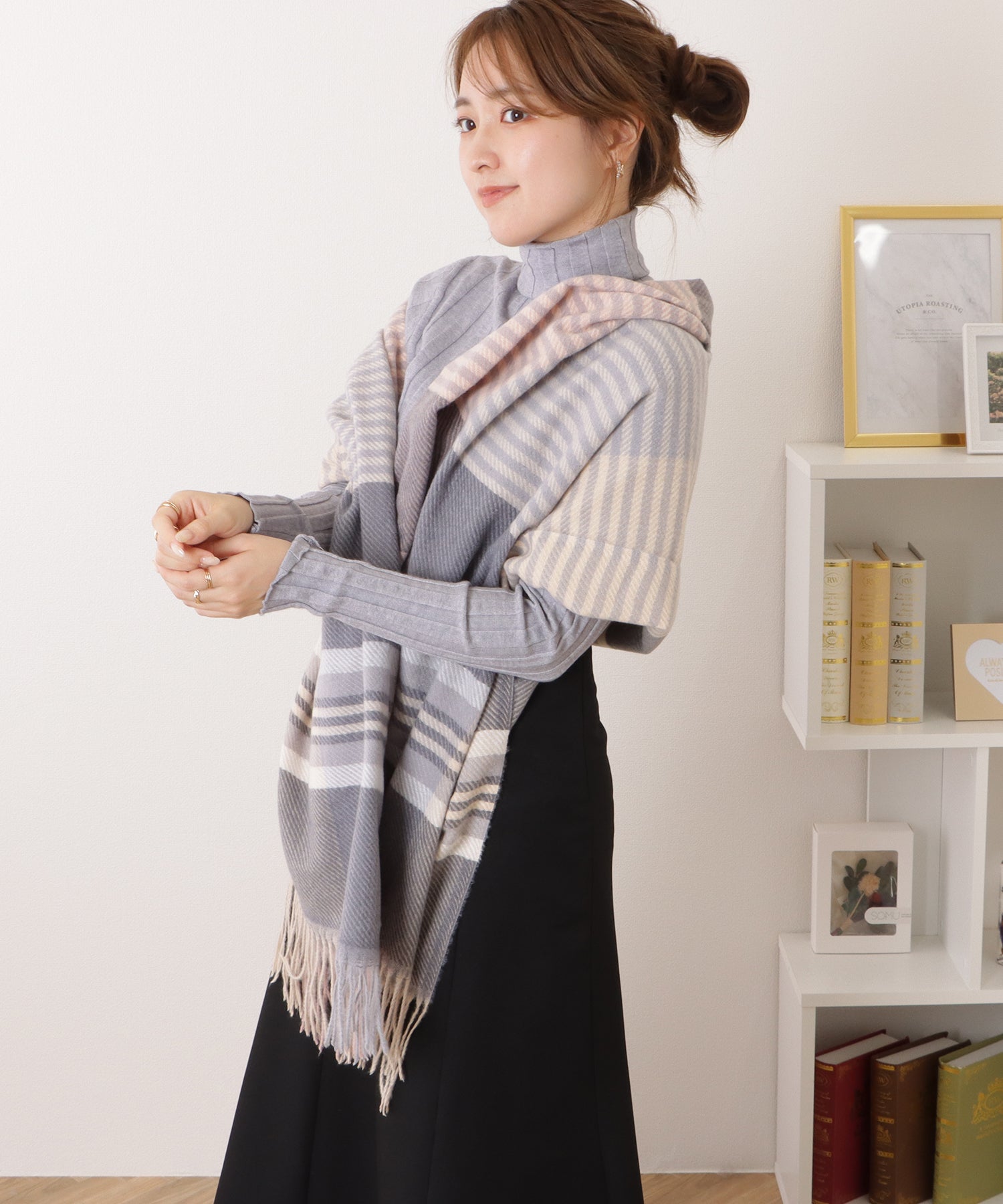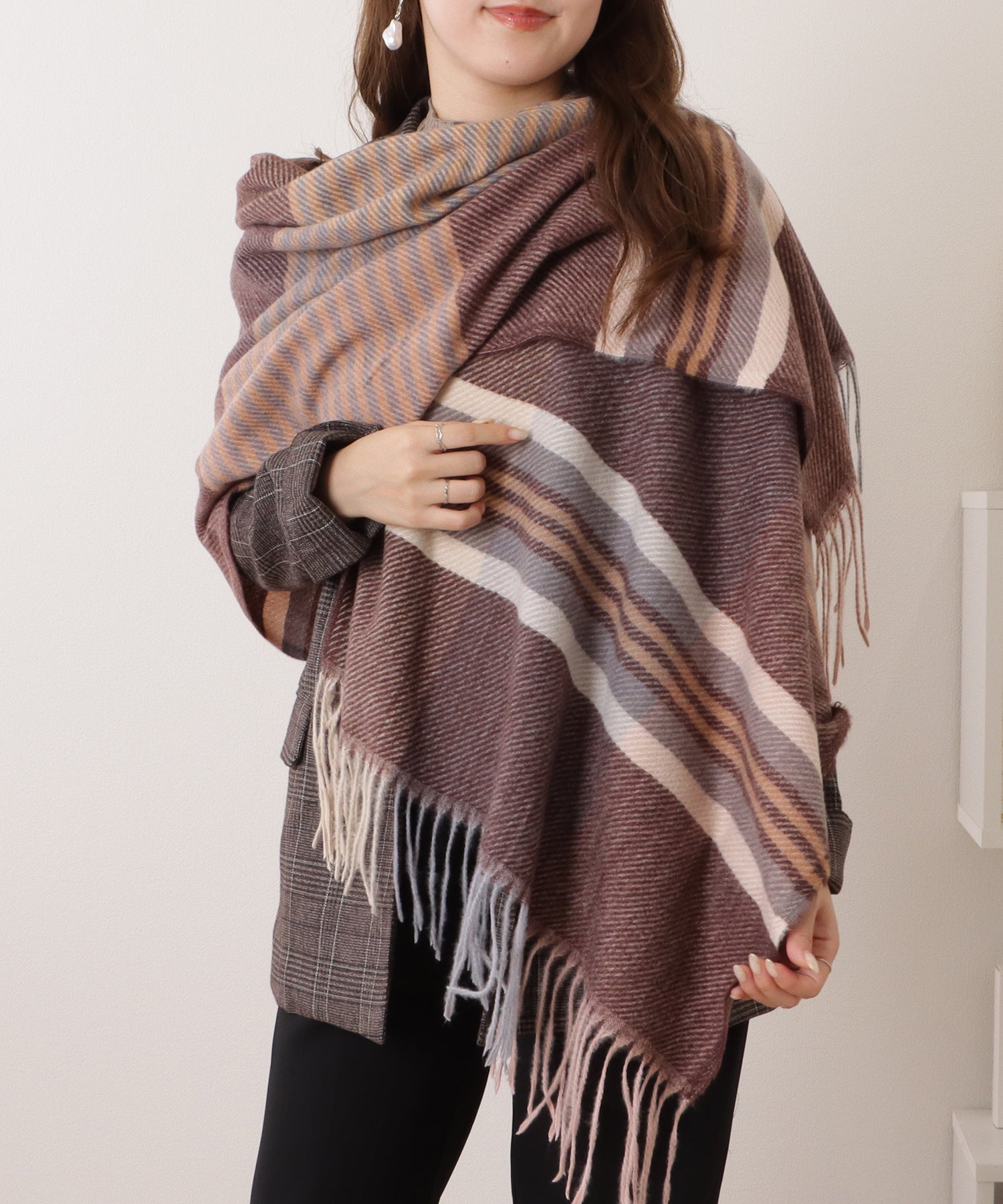 存在感のある大判サイズで、ショールやブランケットとしてなどマルチにお使いいただけるのも嬉しいところ。