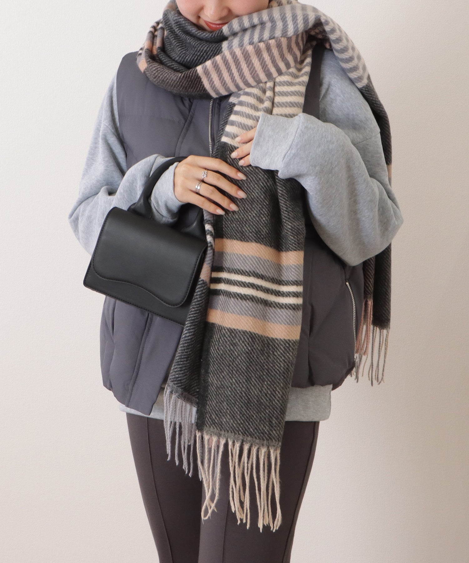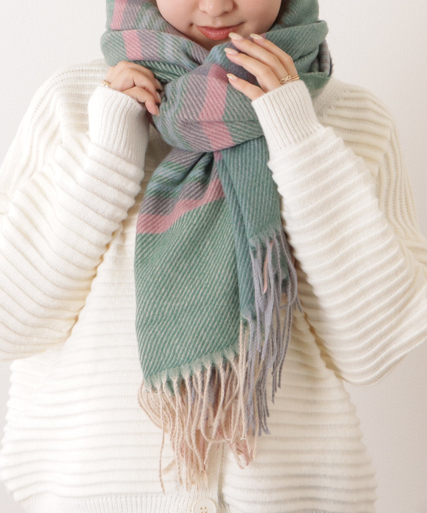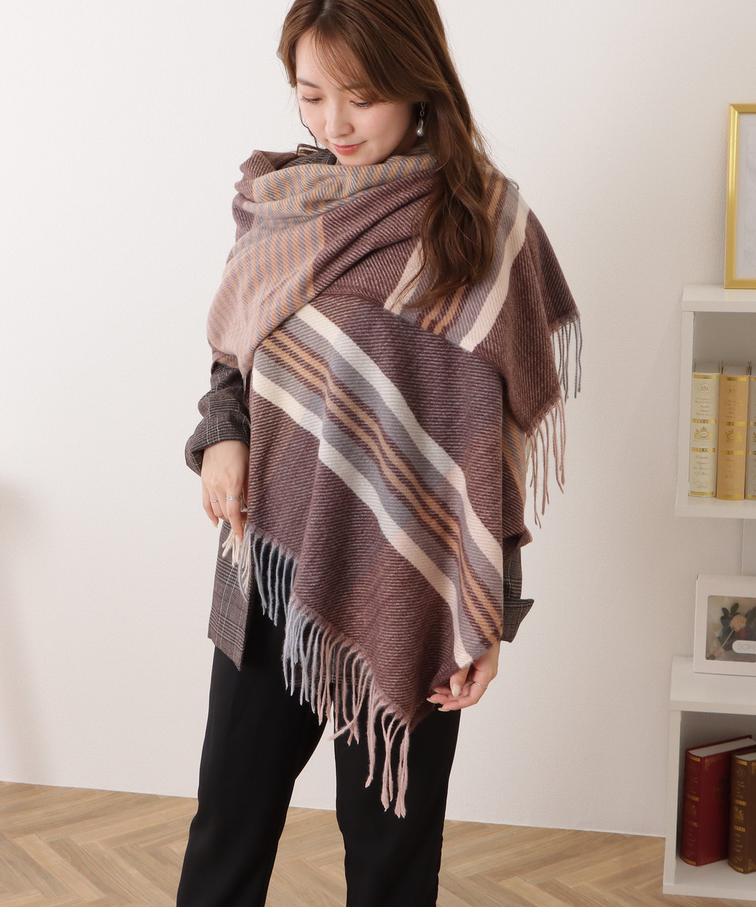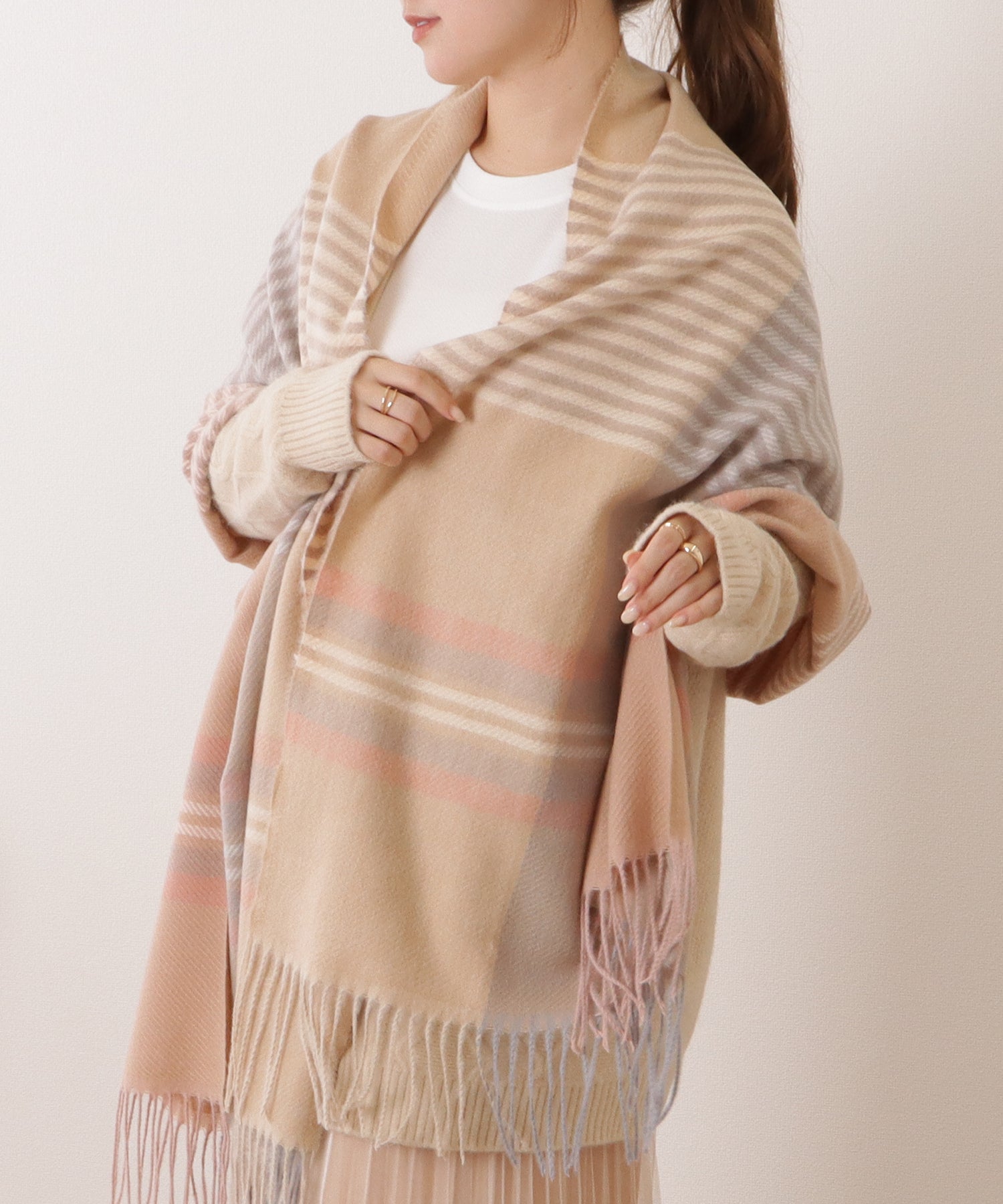 存在感のある大判サイズで、ショールやブランケットとしてなどマルチにお使いいただけるのも嬉しいところ。