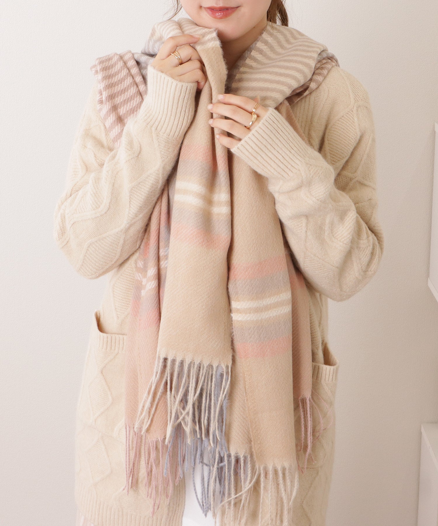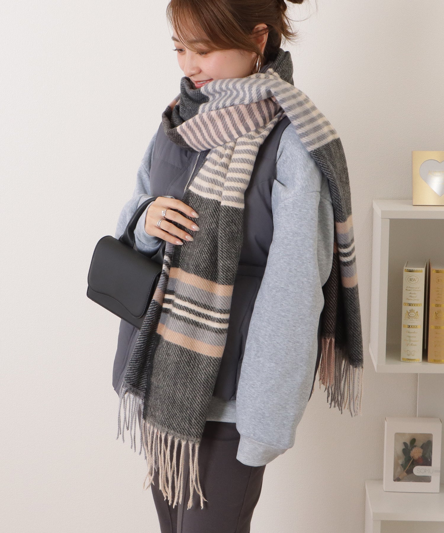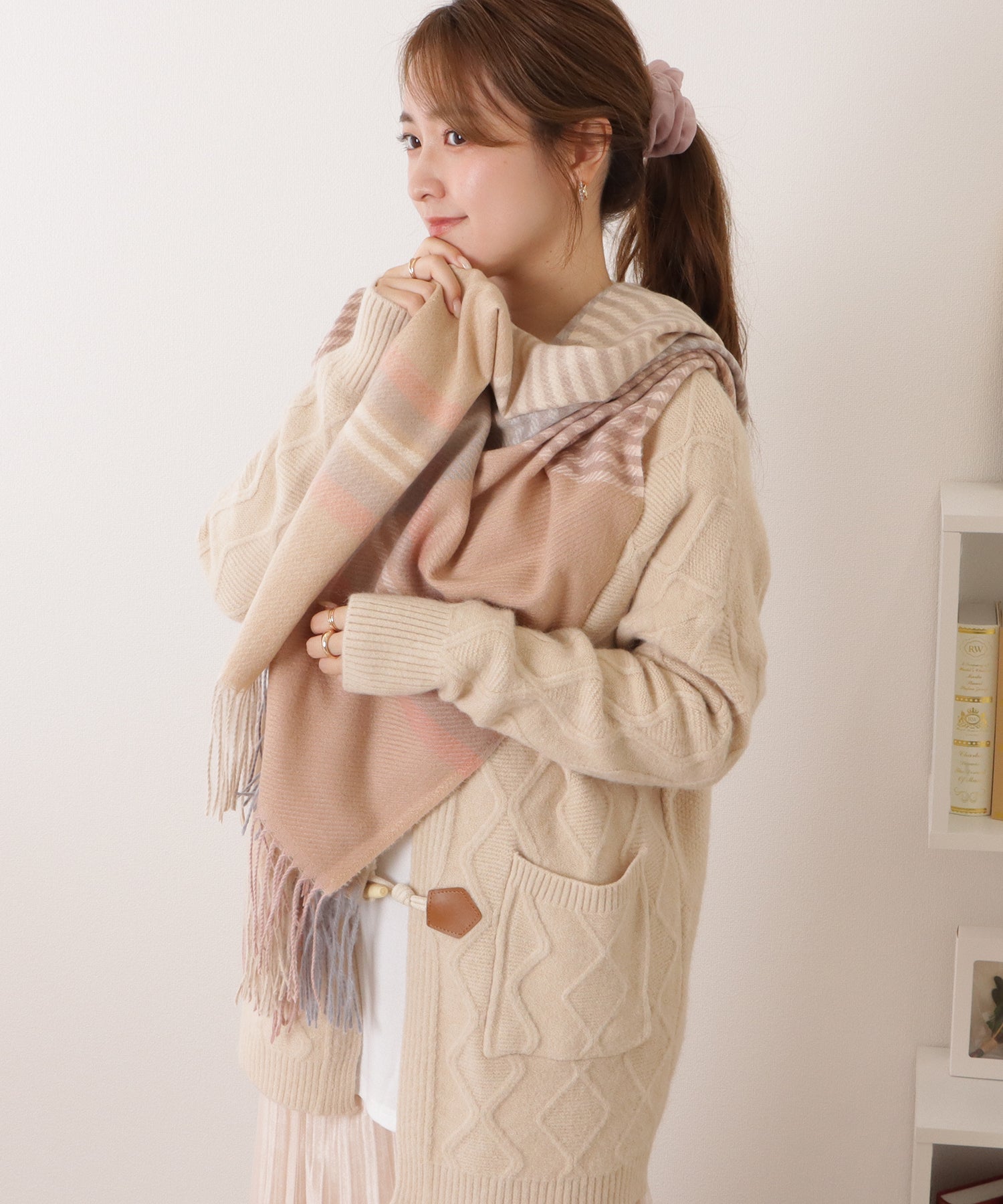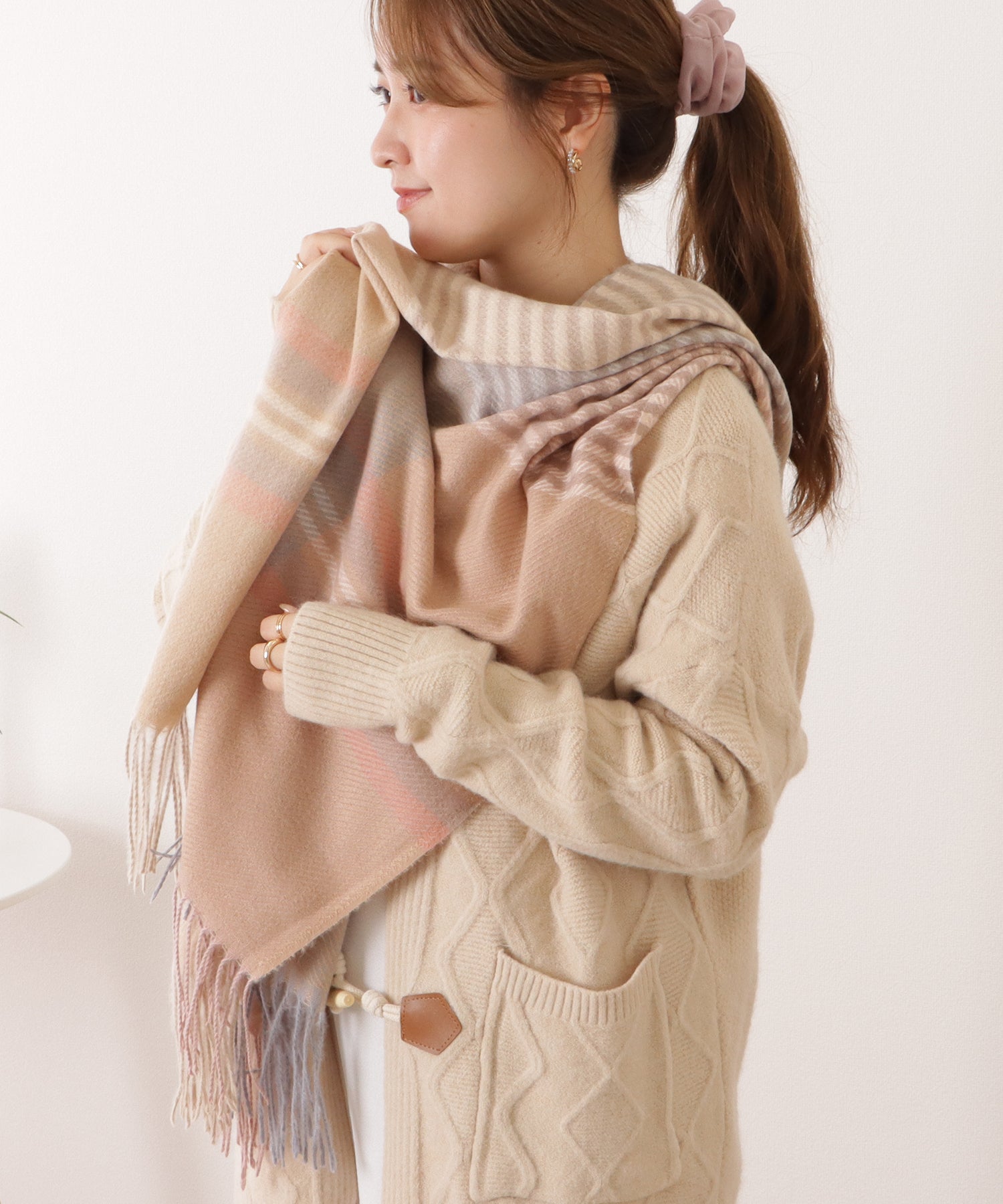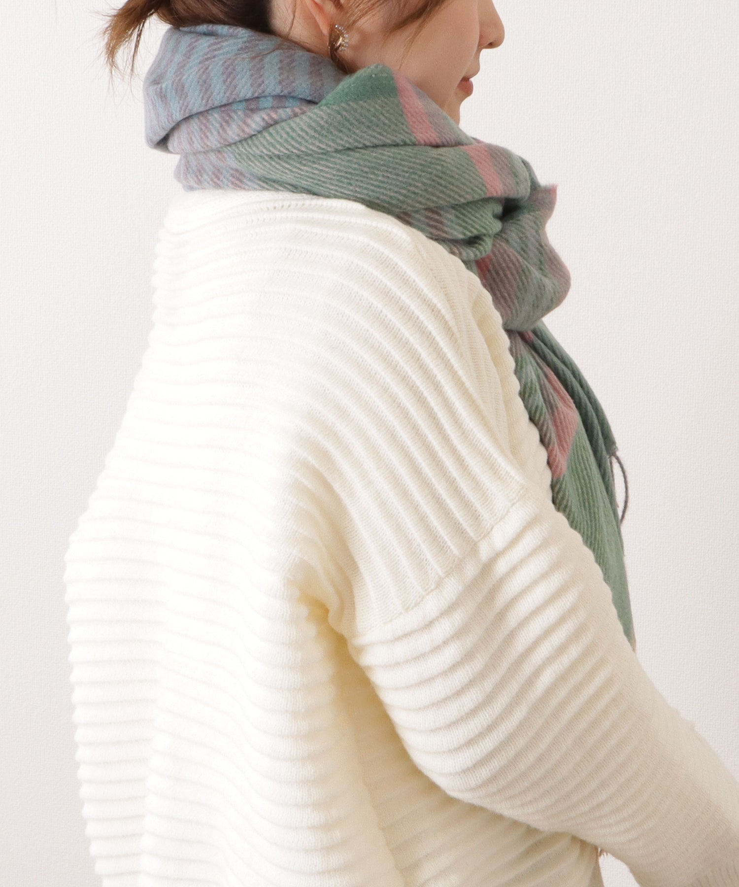 存在感のある大判サイズで、ショールやブランケットとしてなどマルチにお使いいただけるのも嬉しいところ。