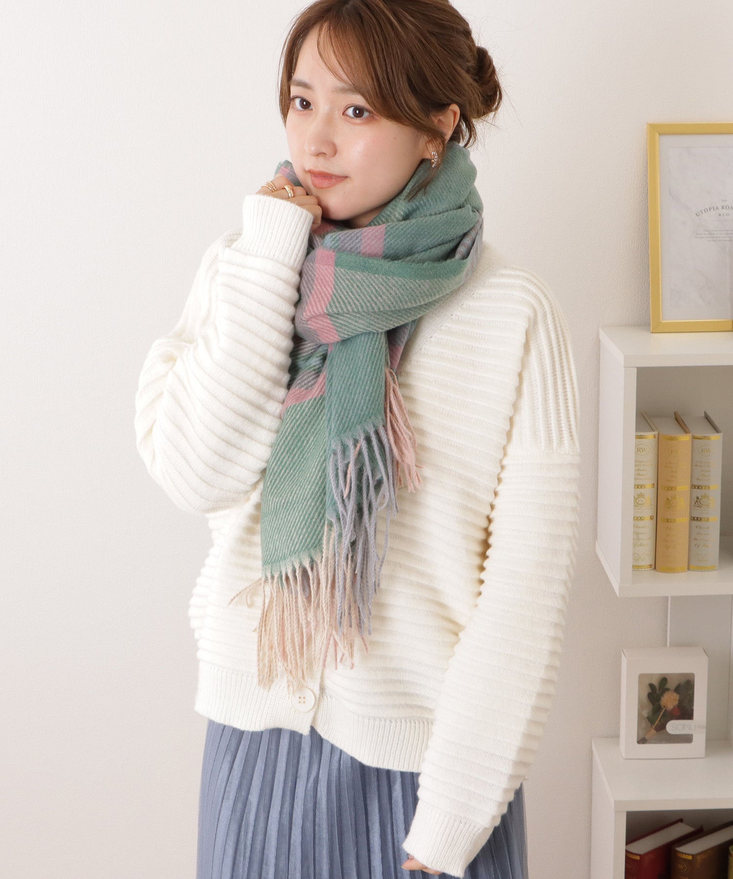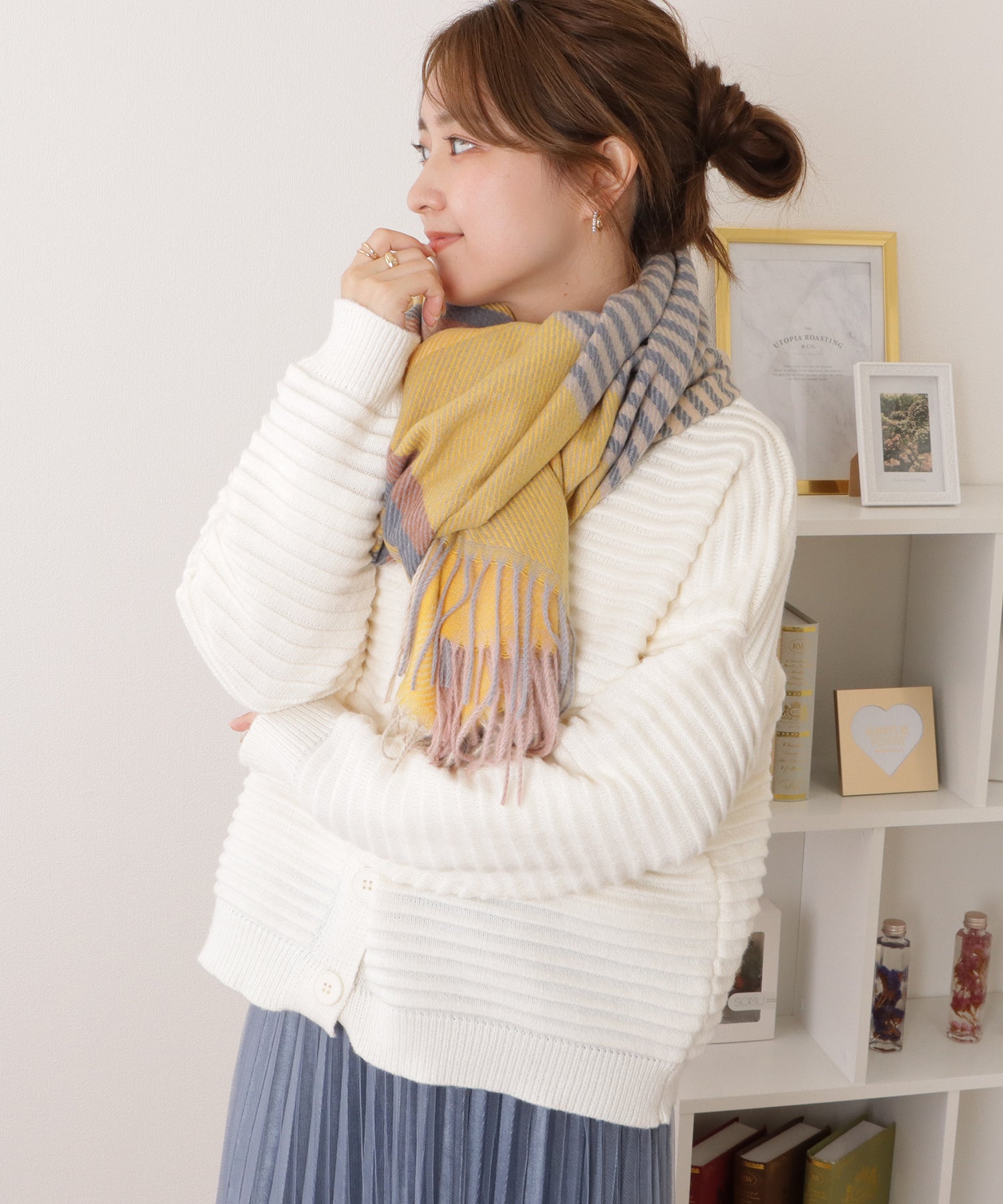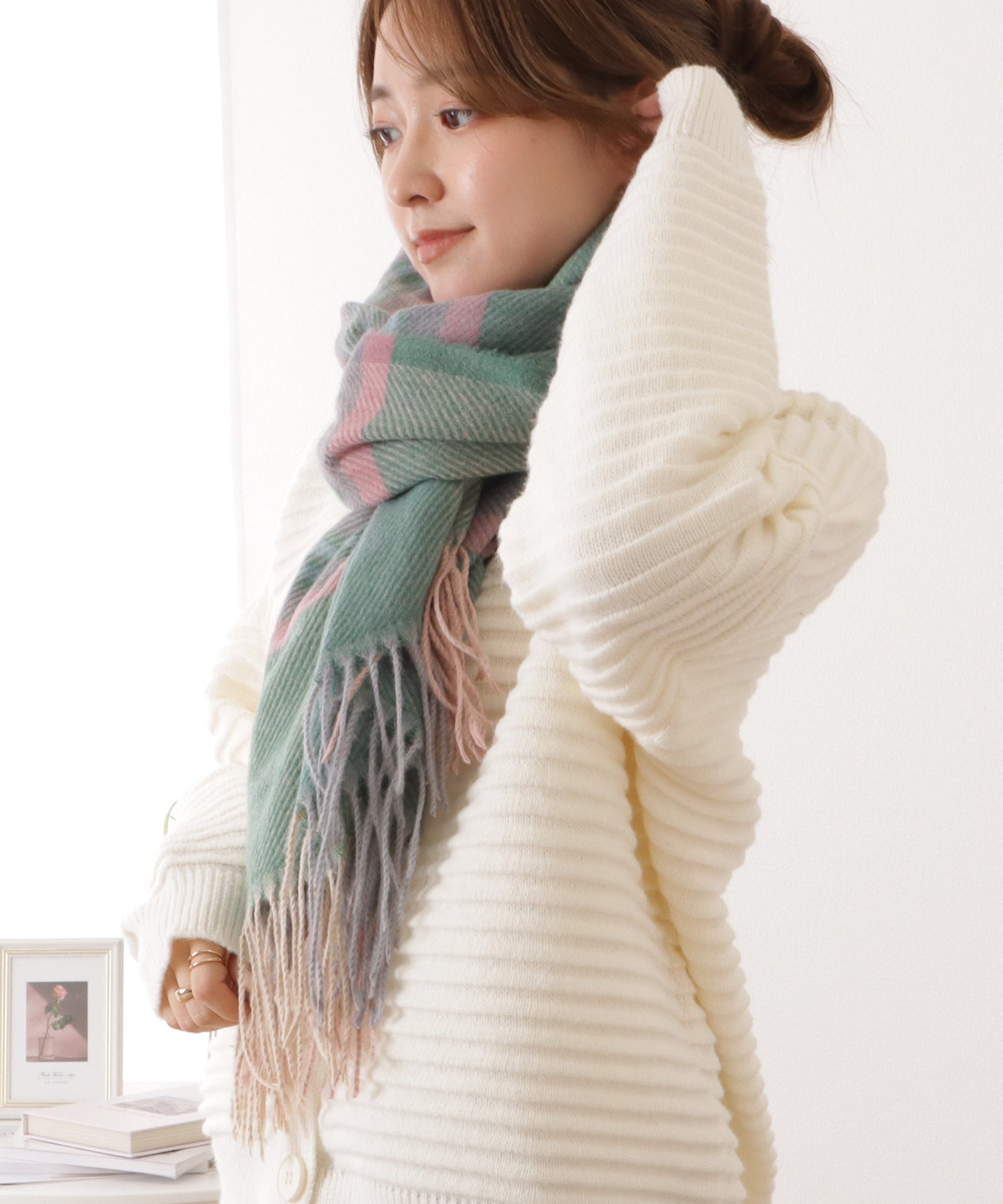 表情豊かなカラーコンビが美しい、あたたかなニットマフラー。