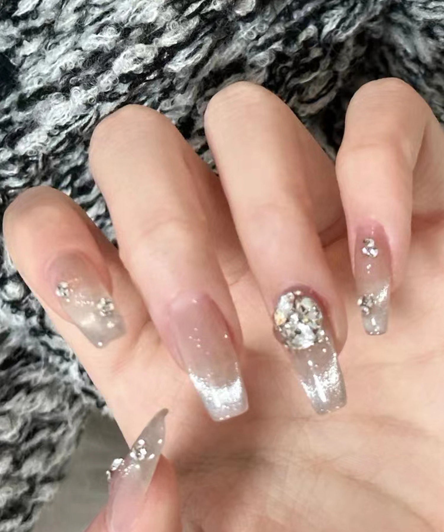 クリア グラデーション ビジュー付き フレンチ ネイルチップ