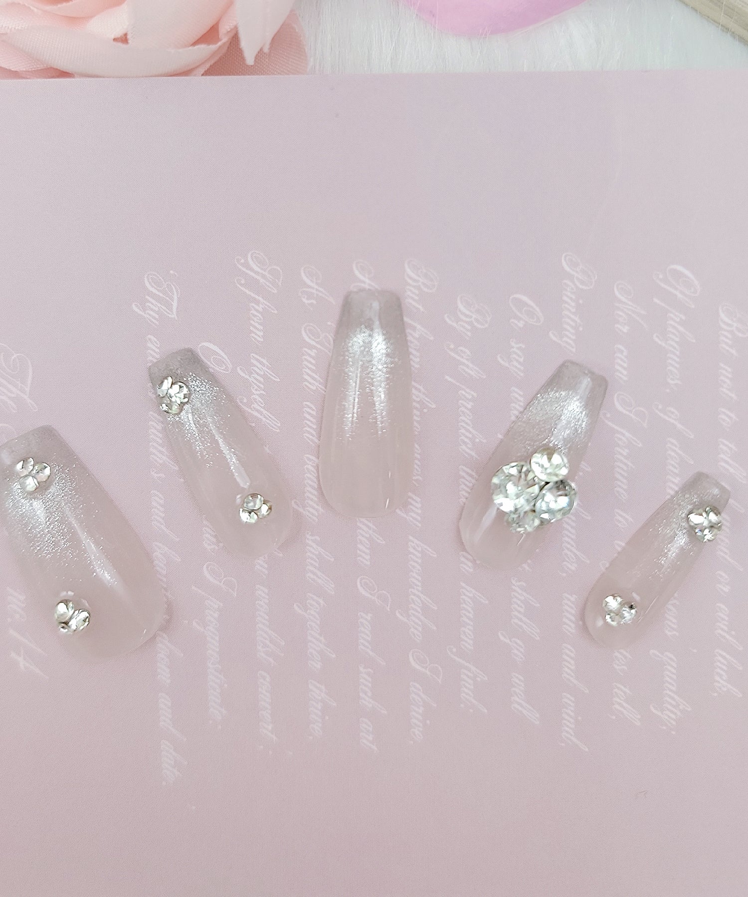 手元に華やぎを添えてくれる、ビジュー付きのネイルチップ。